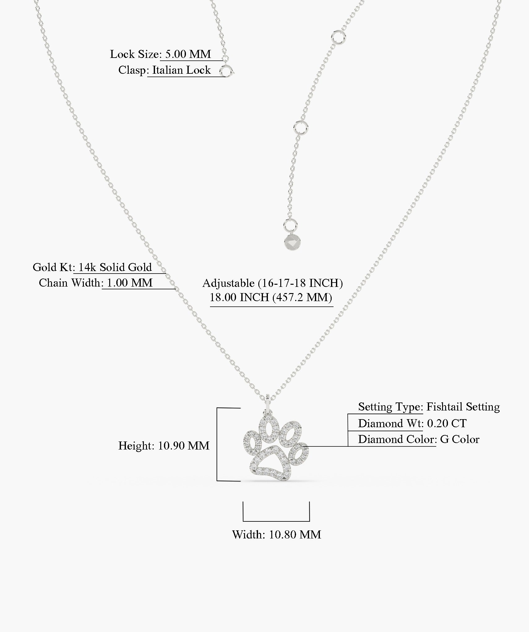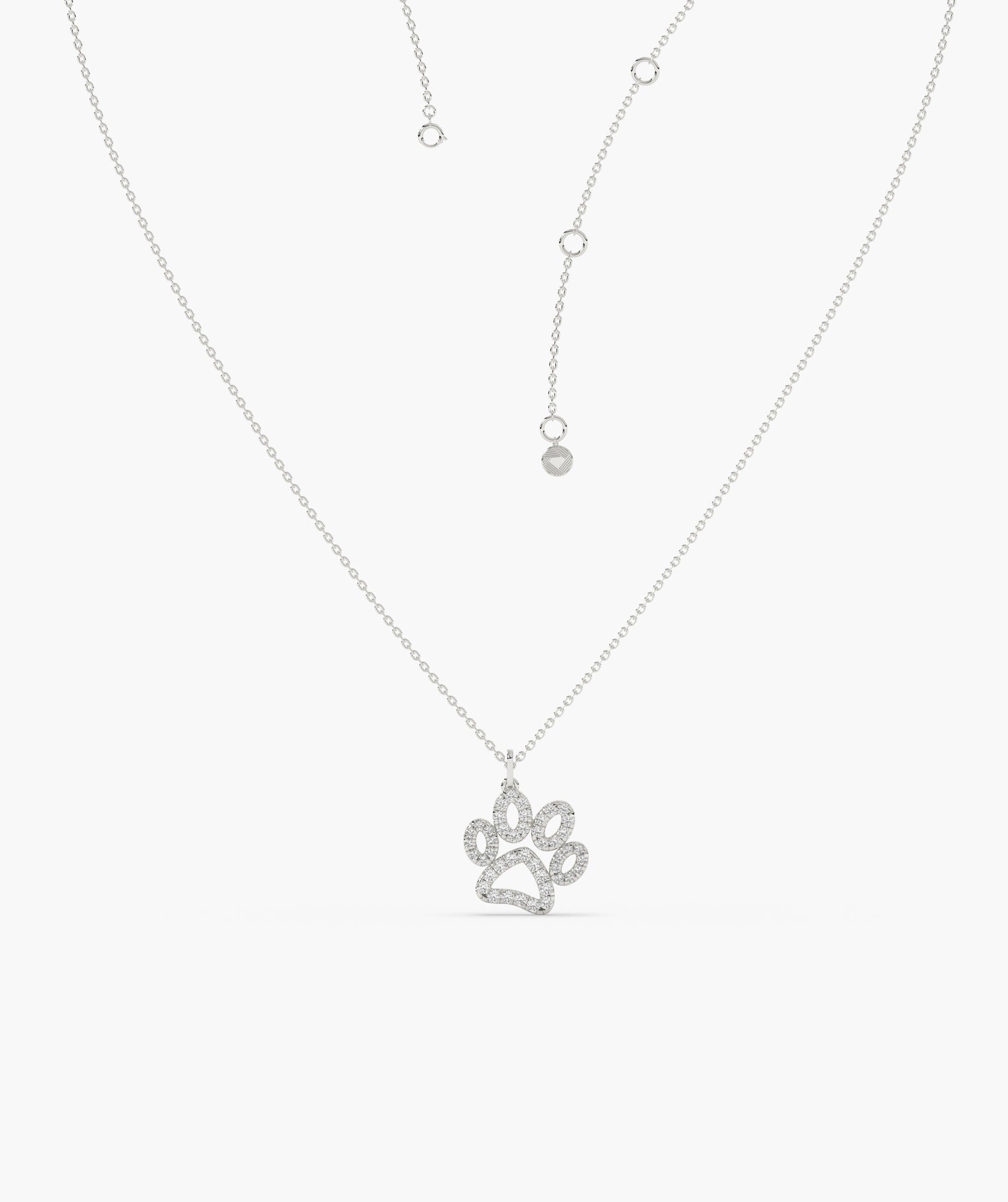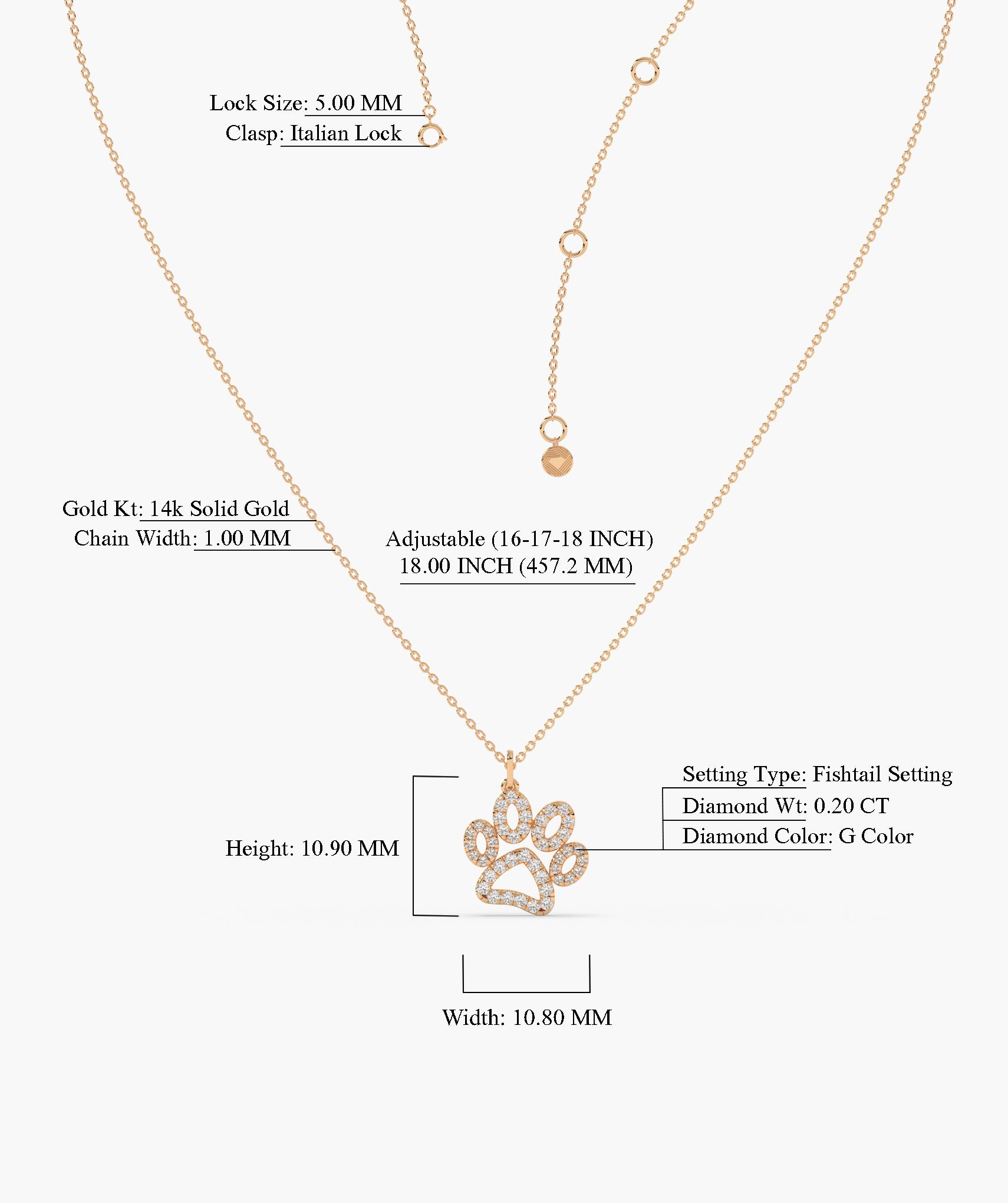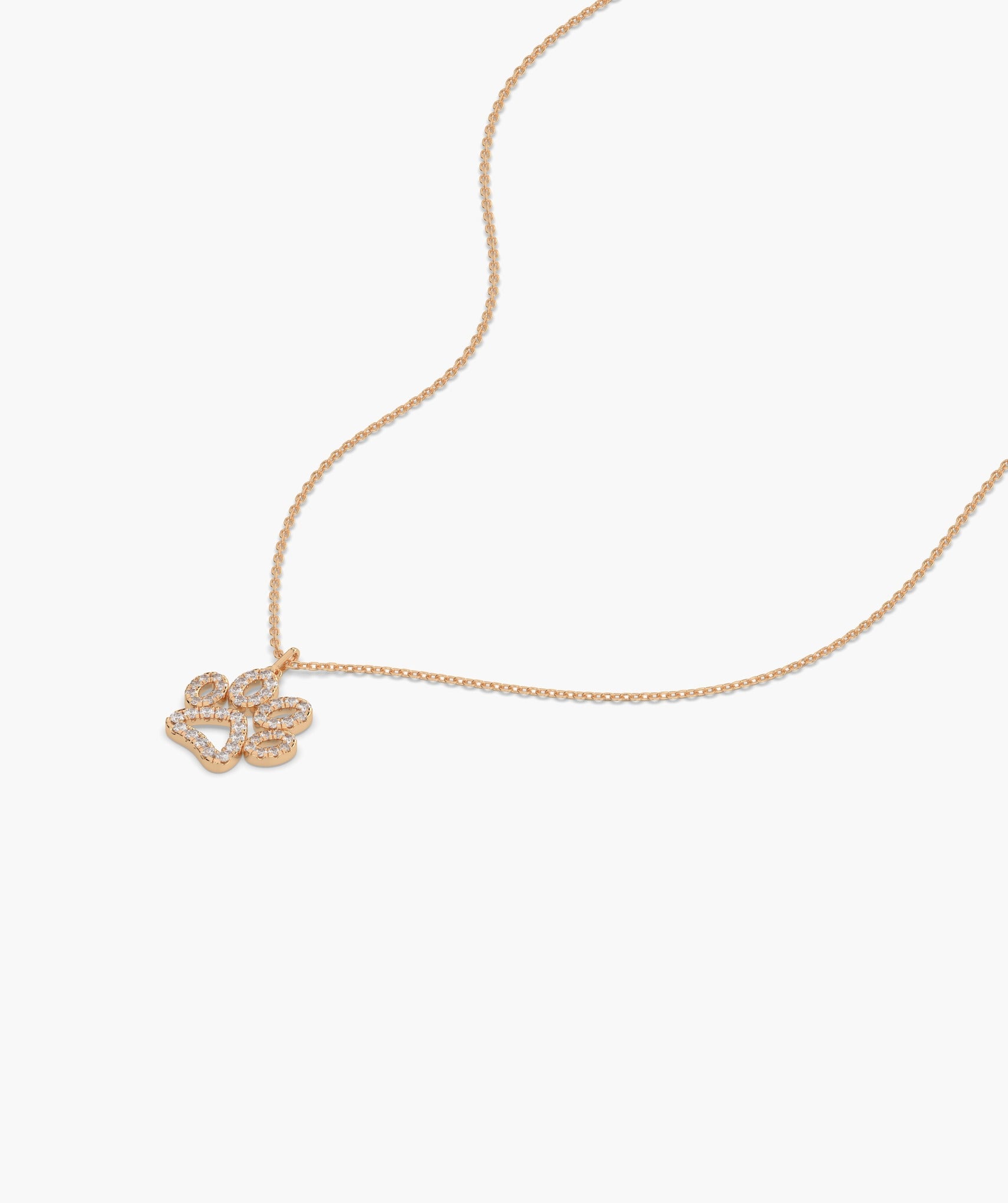 Unleash your love for pets with this adorable 14K solid gold necklace, featuring a paw design adorned with sparkling diamonds.