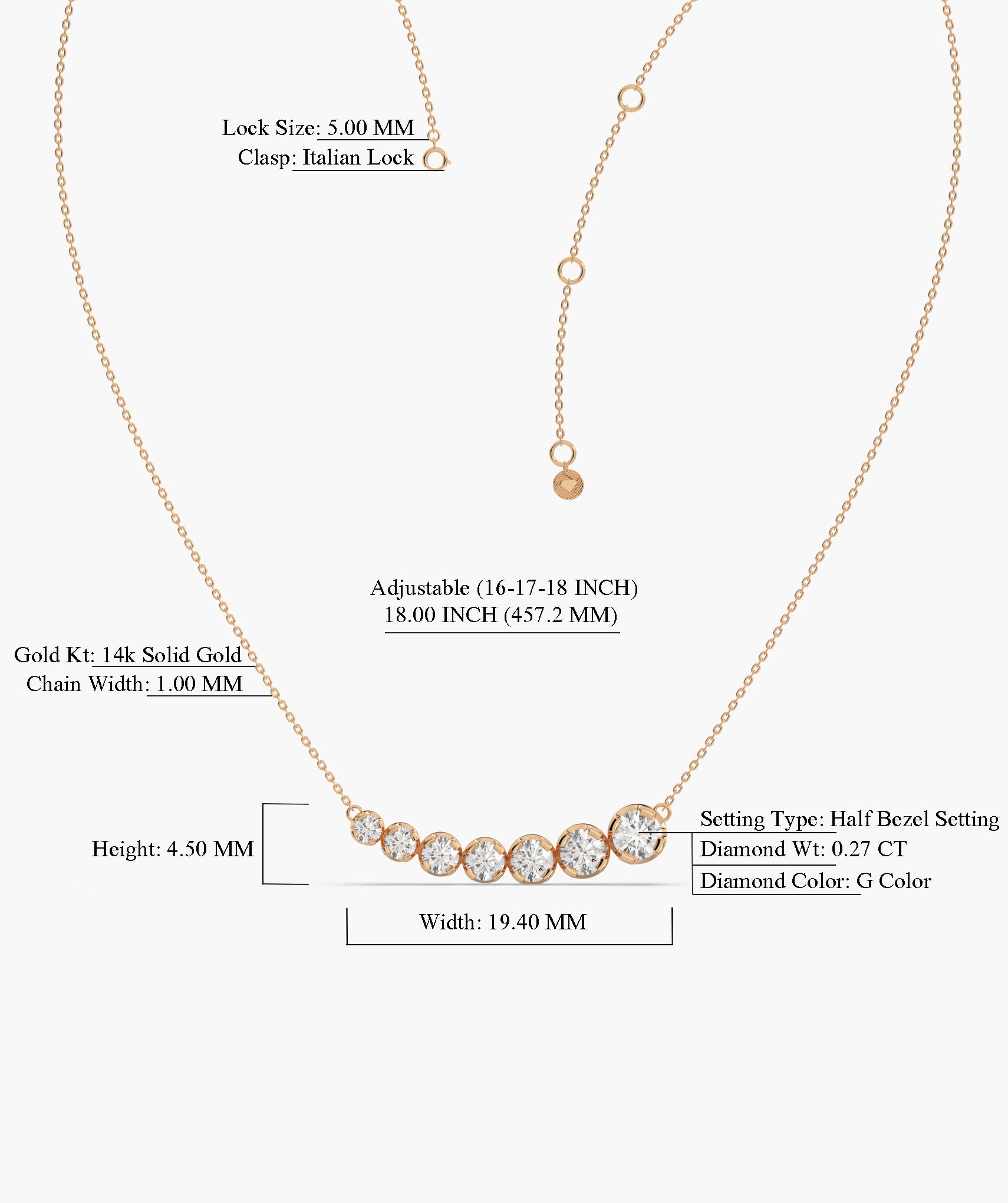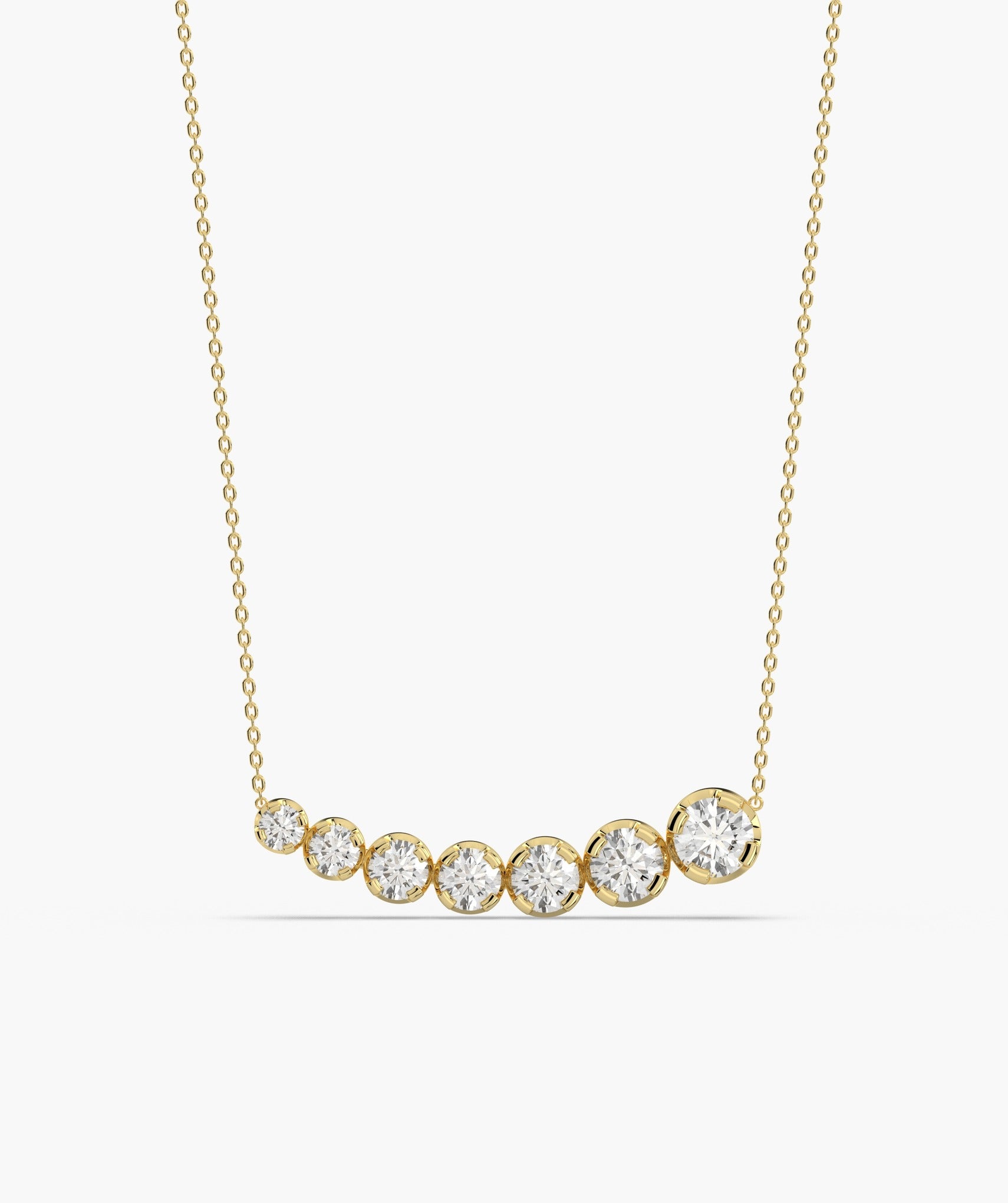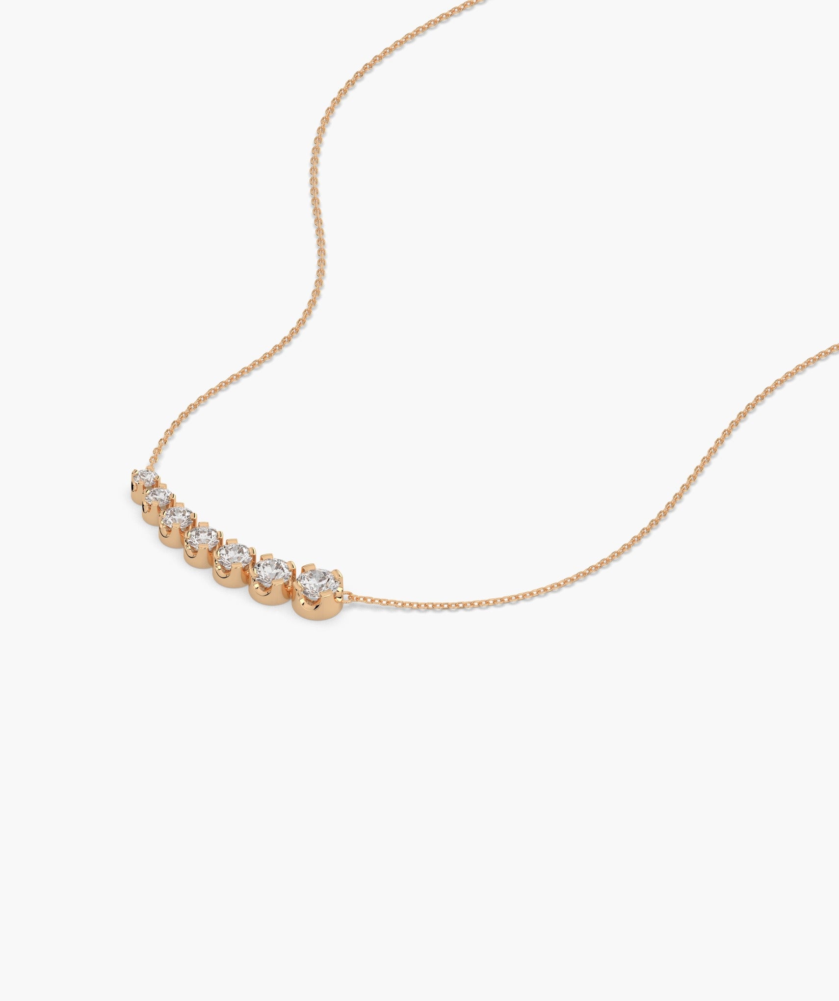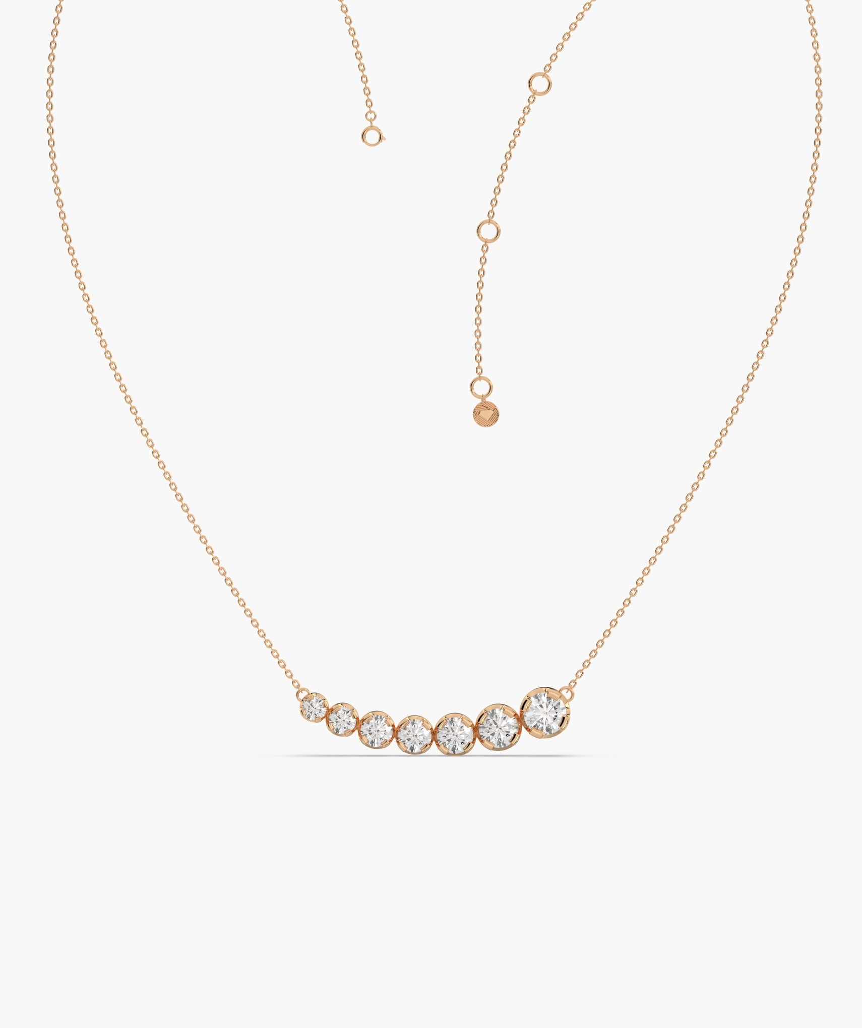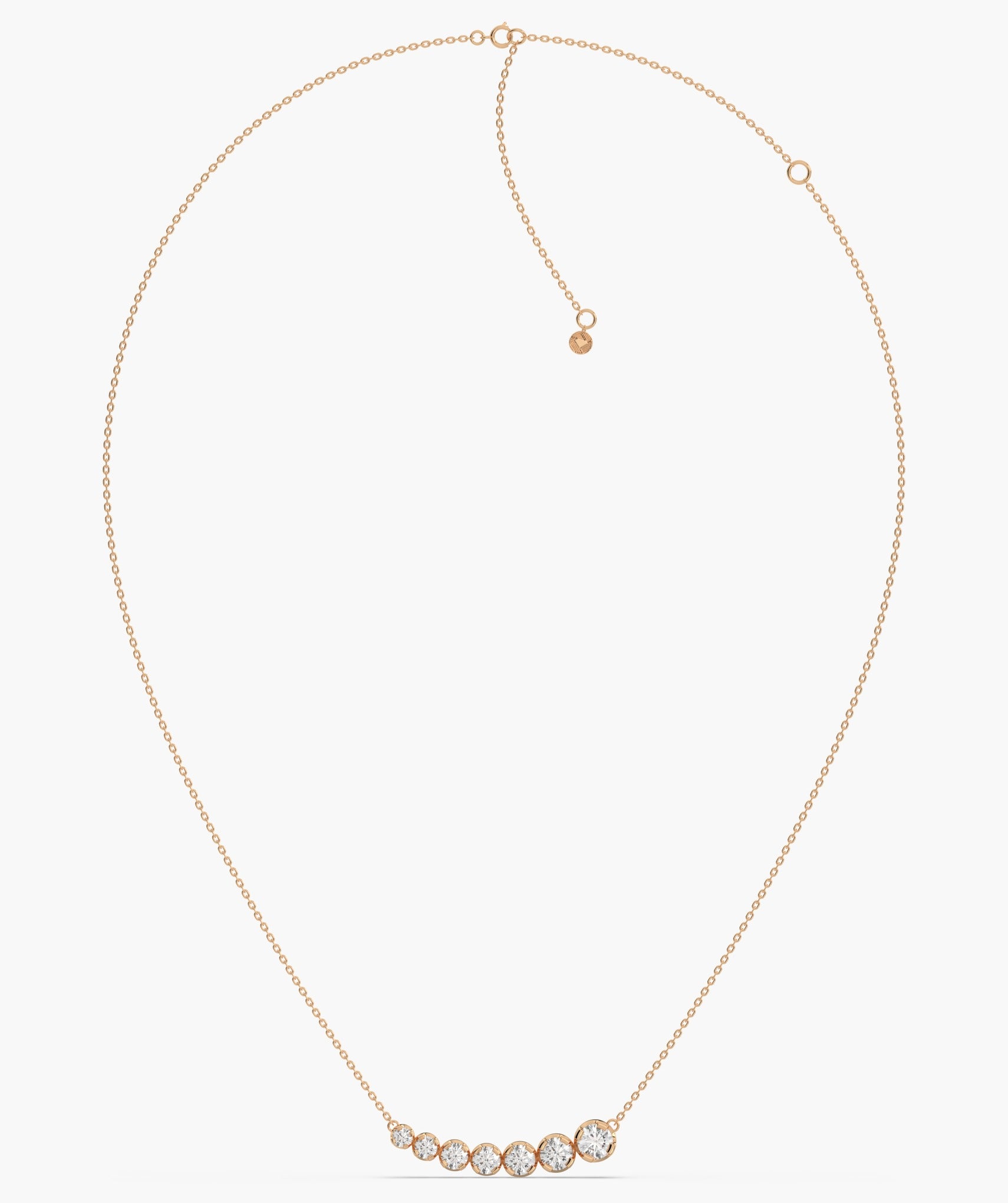 This elegant necklace features a row of bezel-set diamonds in a graceful graduating design, crafted in 14K rose gold. A modern yet timeless piece, perfect for everyday sparkle or layering with your favorite styles.