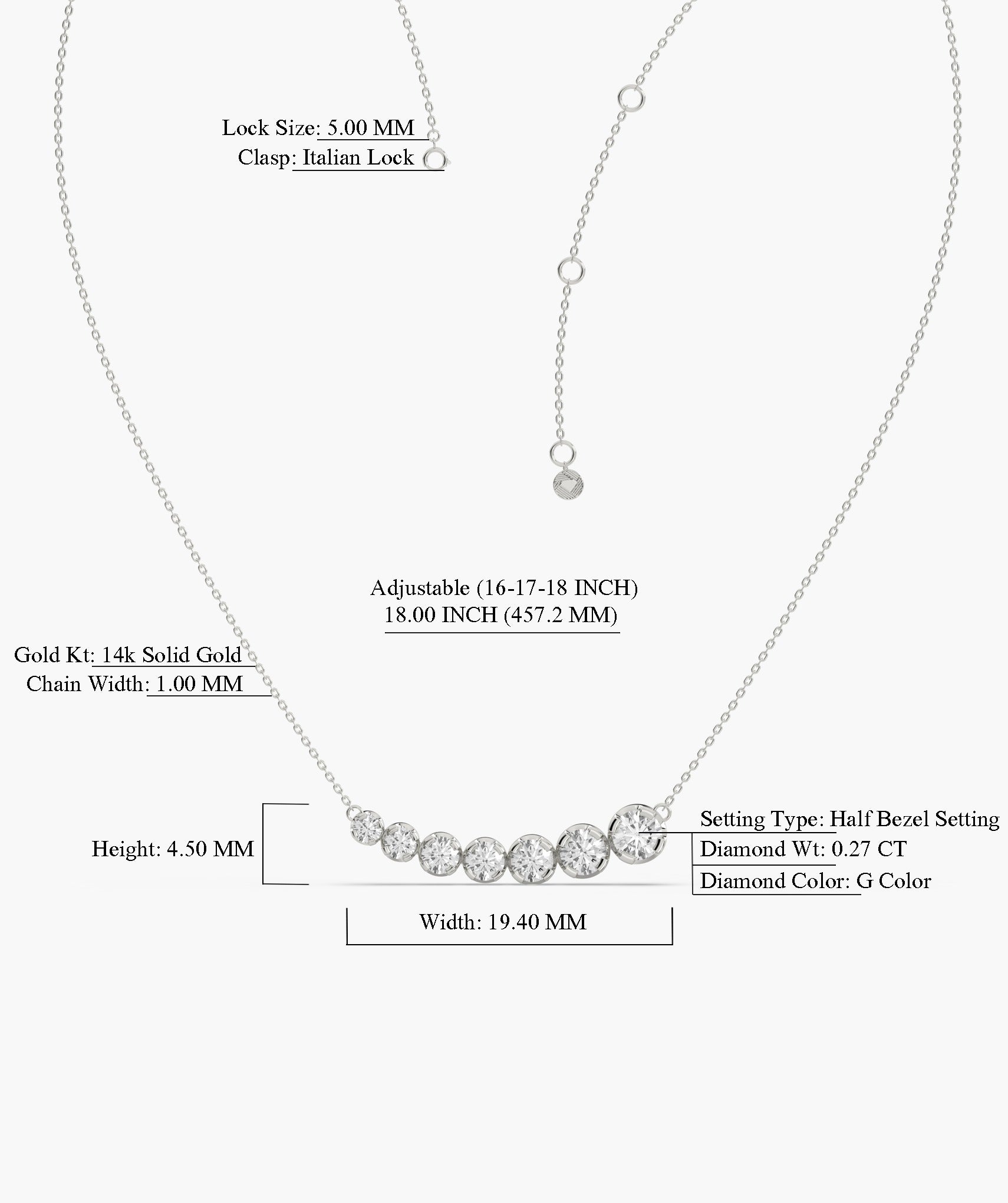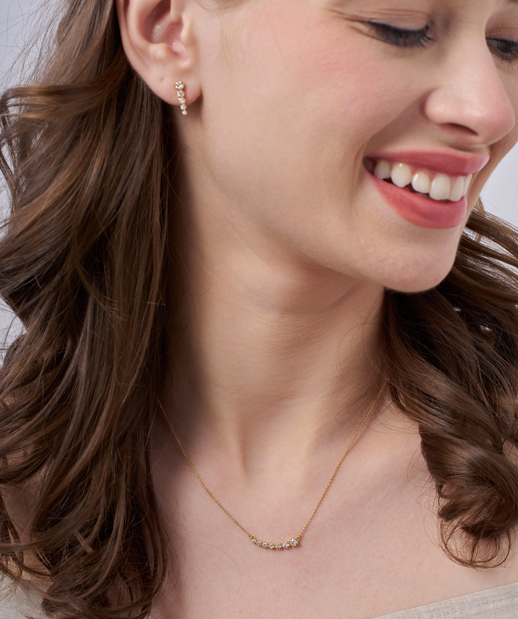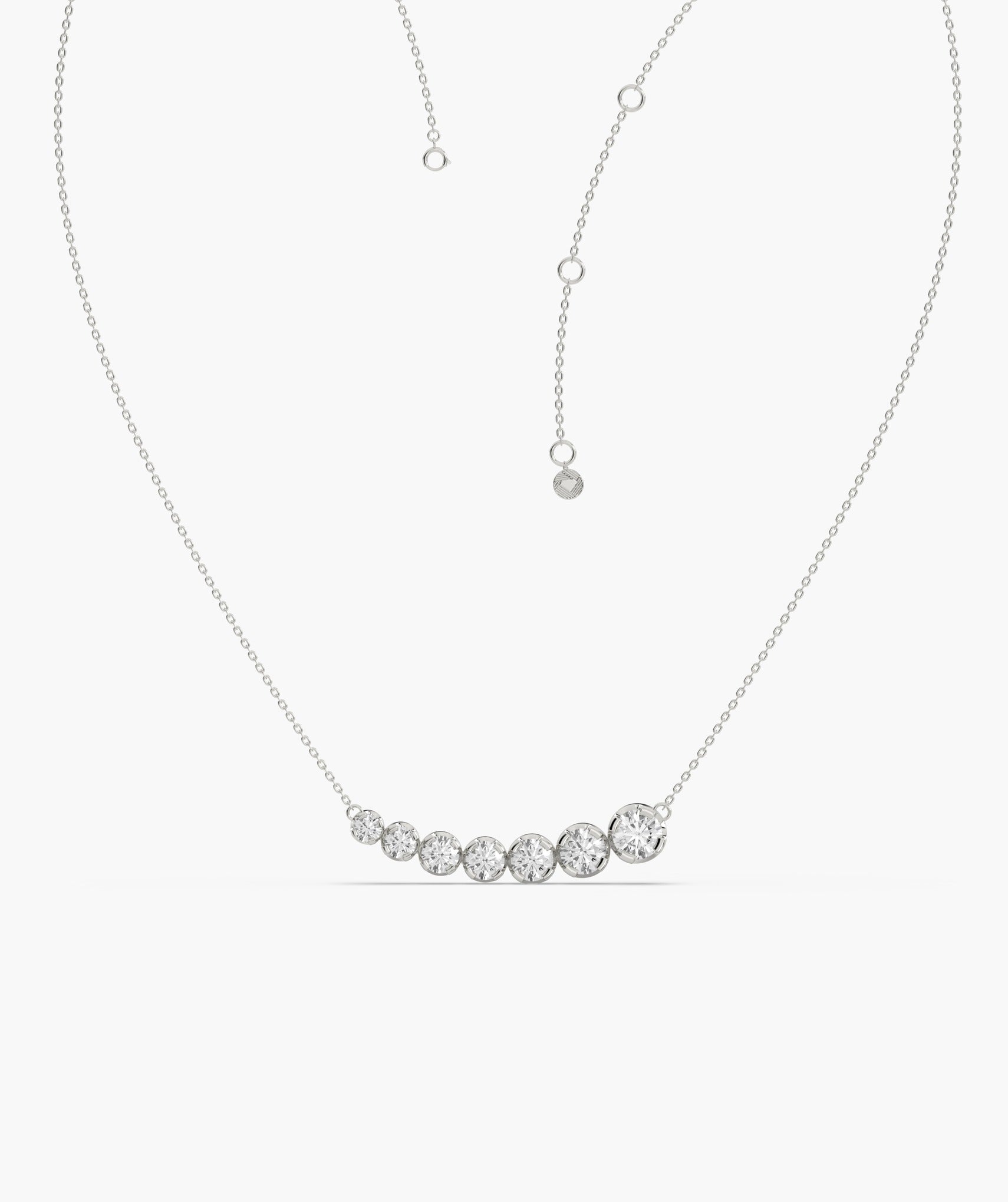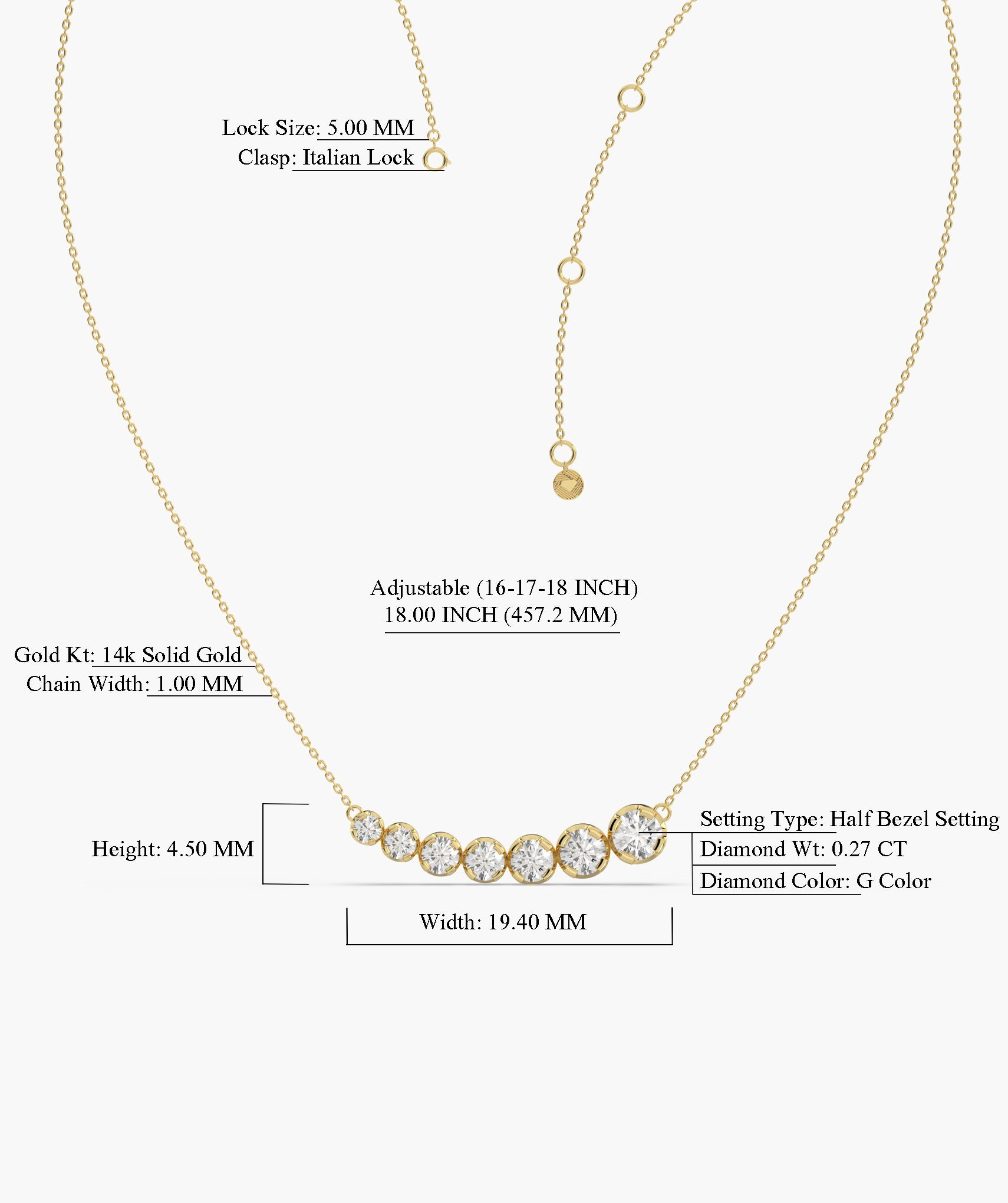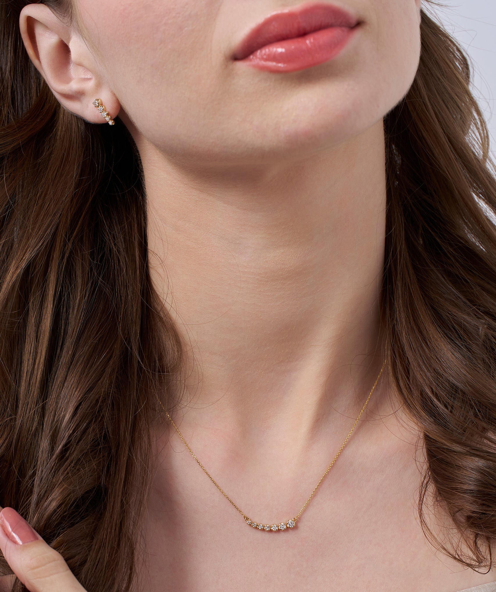 This elegant necklace features a row of bezel-set diamonds in a graceful graduating design, crafted in 14K rose gold. A modern yet timeless piece, perfect for everyday sparkle or layering with your favorite styles.
