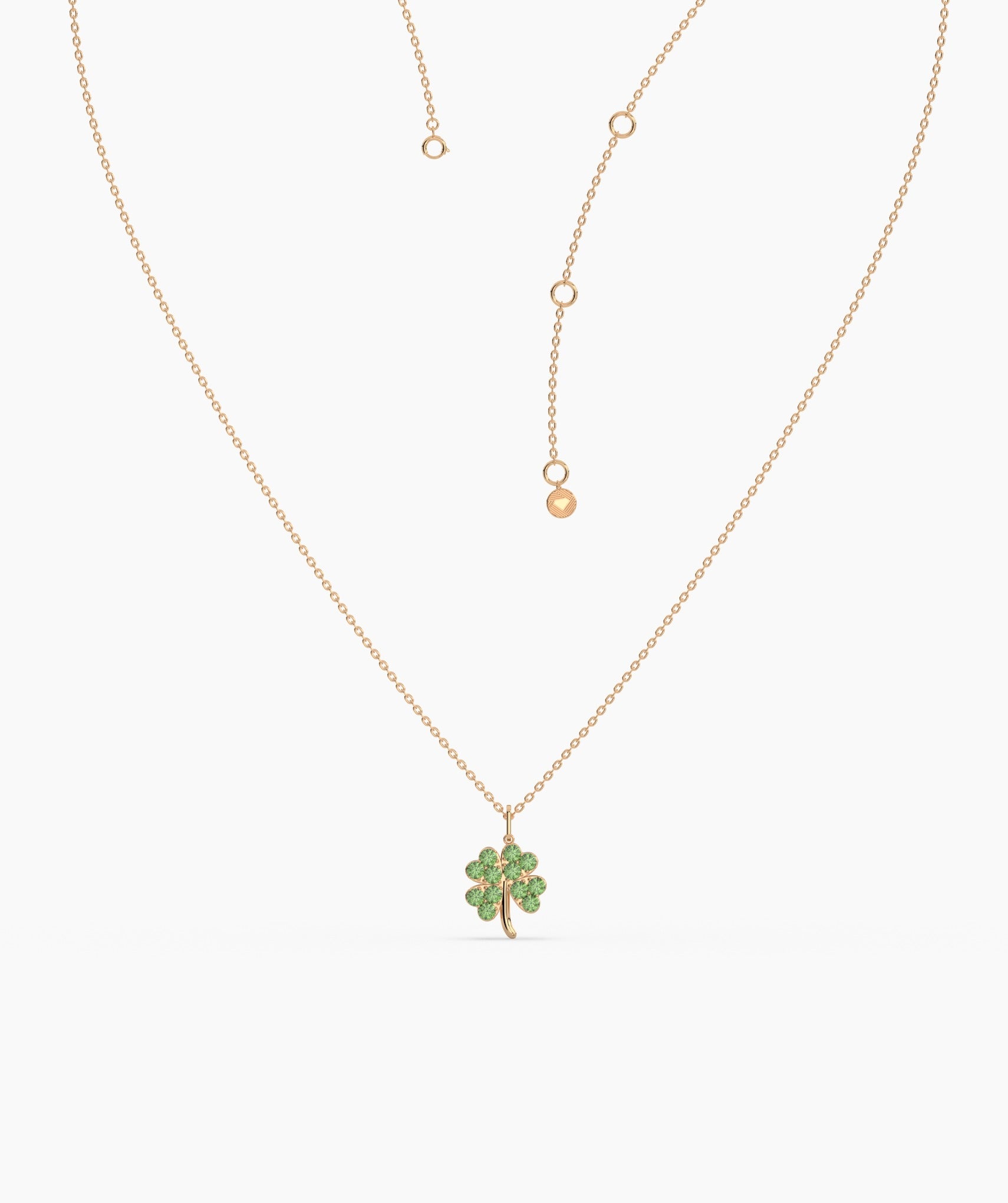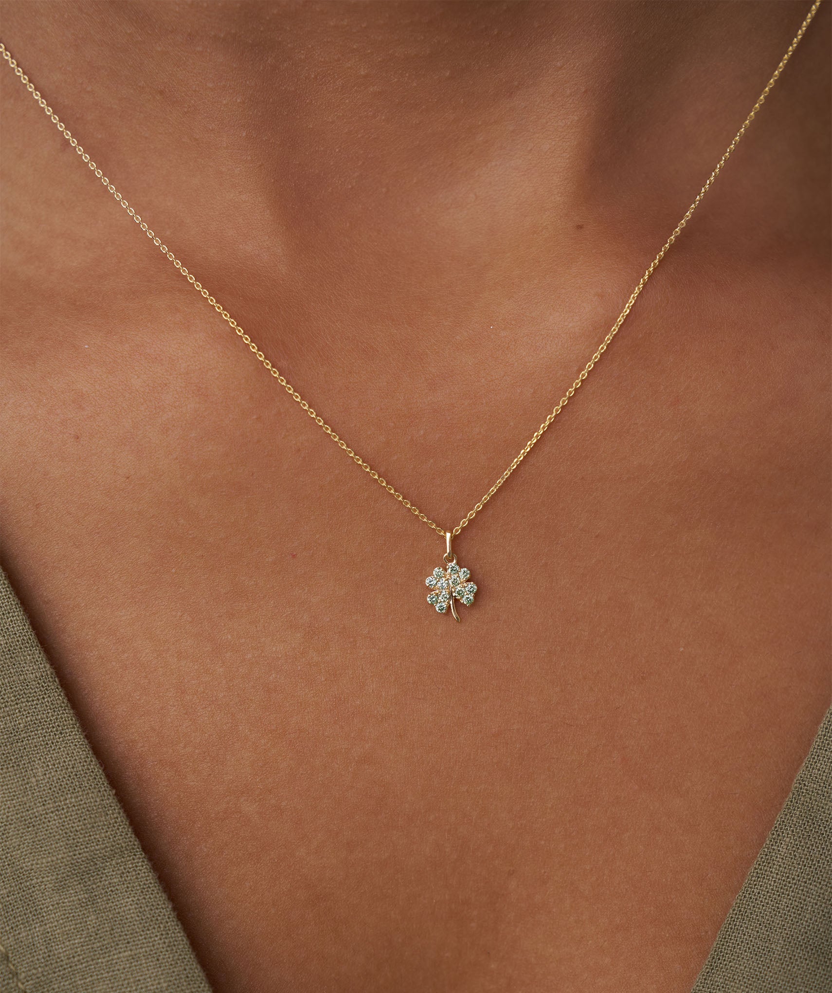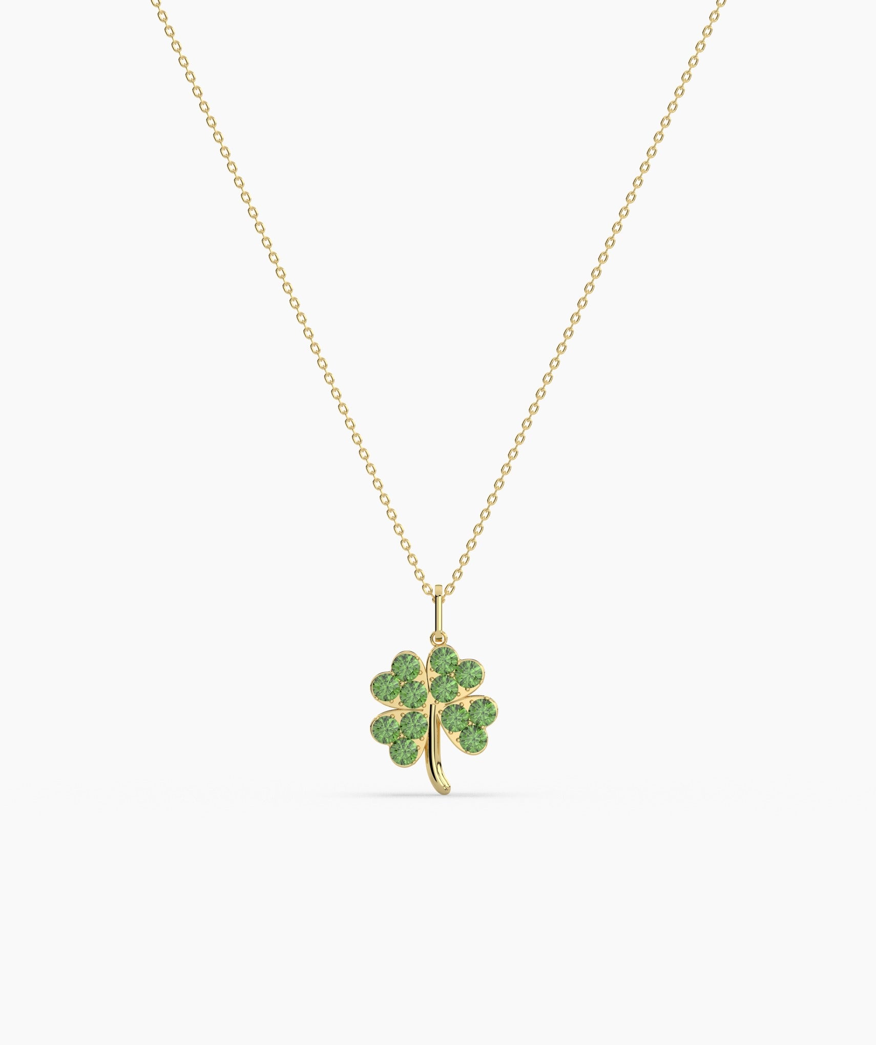Celebrate life’s little blessings in style—this gleaming 14K gold necklace features a sparkling, green-studded four-leaf clover.