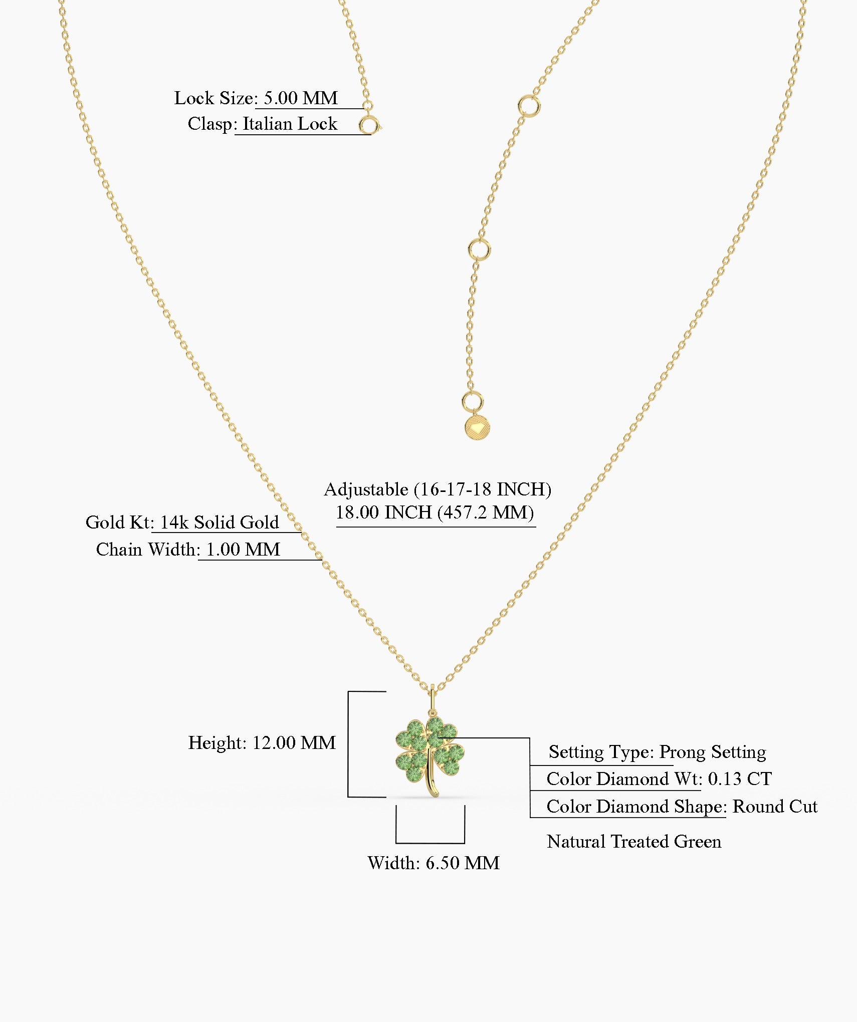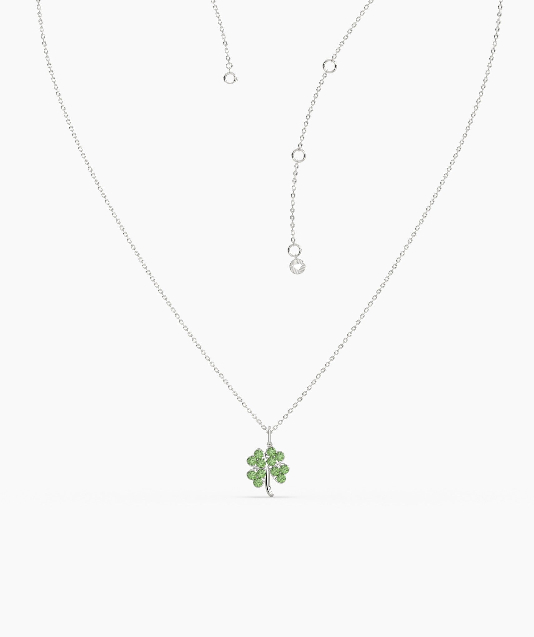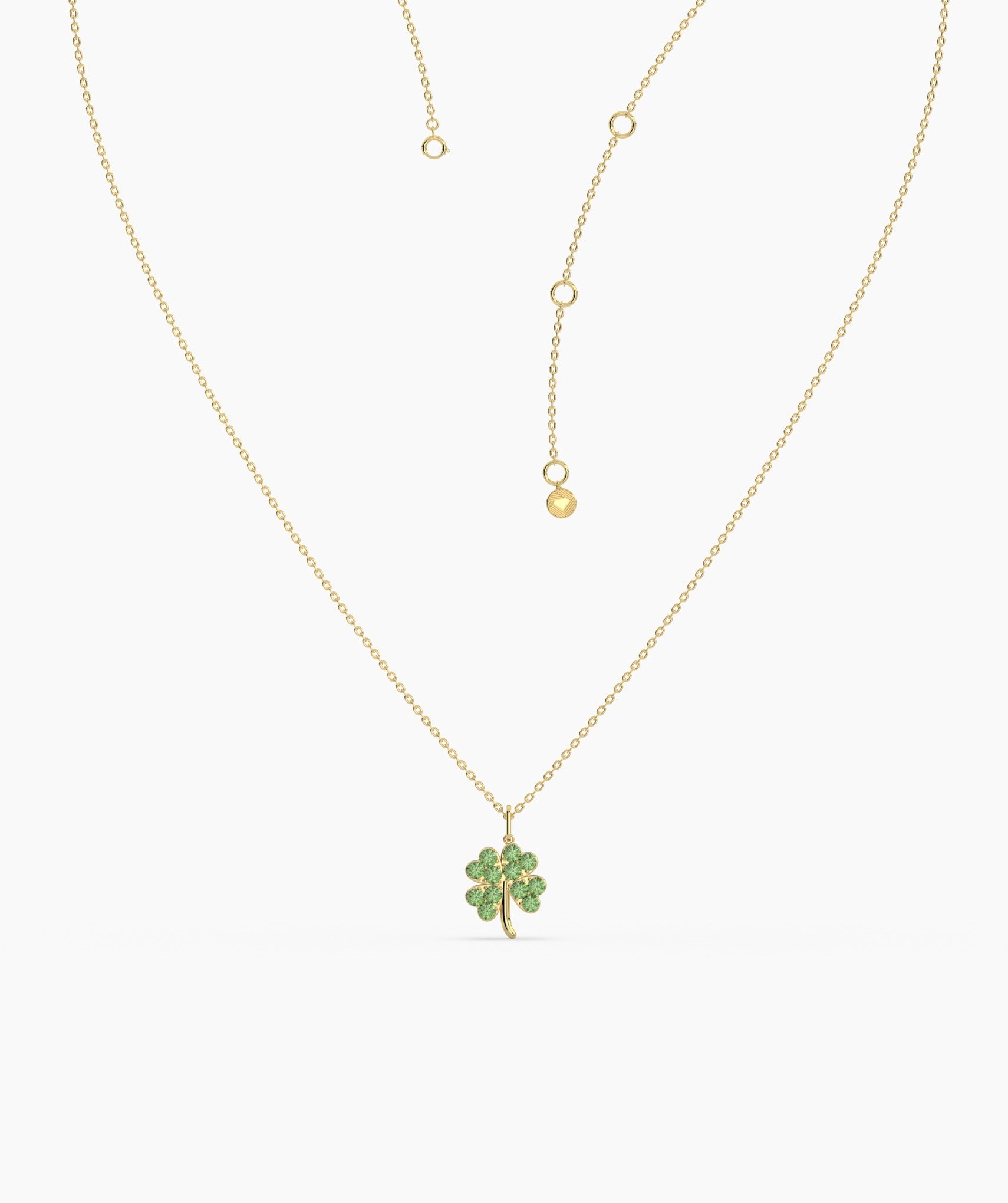Celebrate life’s little blessings in style—this gleaming 14K gold necklace features a sparkling, green-studded four-leaf clover.