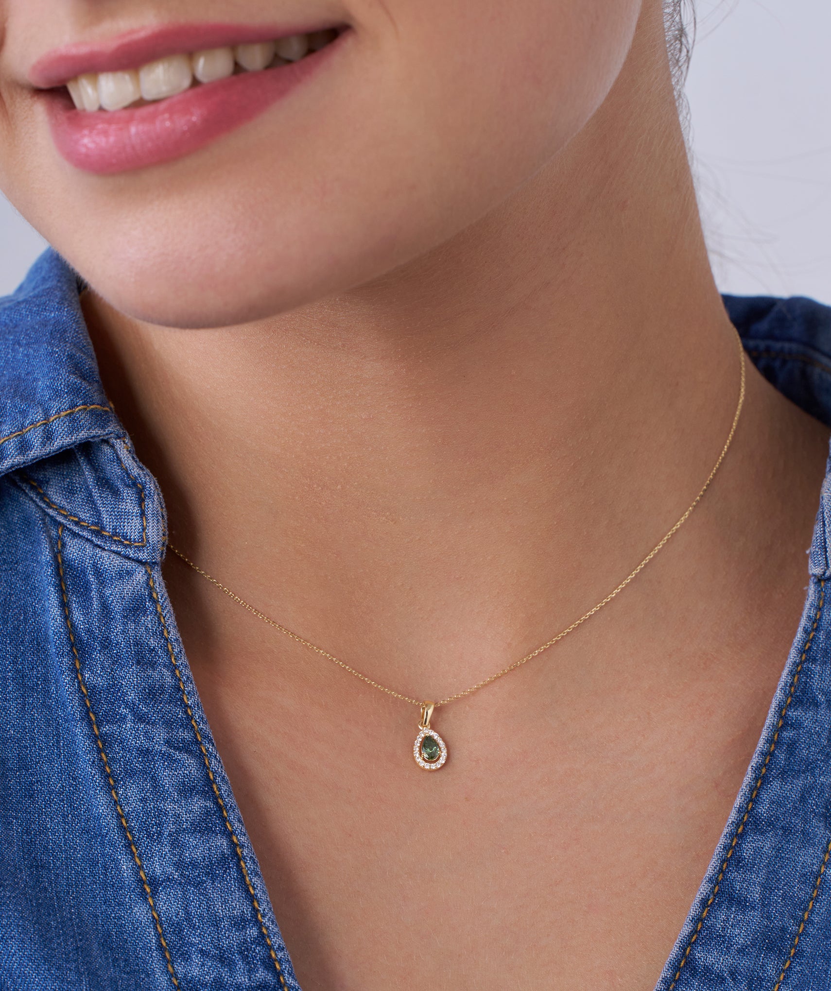 Pear-Shaped Green Gem NecklaceRegular price $634Regular price$420Sale price $63414K Yellow Gold