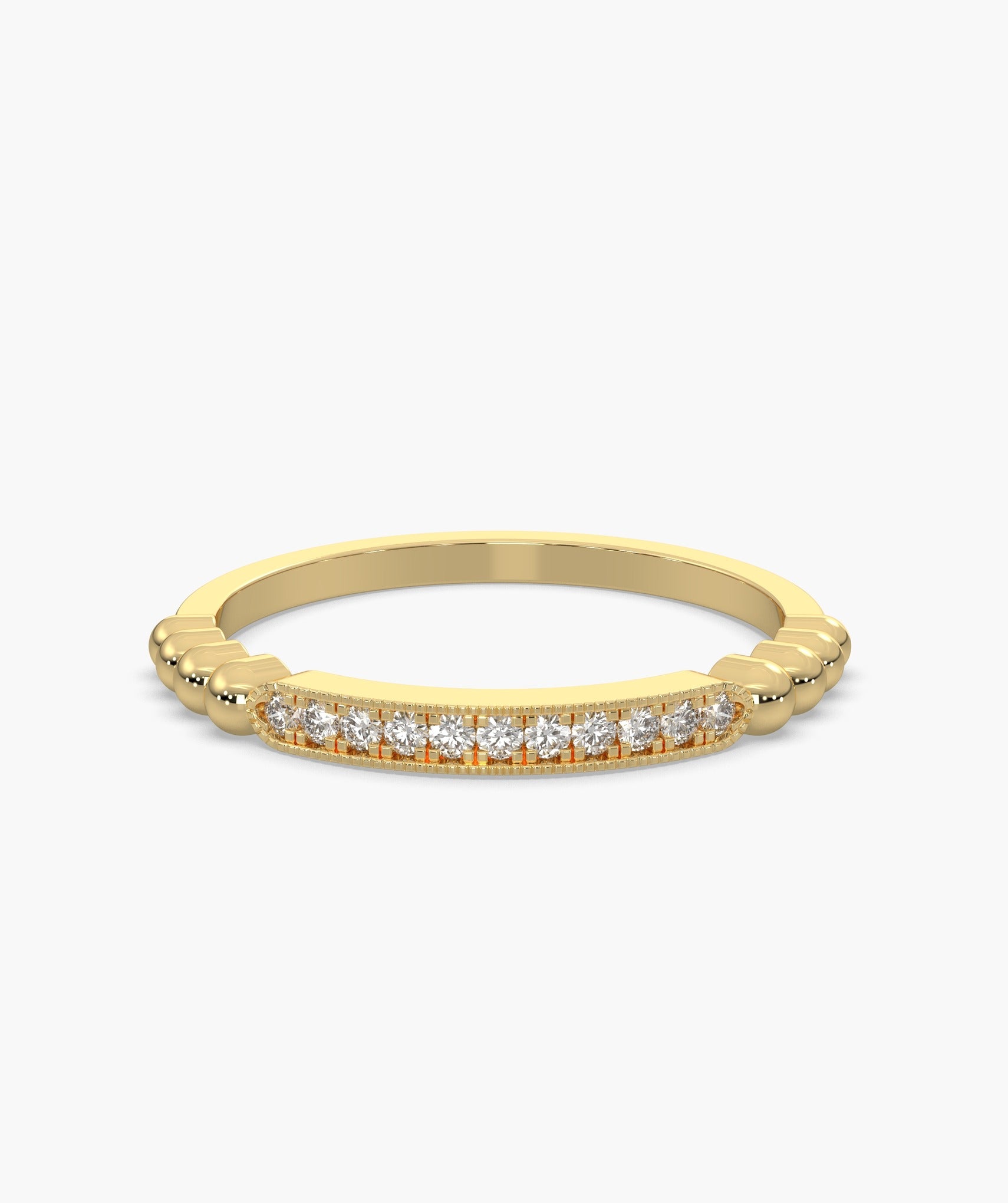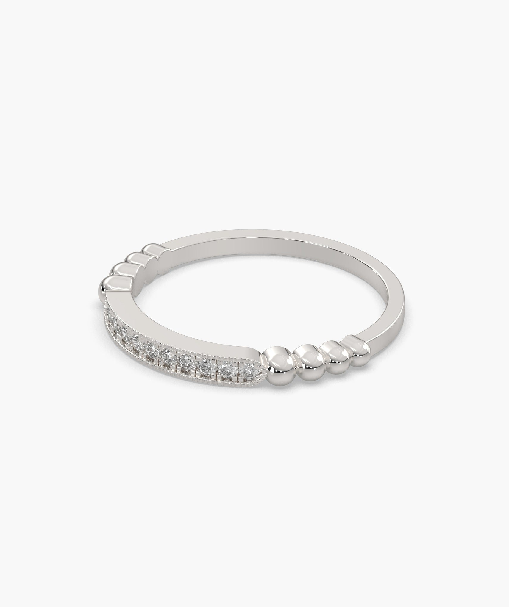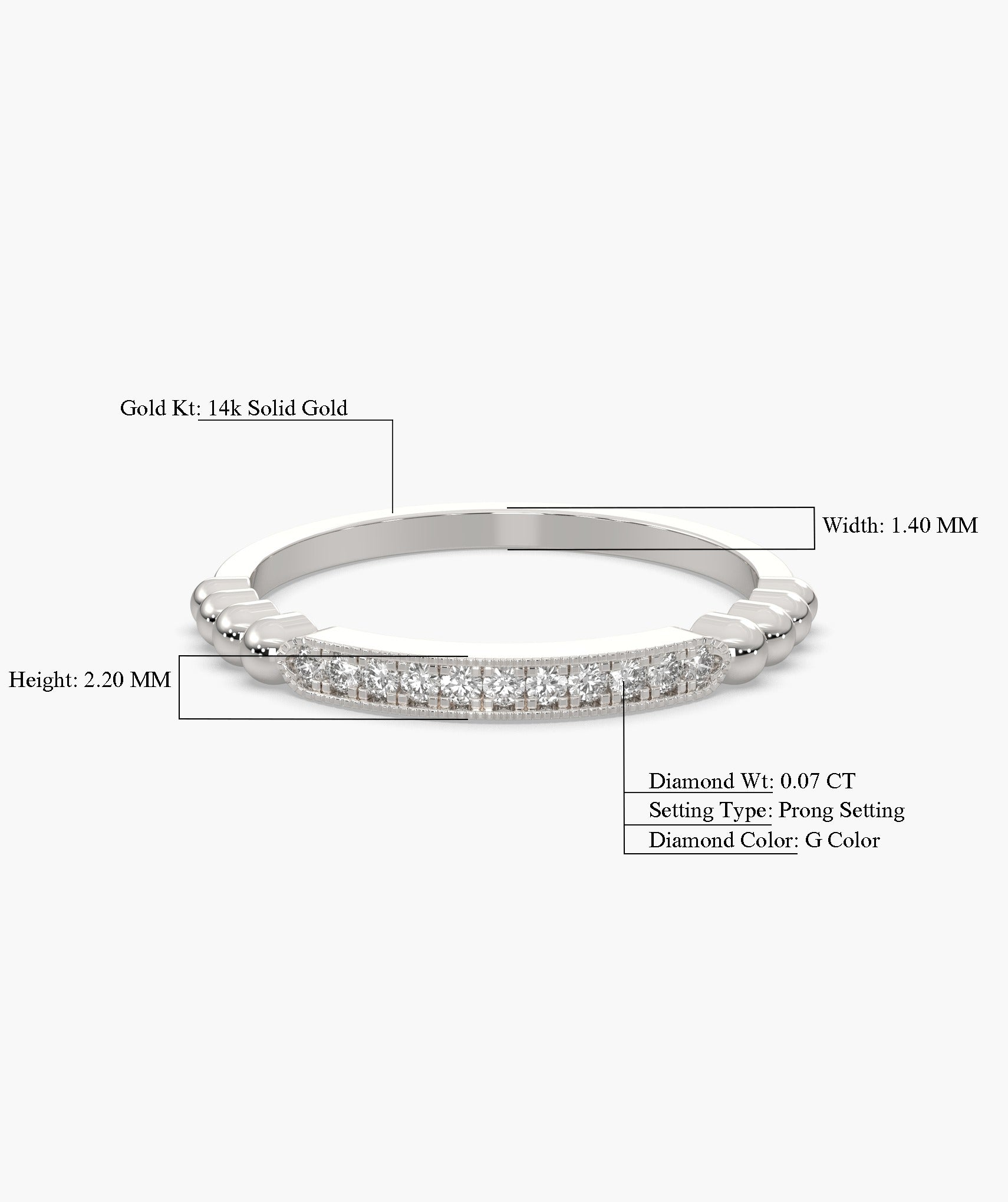 14k white gold ring, diamond half eternity band, beaded gold ring, stacking diamond ring, minimalist wedding band, delicate gold band, dainty diamond ring, fine jewelry, anniversary ring, elegant stackable ring
