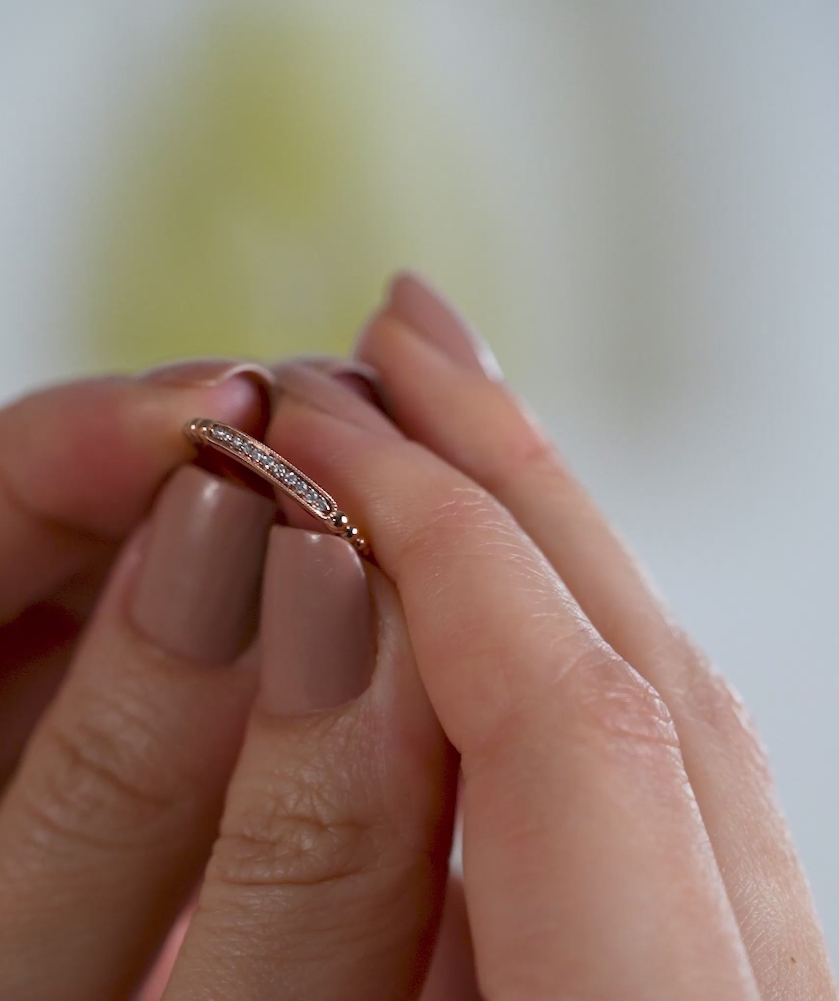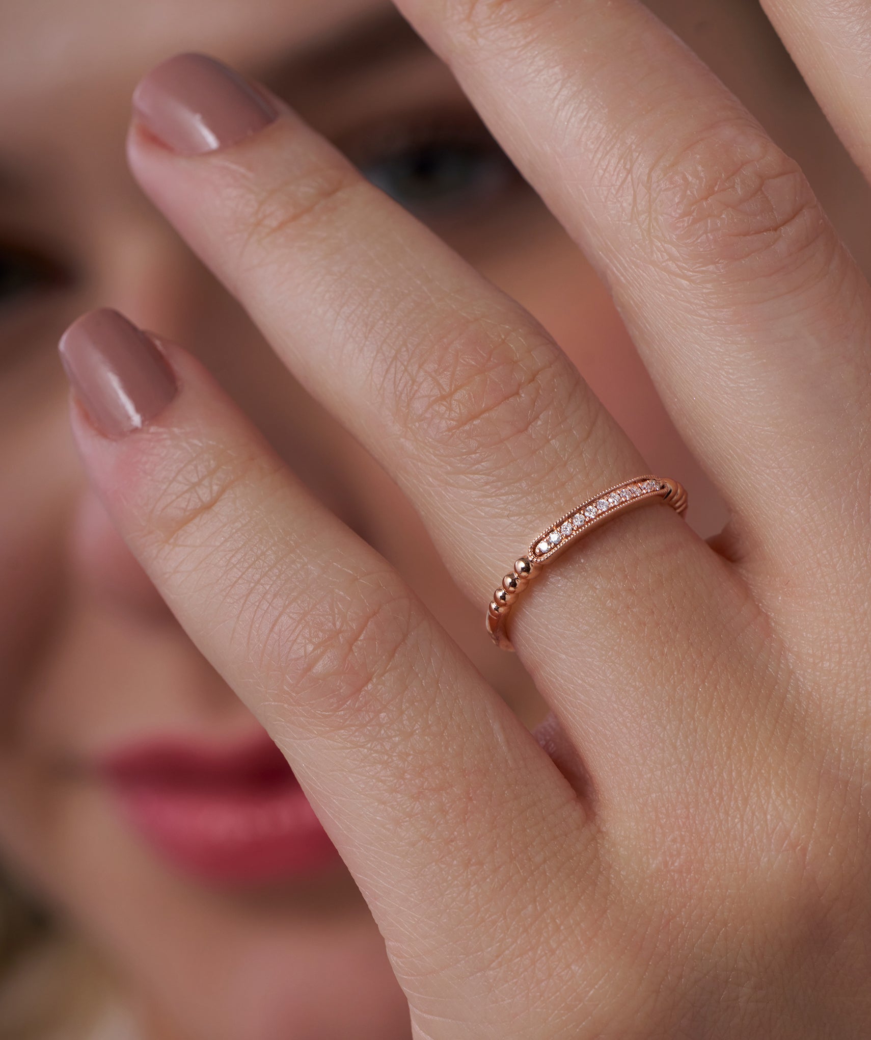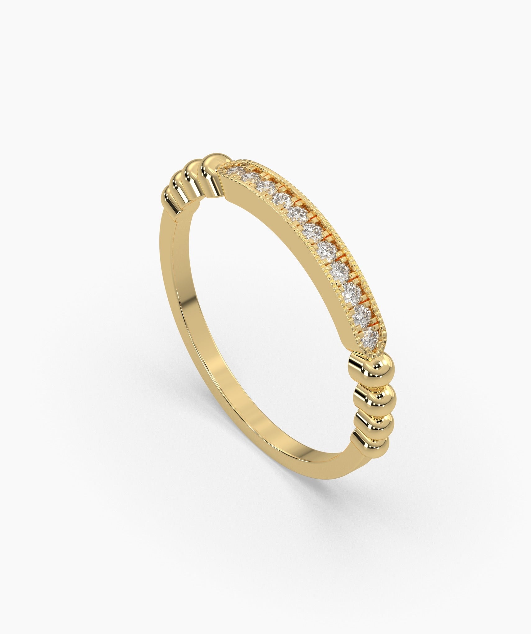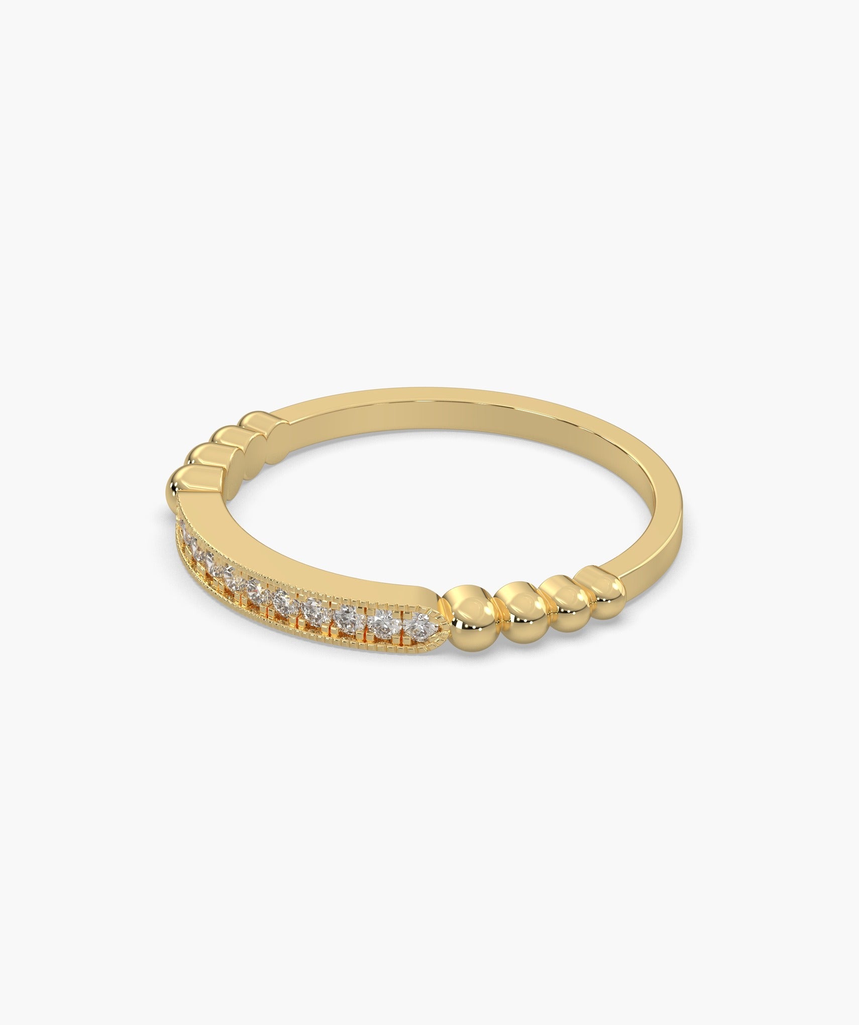14k white gold ring, diamond half eternity band, beaded gold ring, stacking diamond ring, minimalist wedding band, delicate gold band, dainty diamond ring, fine jewelry, anniversary ring, elegant stackable ring
