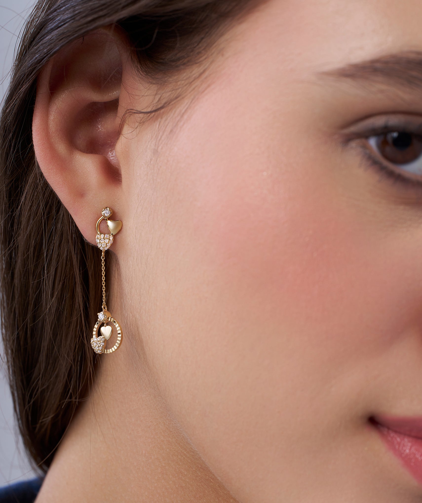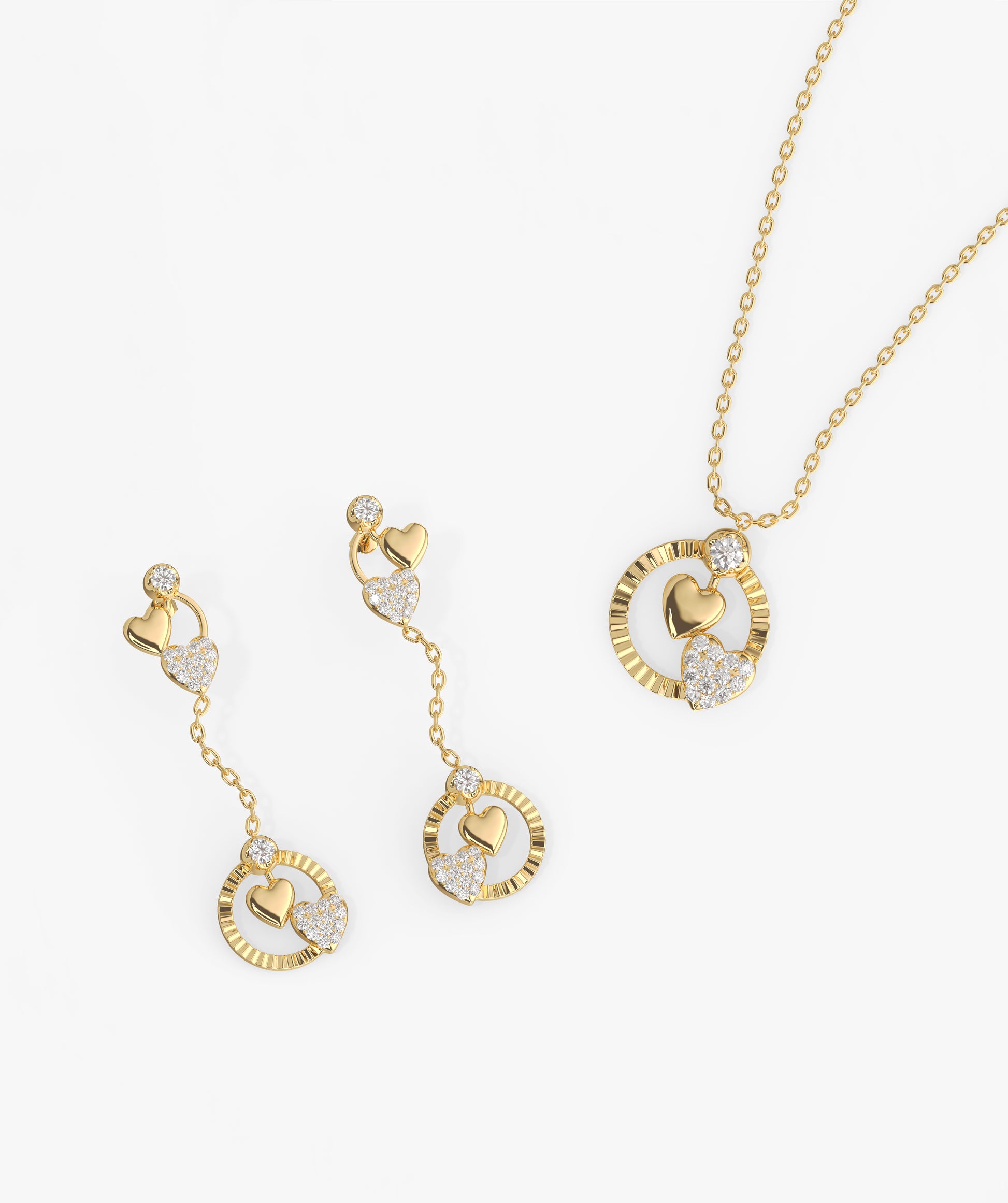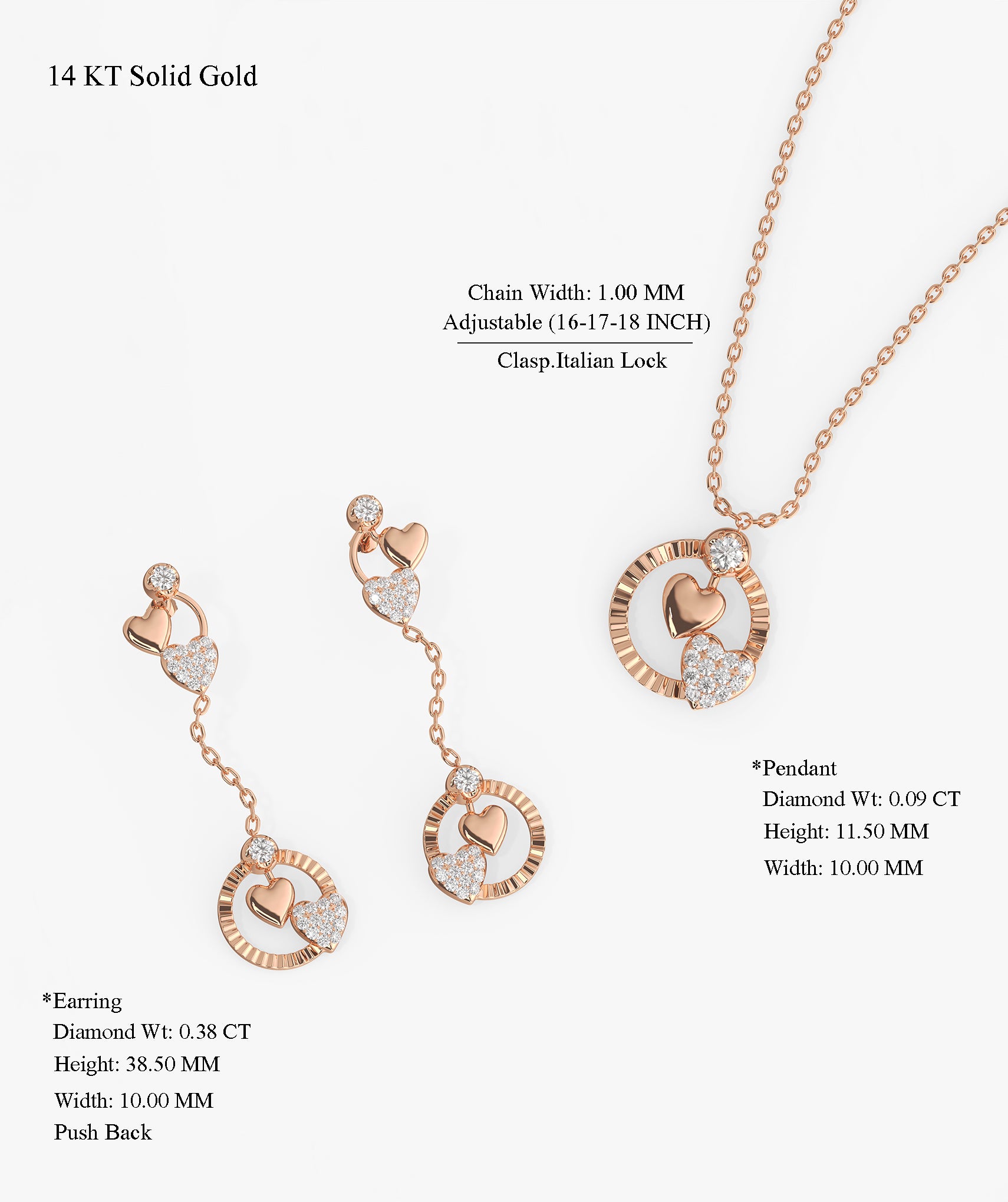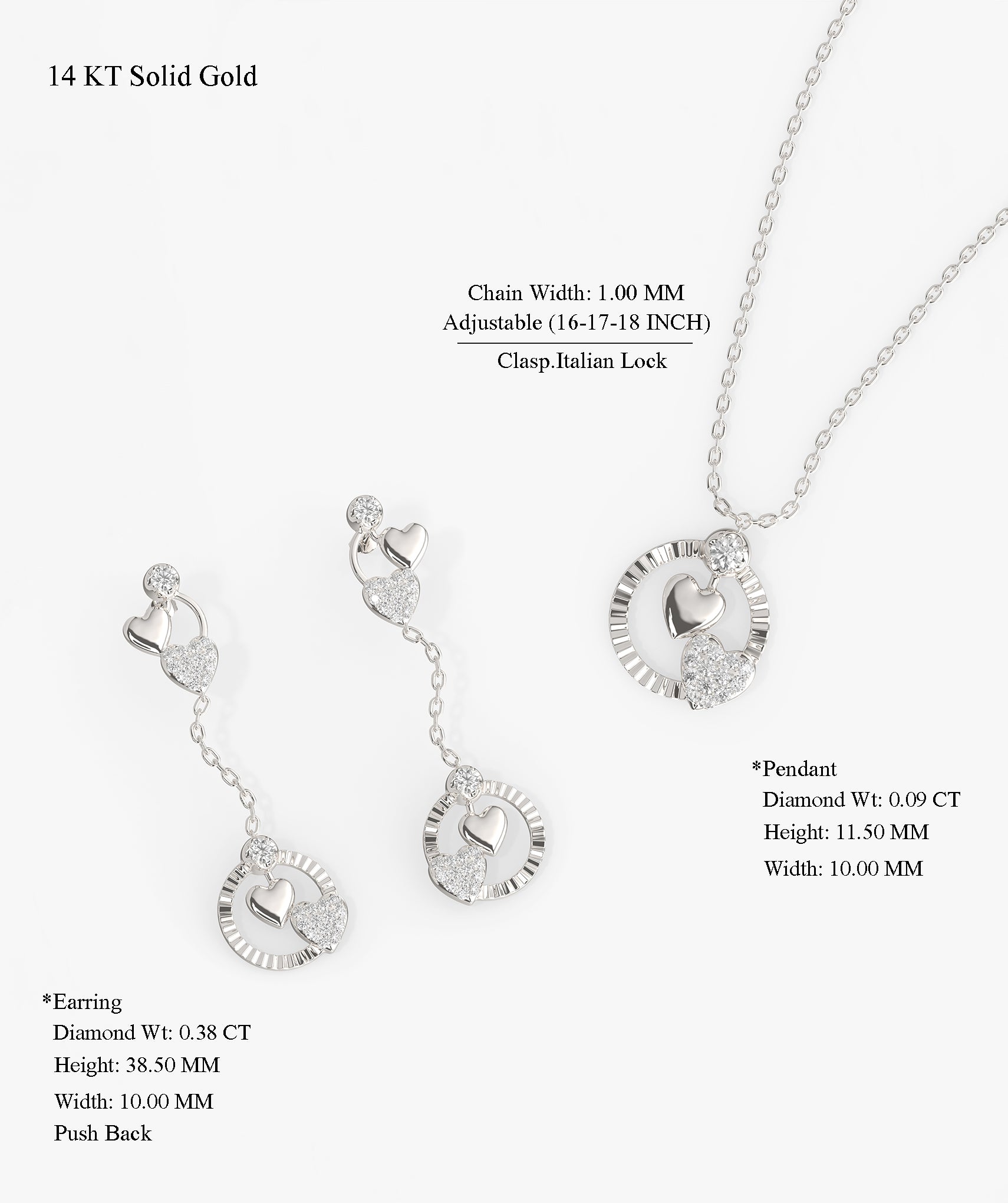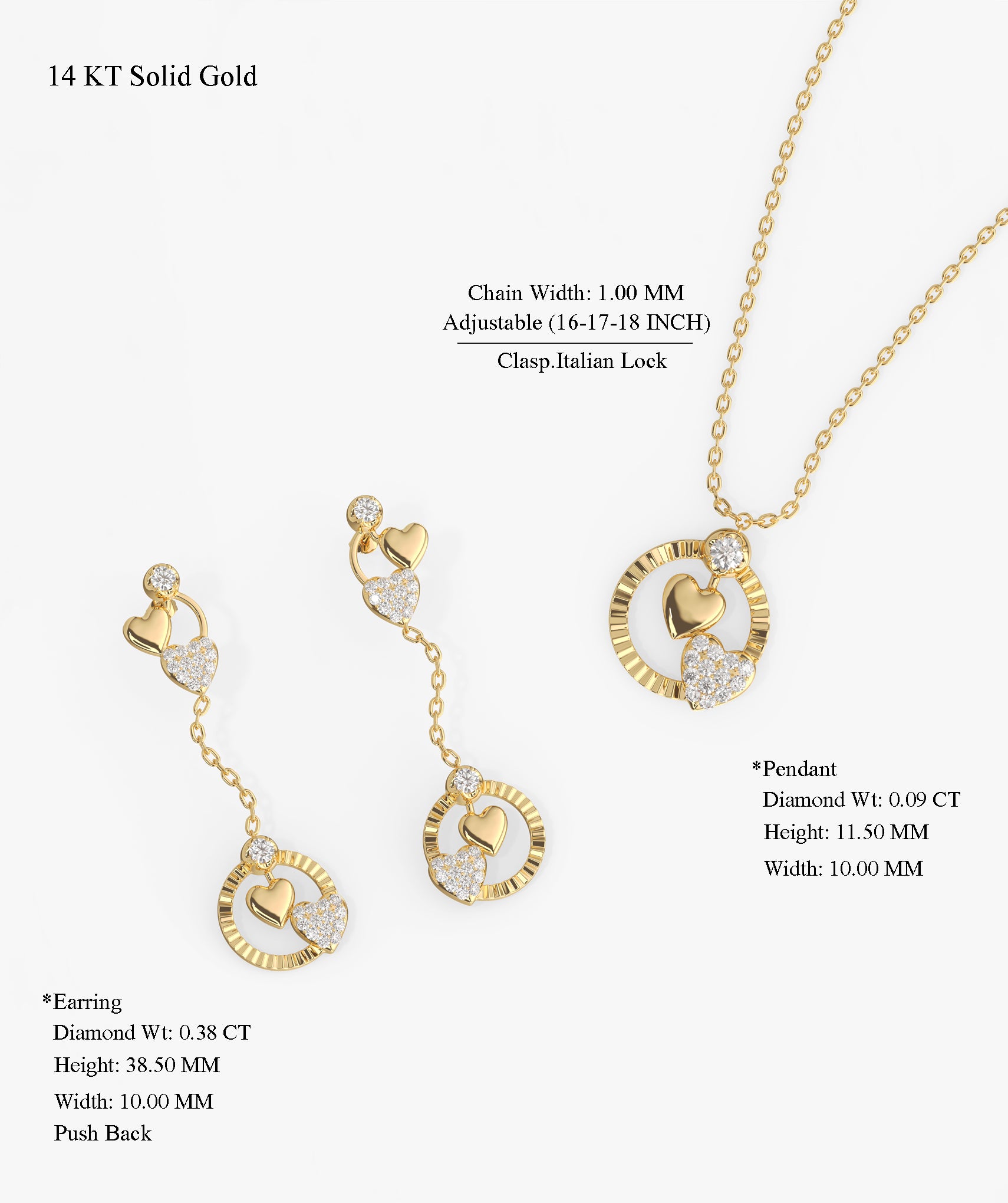 Celebrate love in every detail with this dainty 14k gold jewelry set, featuring heart charms and natural diamonds. The adjustable necklace and drop earrings are handcrafted to add minimalist sparkle to your everyday moments or special occasions.