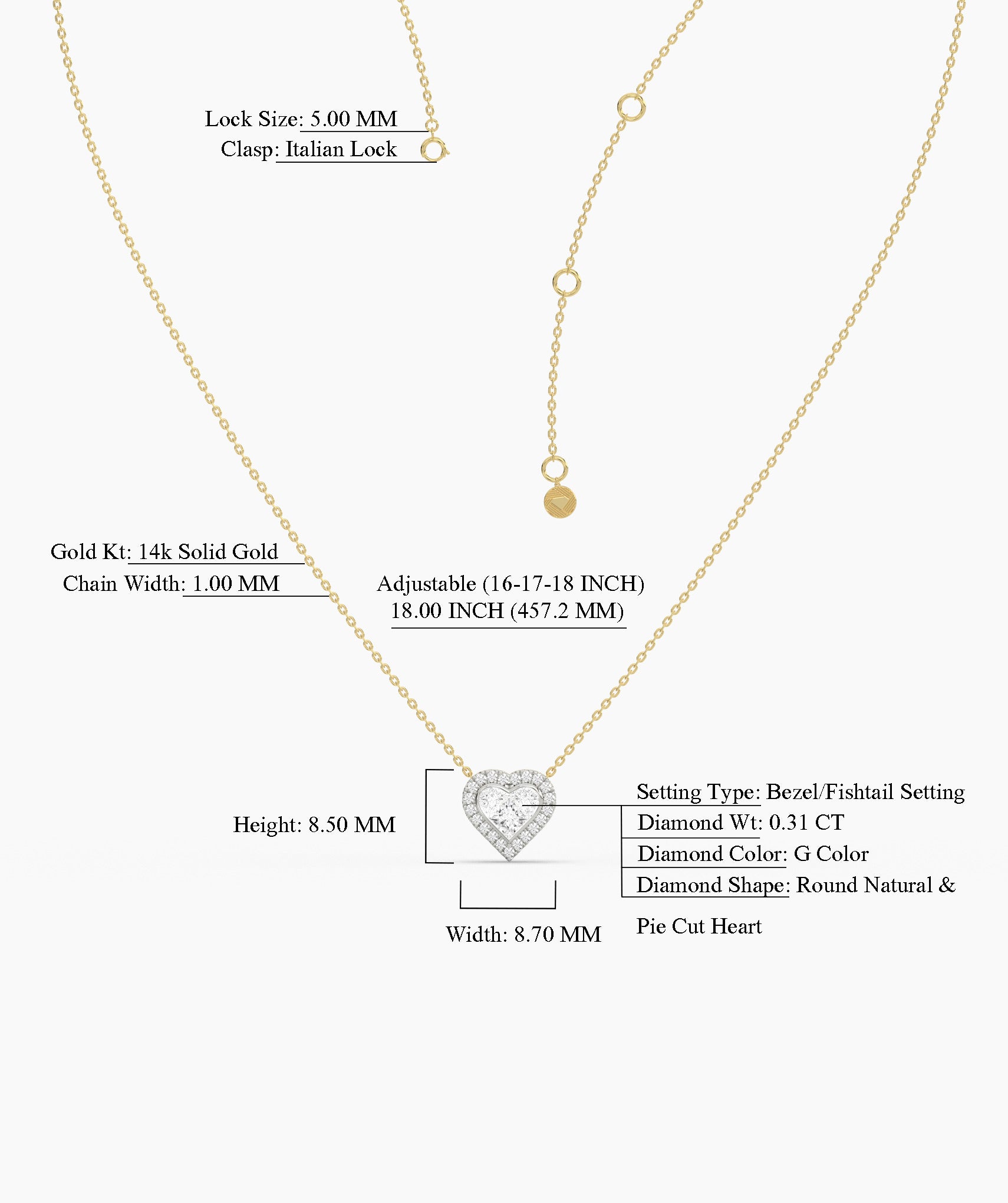 Wear your heart where everyone can see it but make it fashion. This pendant reimagines the traditional romantic motif with a sophisticated "pie-cut" center, arranging precision cut diamonds to mimic the depth and scale of a large solitaire heart. Rimmed by a sparkling halo of round natural diamonds, the 0.31-carat total weight design is held in a secure bezel fishtail setting that keeps the profile sleek and snag-free. It suspends from a 1mm cable chain that easily adjusts to 16, 17, or 18 inches, perfect for nestling into a layered stack or wearing solo as a sweet statement. Crafted in 14K solid gold, it is a daily reminder of self-love that feels cool, not cliché. Available in yellow, white, and rose gold to suit your vibe.