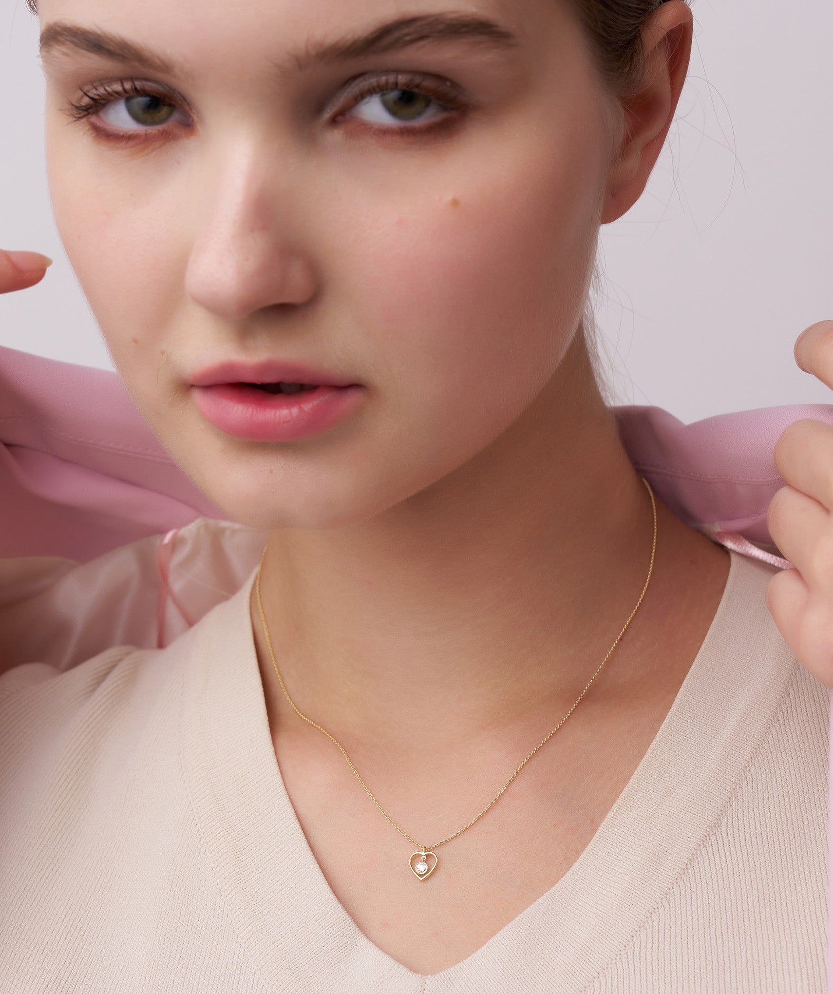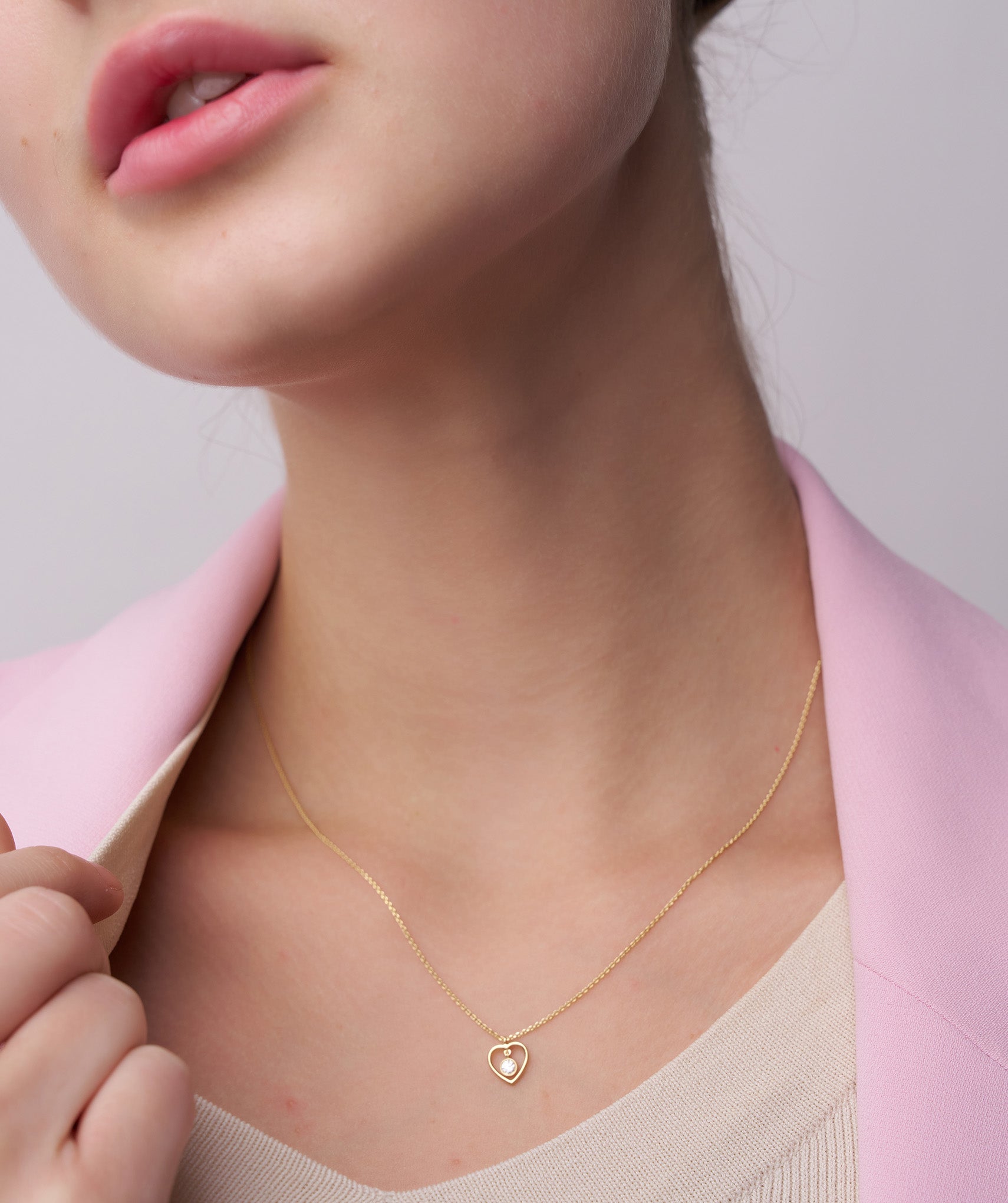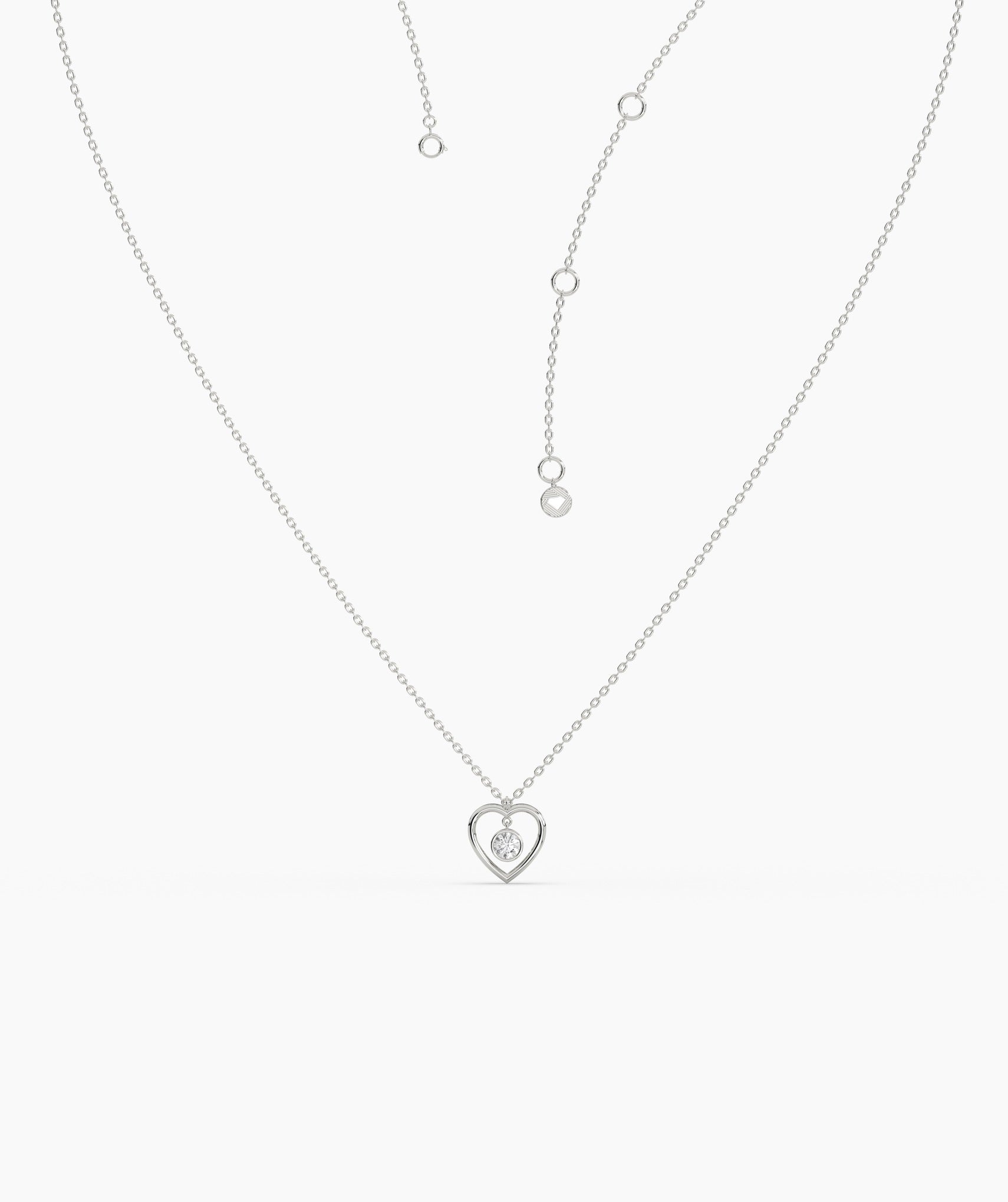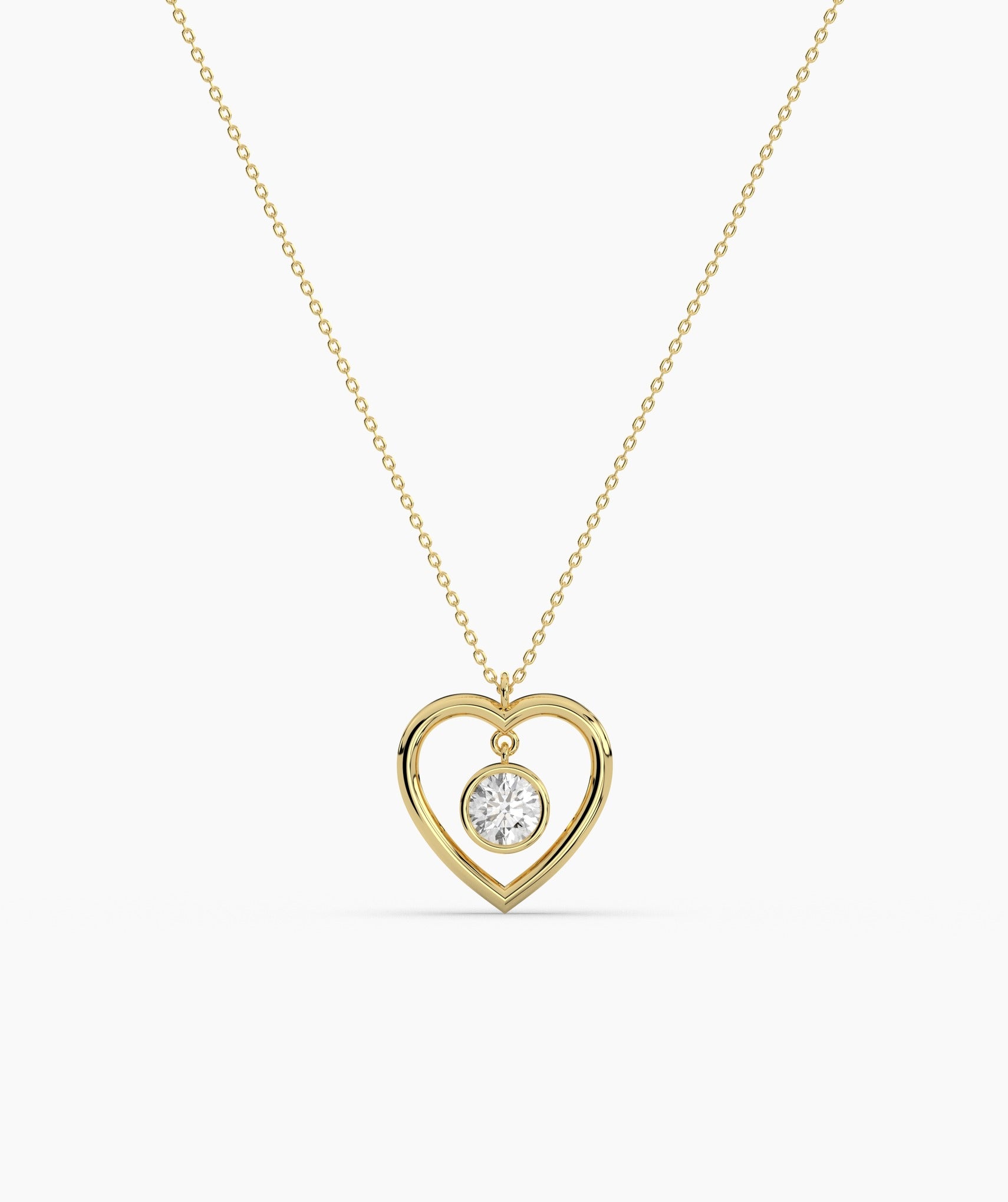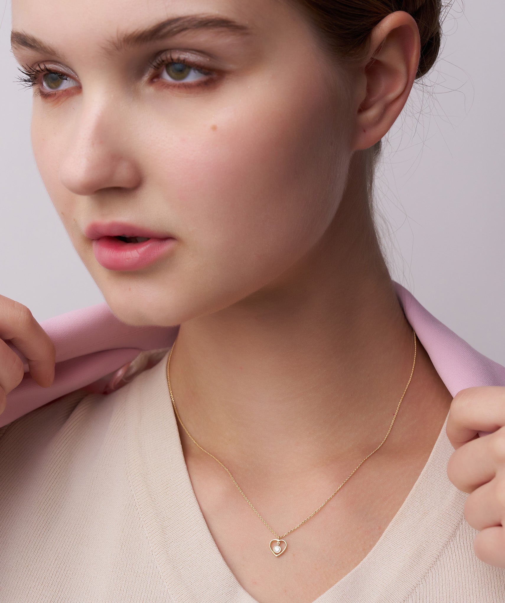 This delicate gold necklace showcases an open-heart design with a shimmering floating diamond at its center.
