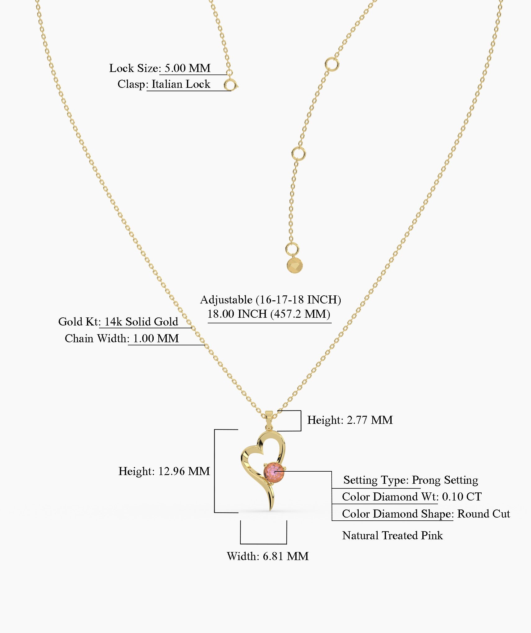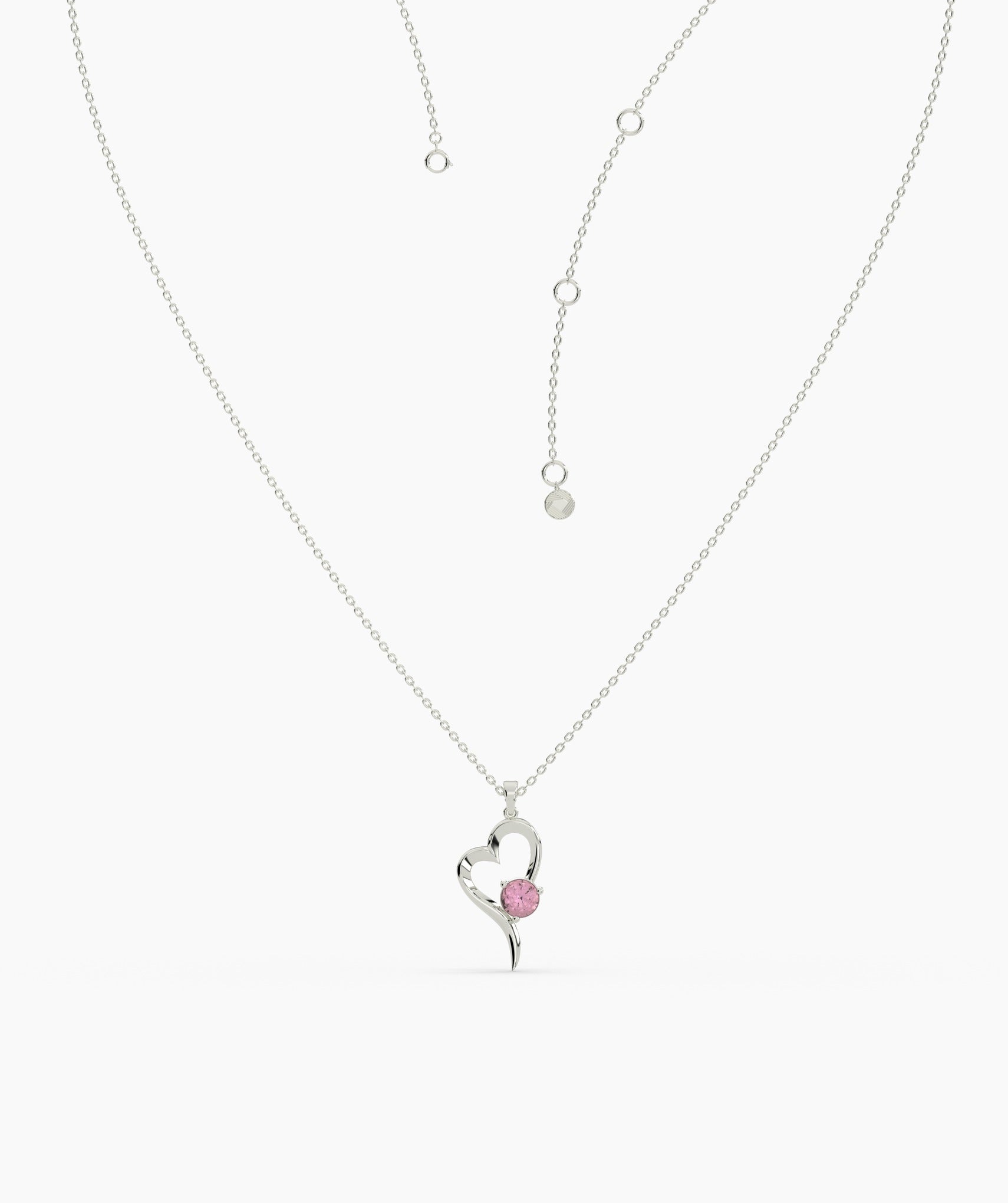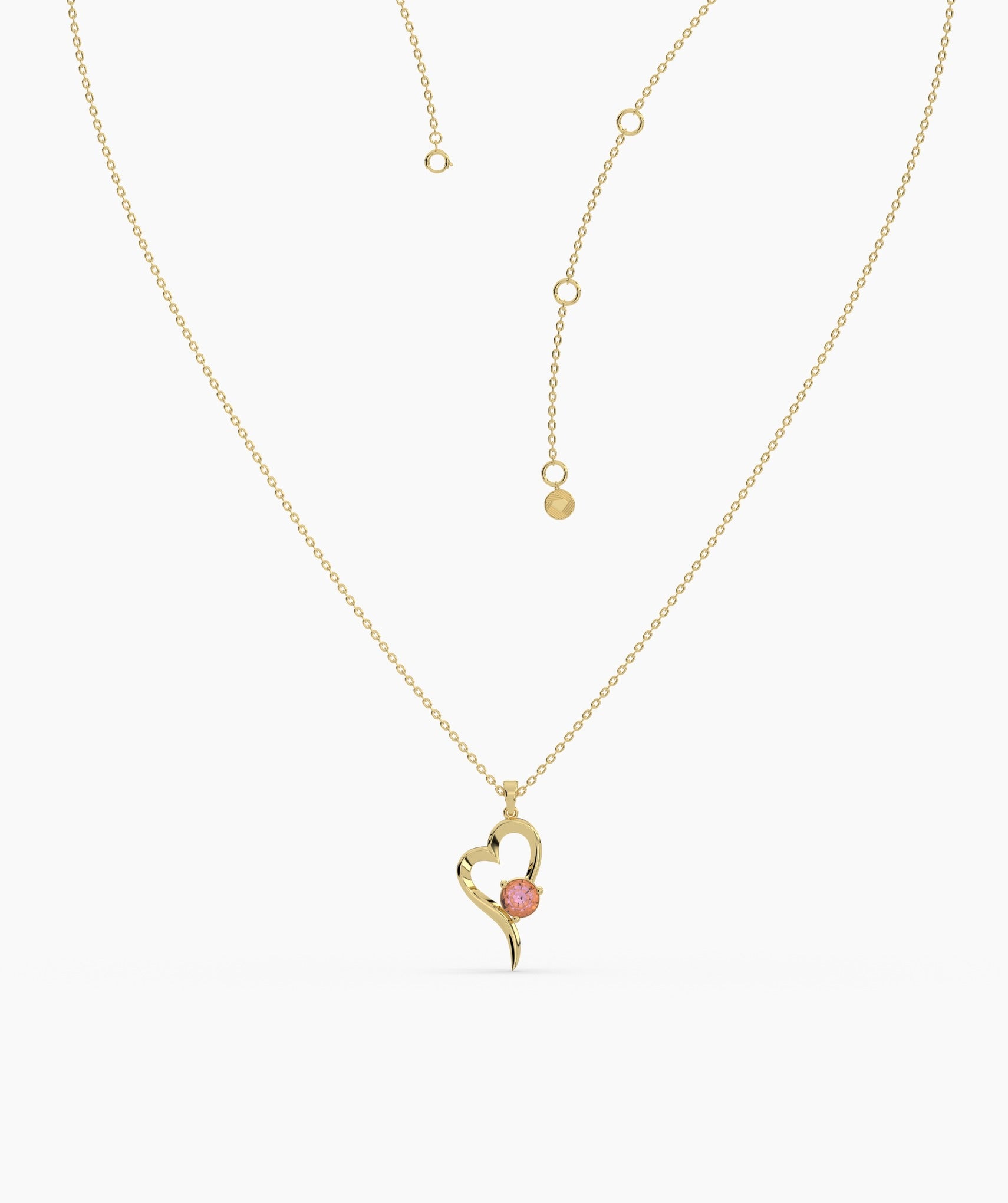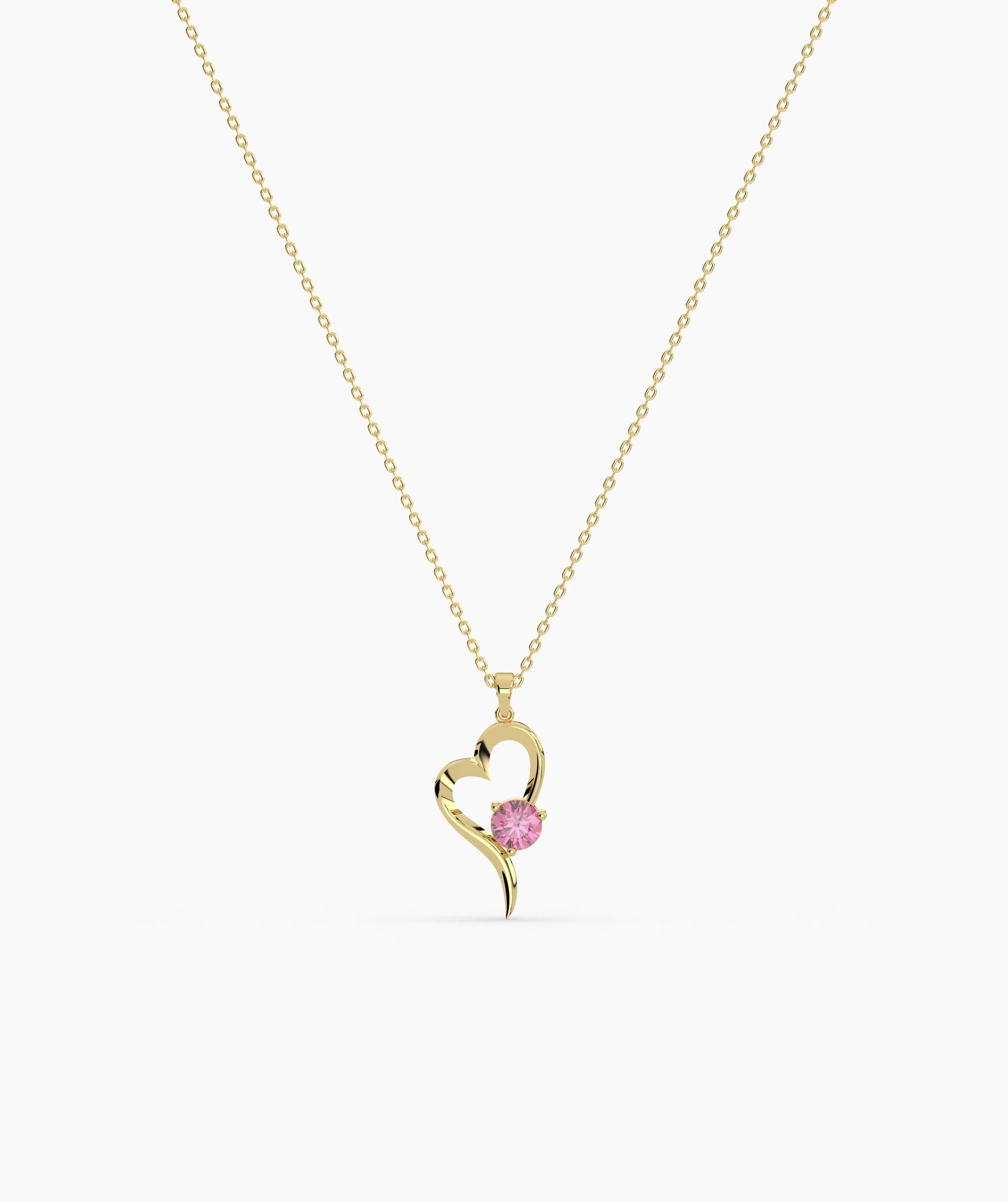 Express your affection in style—this 14K solid gold heart necklace gracefully curves around a brilliant pink gem.