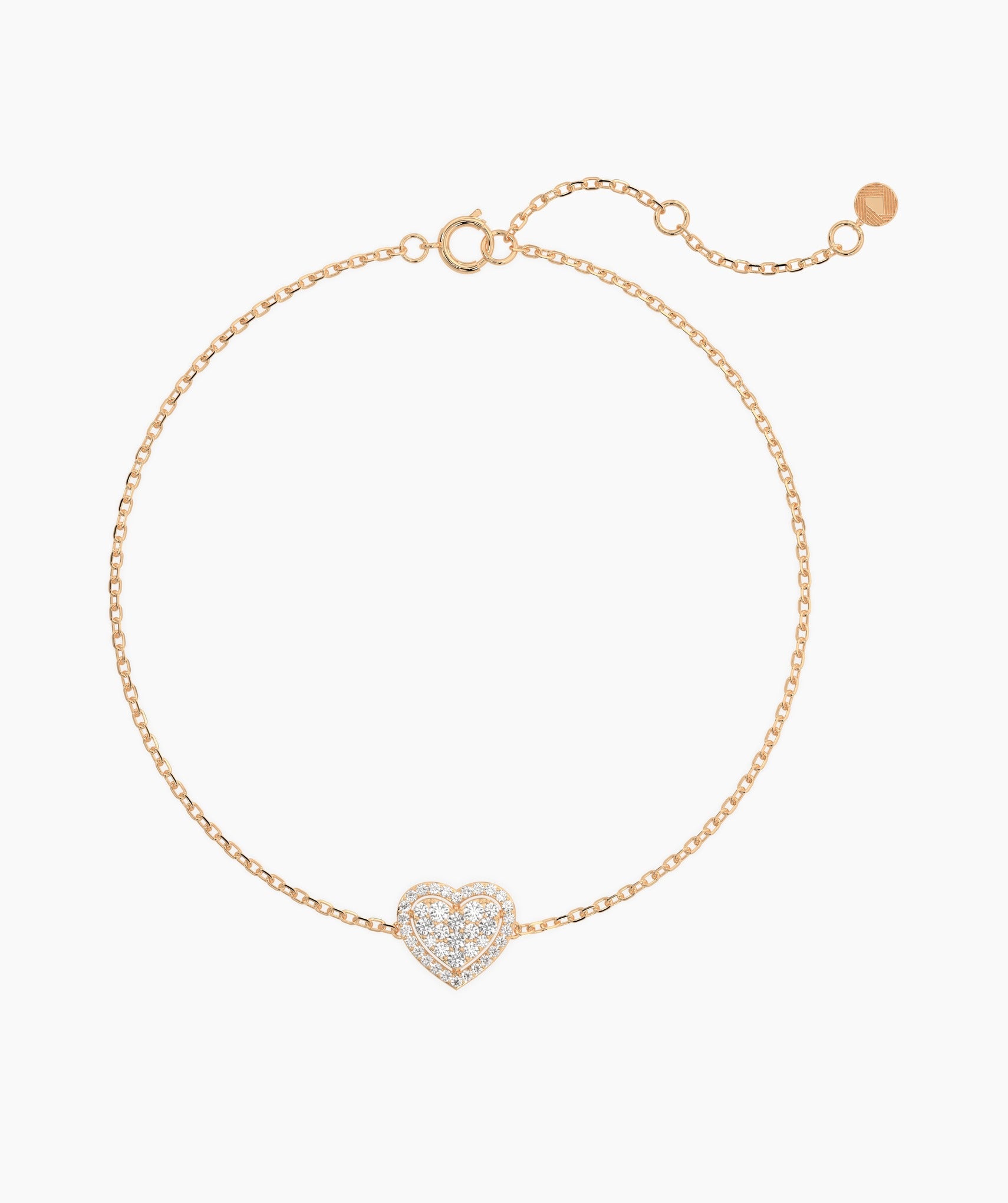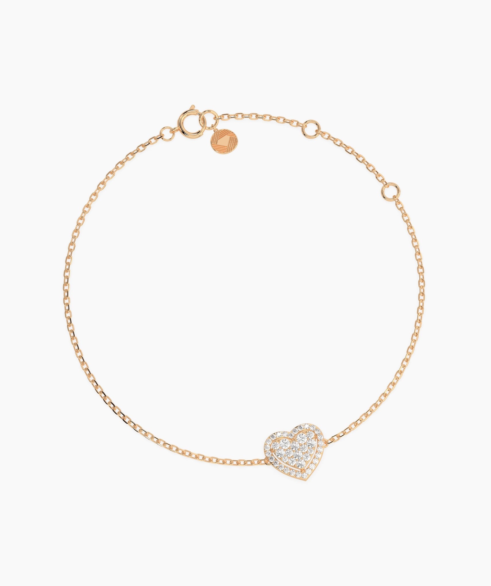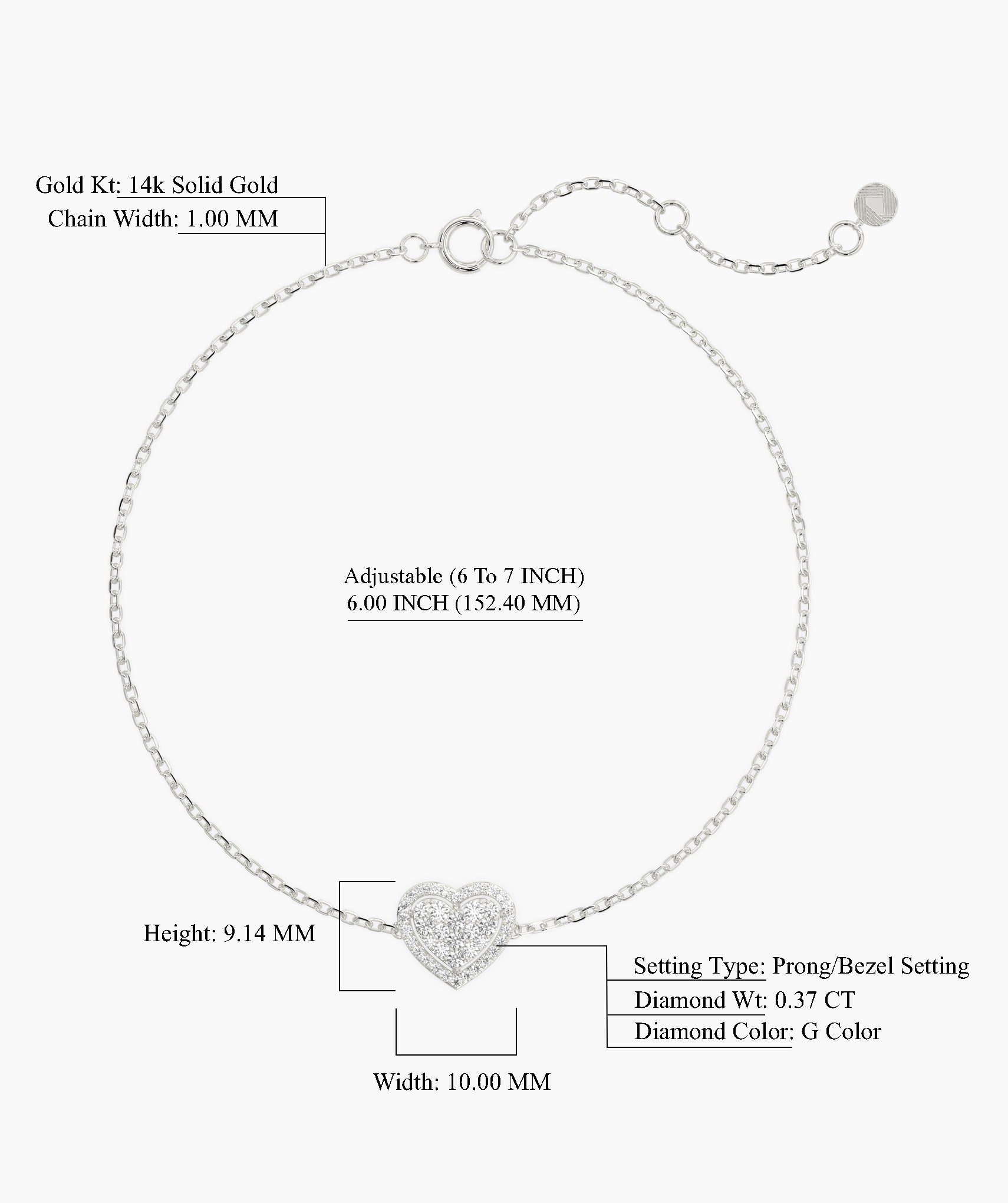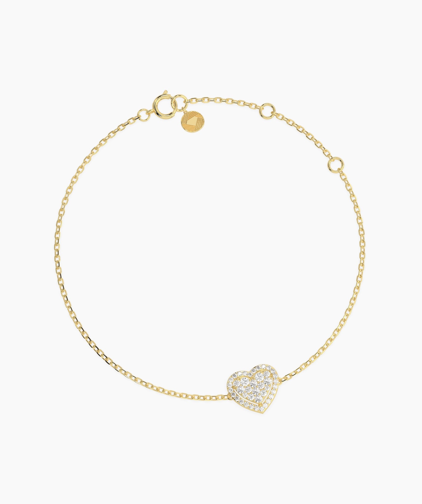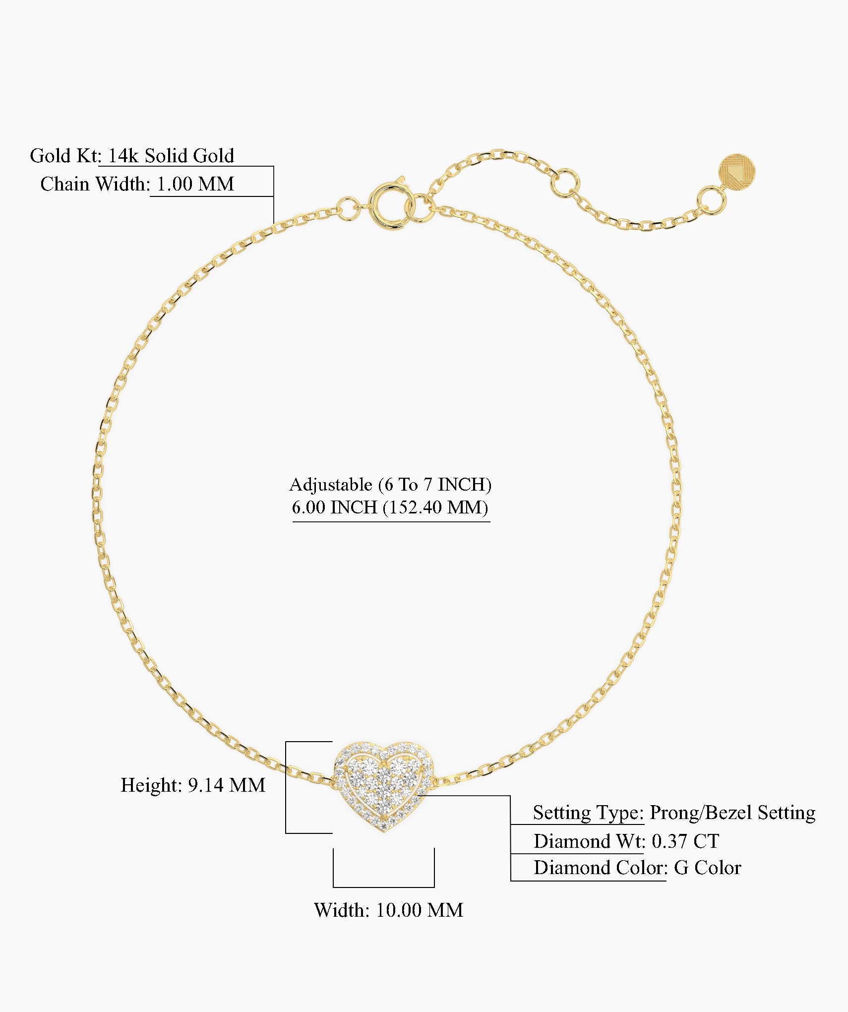 This charming 14K solid gold bracelet showcases a heart-shaped centerpiece filled with radiant diamonds, symbolizing love and affection.