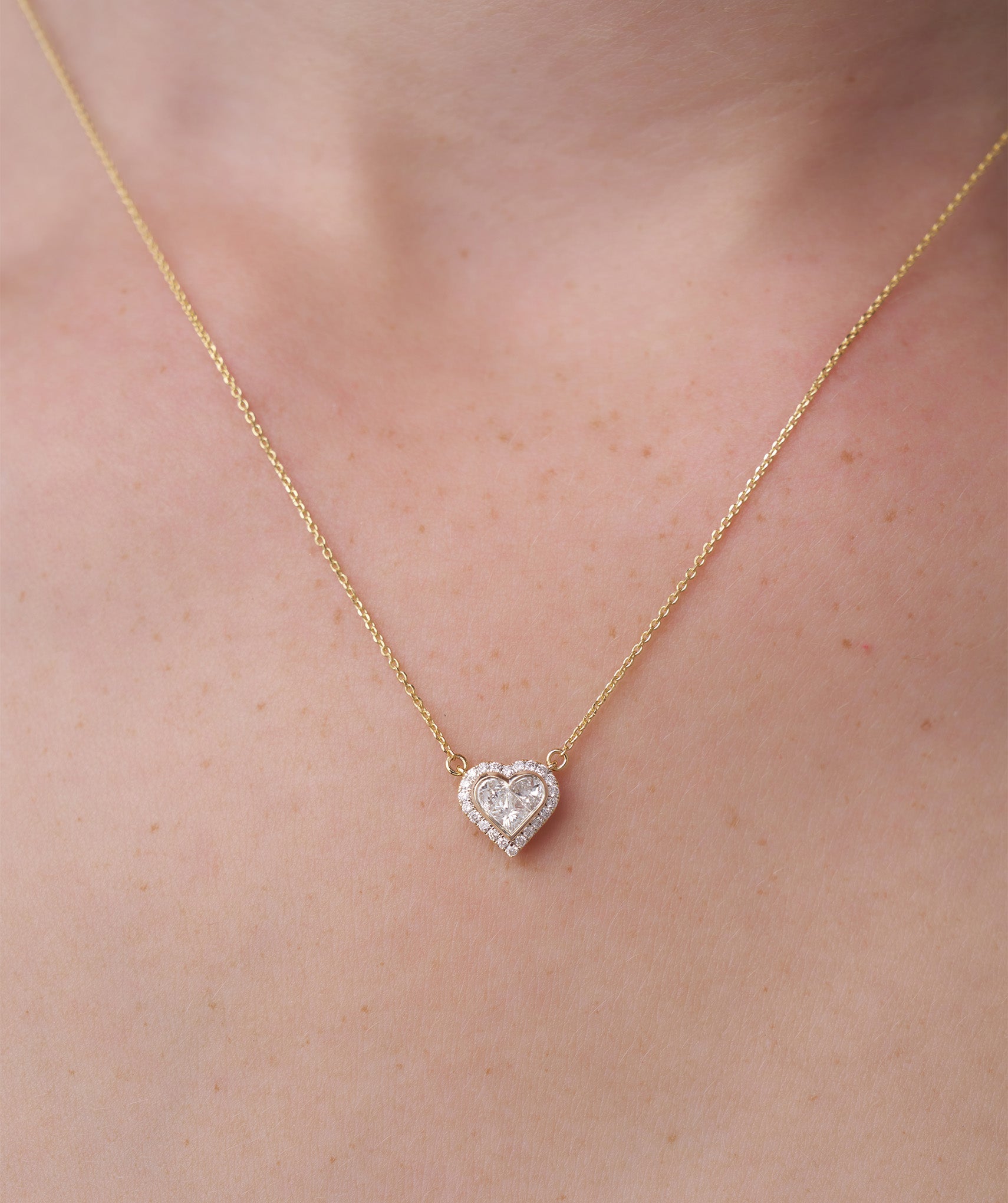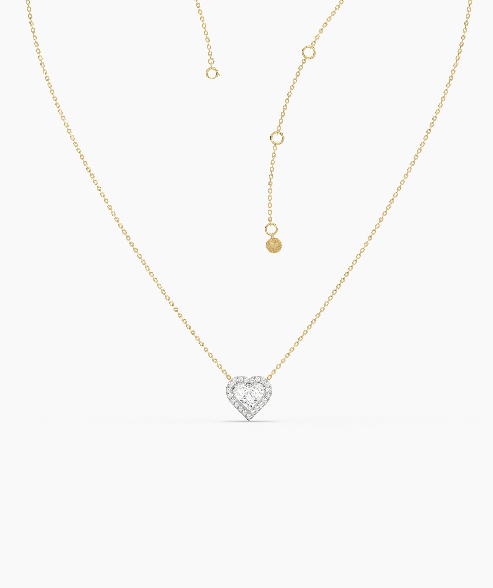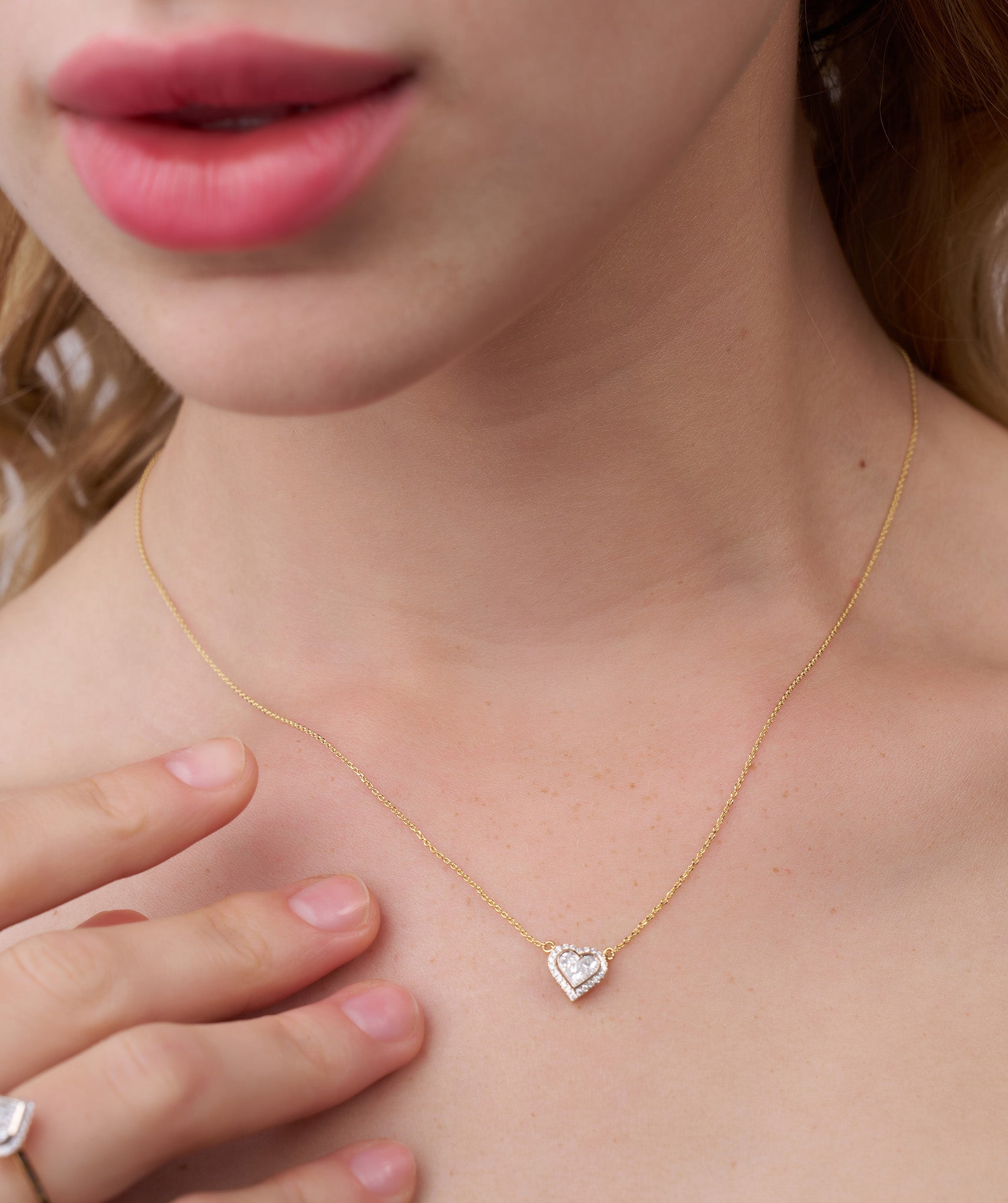 A layered symbol of devotion—this double halo heart pendant adds an extra touch of brilliance to a timeless design.