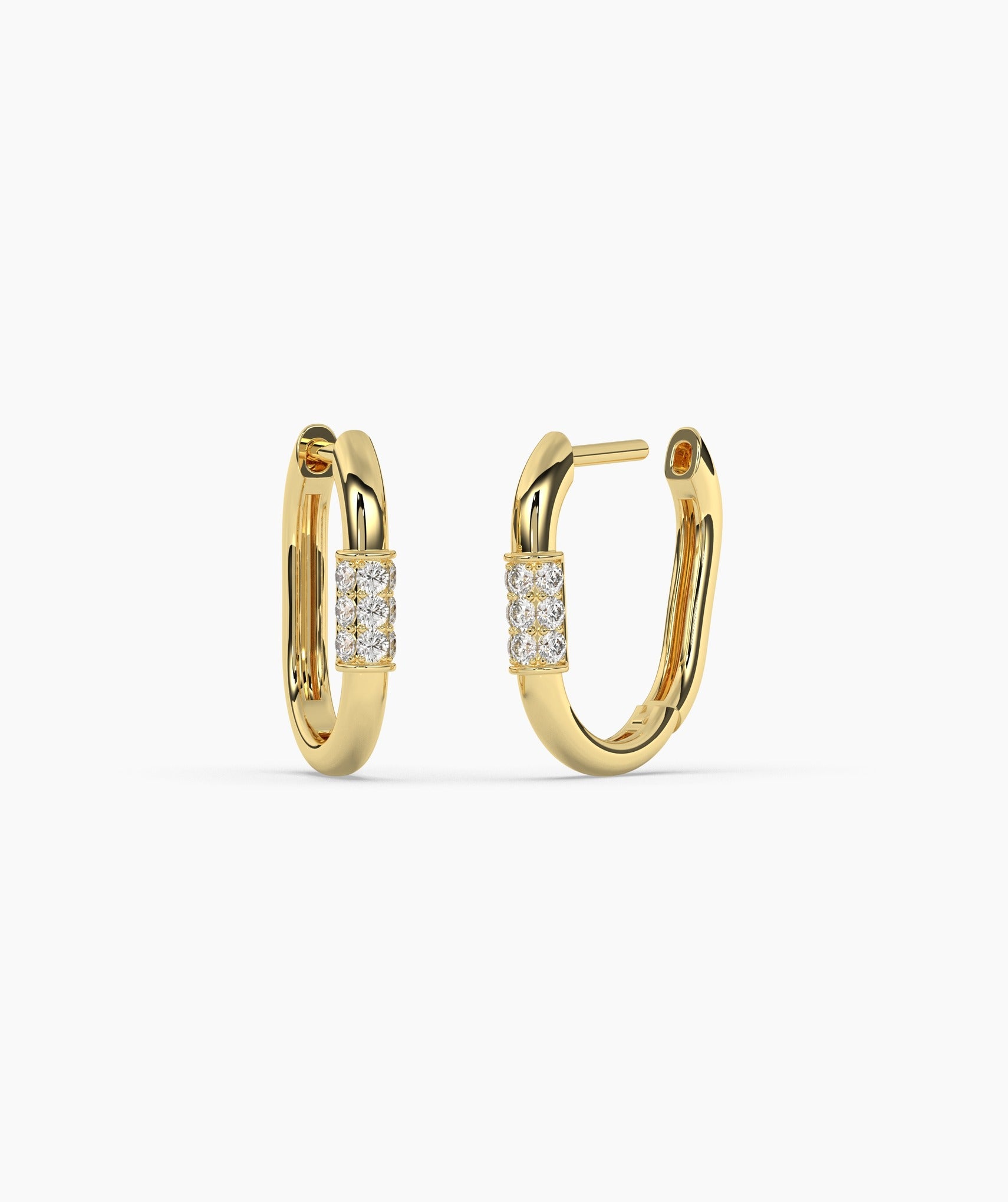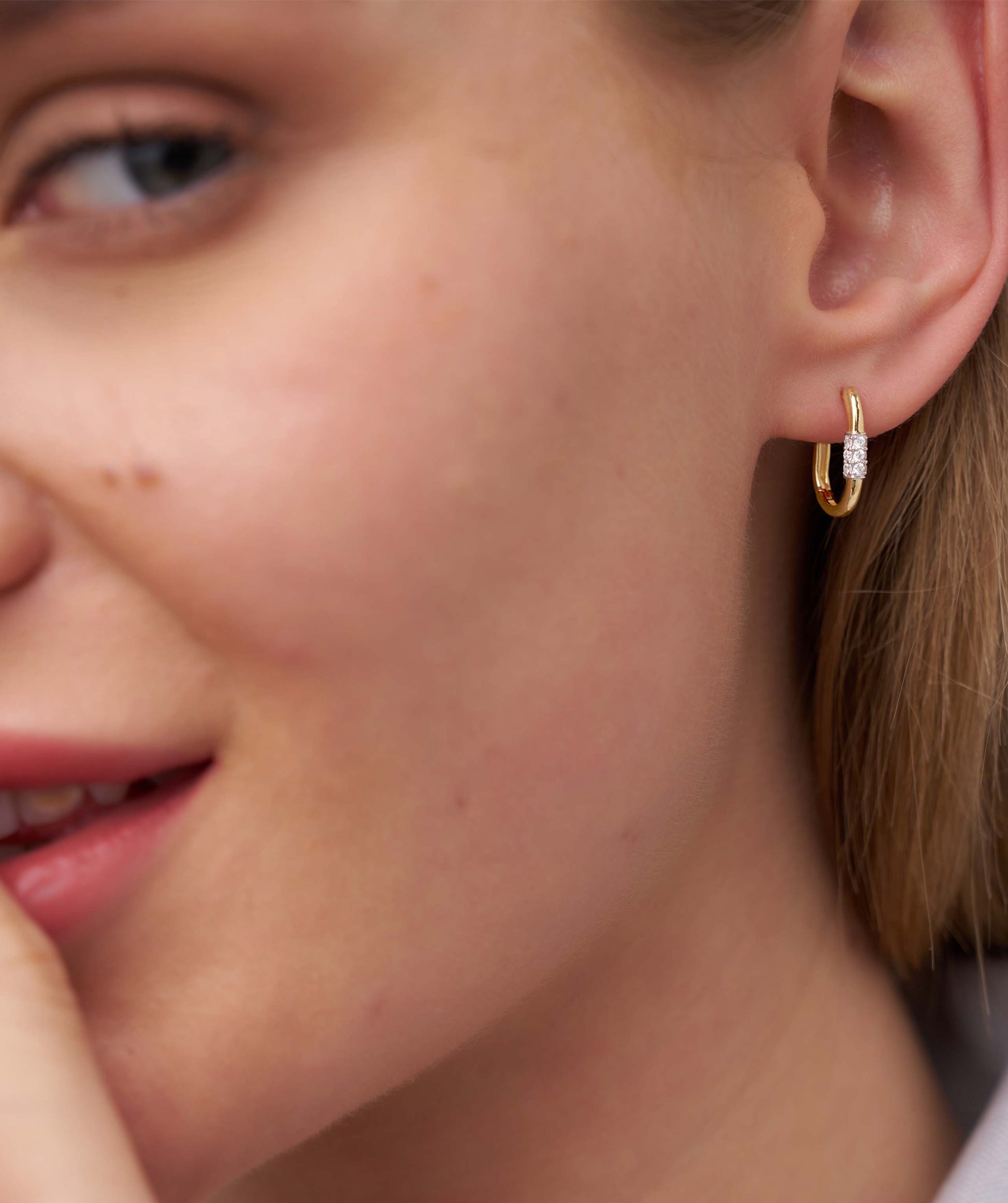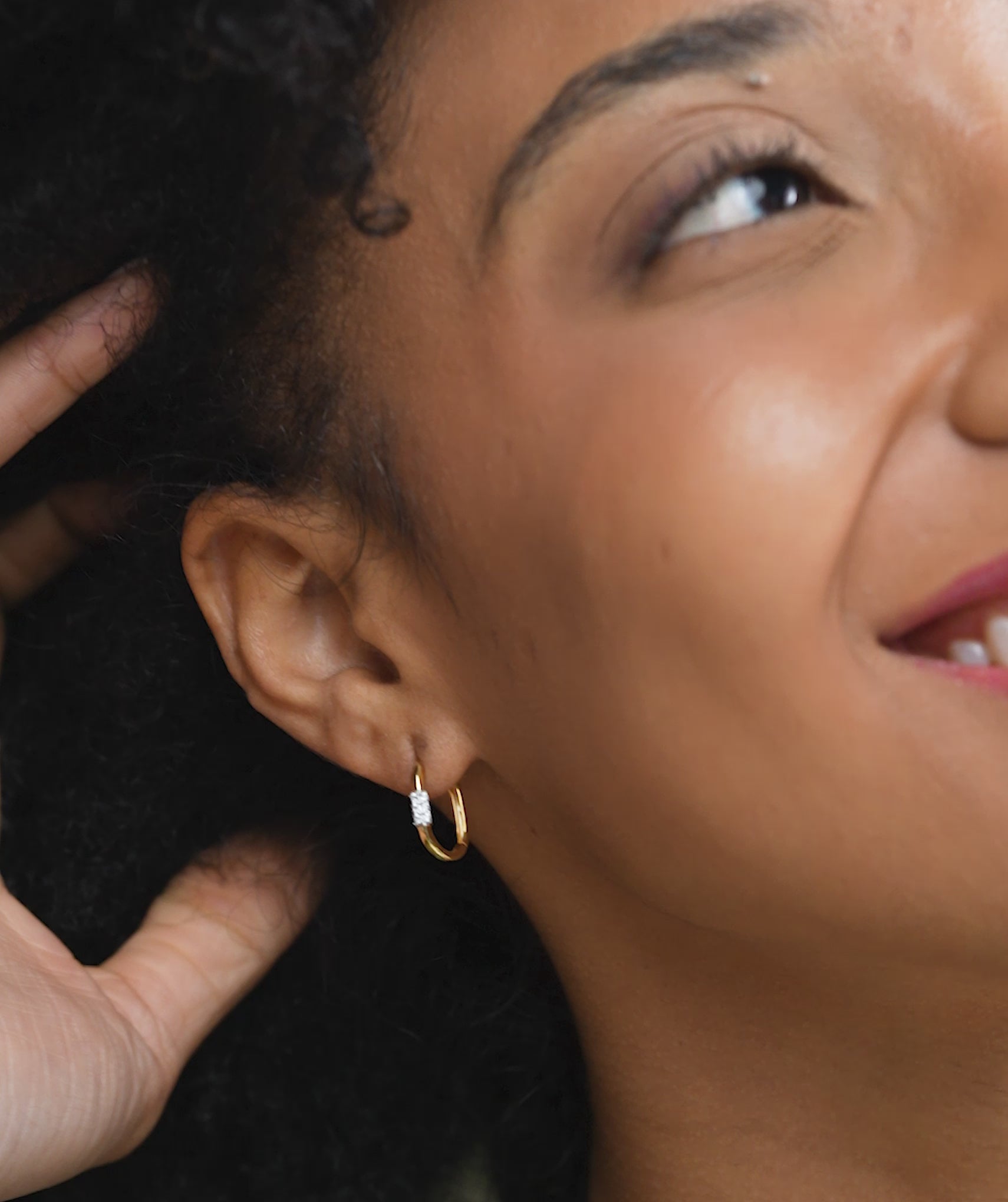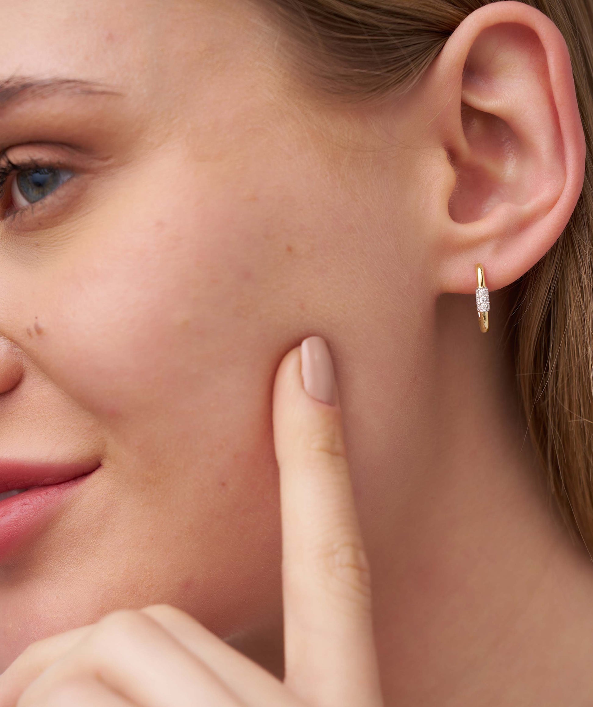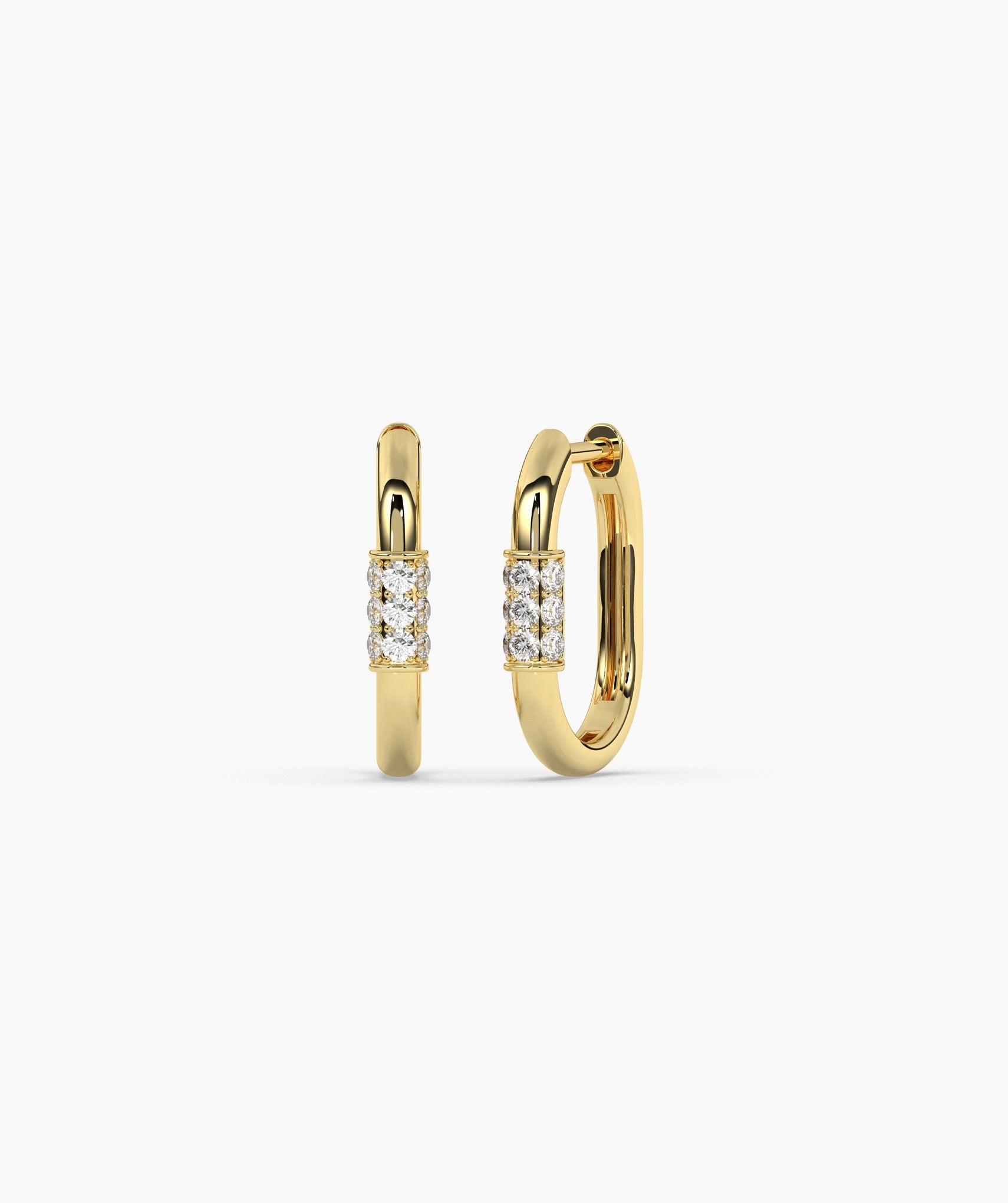 Add a touch of luxury to your look with these classic 14K gold mini hoops, beautifully set with sparkling diamonds.