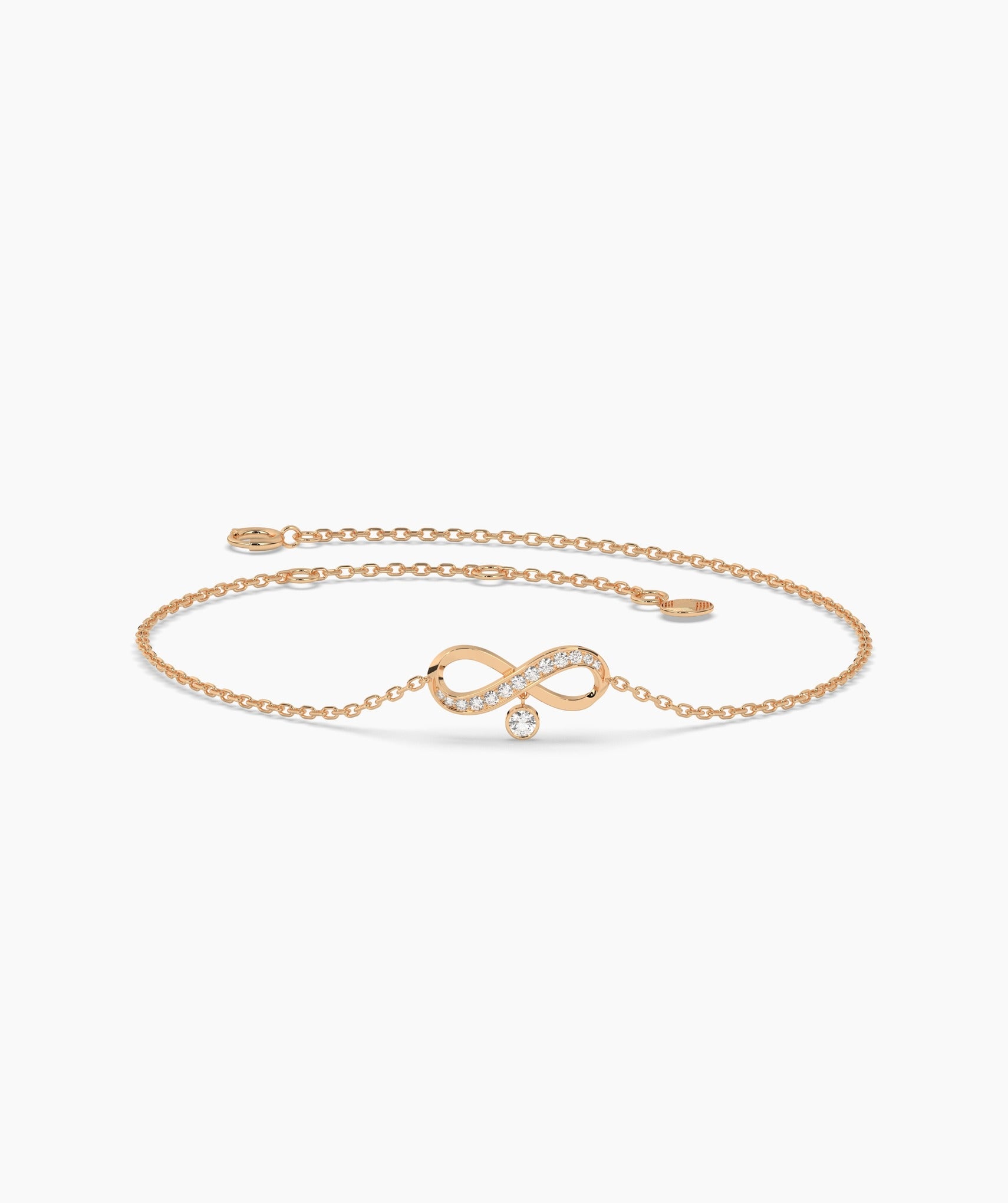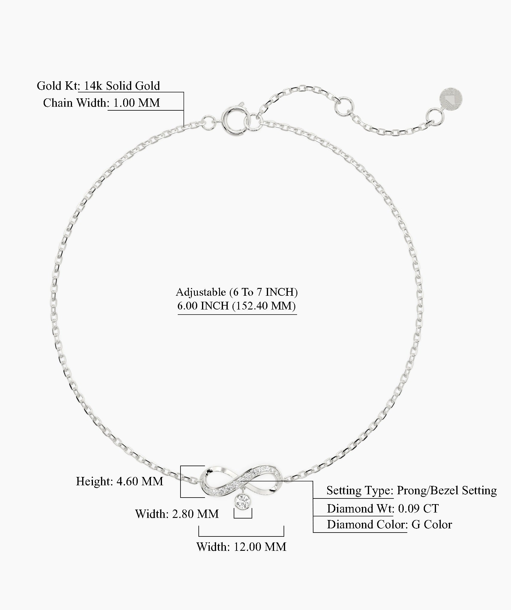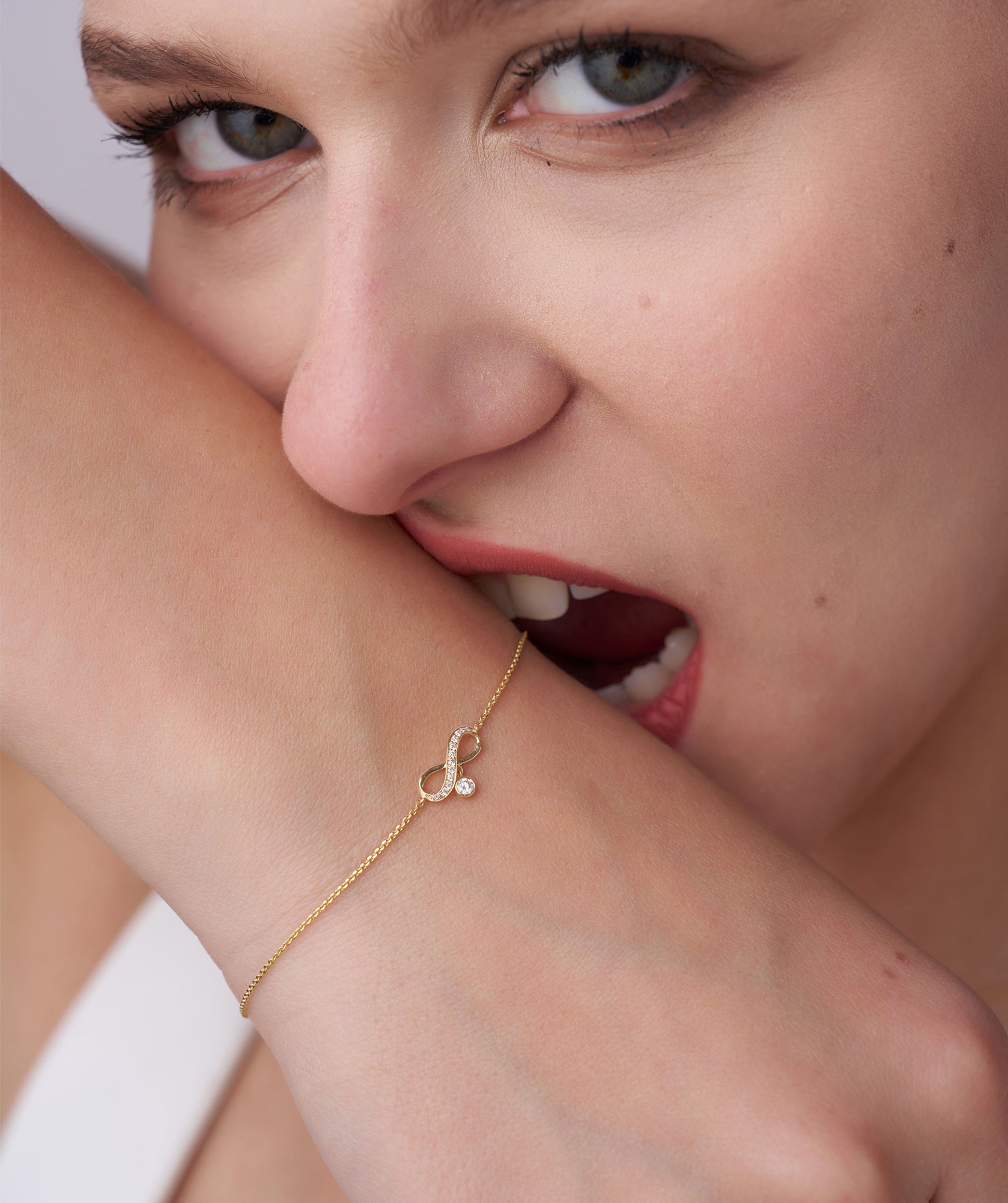 Embrace eternal elegance with our exquisite Infinity Diamond Bracelet, a symbol of unending love and connection. This stunning piece is meticulously crafted from genuine 14k gold (Rose, Yellow, White), offering a luxurious shimmer that complements any skin tone. Adorned with brilliant round-cut diamonds, the iconic infinity design sparkles with every movement, making it a truly captivating accessory.