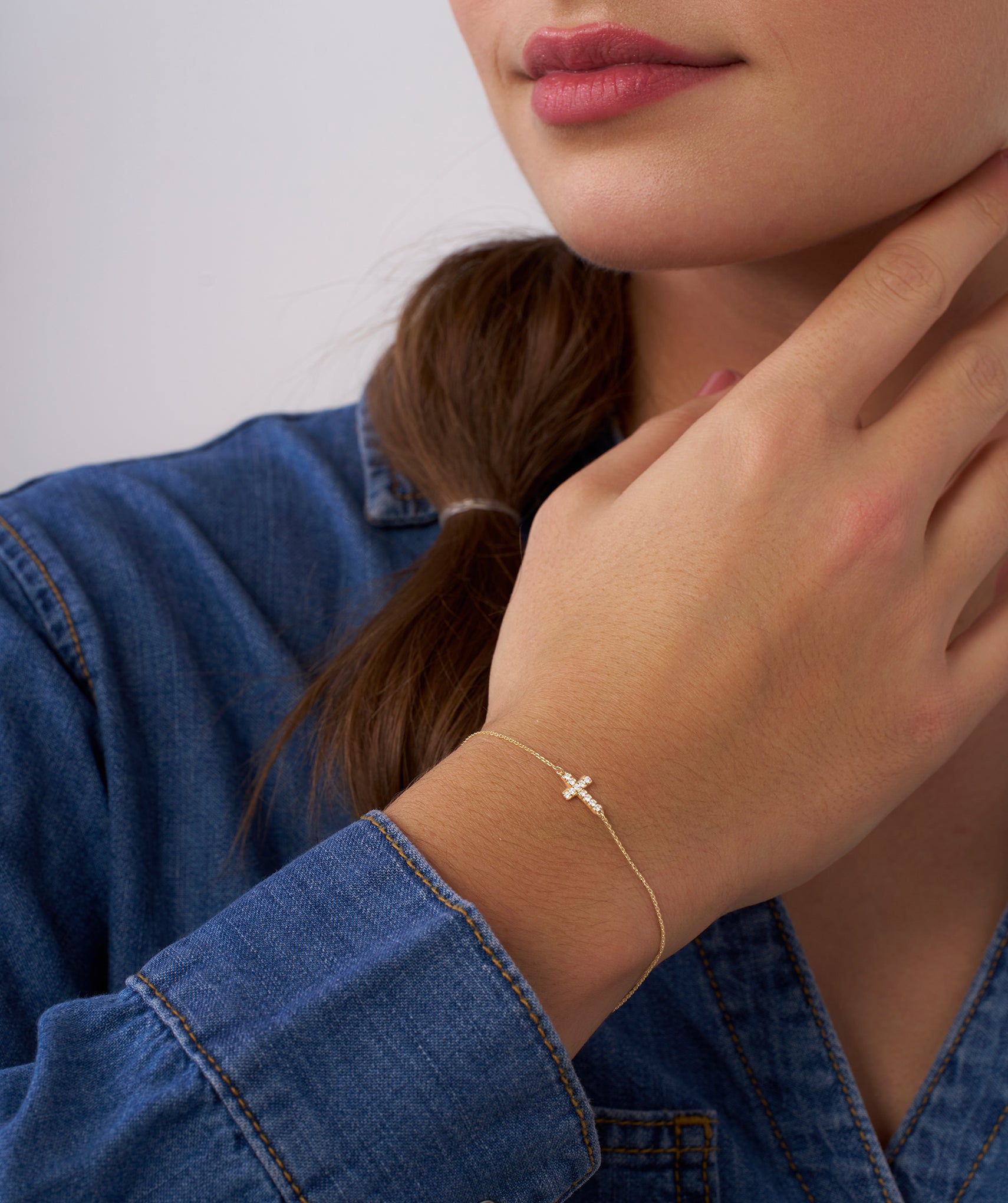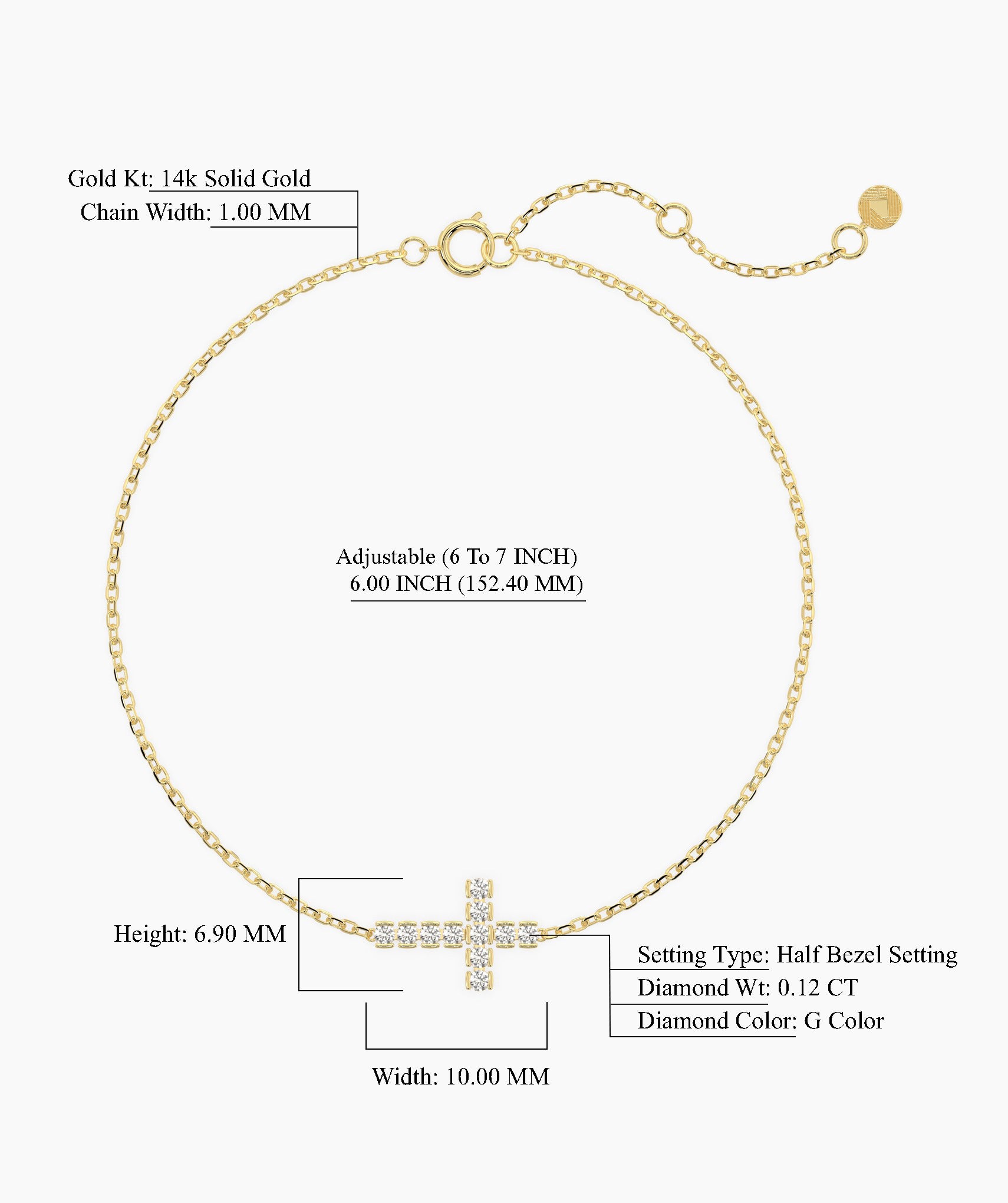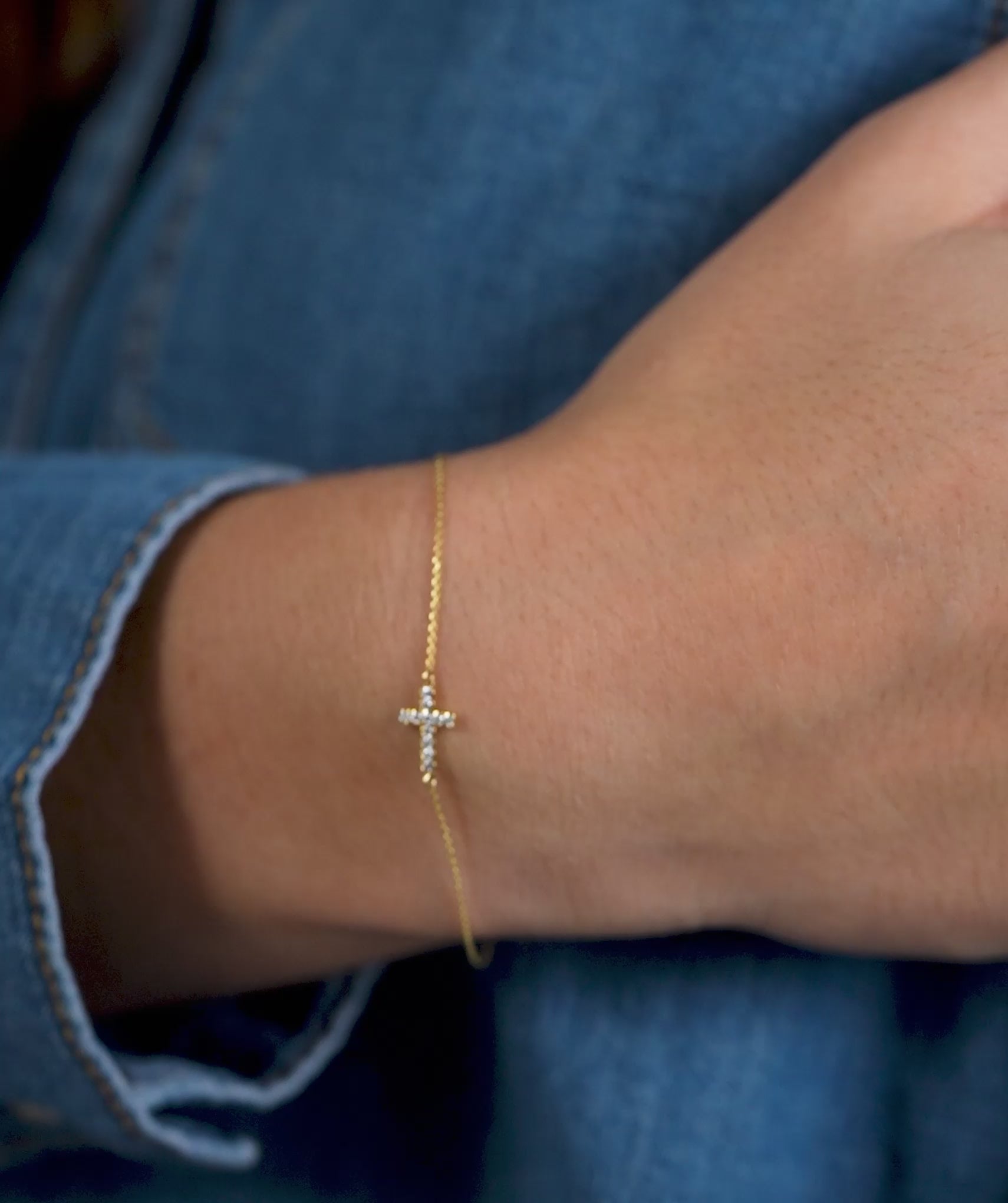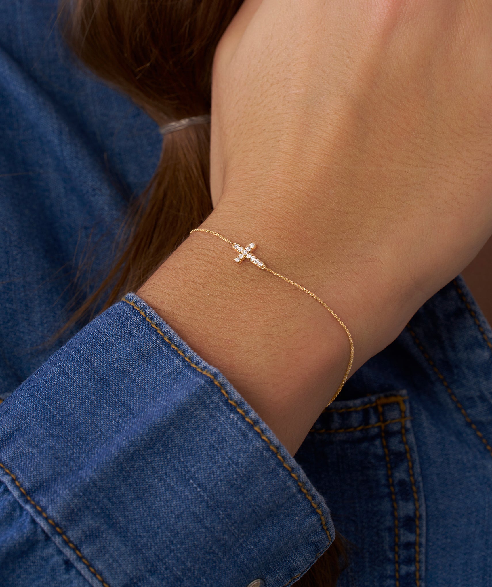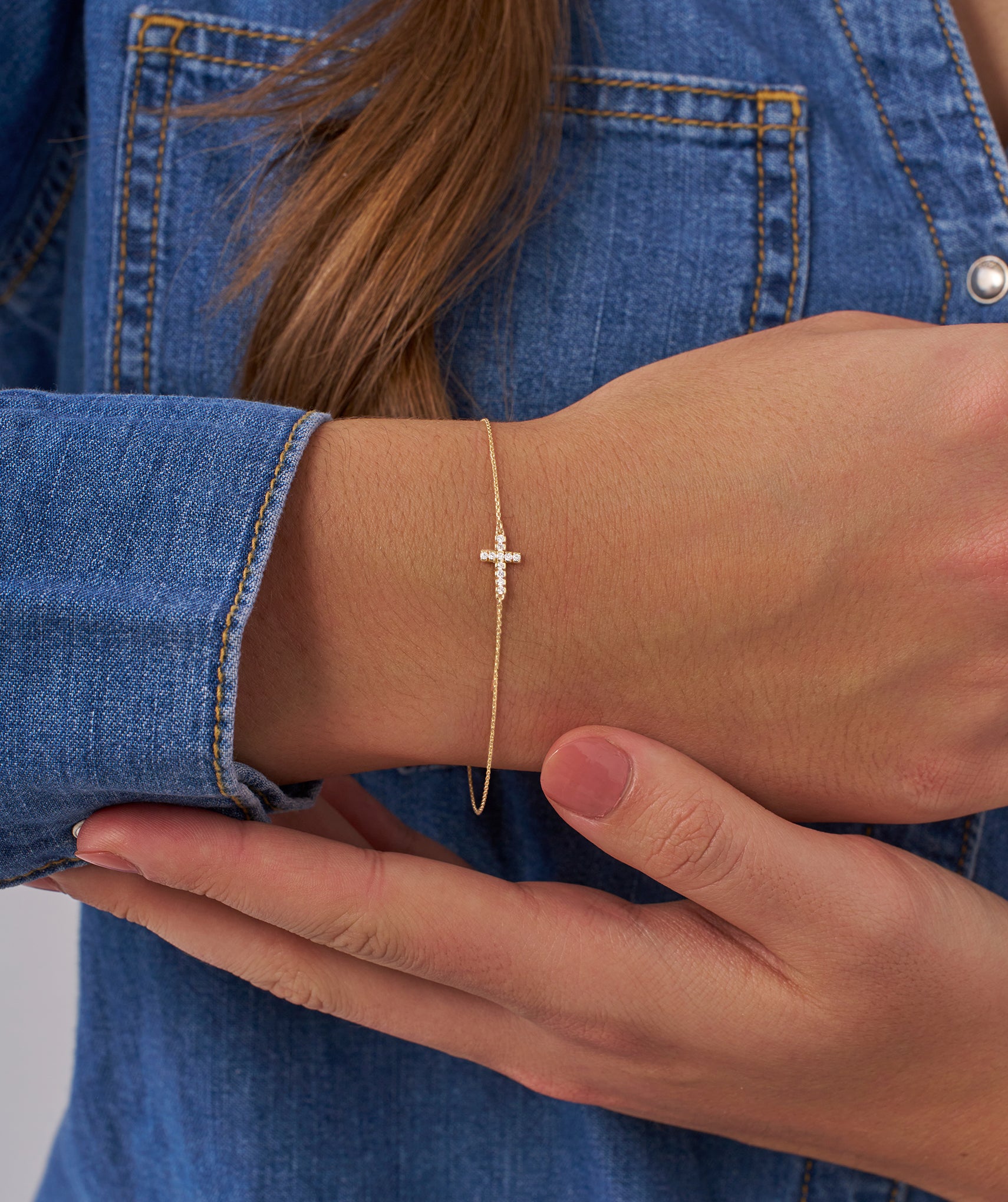 14K Gold Diamond Cross Bracelet