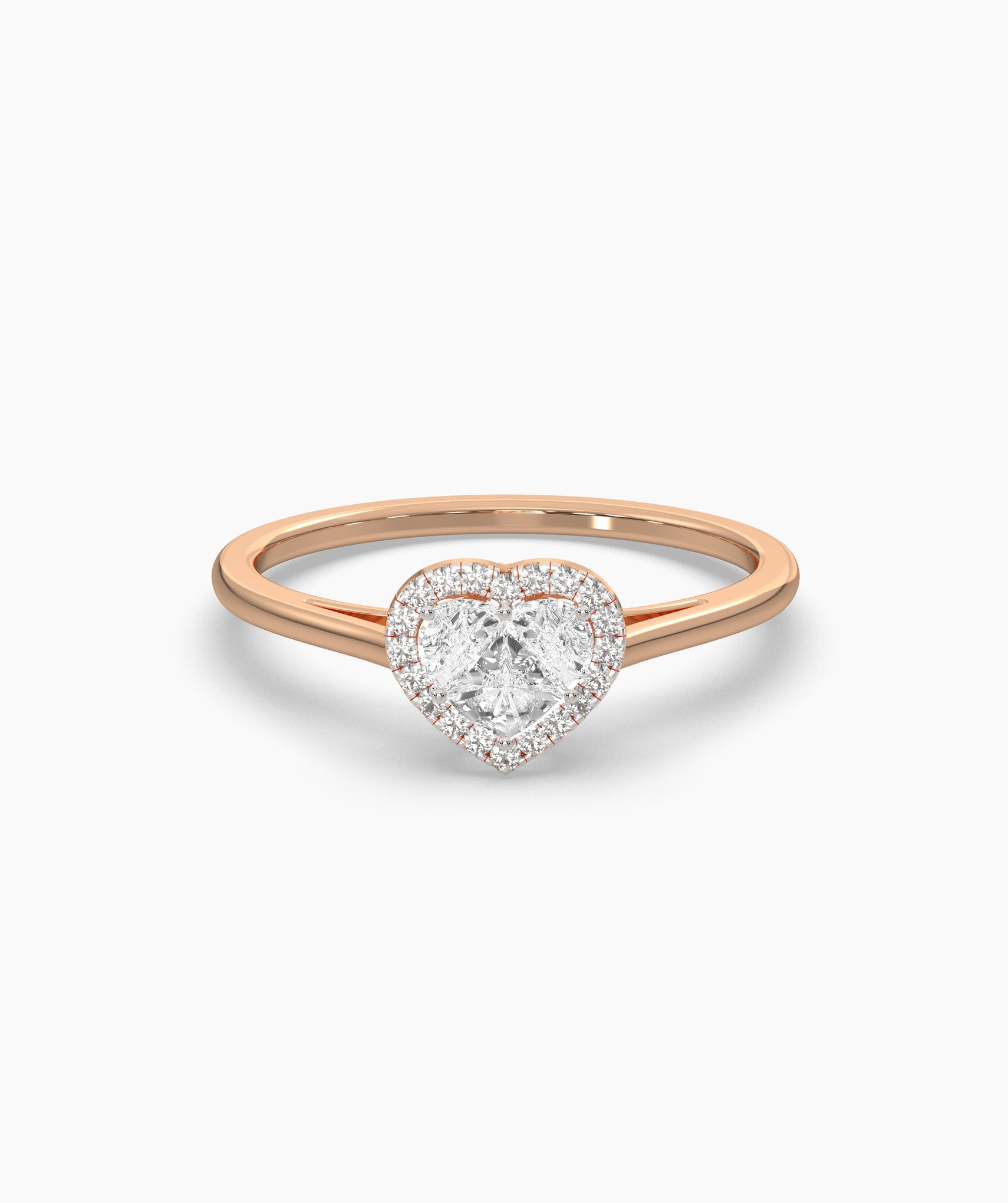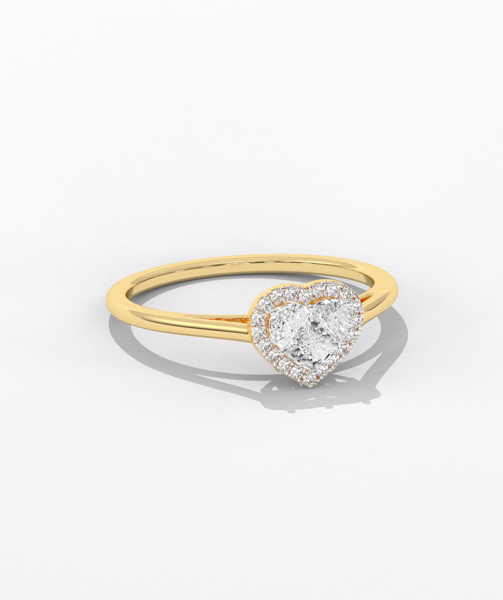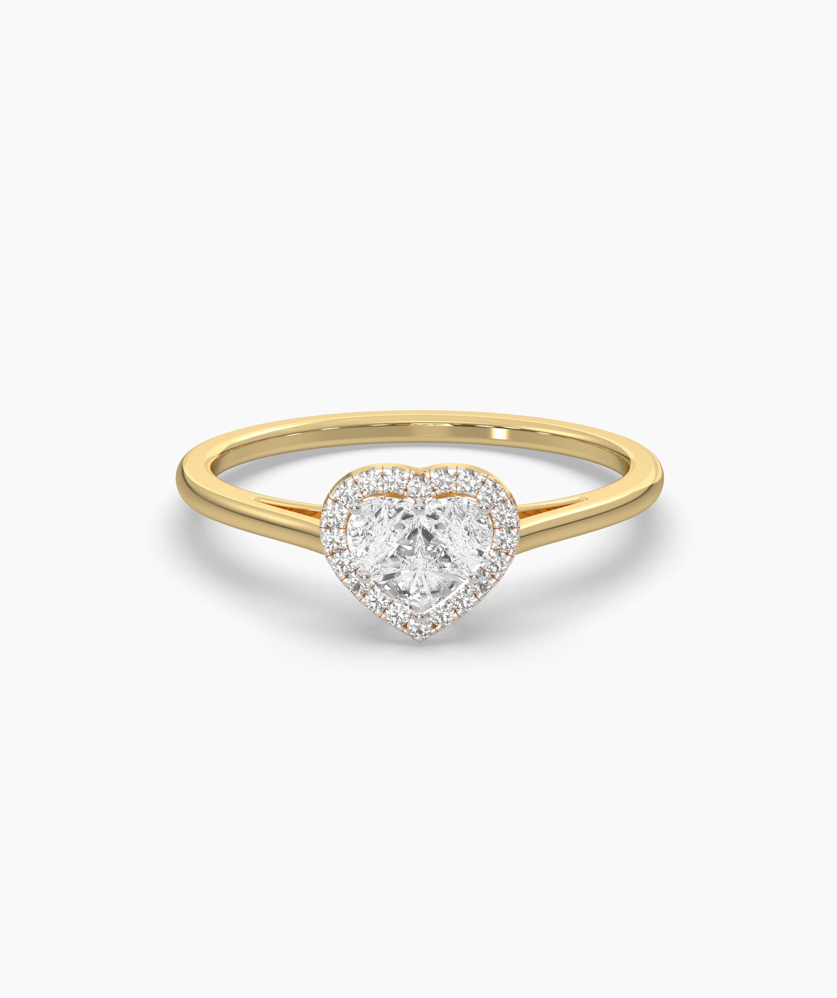 Celebrate love with this 14K gold ring, showcasing a heart-shaped diamond encircled by a brilliant halo.