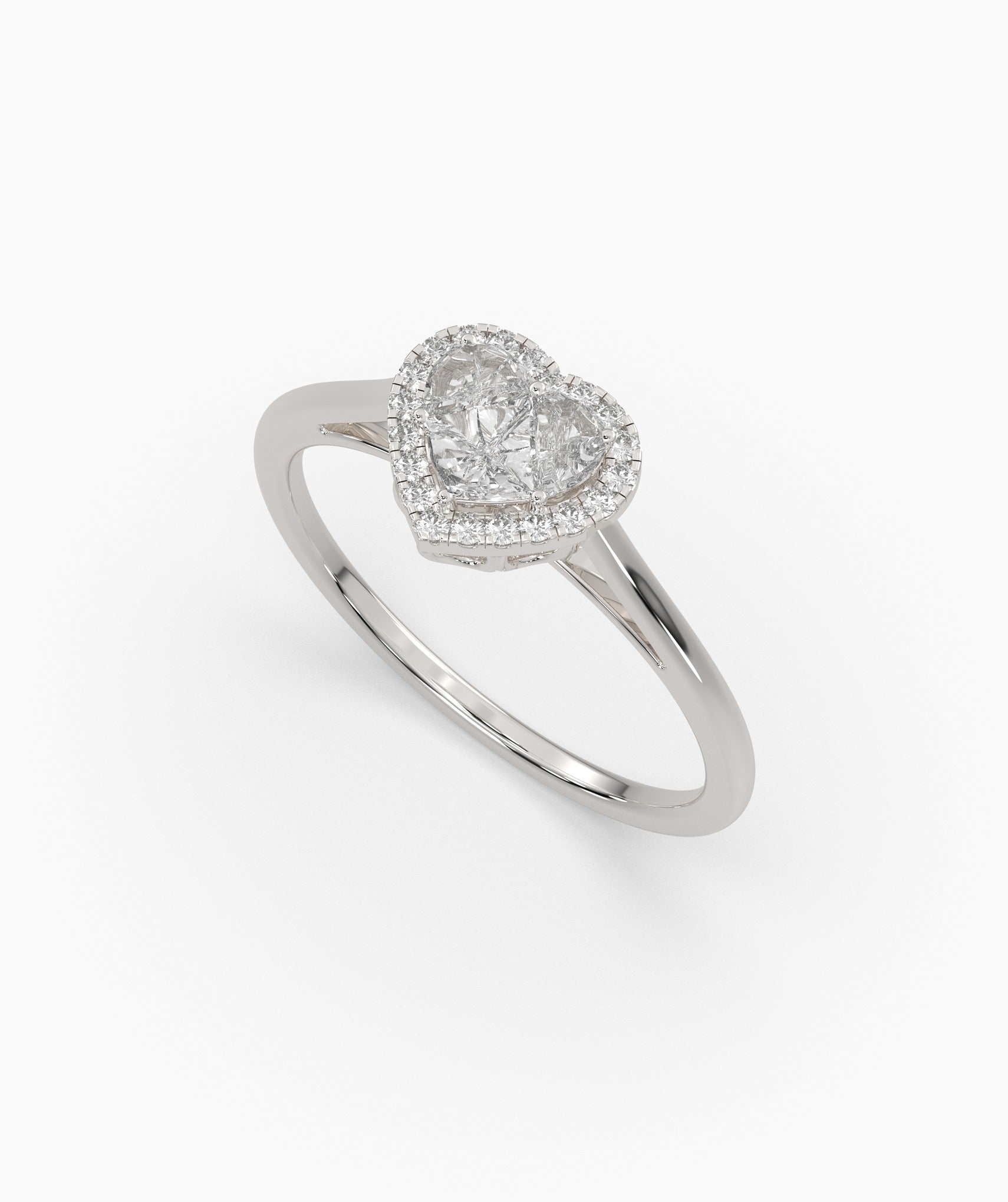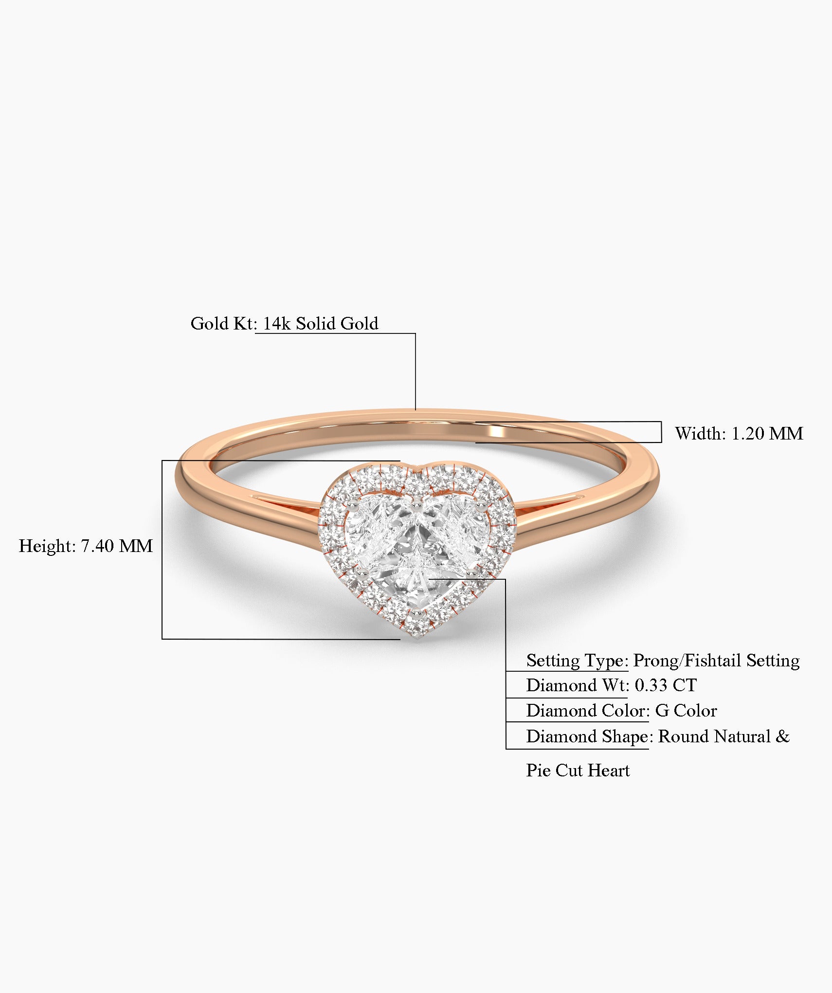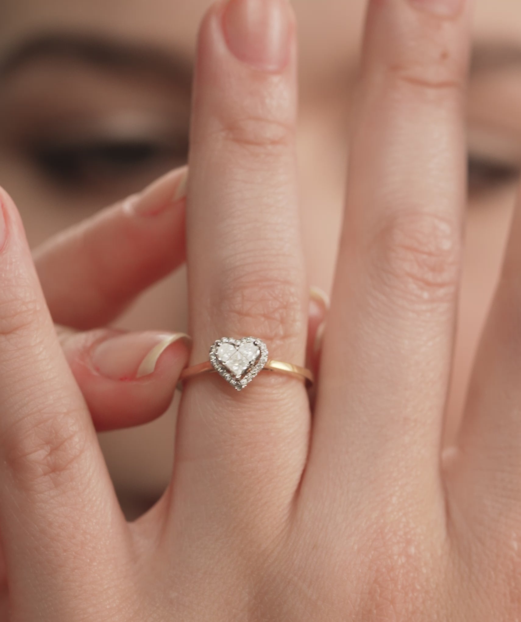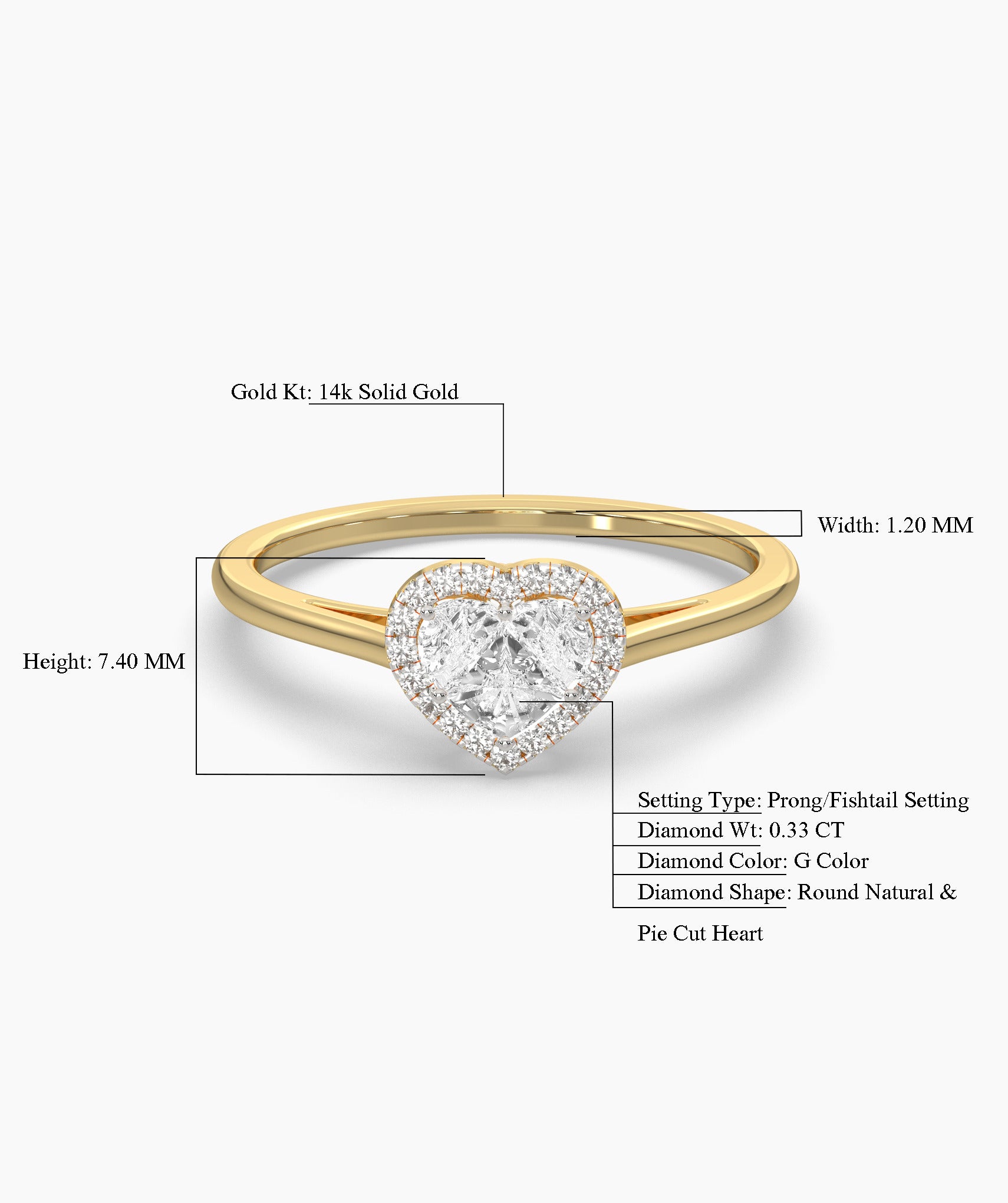 Celebrate love with this 14K gold ring, showcasing a heart-shaped diamond encircled by a brilliant halo.