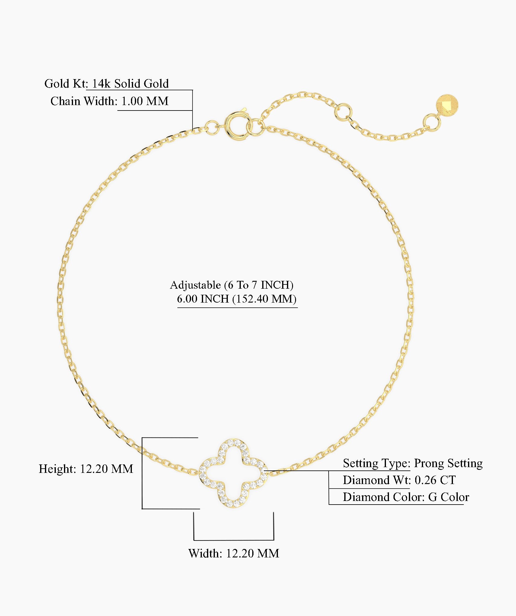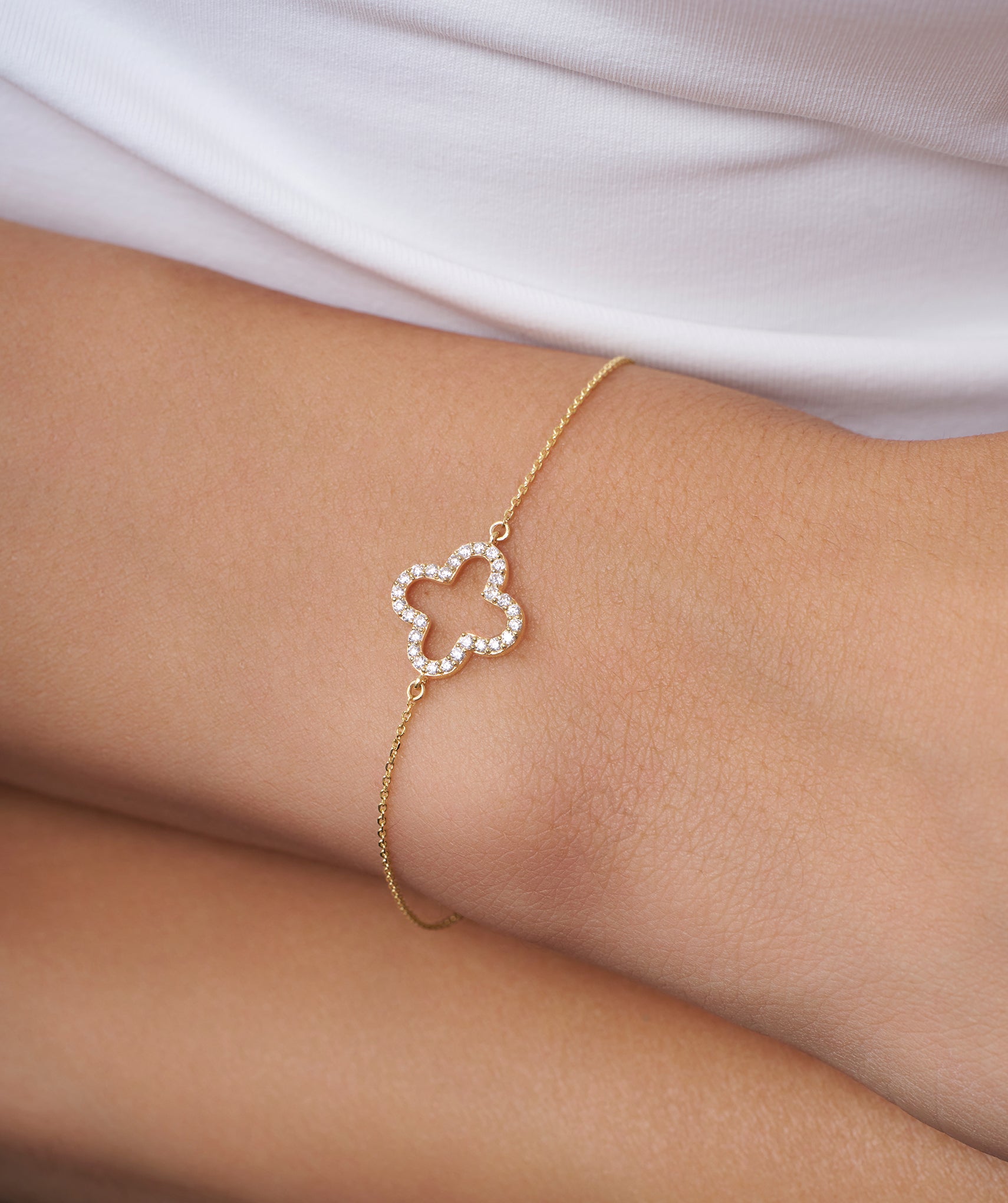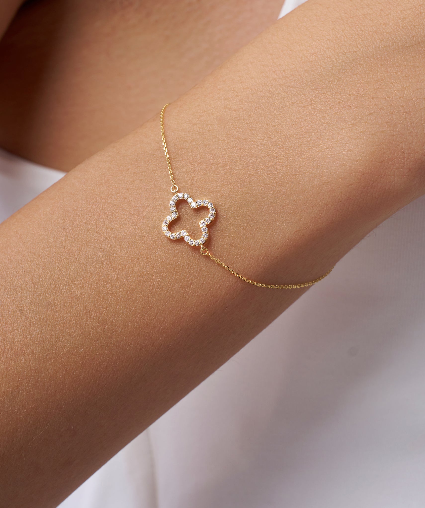 Discover timeless elegance with our 14K Gold Clover Diamond Bracelet. Featuring brilliant diamonds set in your preferred Rose, Yellow, or White Gold, this bracelet transitions seamlessly from daily wear to your most cherished occasions. A minimal yet impactful gift for the modern woman.