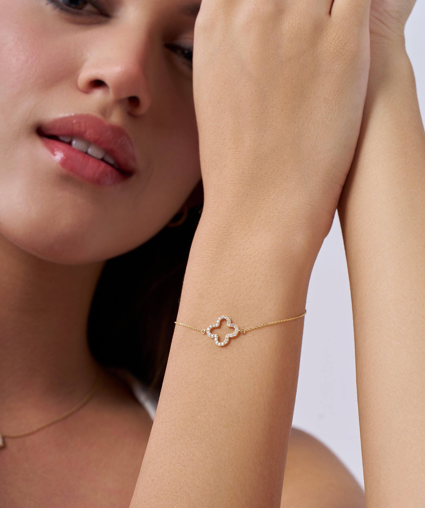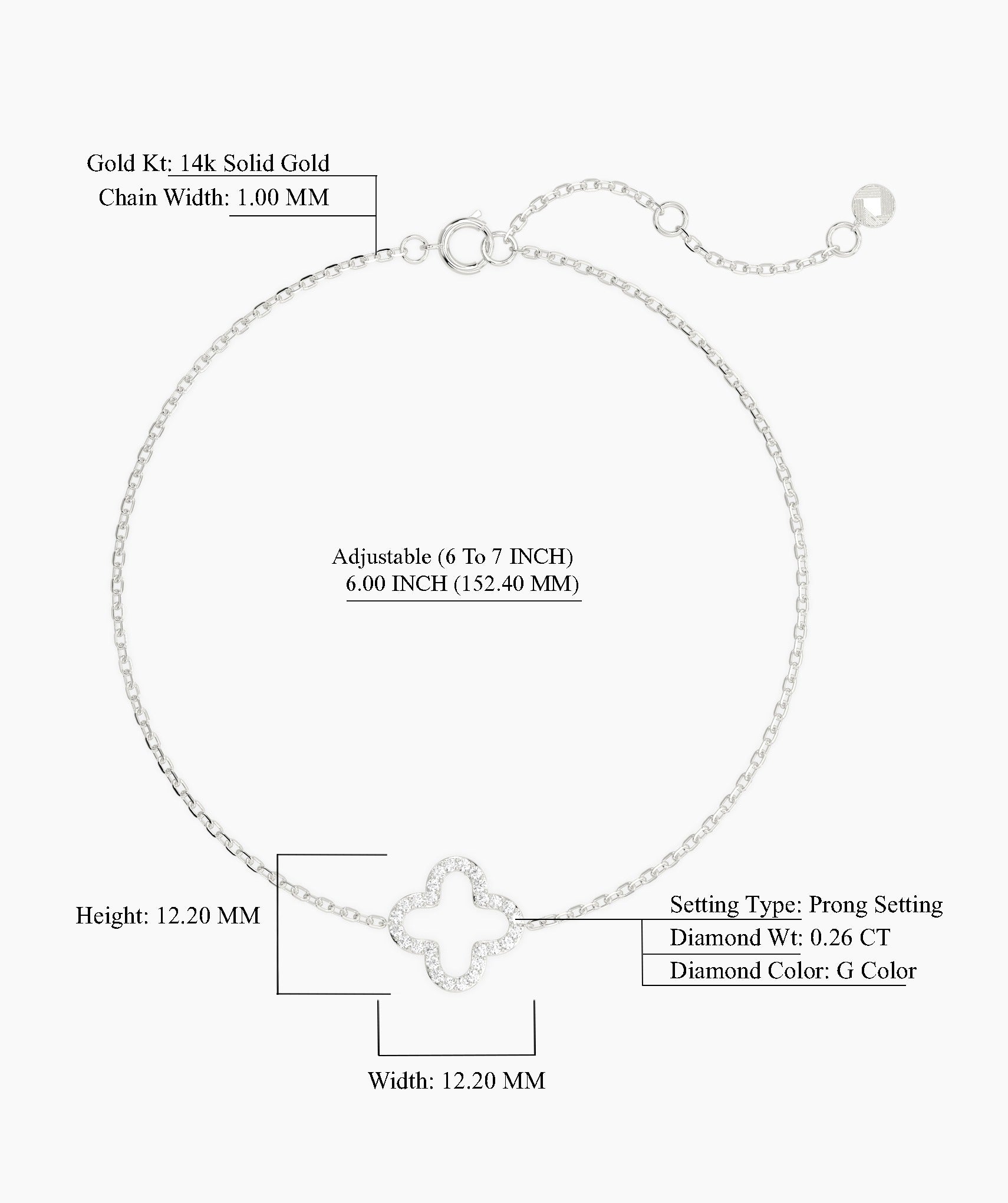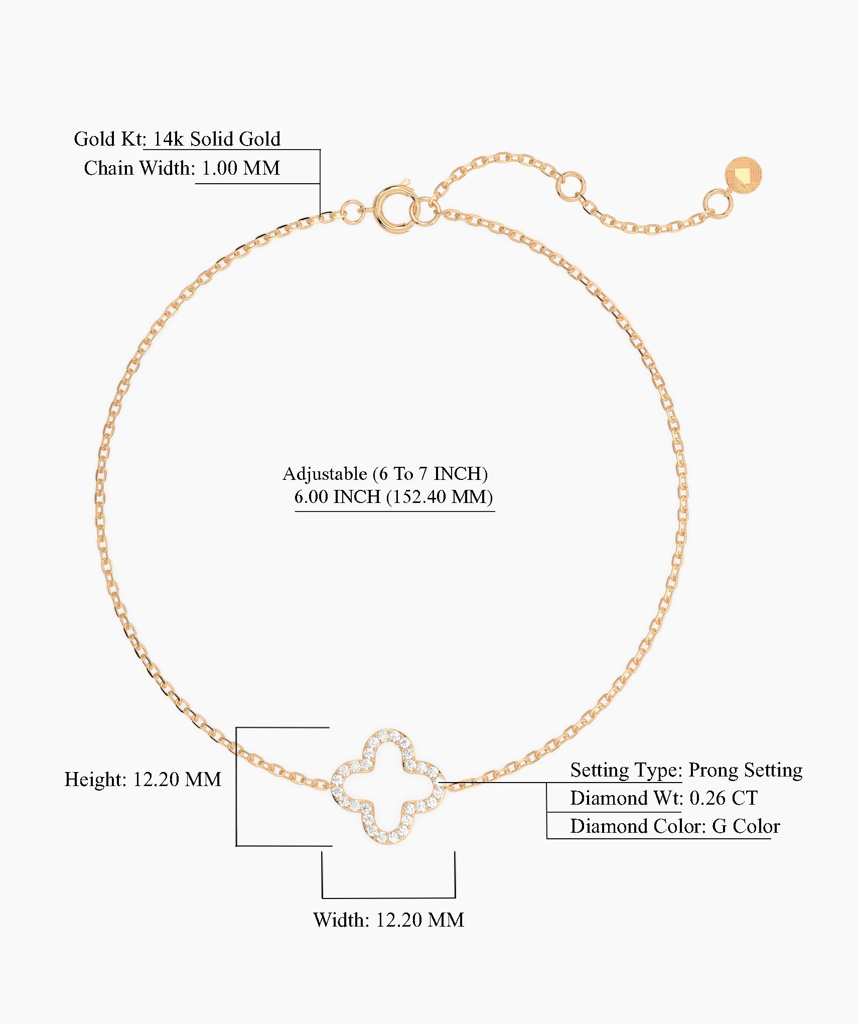 Discover timeless elegance with our 14K Gold Clover Diamond Bracelet. Featuring brilliant diamonds set in your preferred Rose, Yellow, or White Gold, this bracelet transitions seamlessly from daily wear to your most cherished occasions. A minimal yet impactful gift for the modern woman.