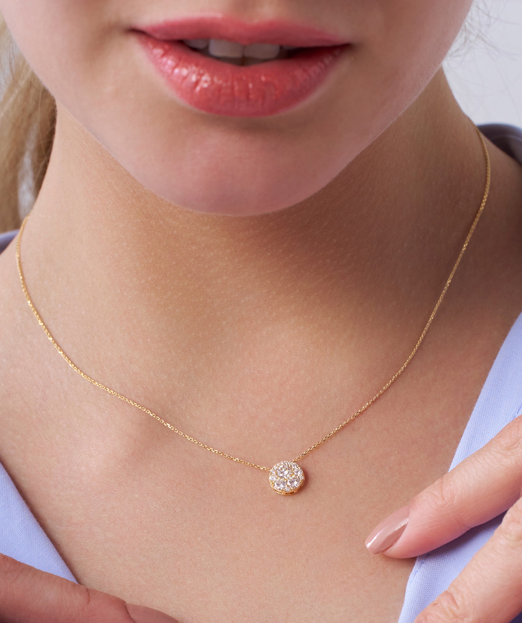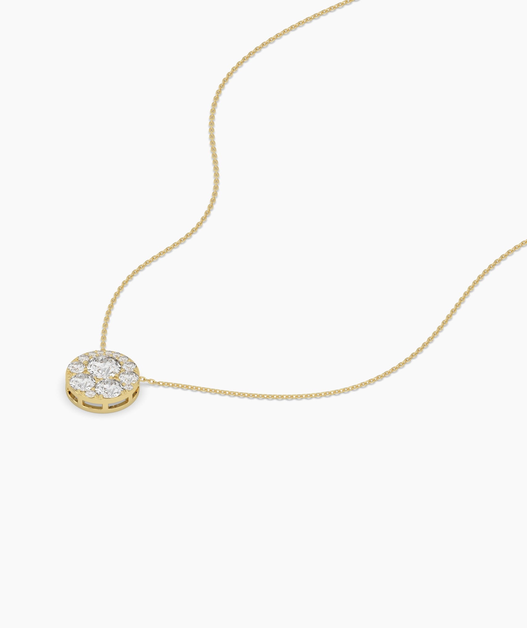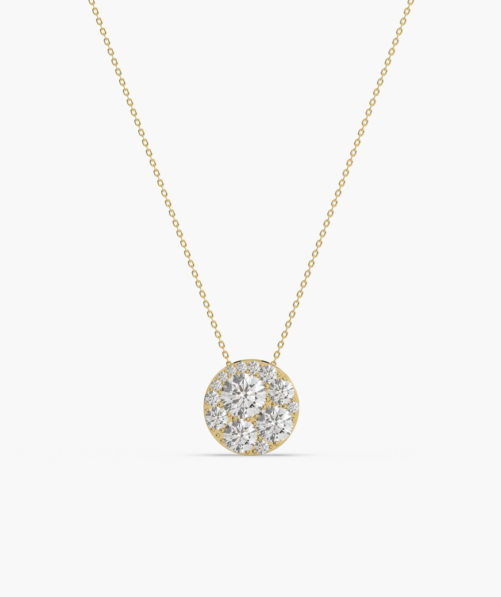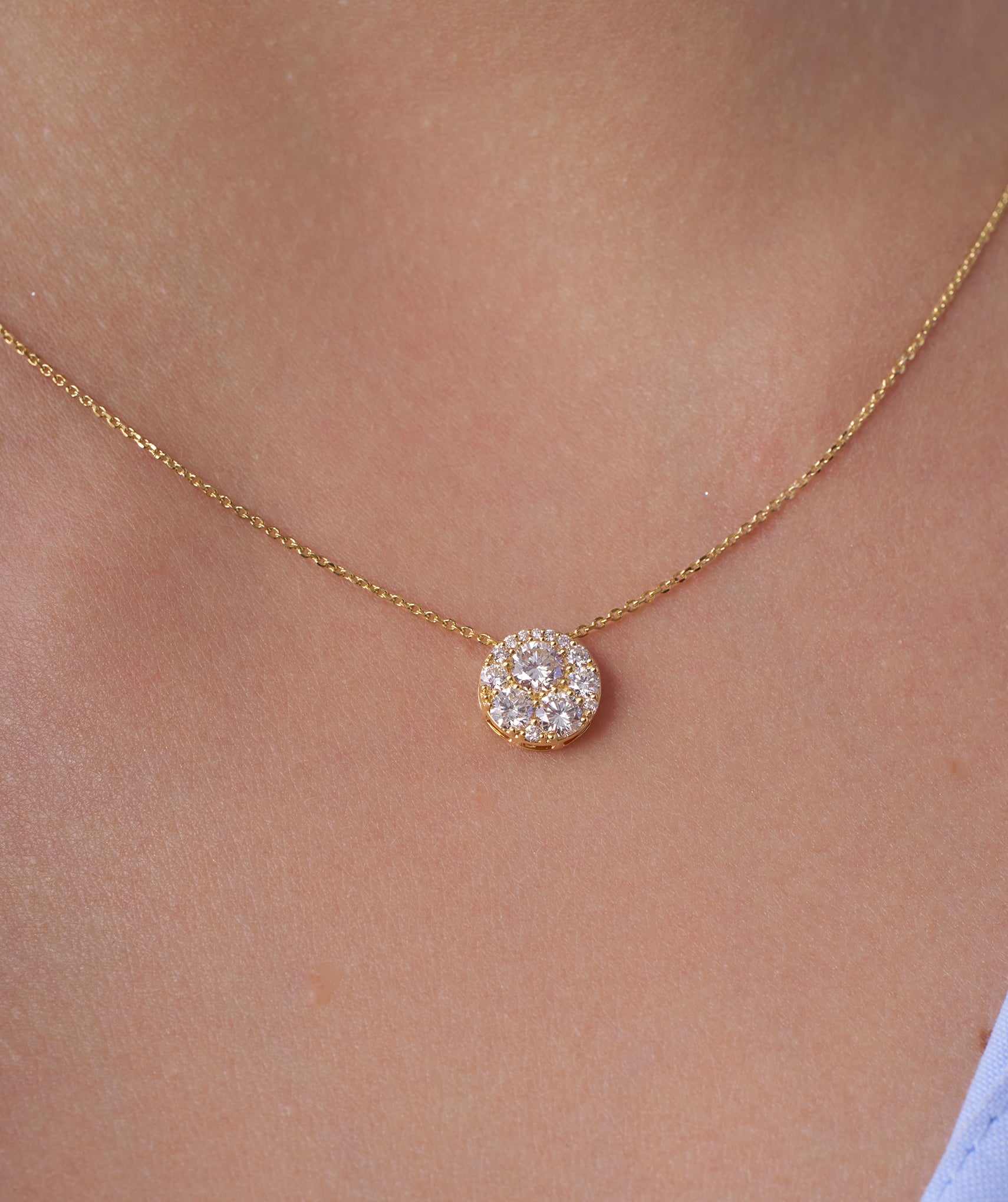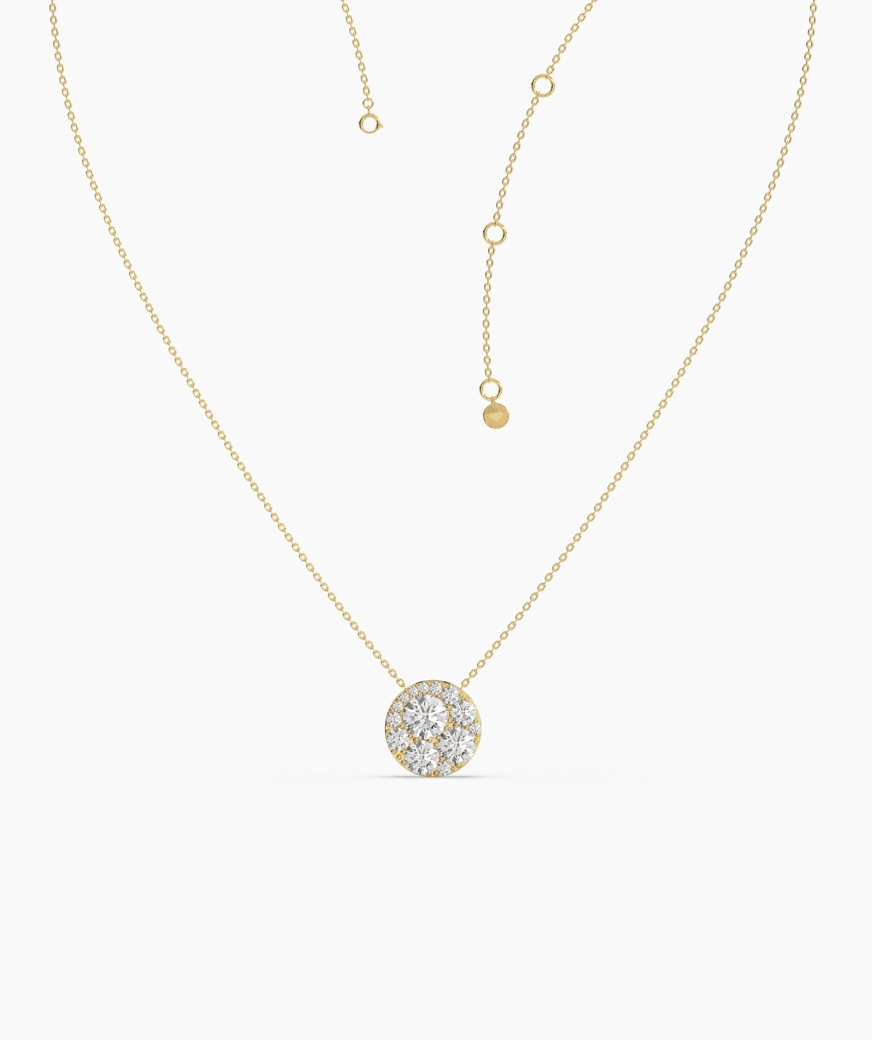 Stunning 14K gold necklace with a diamond cluster pendant, designed to add a luxurious sparkle to any outfit.