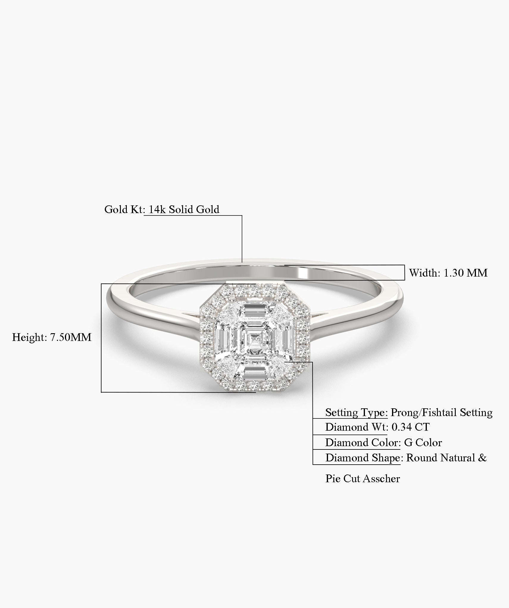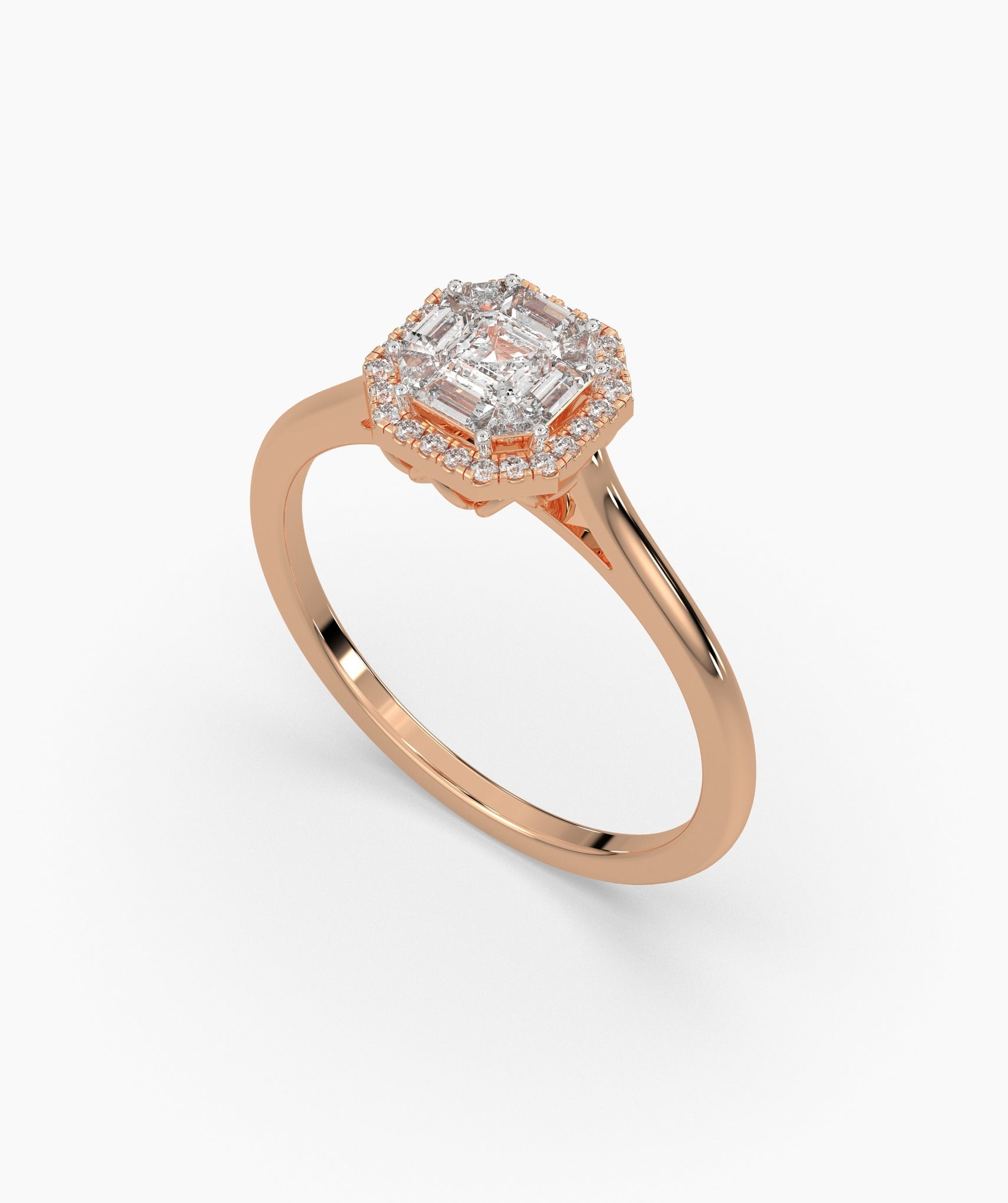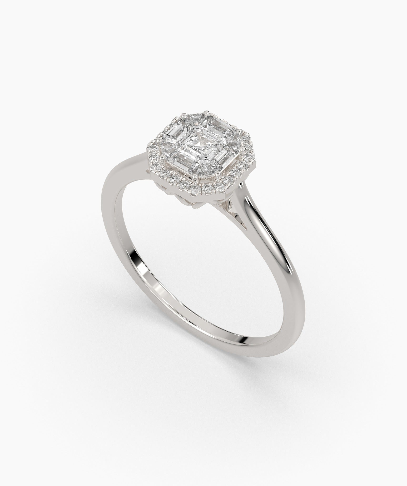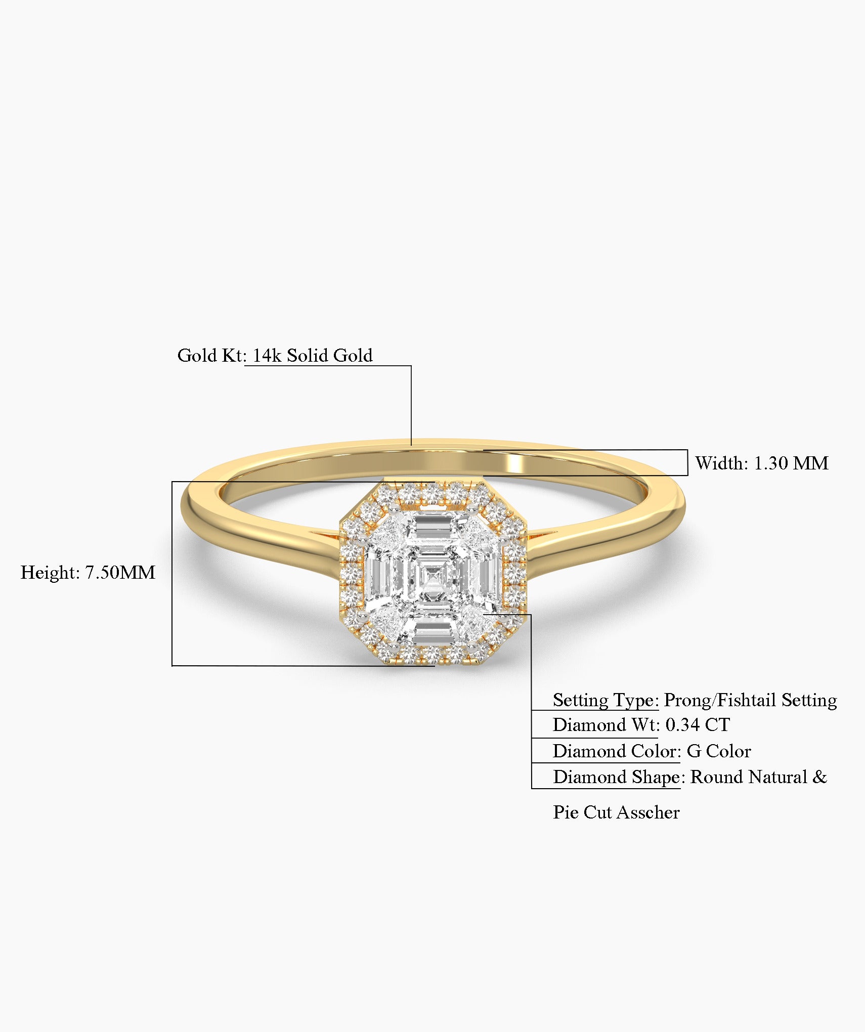 A refined nod to Art Deco elegance—this halo ring showcases an Asscher-cut diamond set in warm 14K gold.