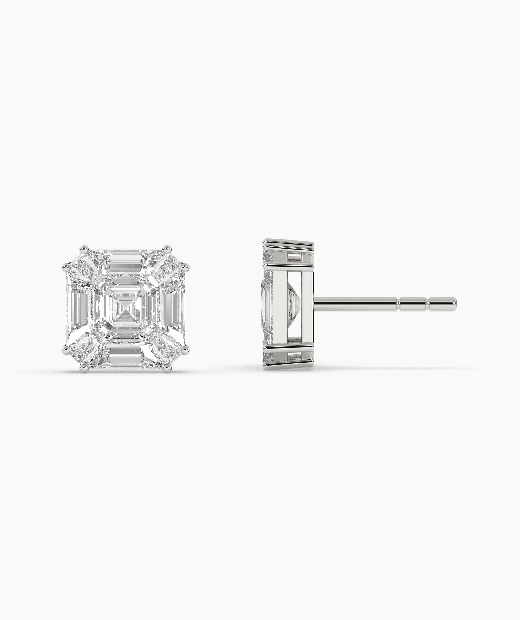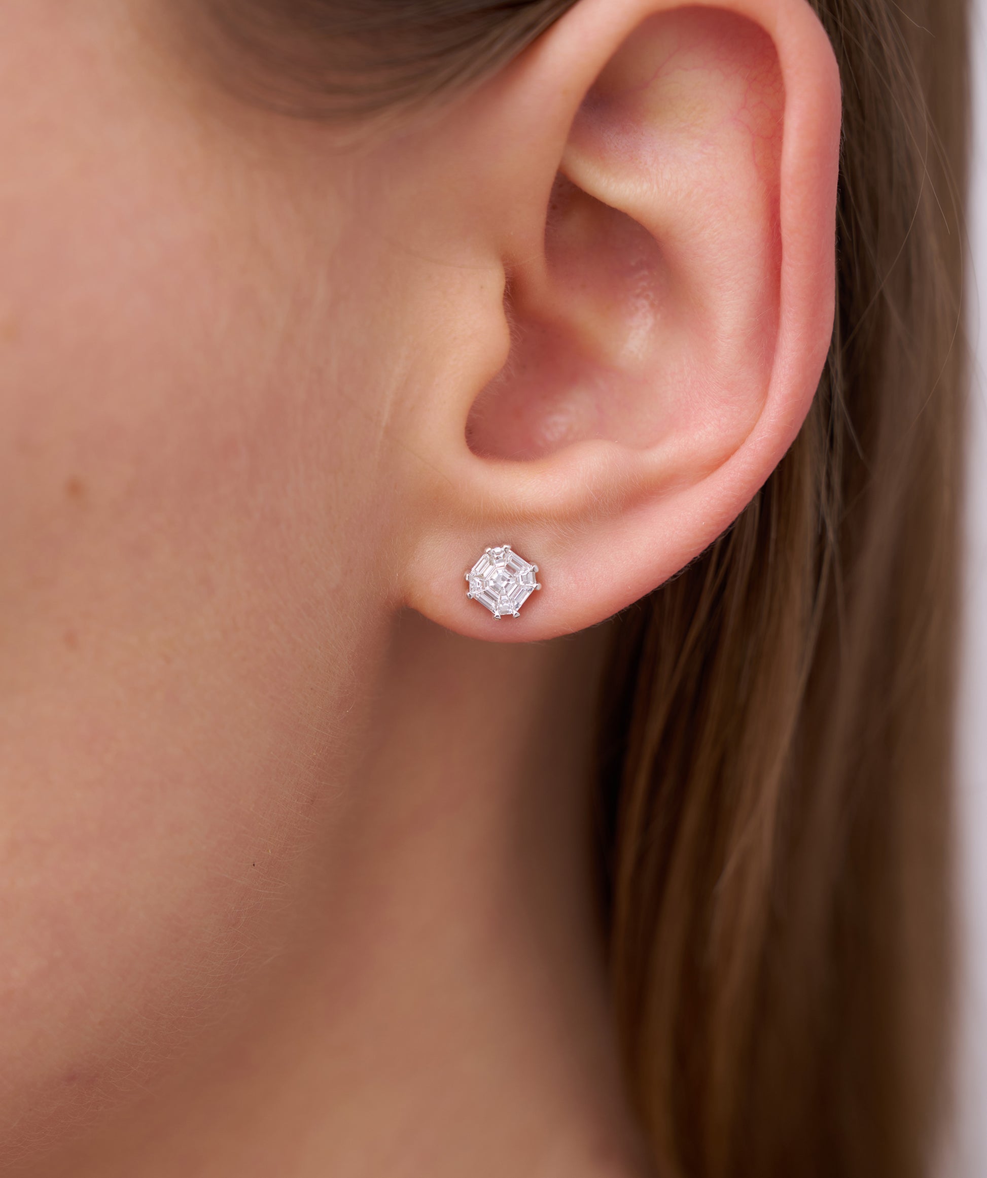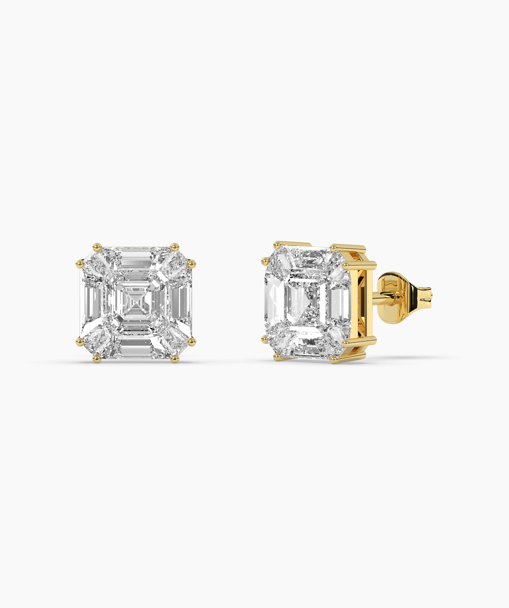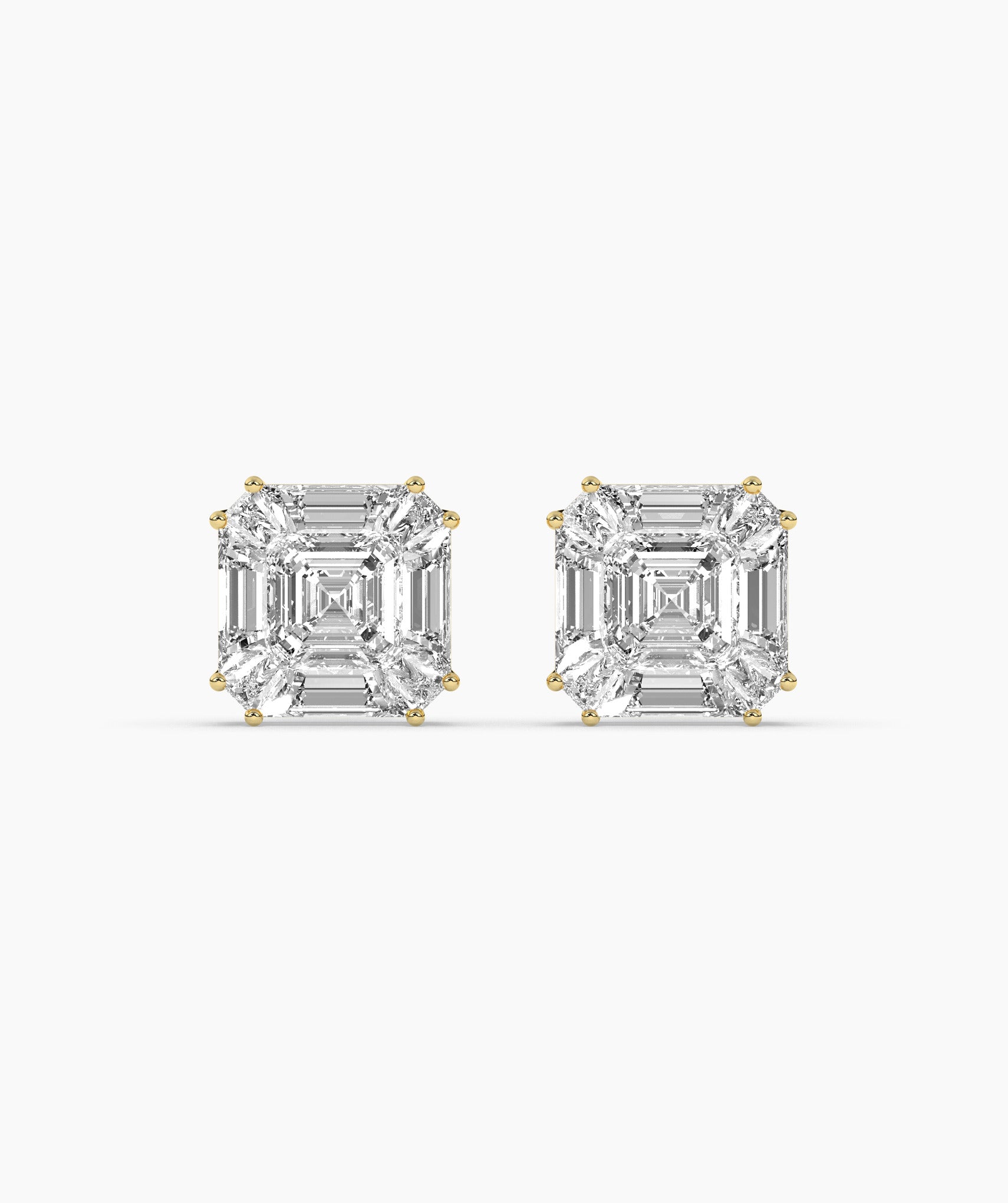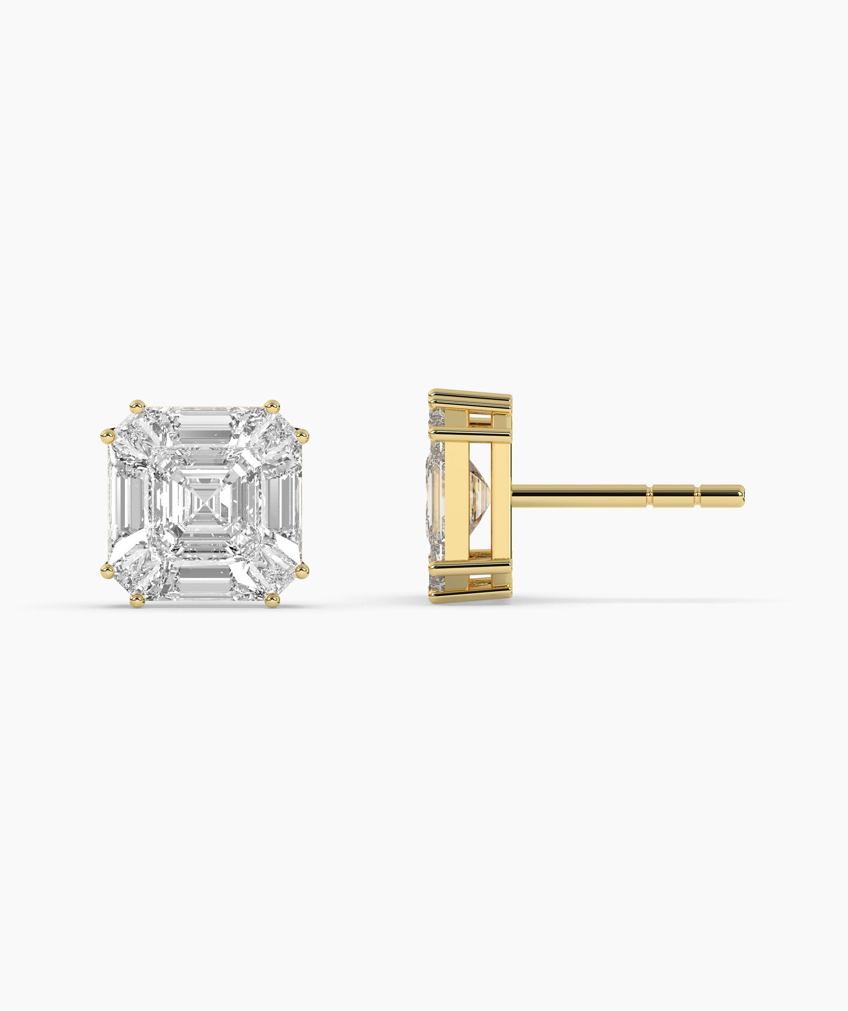 Showcase art deco elegance in a contemporary way—these emerald-cut diamonds exude timeless charm in a warm gold setting.