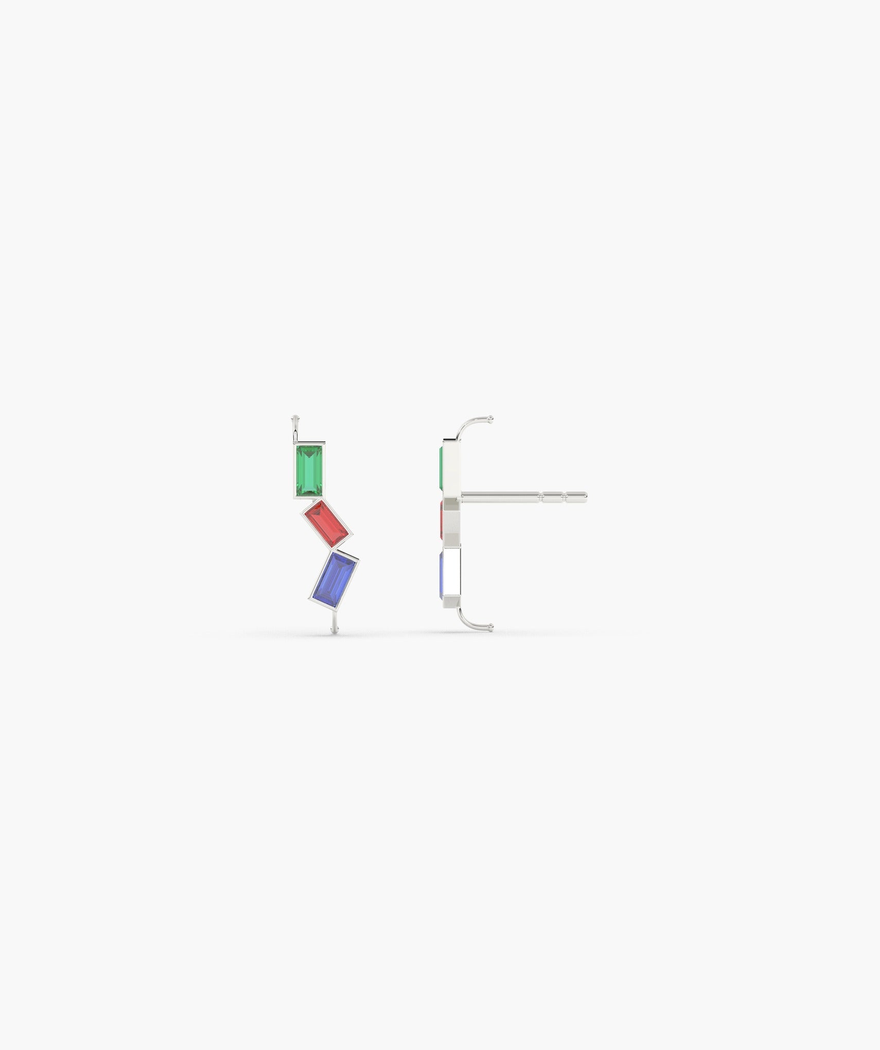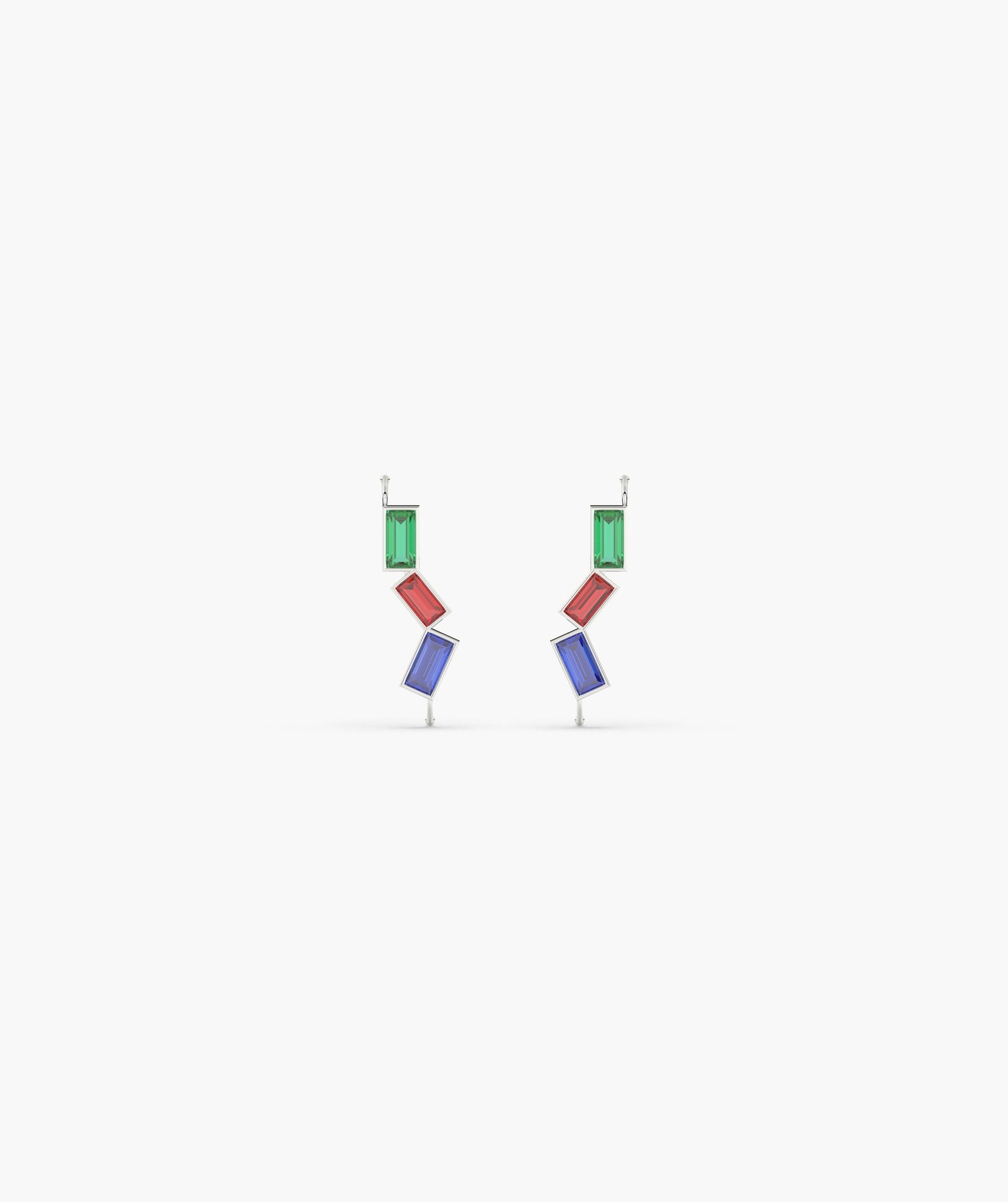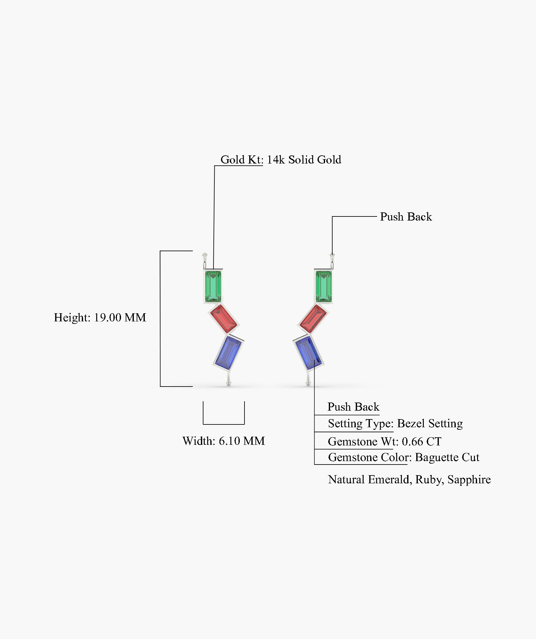 Elevate your style with these 14K solid gold earrings, designed with a unique sequence of multicolored gemstone inlays.