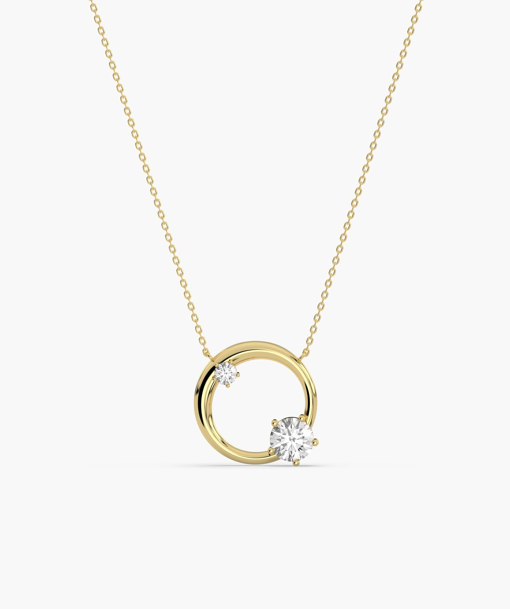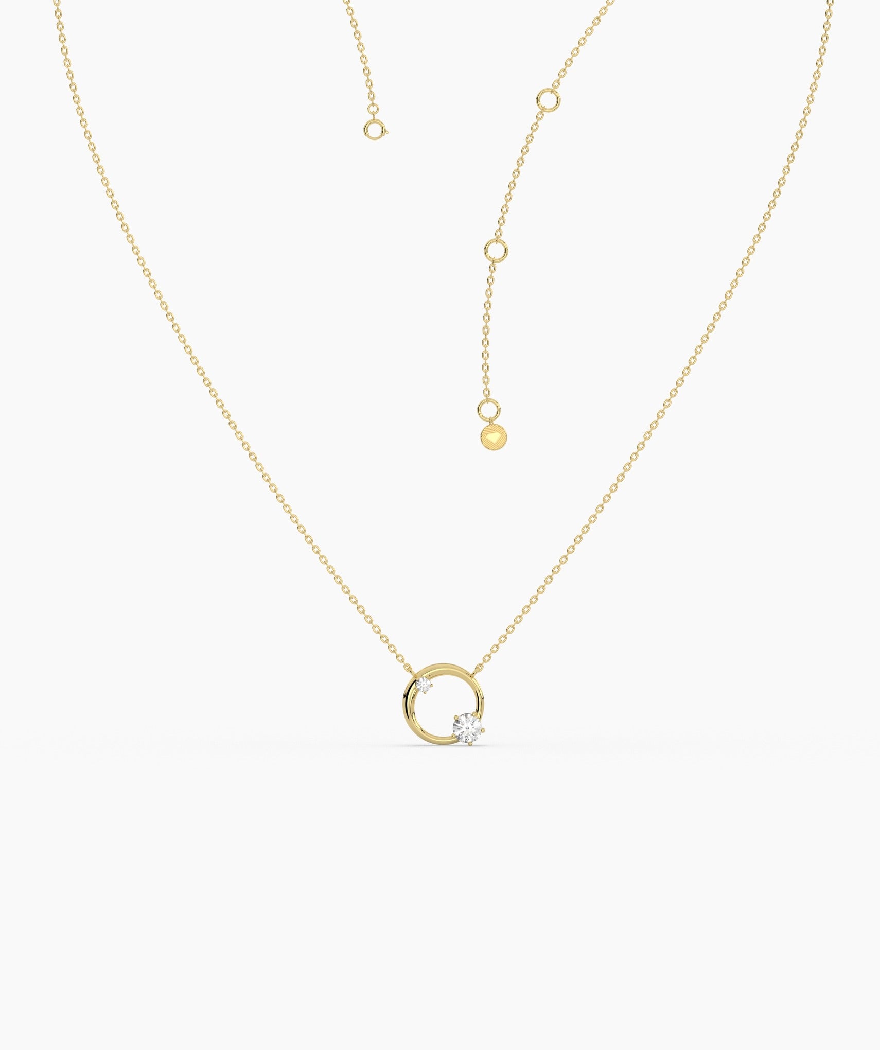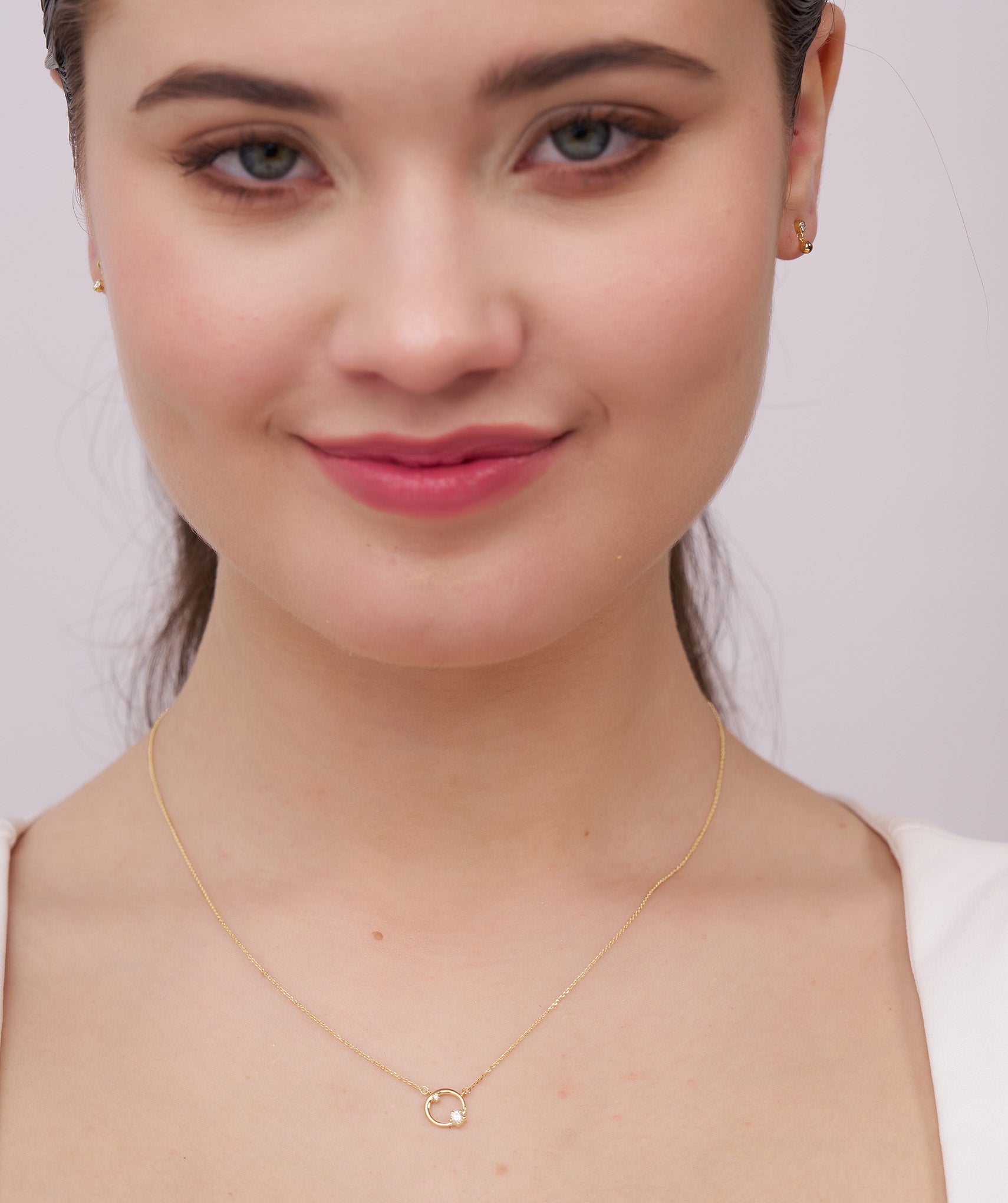 This minimalist gold circle pendant with sparkling diamonds is perfect for everyday elegance or a thoughtful gift.