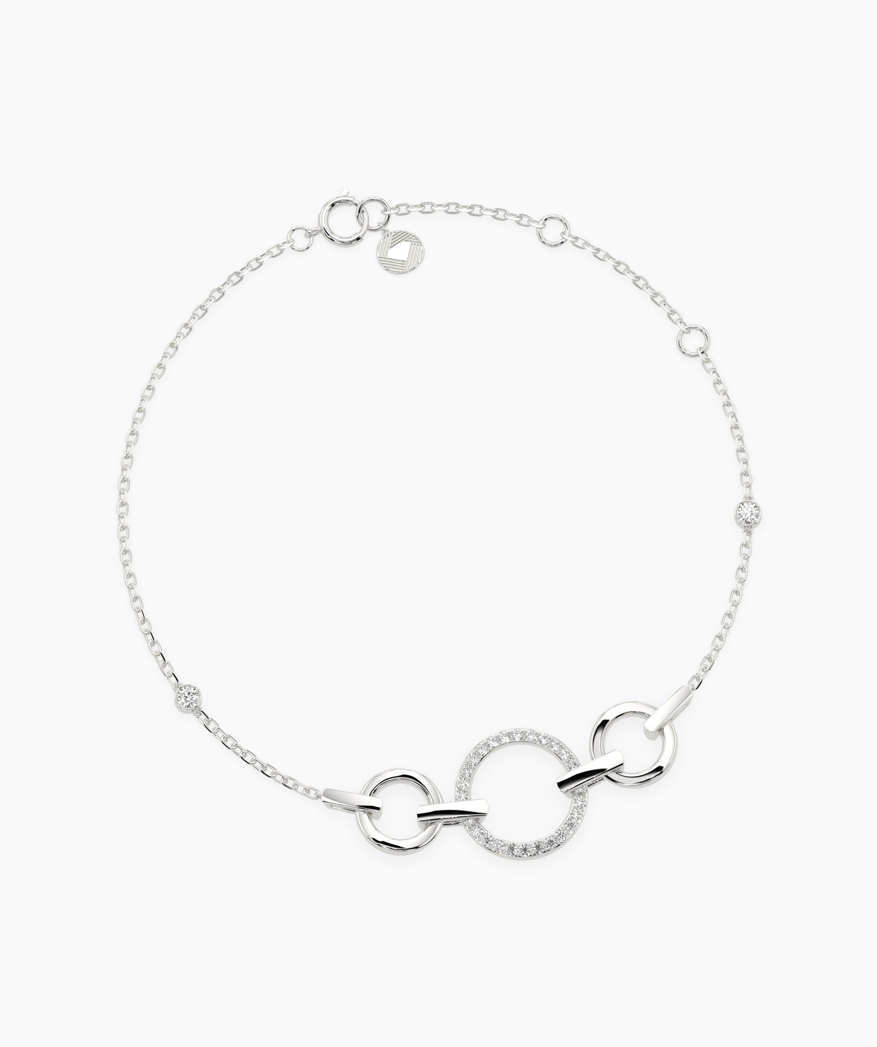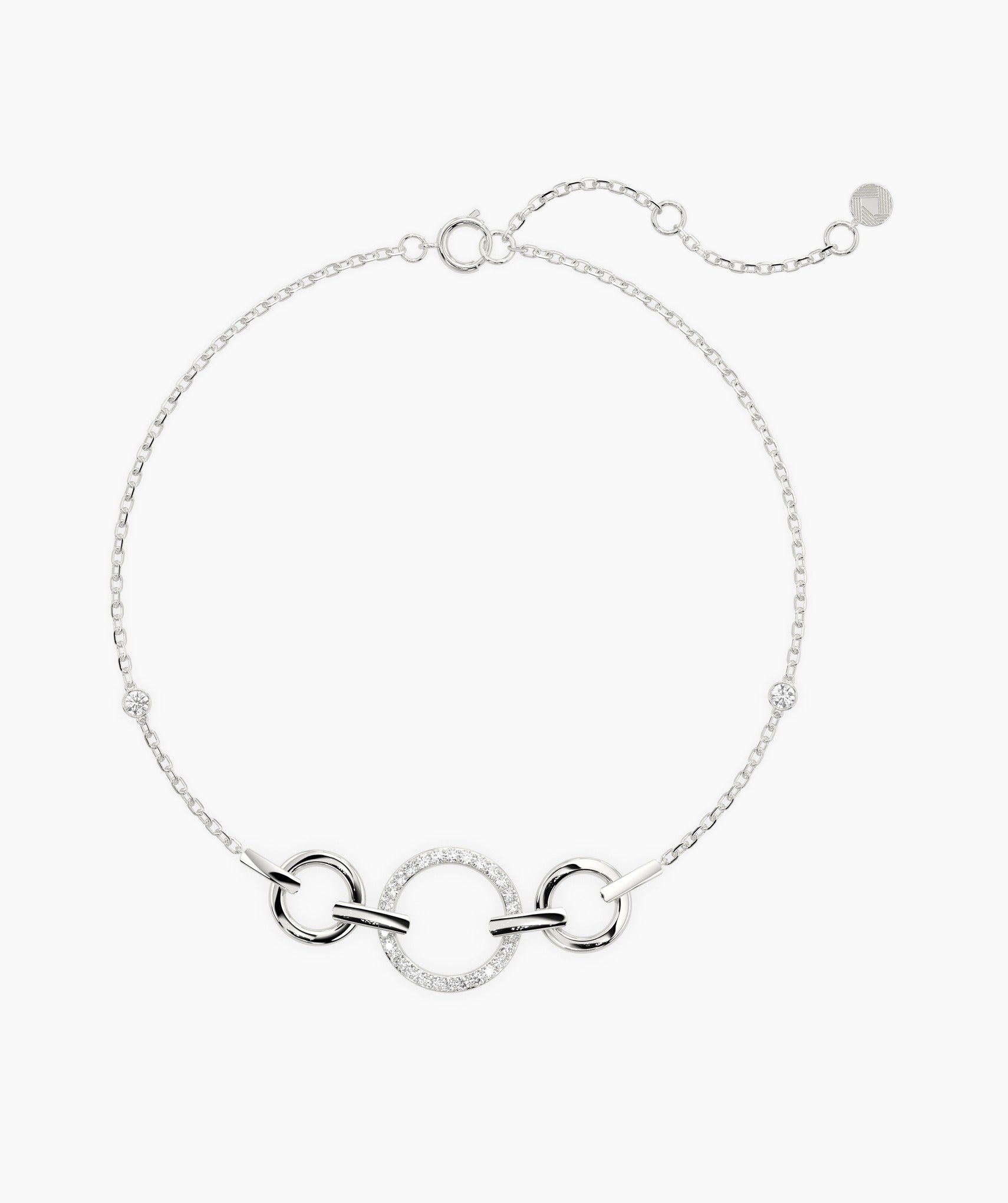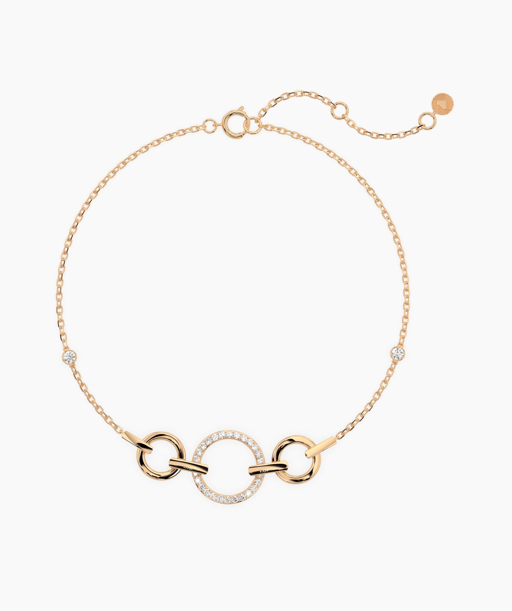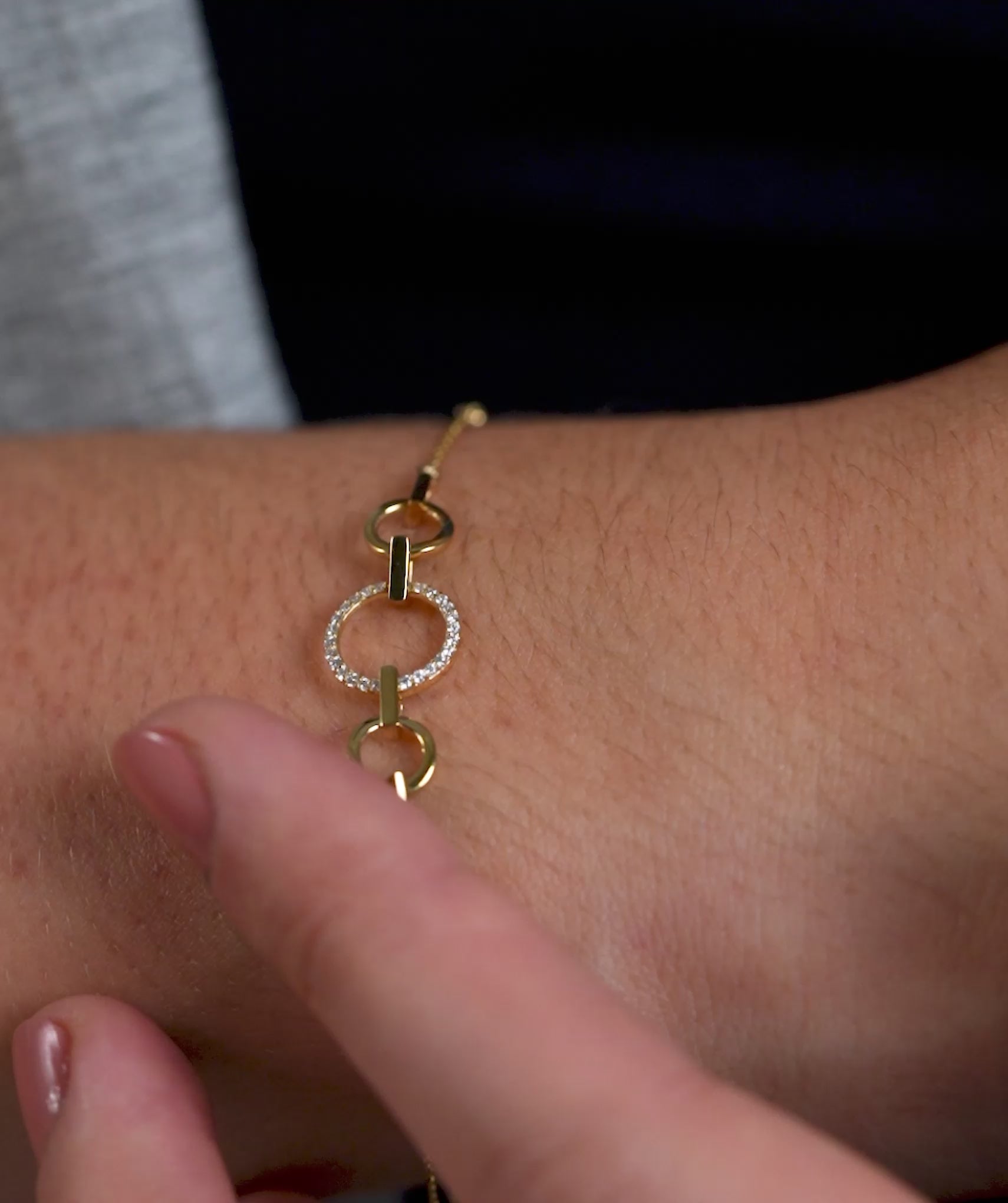 Embrace elegance with this 14K solid gold bracelet, featuring a unique design of interconnected circles, one adorned with sparkling diamonds.