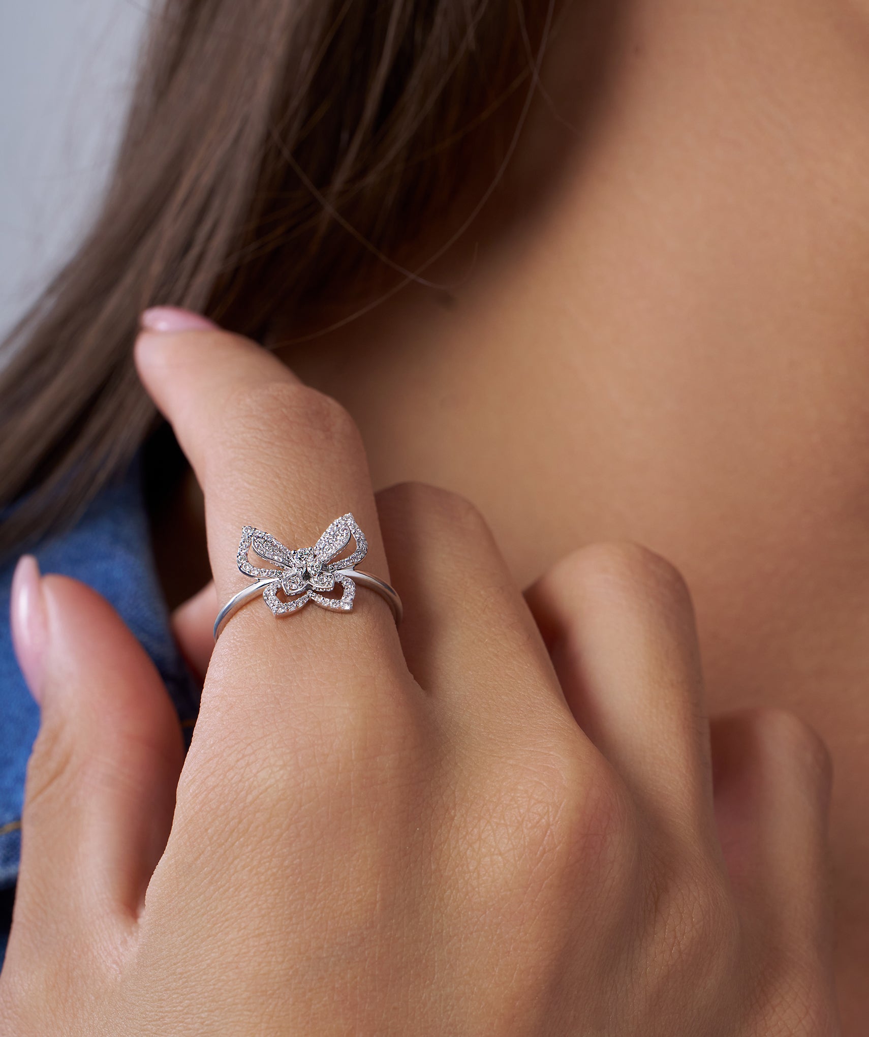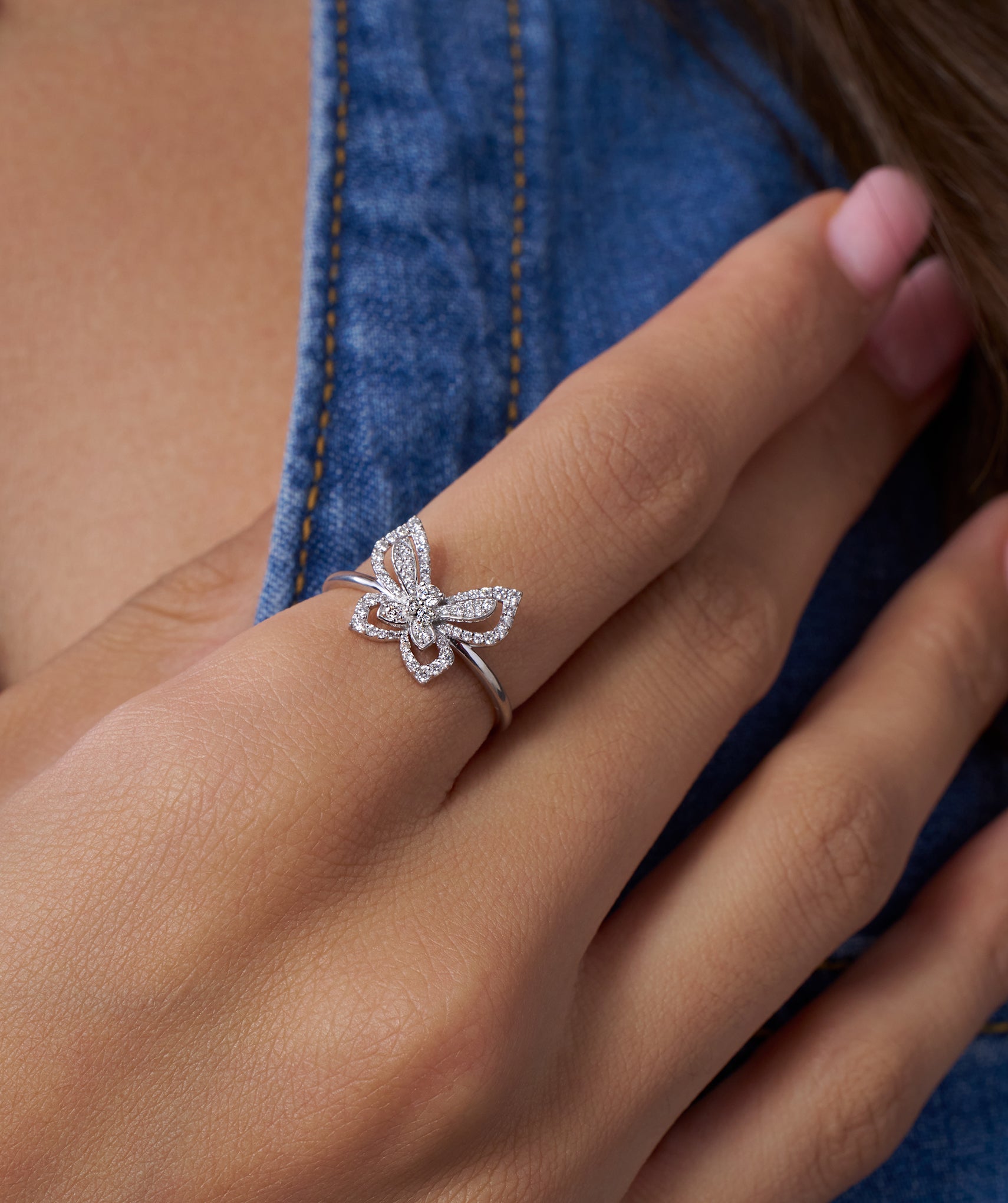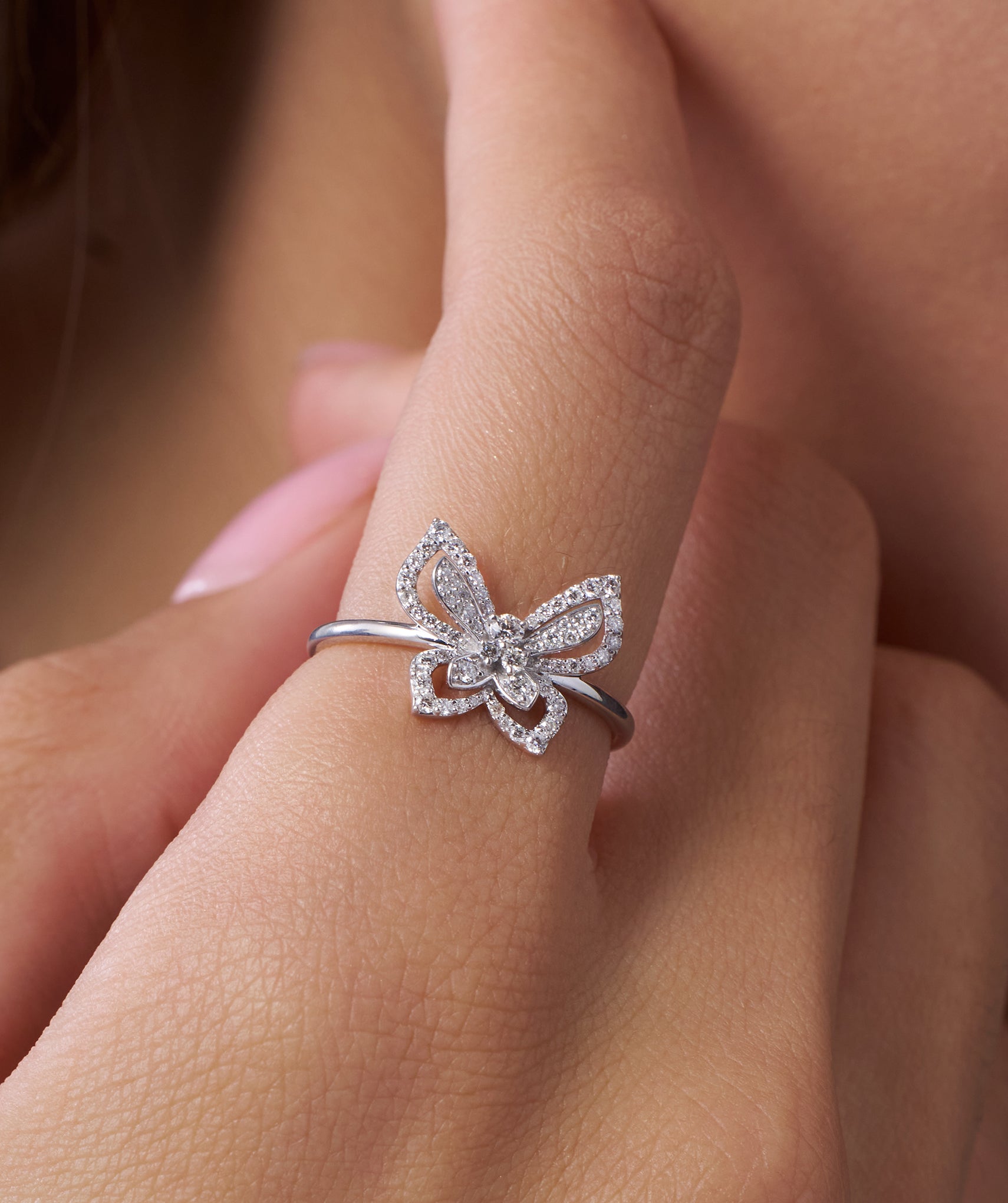 Embrace a look that feels both substantial and weightless with a design that captures the essence of freedom. This Open Diamond Butterfly Ring features an intricate, cut-out wing silhouette that allows light to pass through, amplifying the brilliance of the 0.33ct G-color natural diamonds. Expertly crafted in 14K solid gold, the statement motif spans 12mm in height yet rests on a slender 1.40mm band for a comfortable, barely-there feel. The secure prong setting highlights the unique open-work structure, making it a perfect conversation starter for cocktail hours or a signature piece for your daily wardrobe. Available in yellow, white, and rose gold to let your personal style soar.