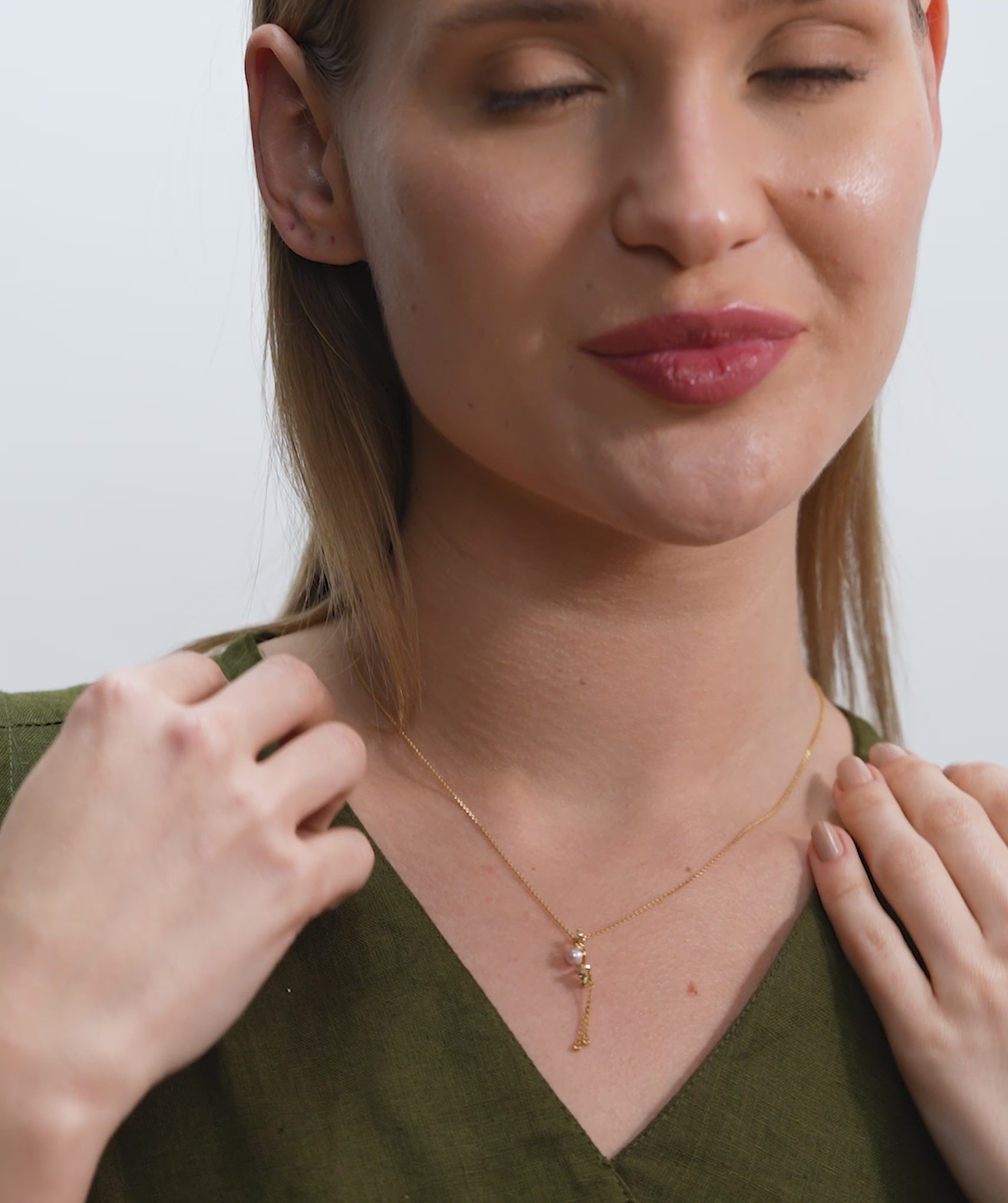 Pearl & Green Diamond Vine Drop Necklace