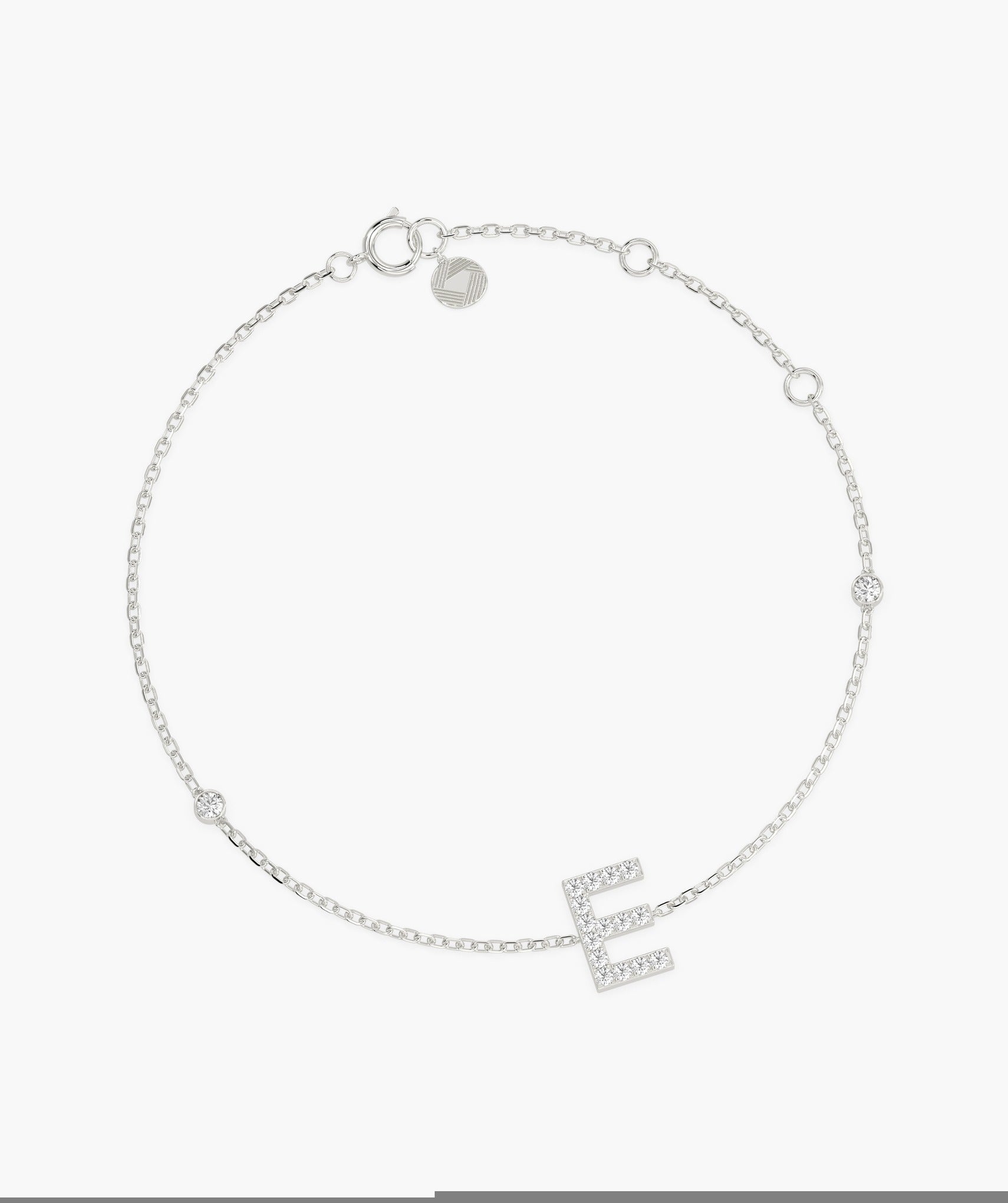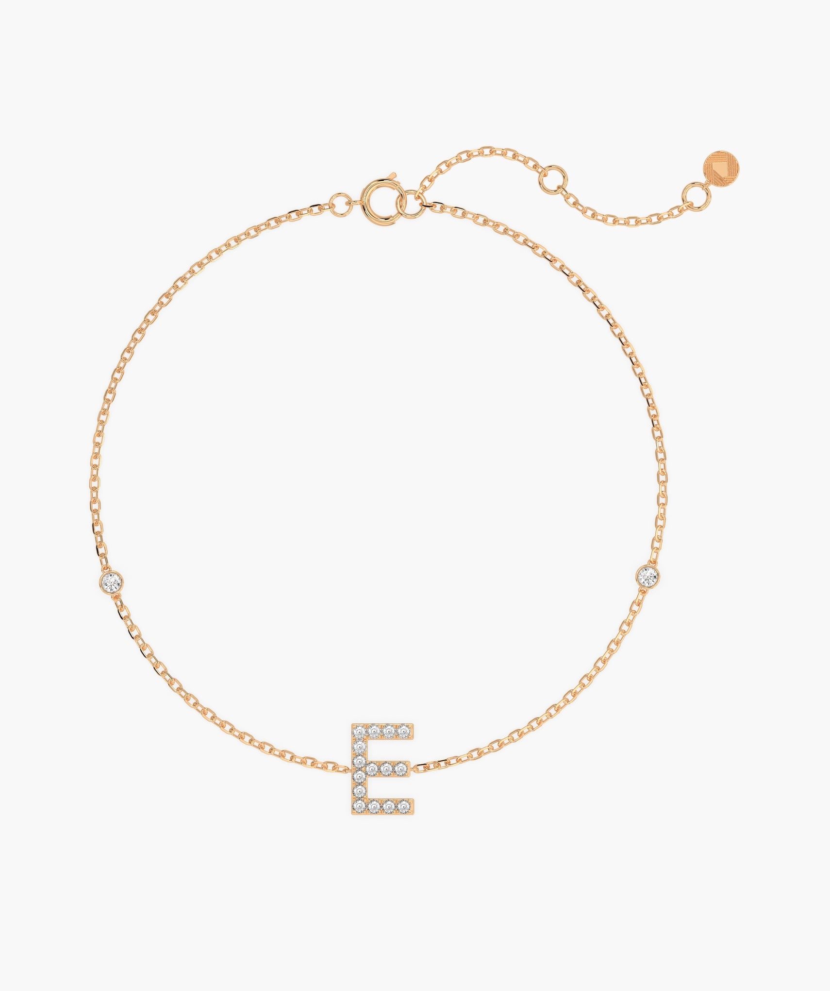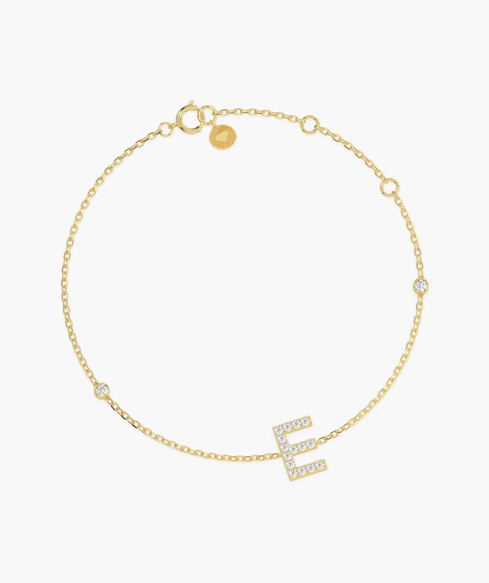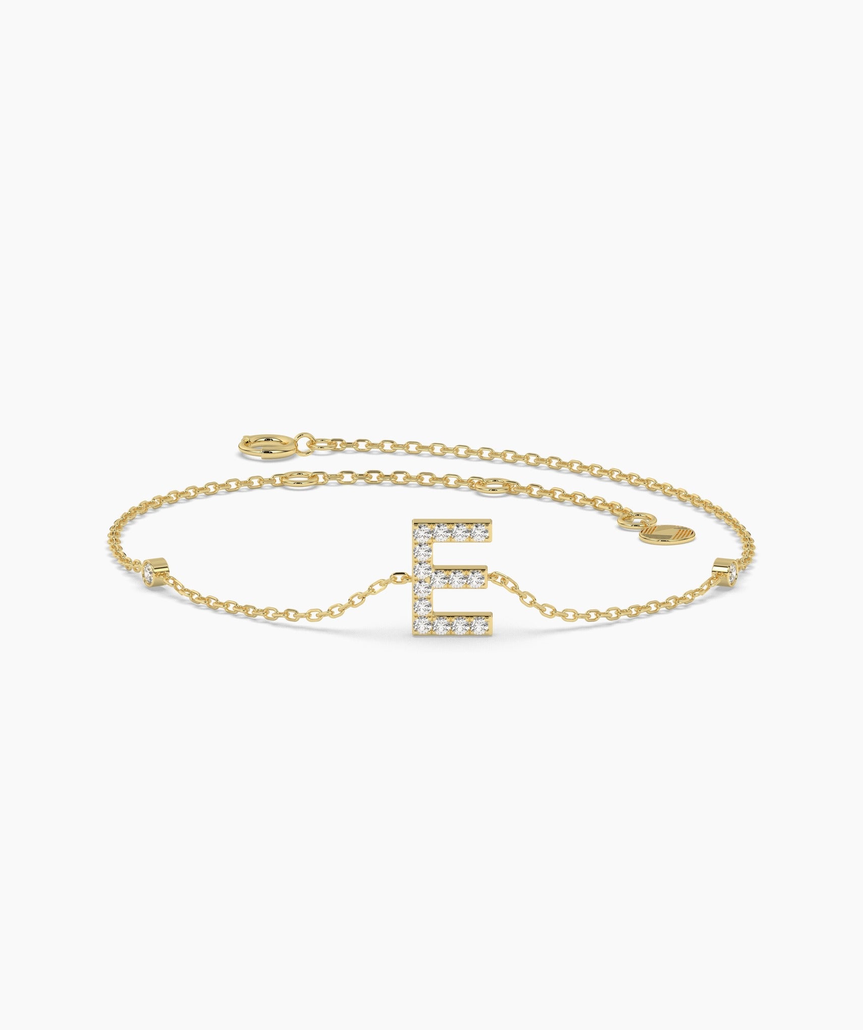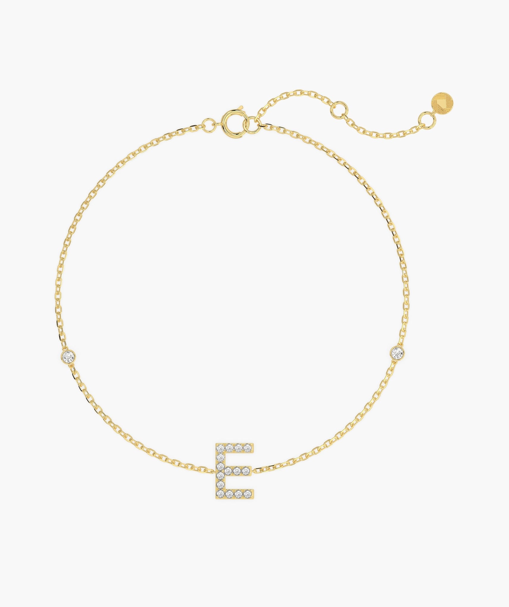 This 14K gold bracelet with a diamond-encrusted 'E' combines personal significance with luxury, making it an ideal gift or personal keepsake.