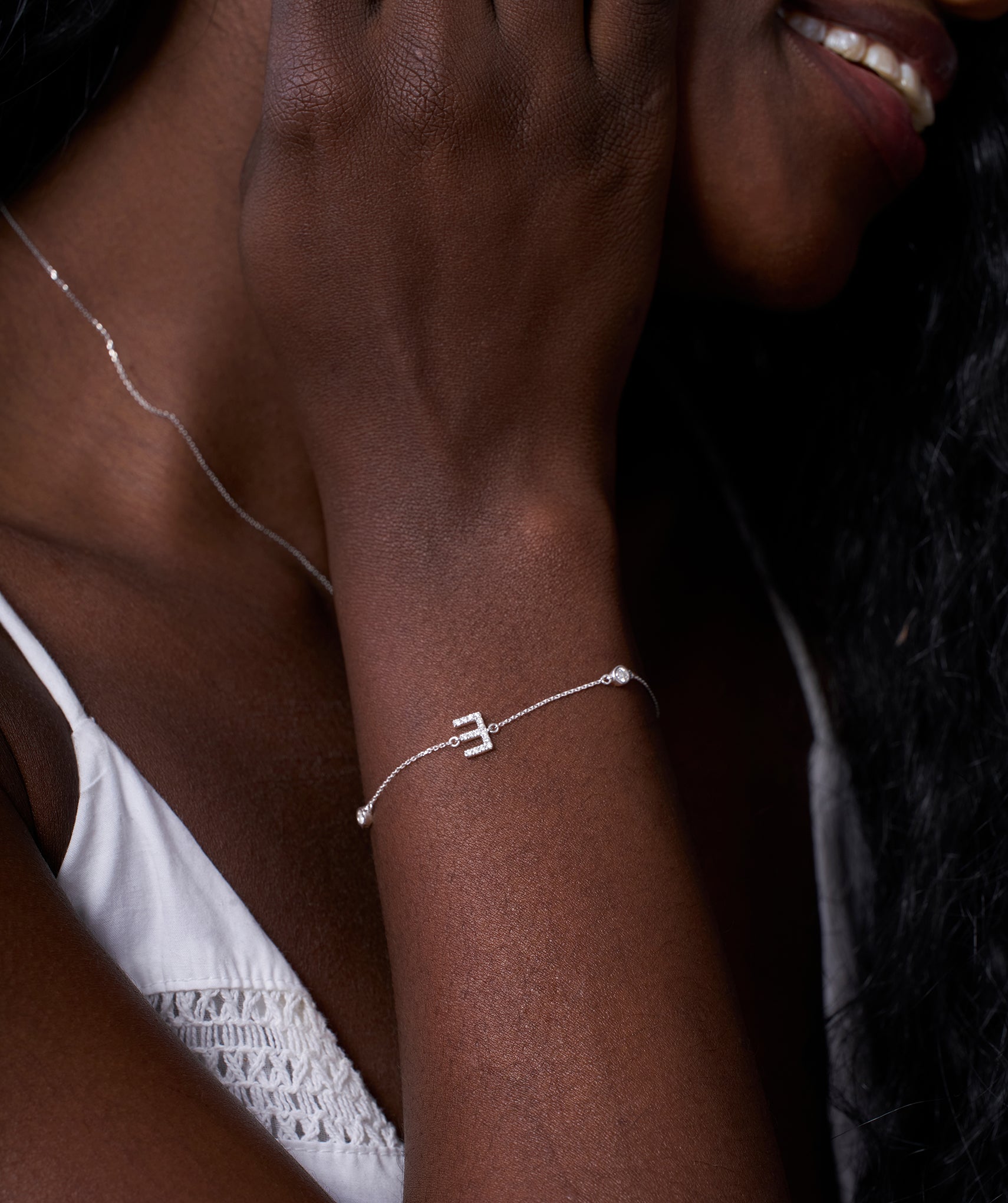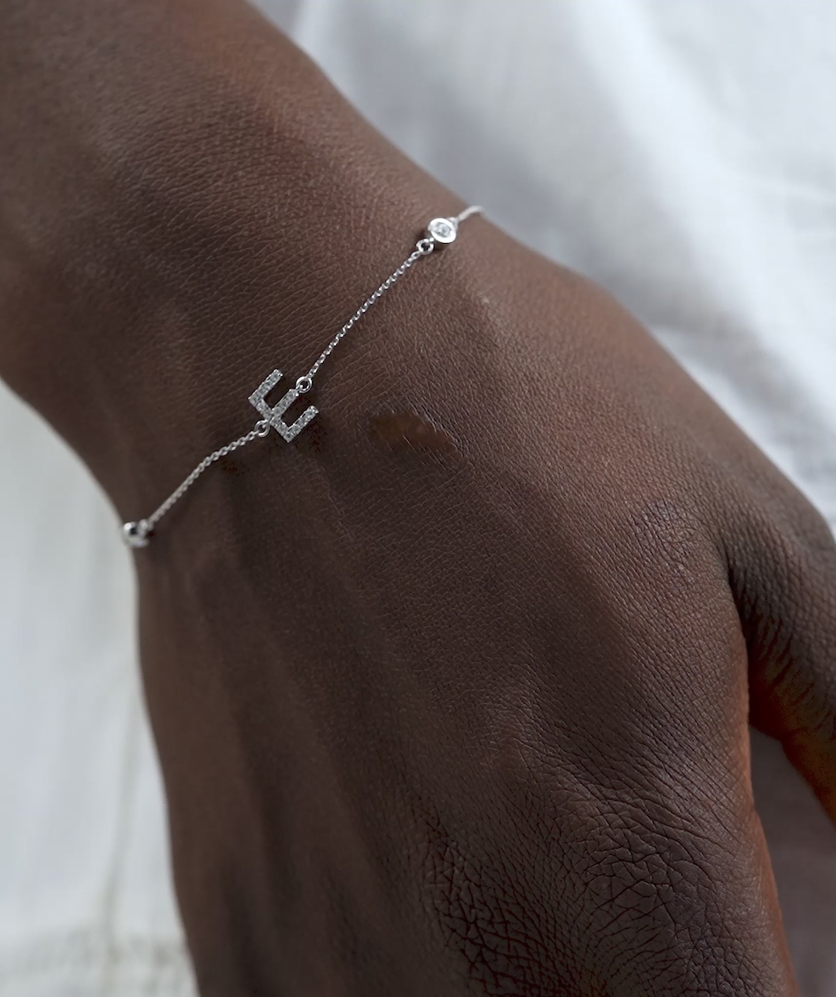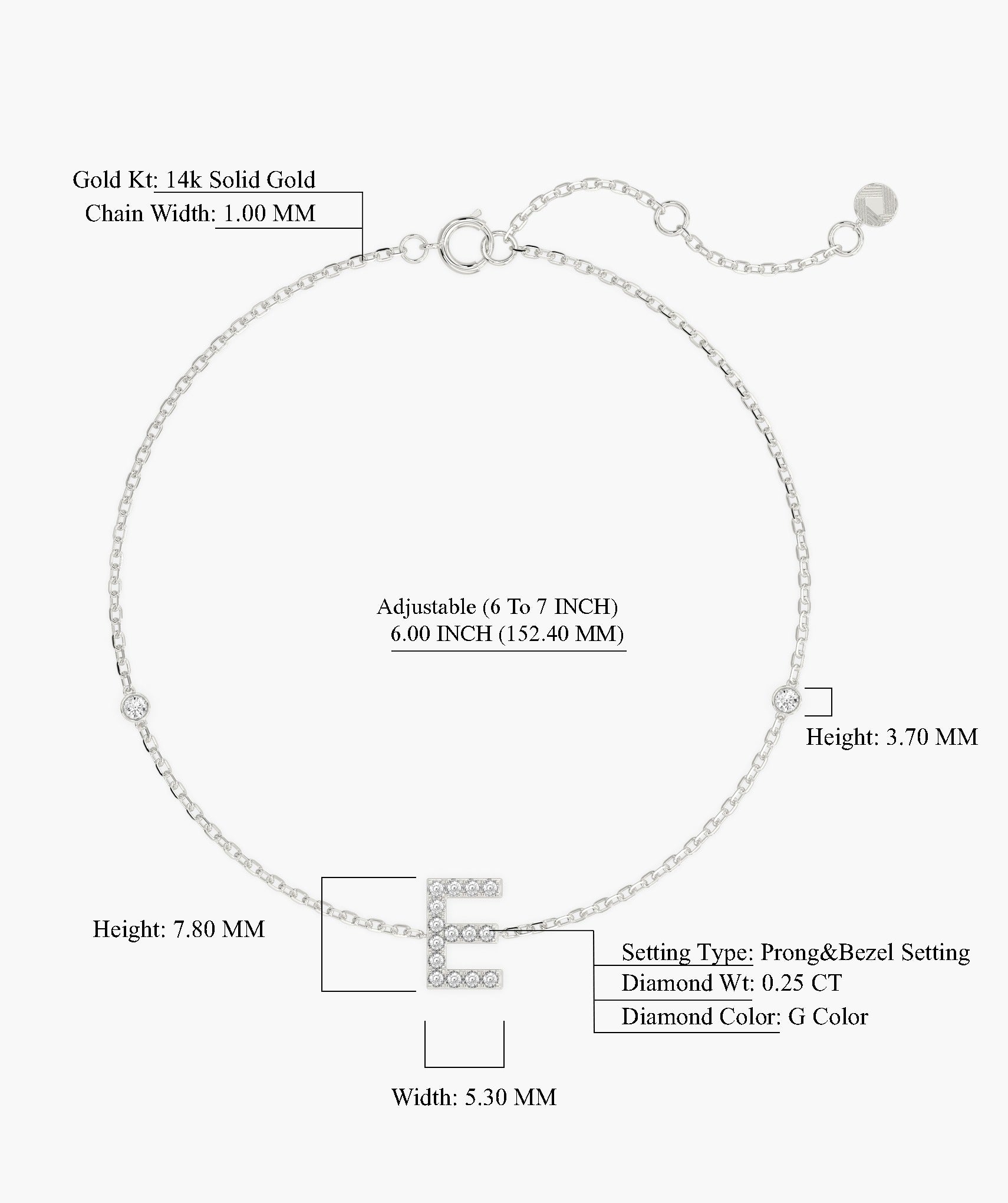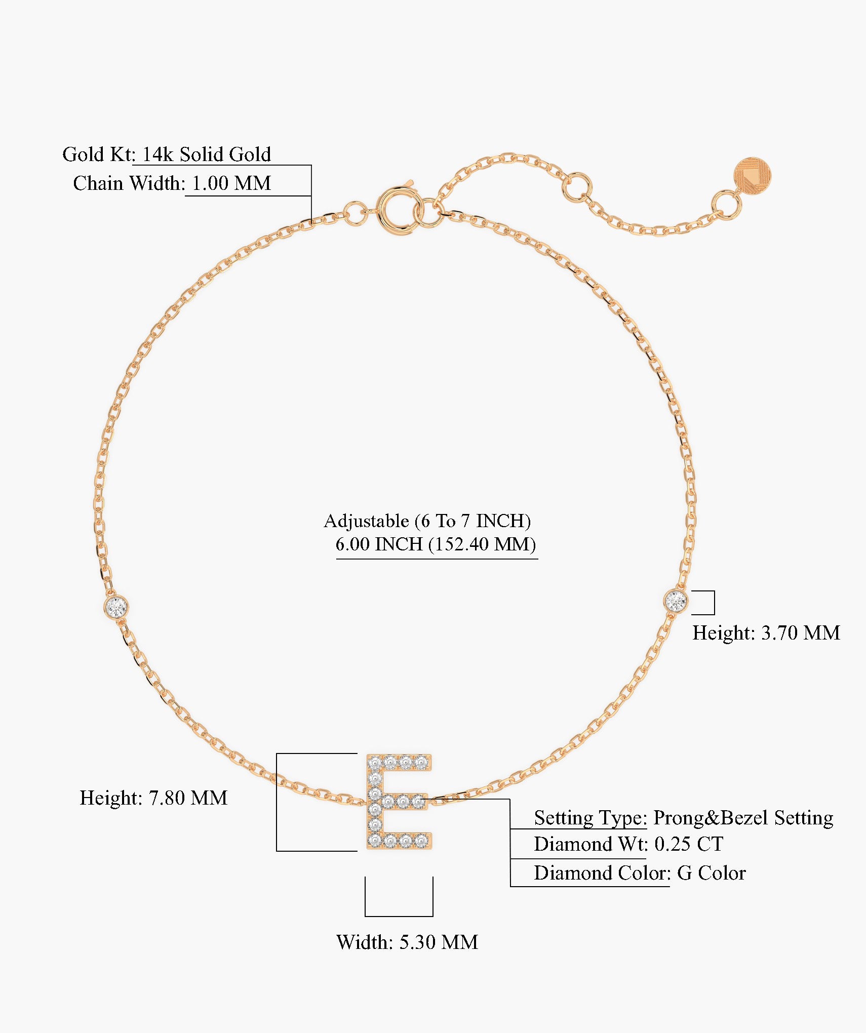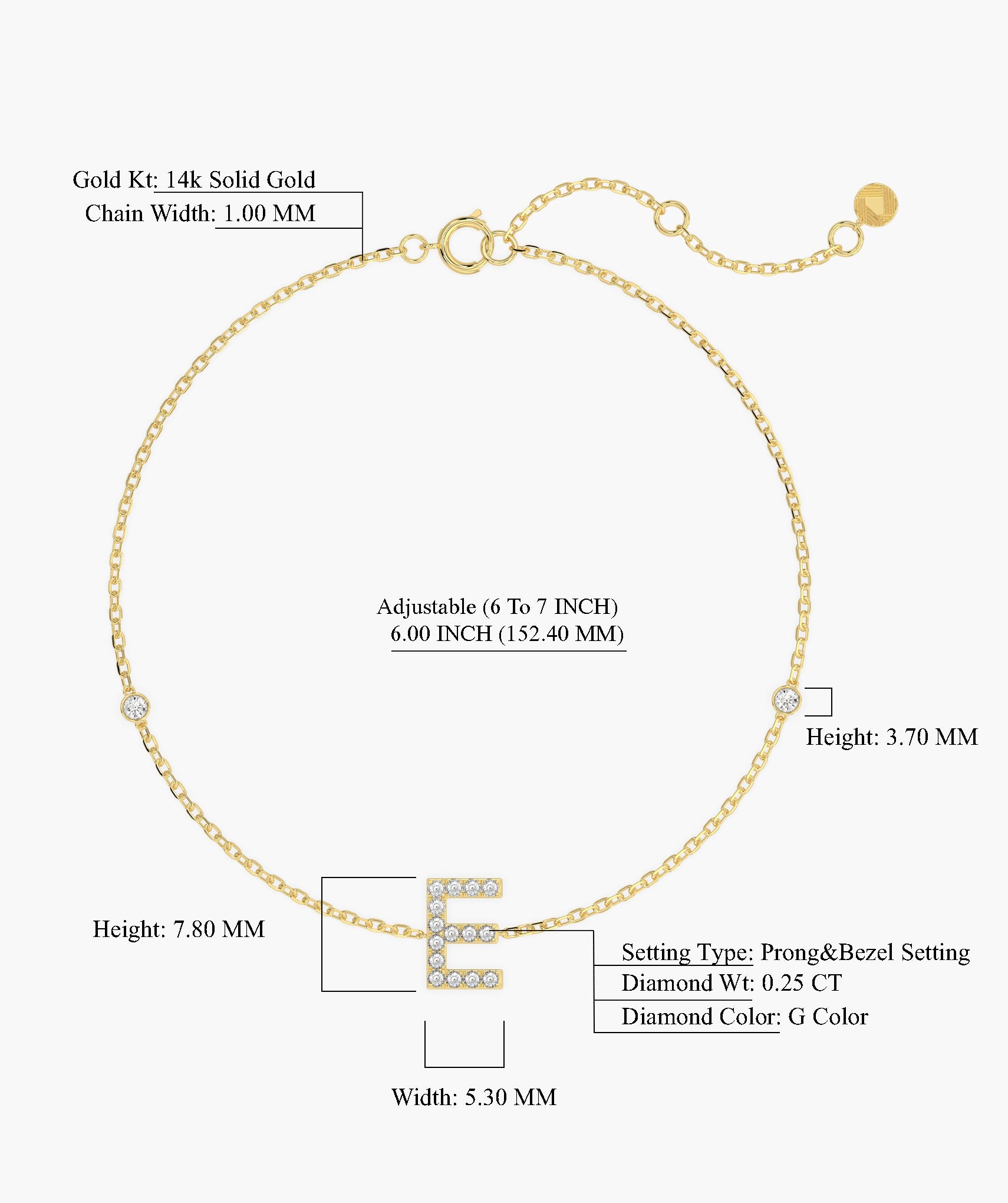 This 14K gold bracelet with a diamond-encrusted 'E' combines personal significance with luxury, making it an ideal gift or personal keepsake.