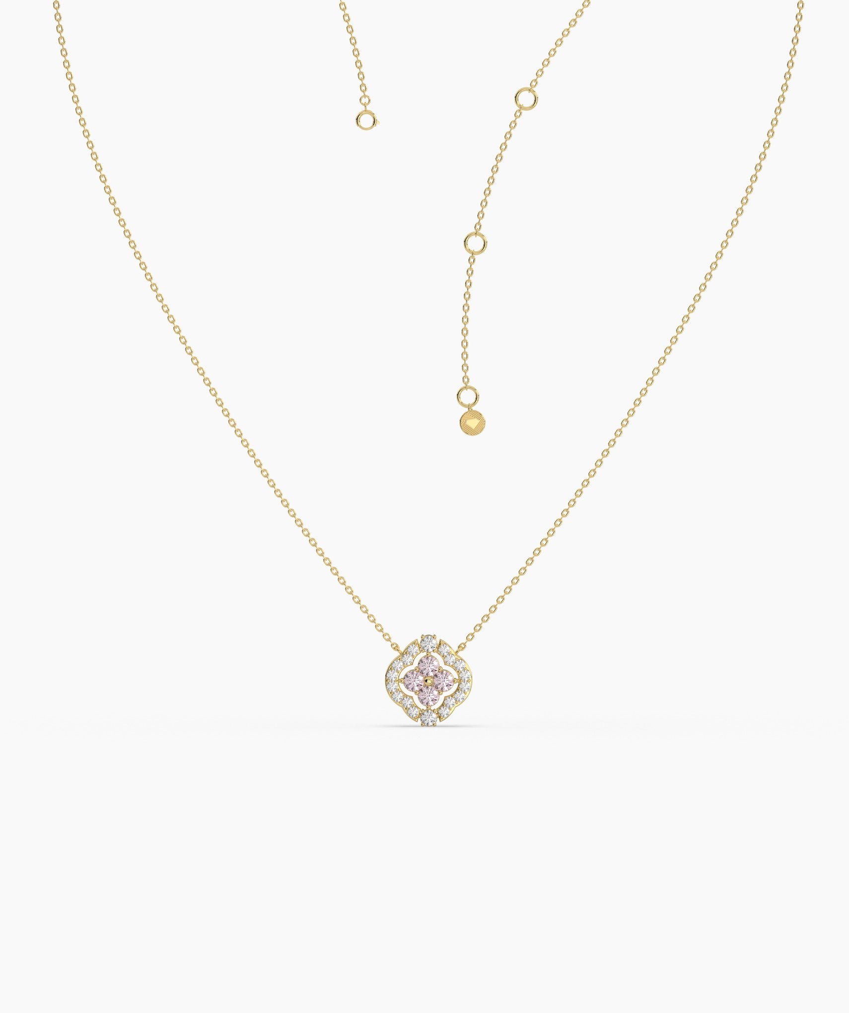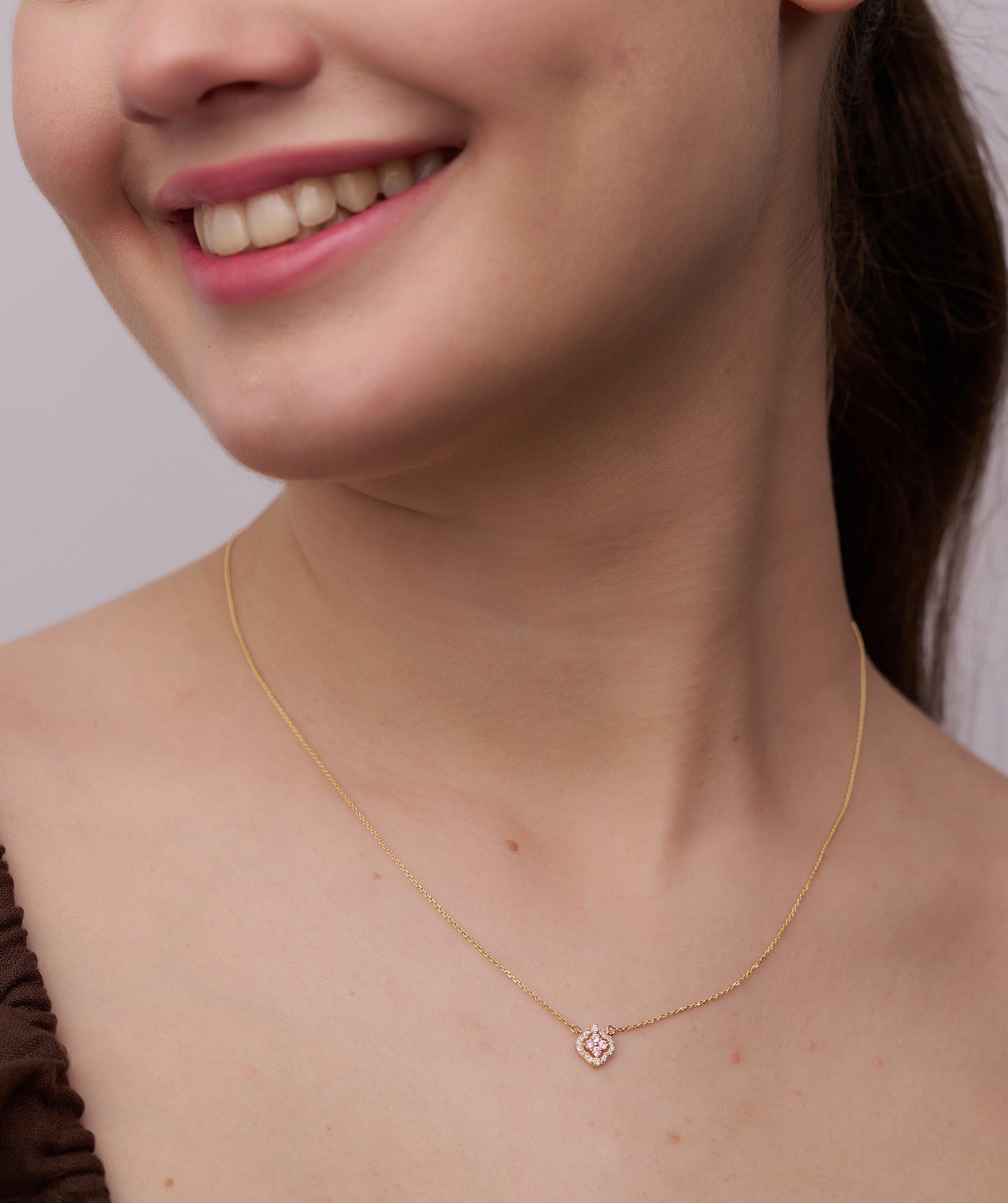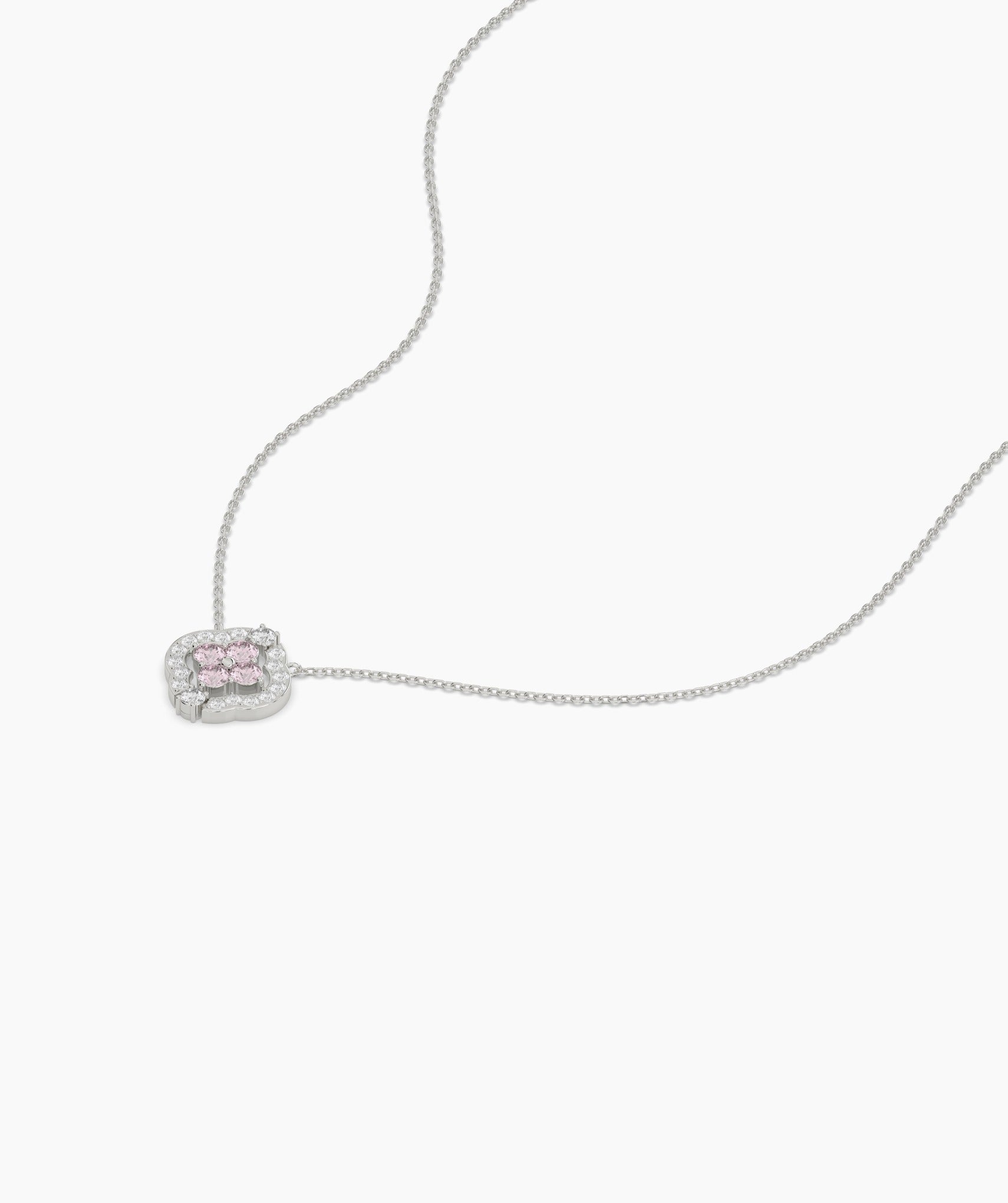 Elevate any look with this floral-inspired necklace, where a rosy gem blooms at the center, framed by brilliant diamond accents.