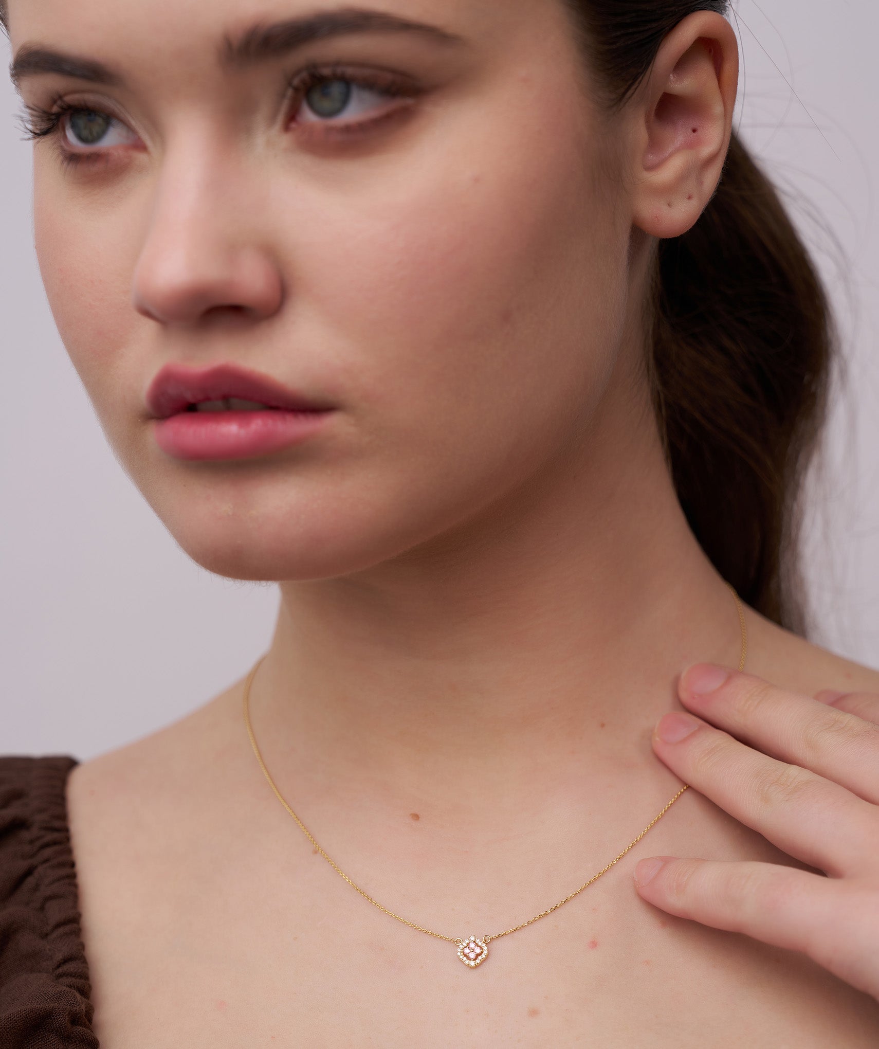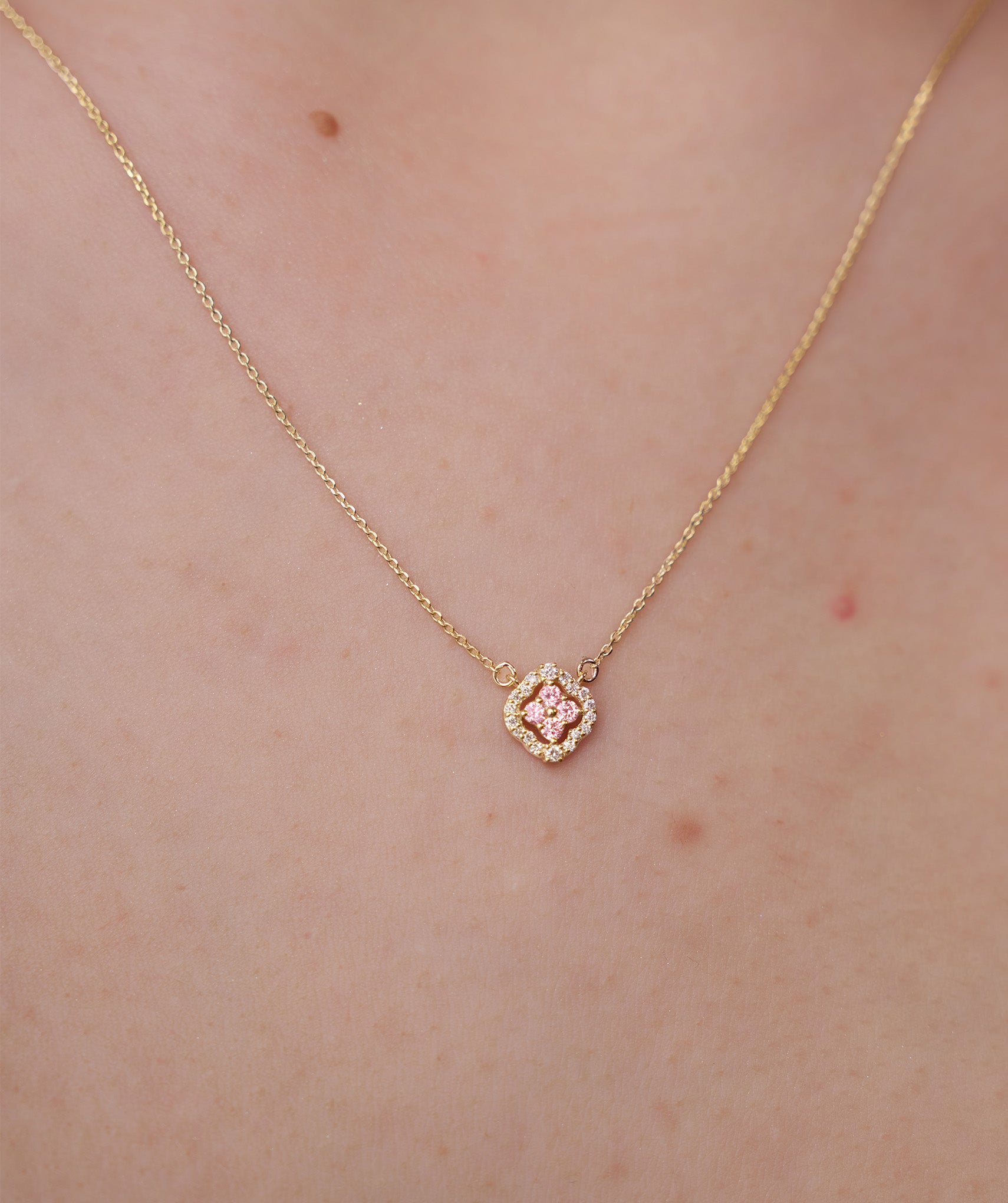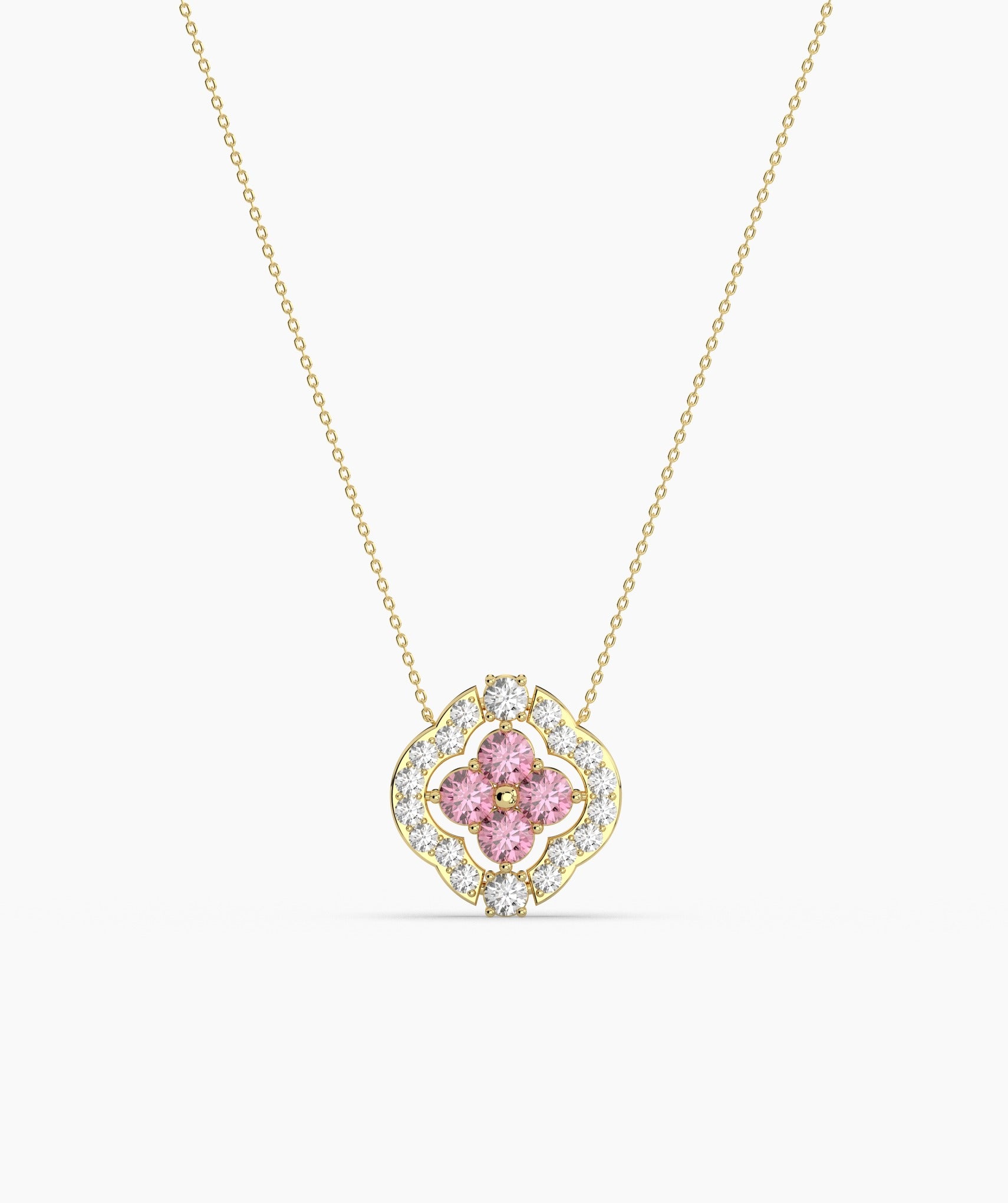 Elevate any look with this floral-inspired necklace, where a rosy gem blooms at the center, framed by brilliant diamond accents.