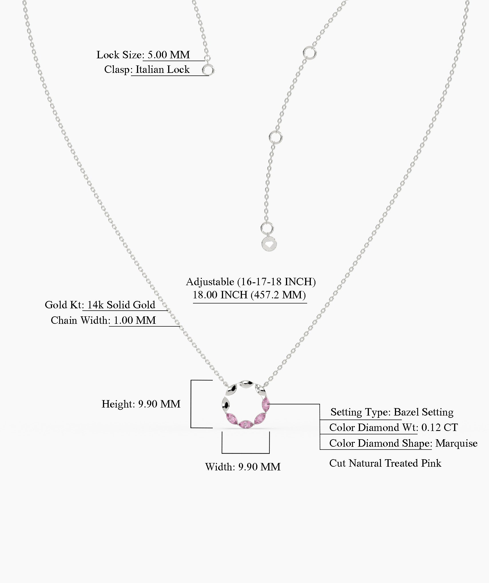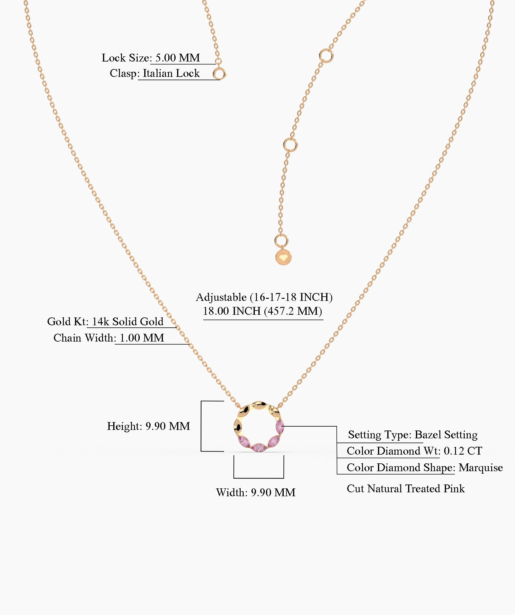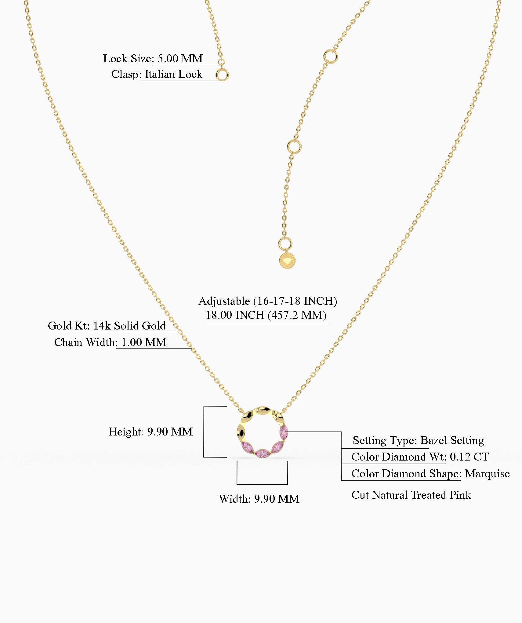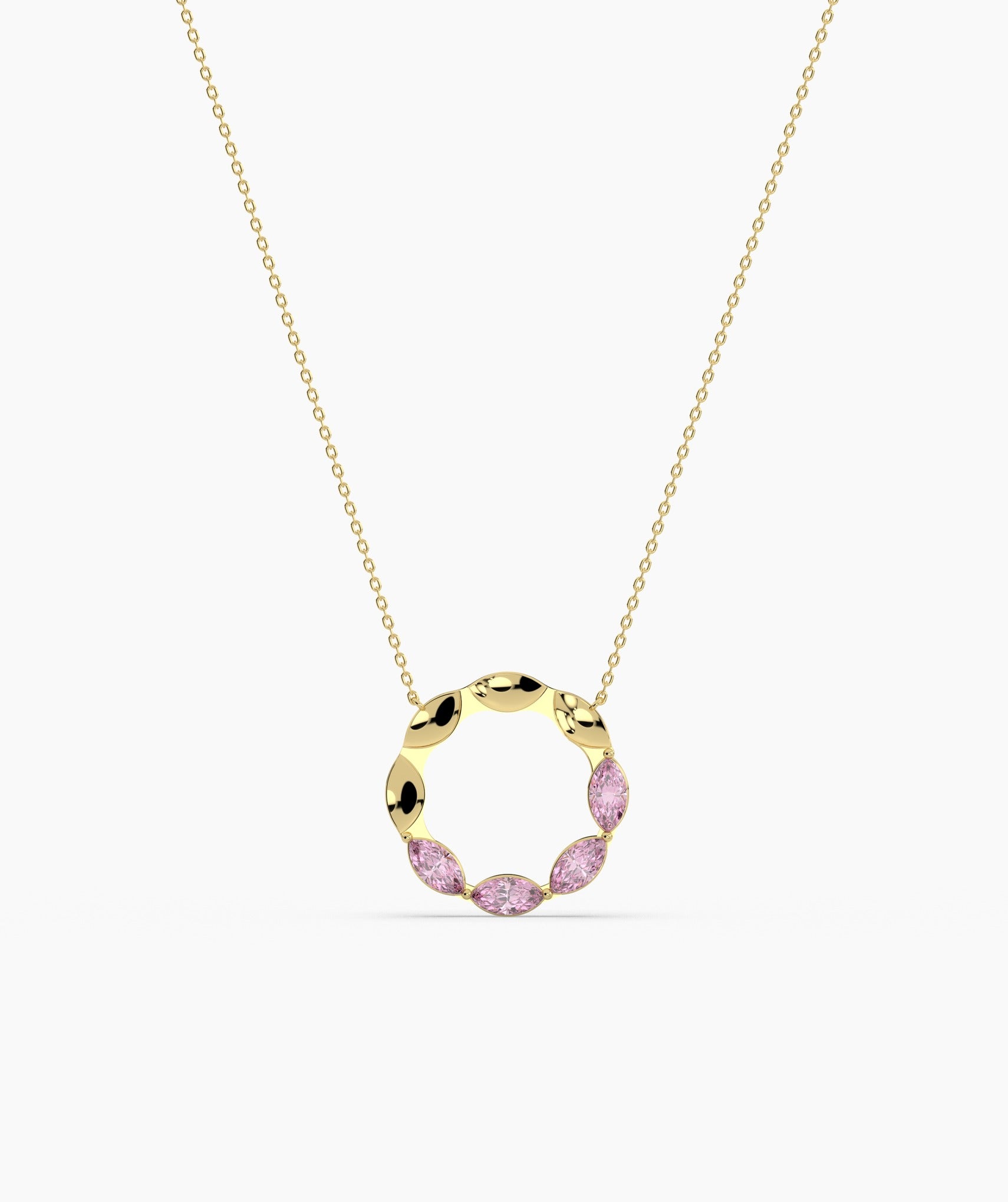Embrace subtle sophistication with our exquisite Pink Diamond Wreath Necklace. Crafted in your choice of luminous 14k yellow, romantic rose, or classic white gold, this necklace features a delicate wreath design adorned with a uniquely captivating pink diamond.