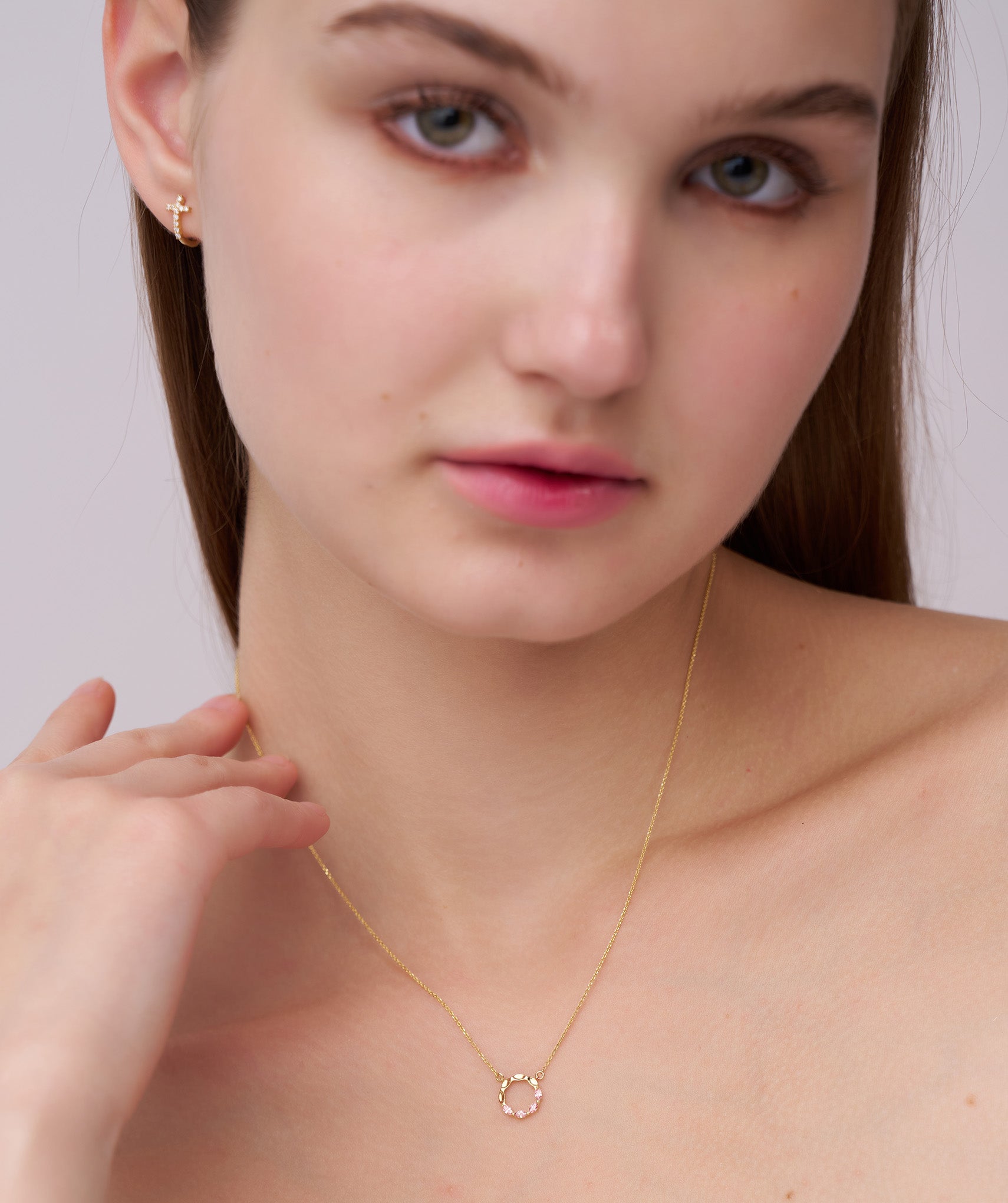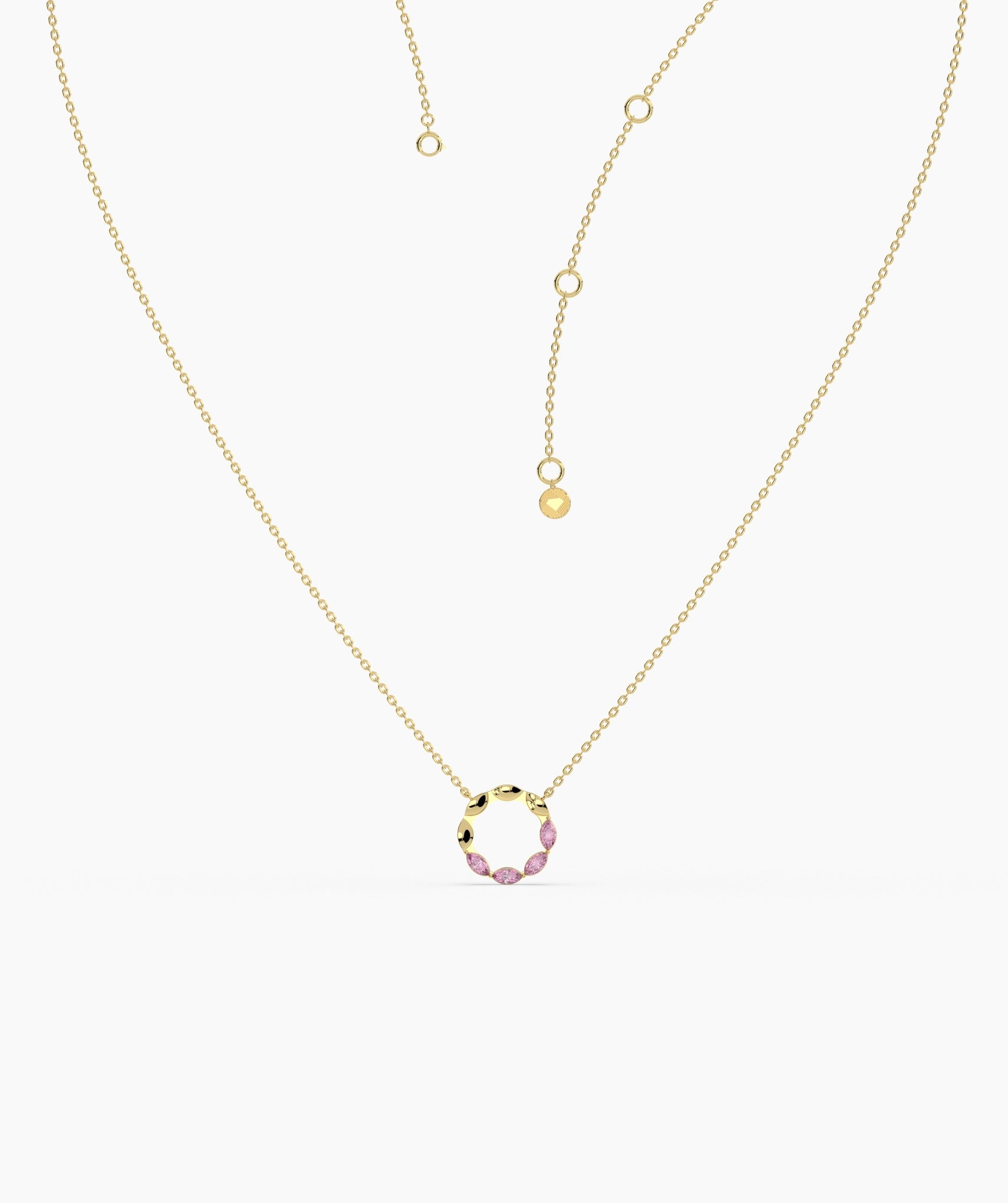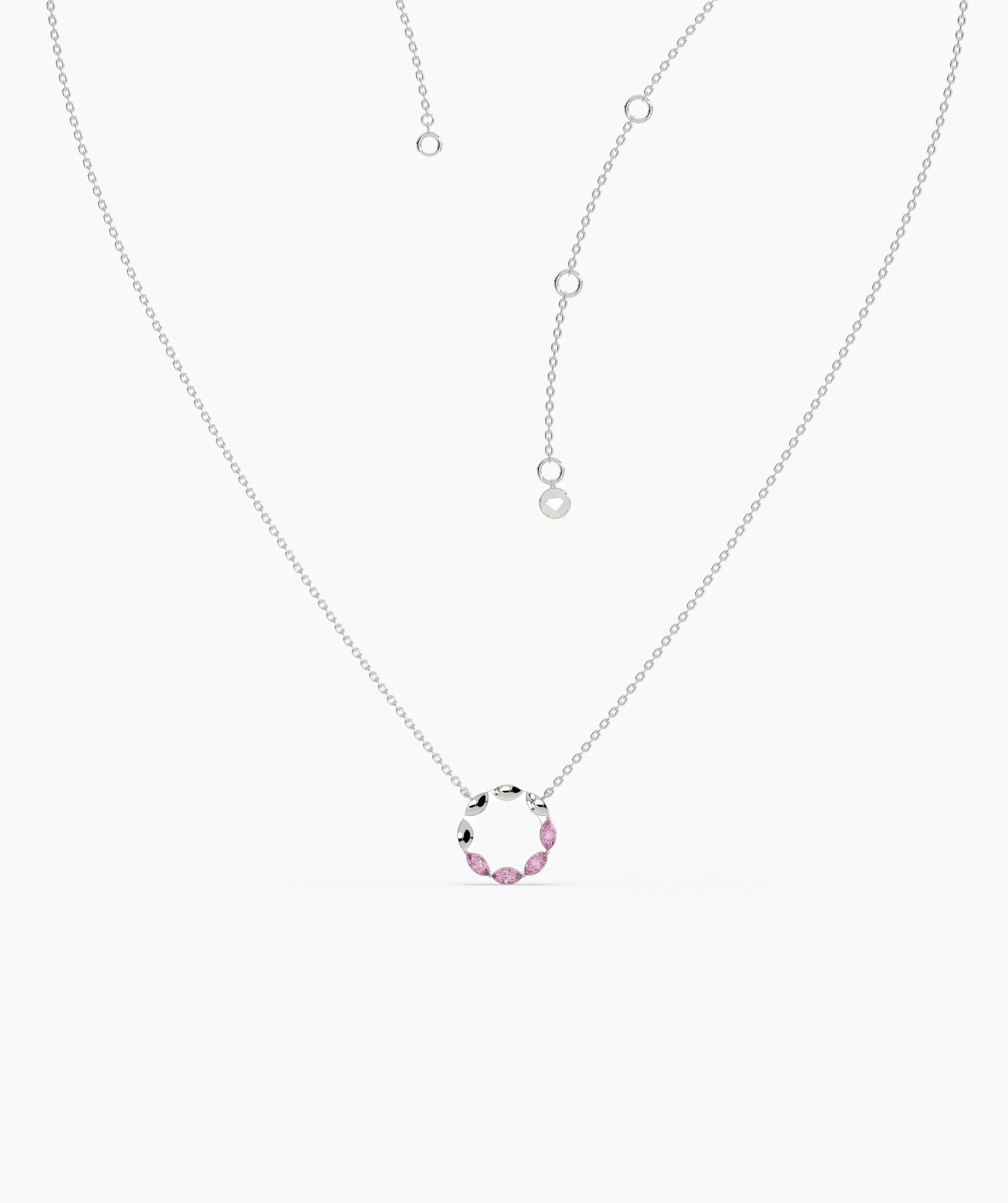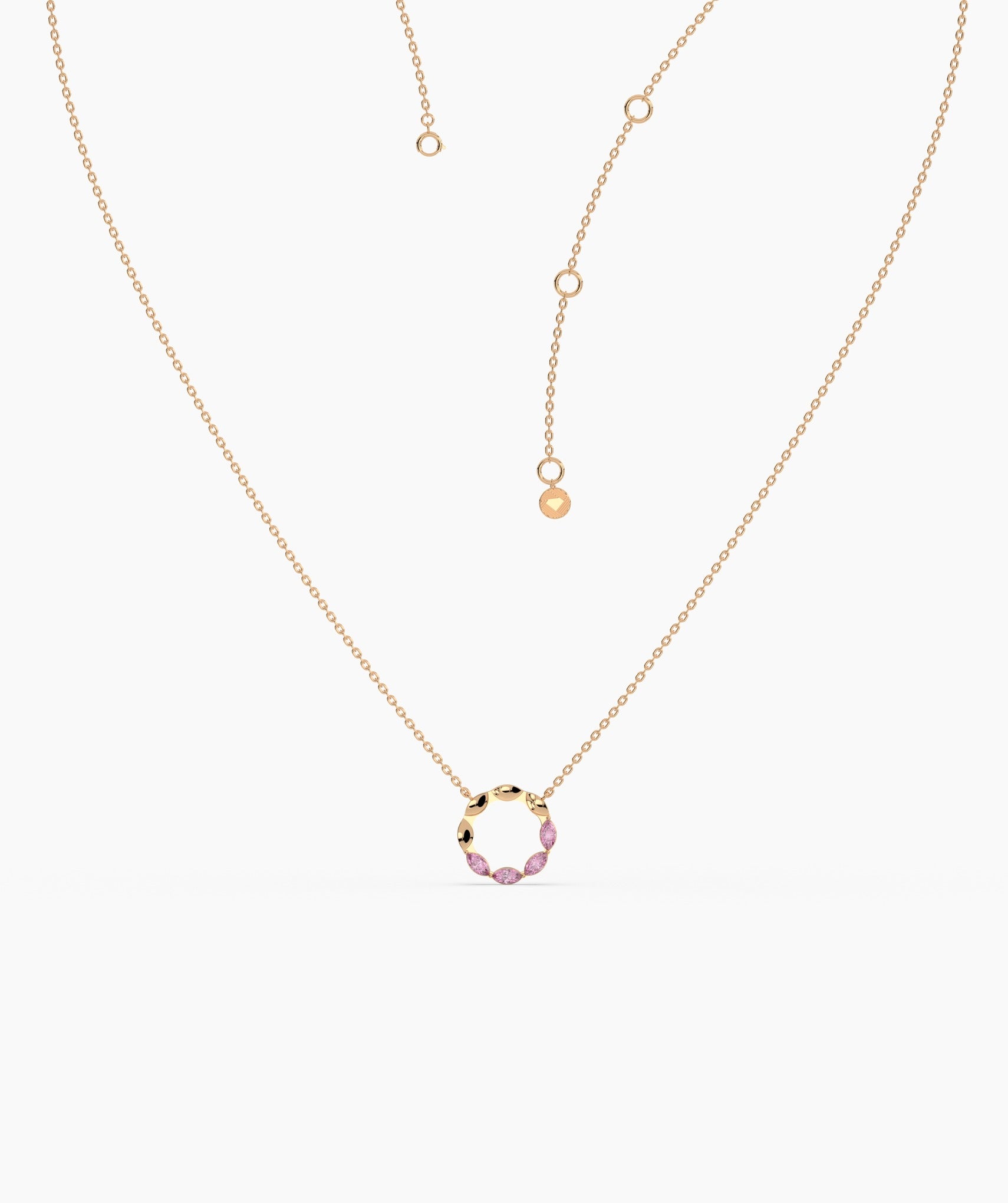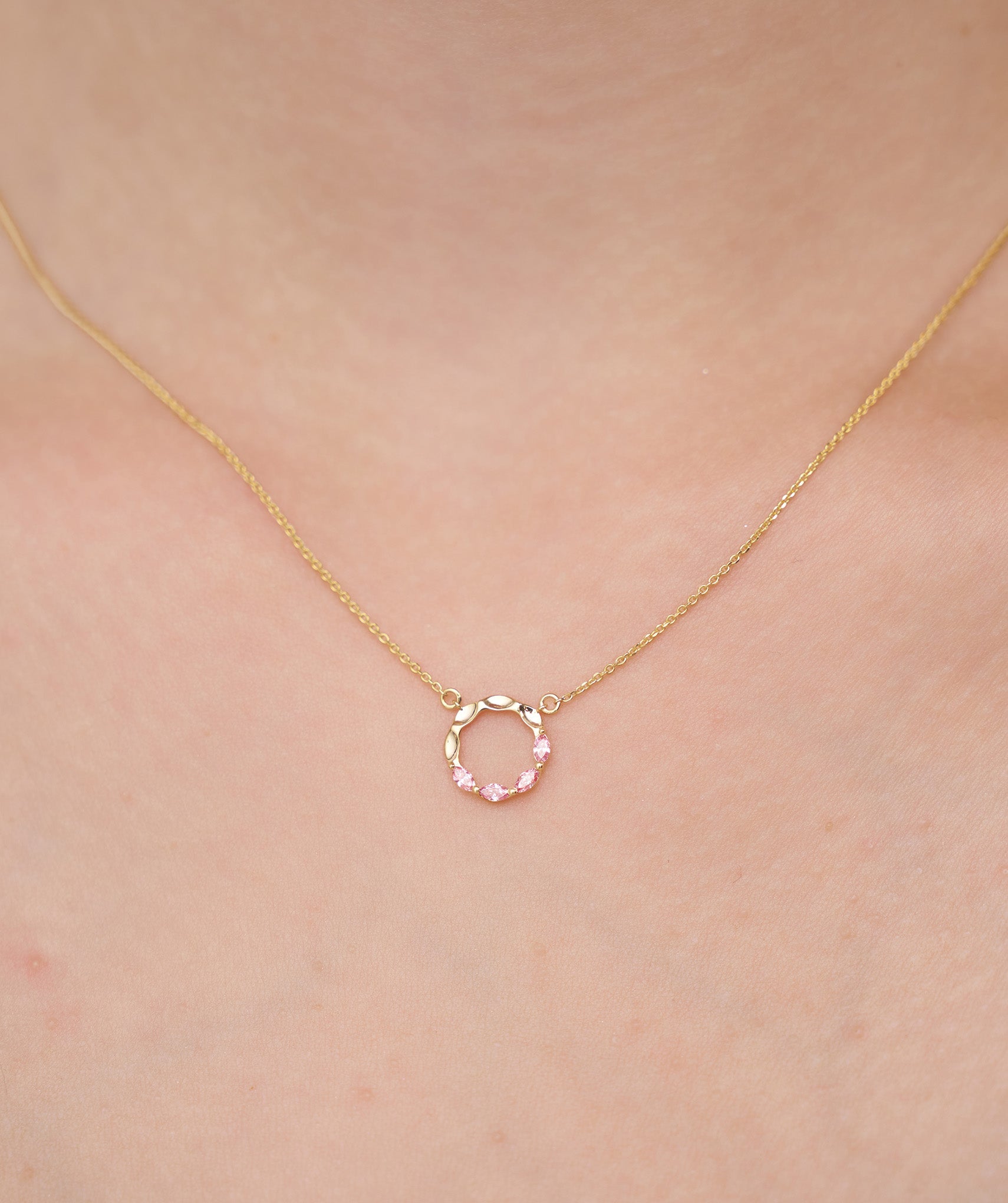 Embrace subtle sophistication with our exquisite Pink Diamond Wreath Necklace. Crafted in your choice of luminous 14k yellow, romantic rose, or classic white gold, this necklace features a delicate wreath design adorned with a uniquely captivating pink diamond.
