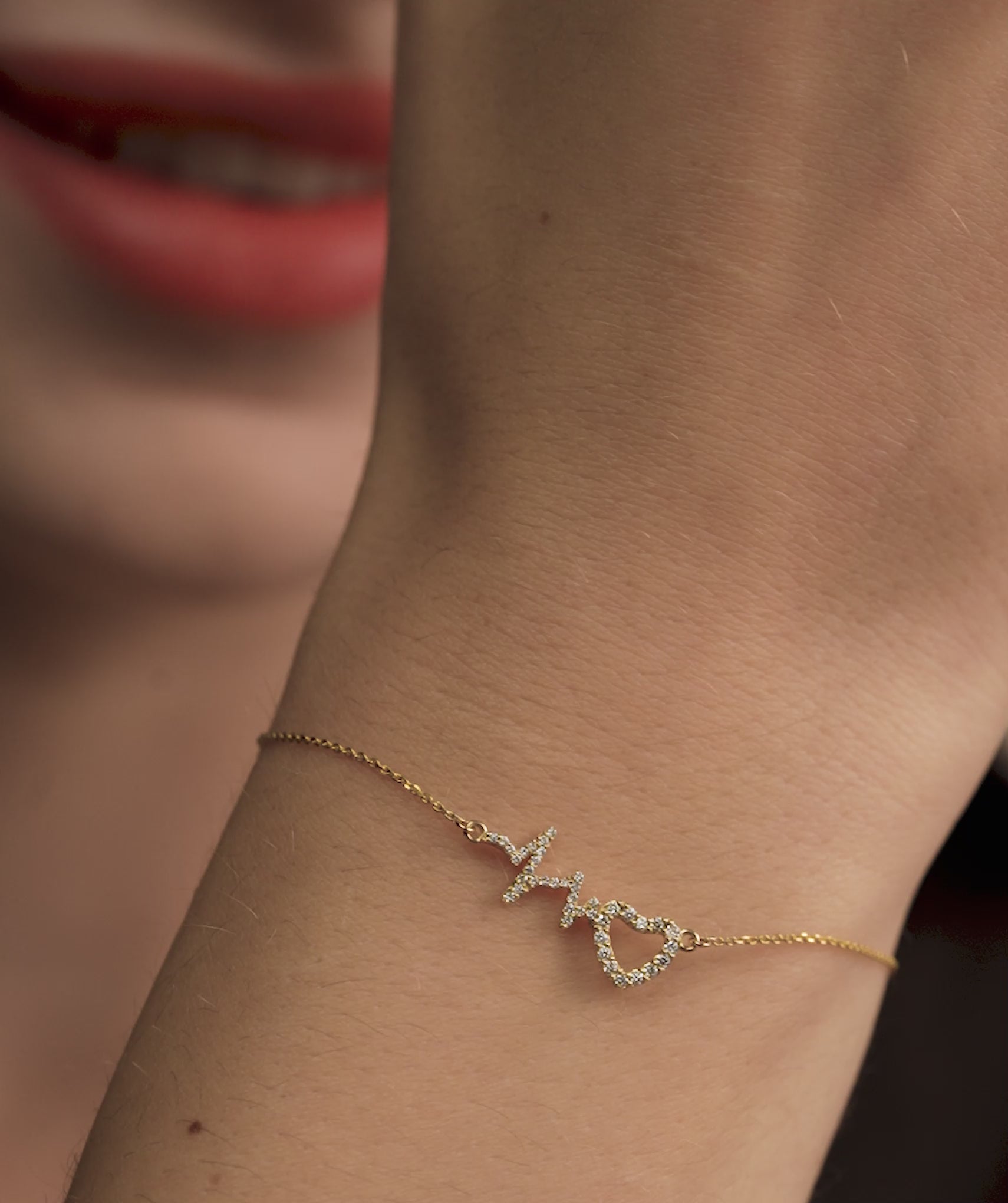 Showcase your affection in style—this diamond-accented heartbeat design adds a modern, romantic flair to any look.
