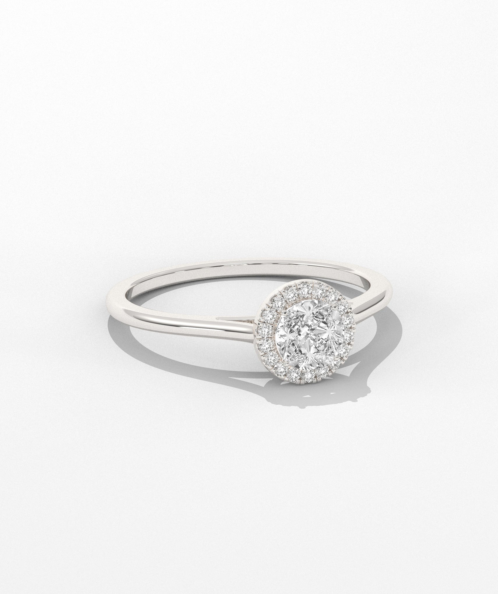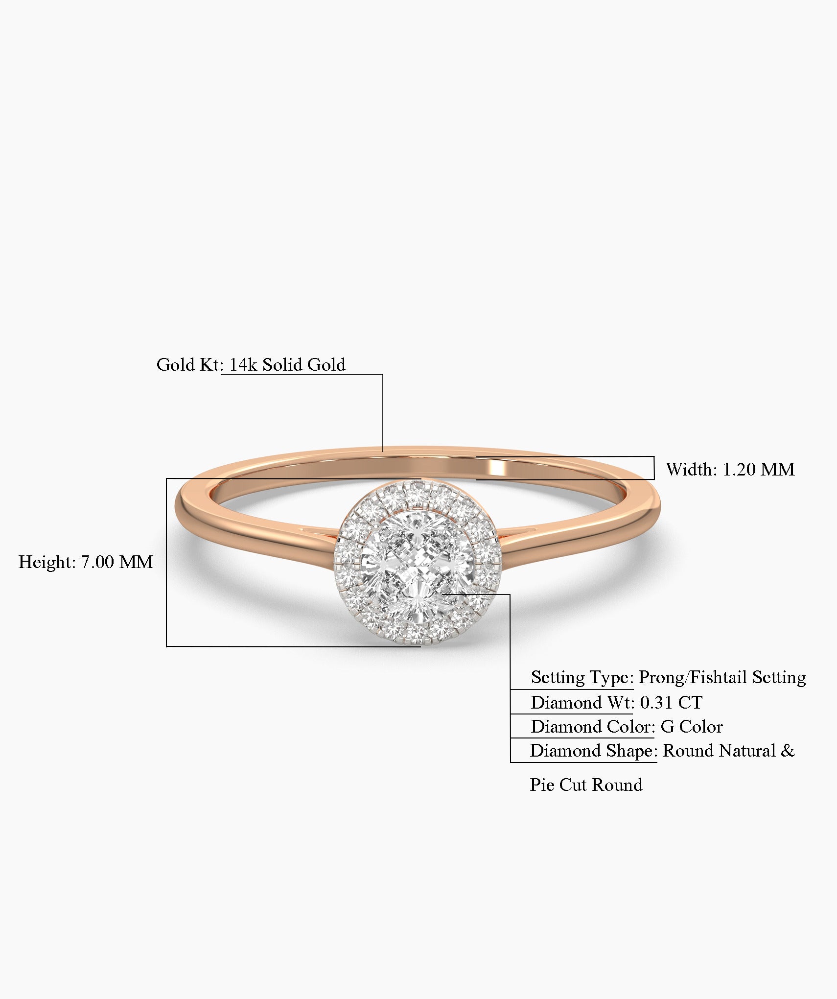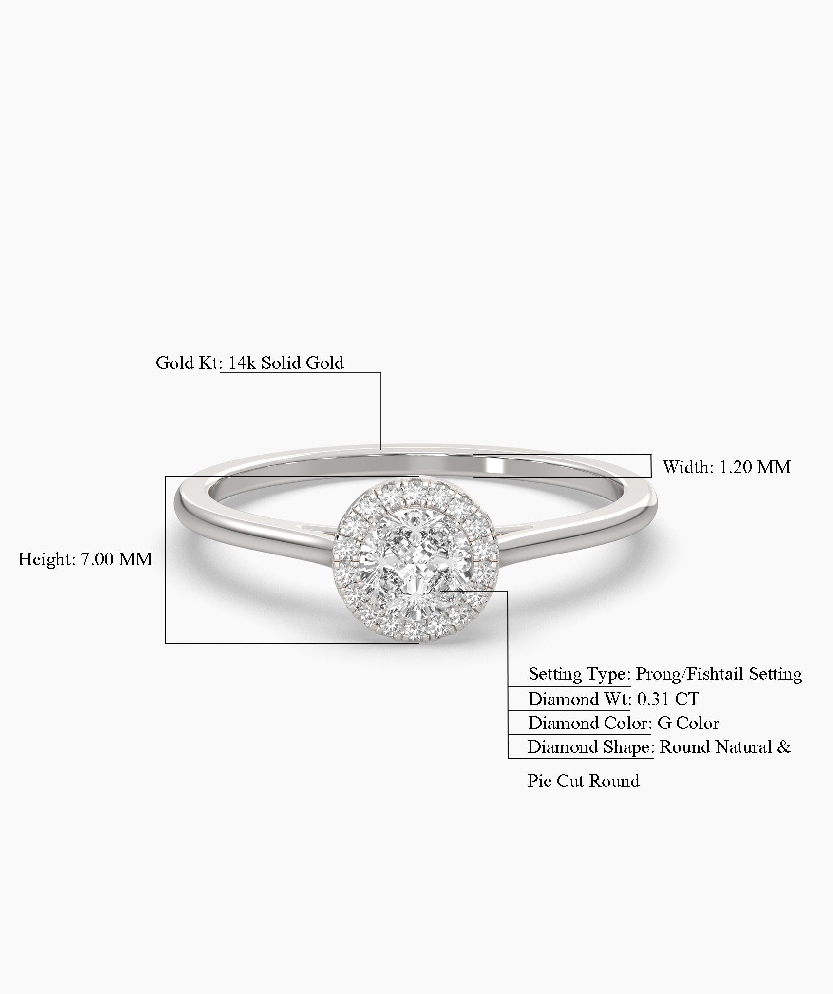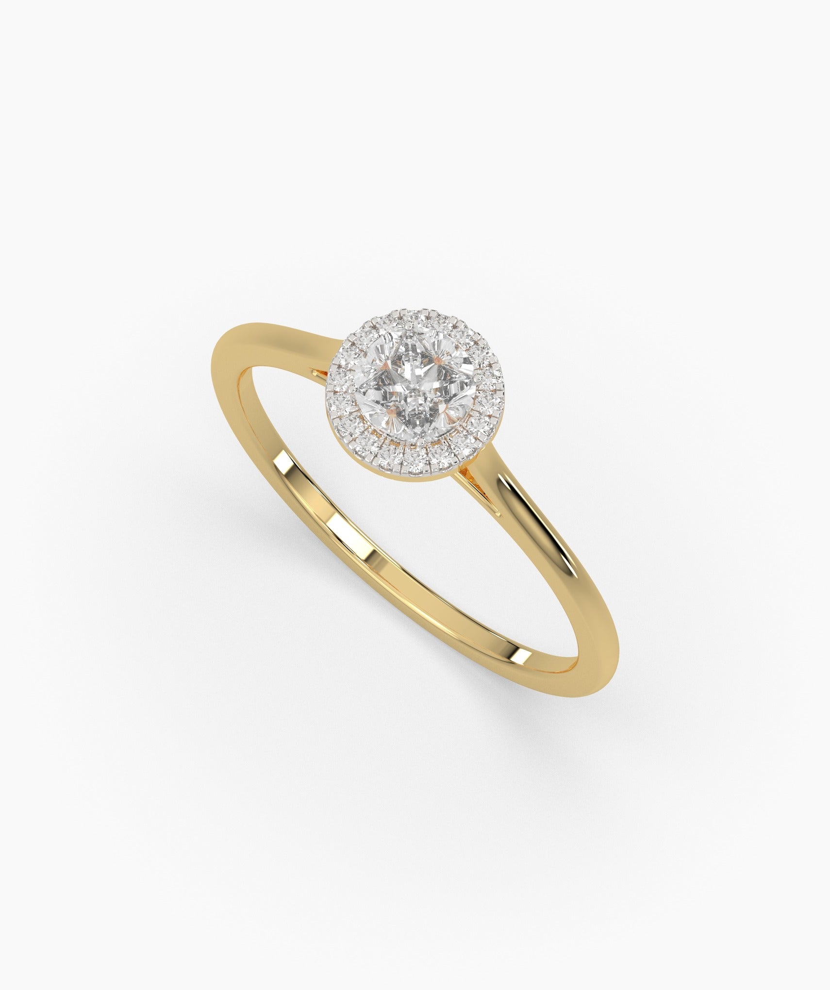 A timeless beauty, this 14K yellow gold ring features a brilliant round diamond cluster framed by a shimmering pavé halo. Its classic design and elegant sparkle make it perfect for engagements or daily elegance.