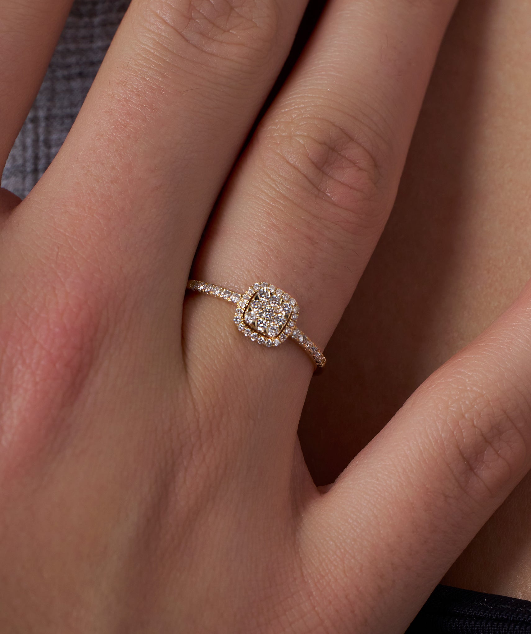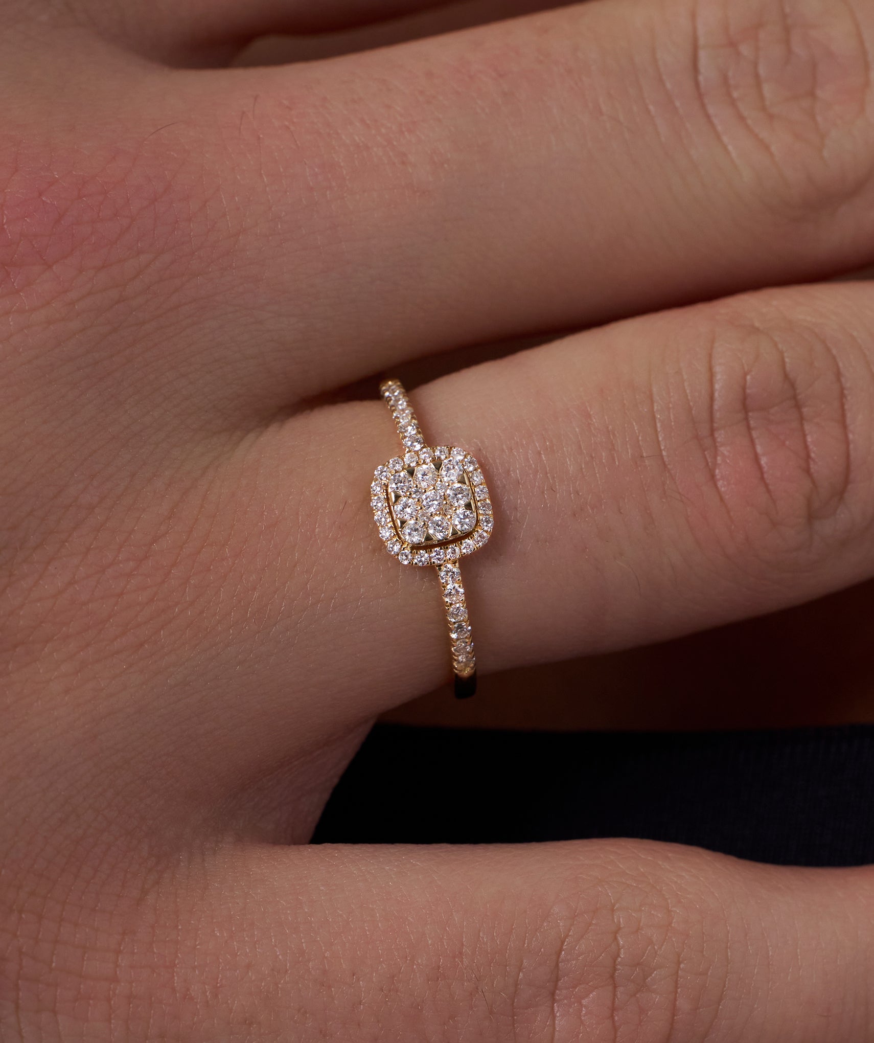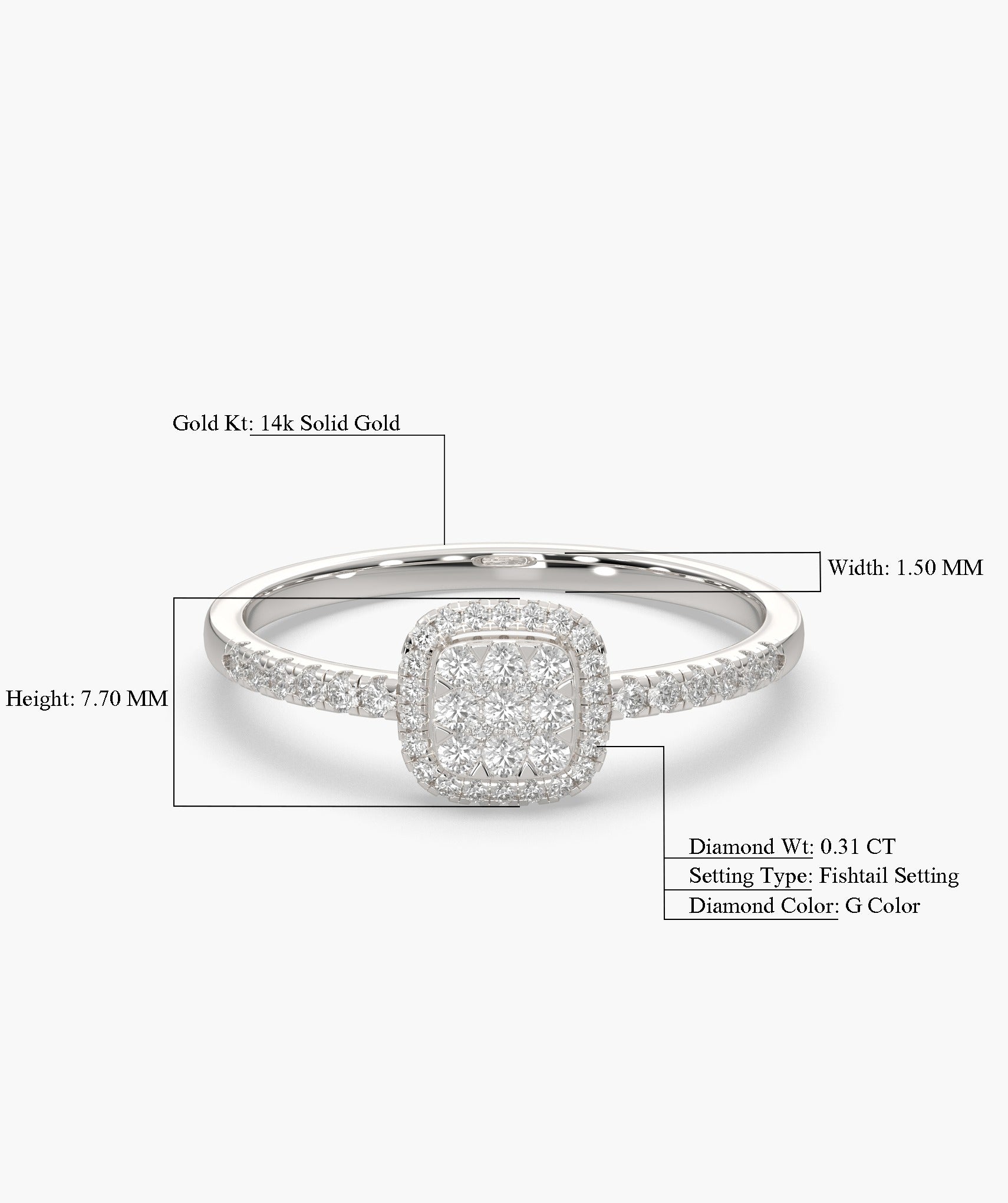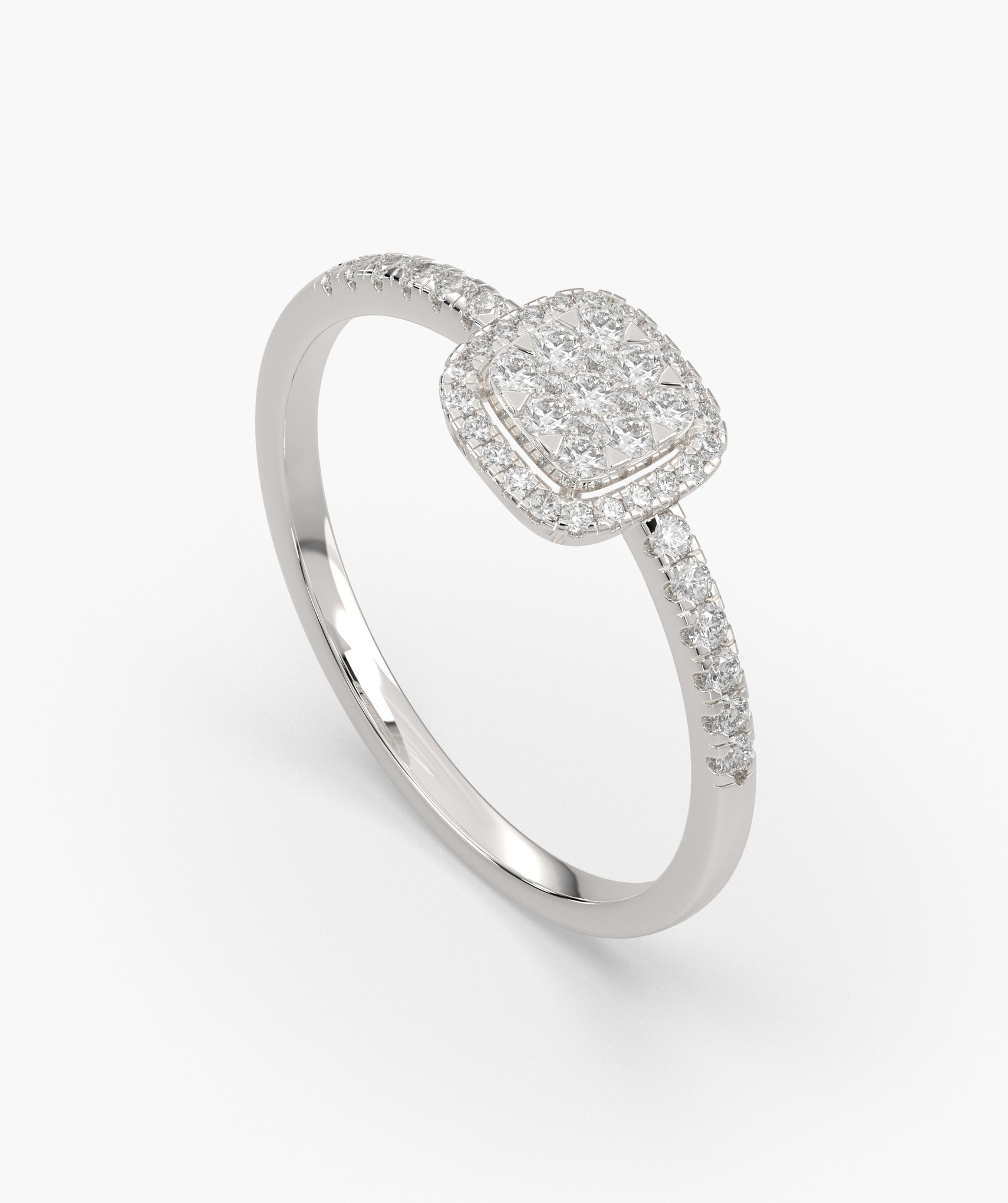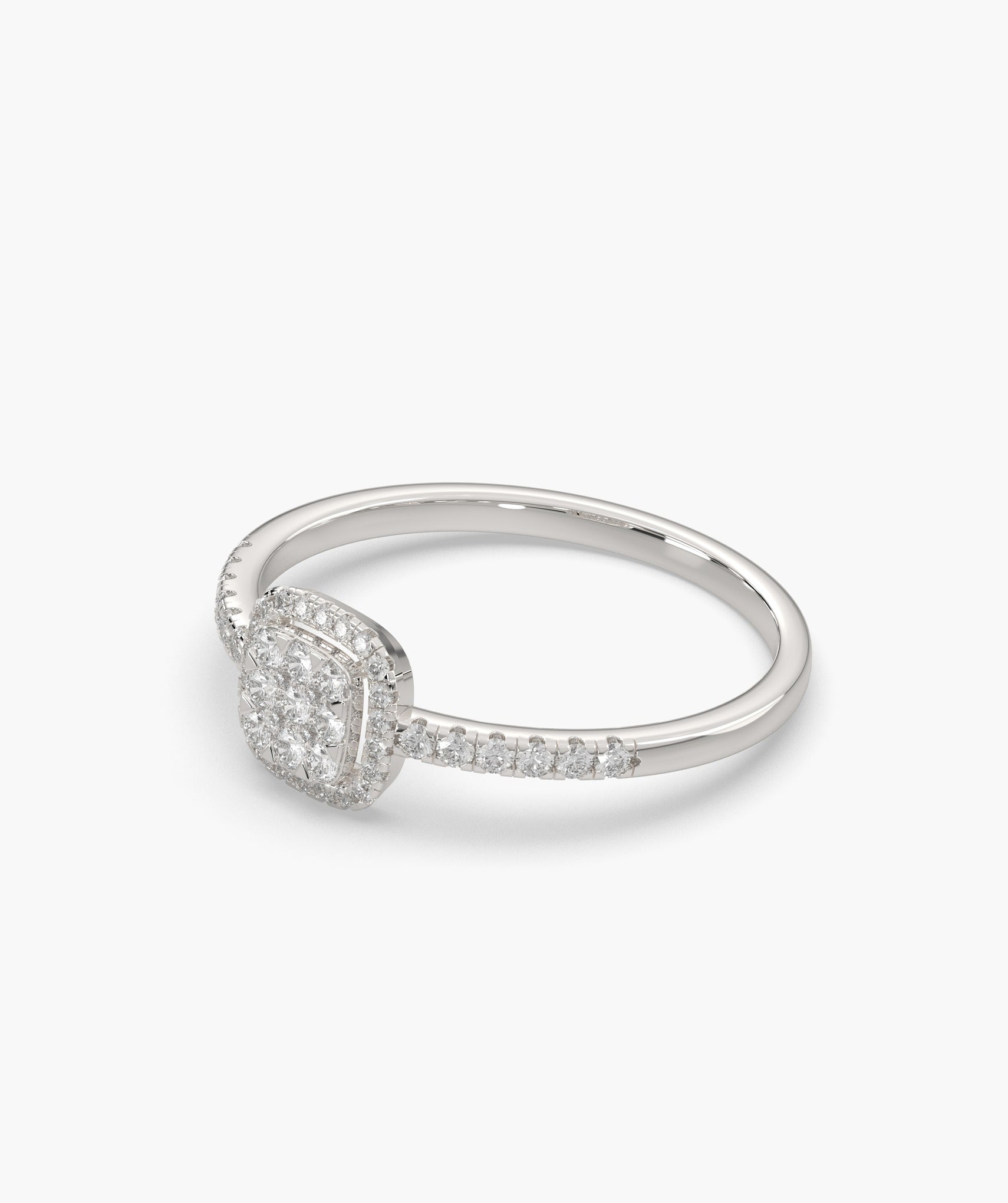 white gold ring, cushion cut cluster ring, diamond engagement ring, cluster setting, bridal ring, elegant promise ring, halo style ring, fine jewelry, minimal diamond ring, classic cushion ring