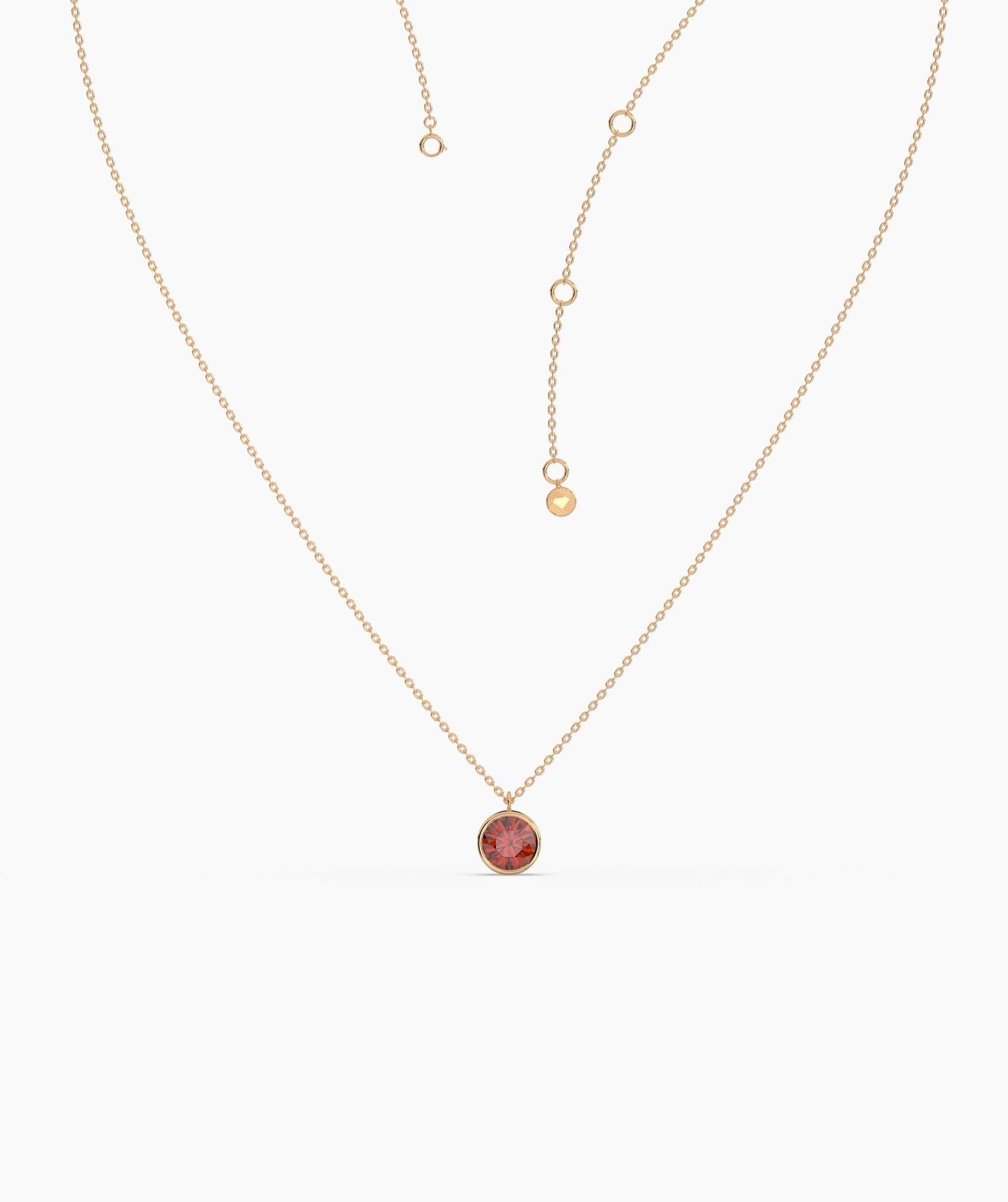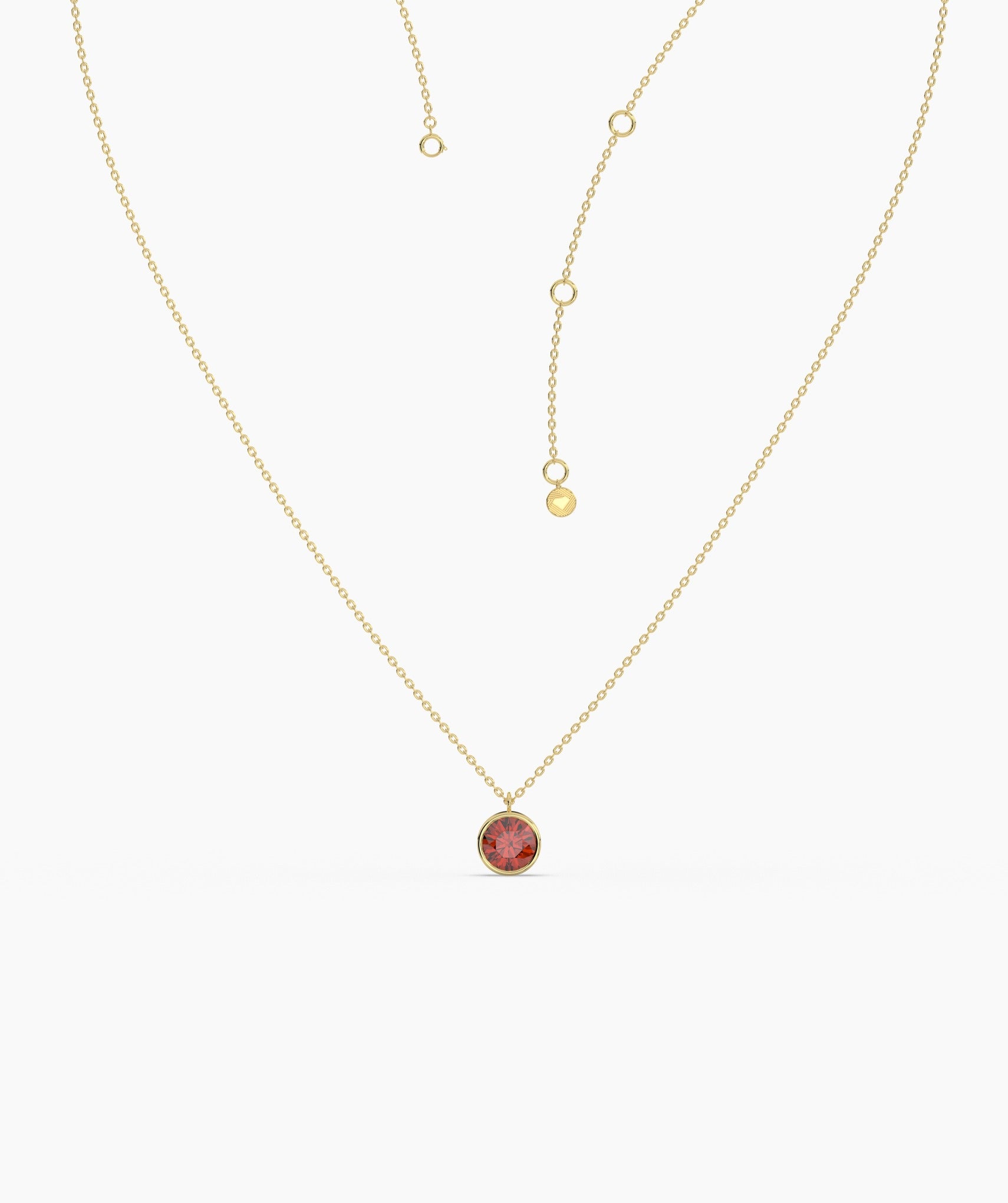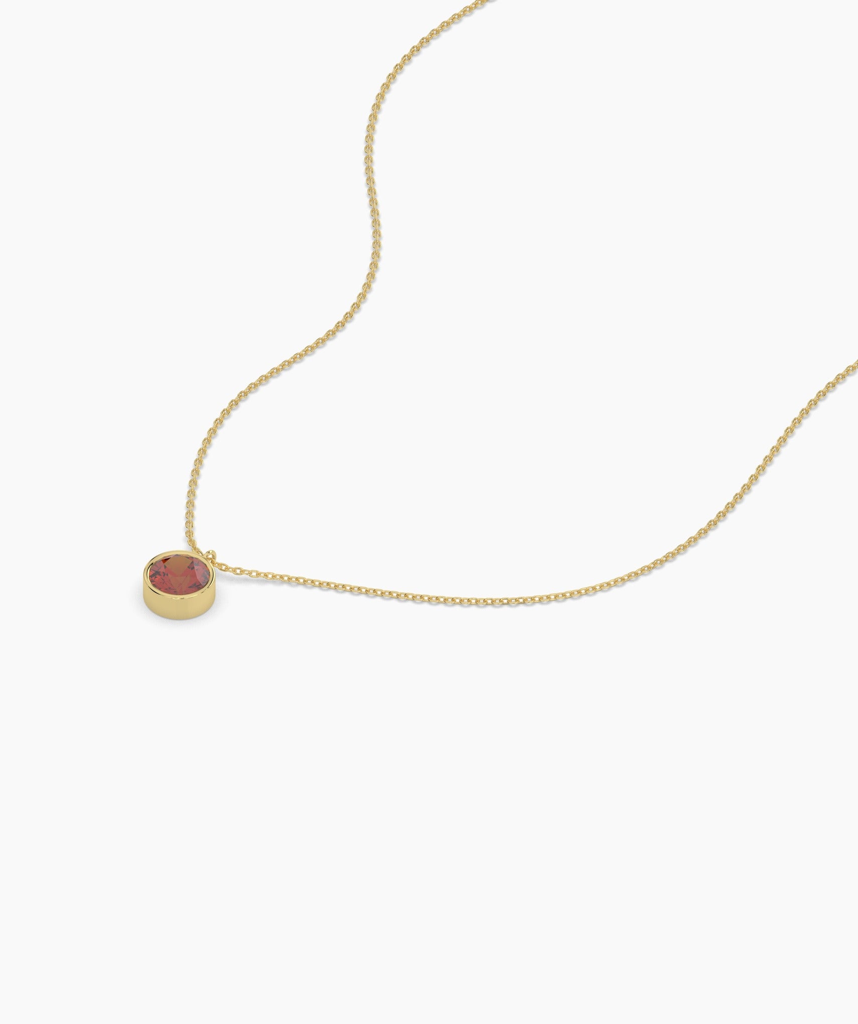 Make a bold statement with this 14K yellow gold necklace featuring a bezel-set round garnet. The deep red gemstone adds a pop of rich color, while the sleek gold setting keeps the look timeless and elegant. Perfect for everyday wear or special occasions.