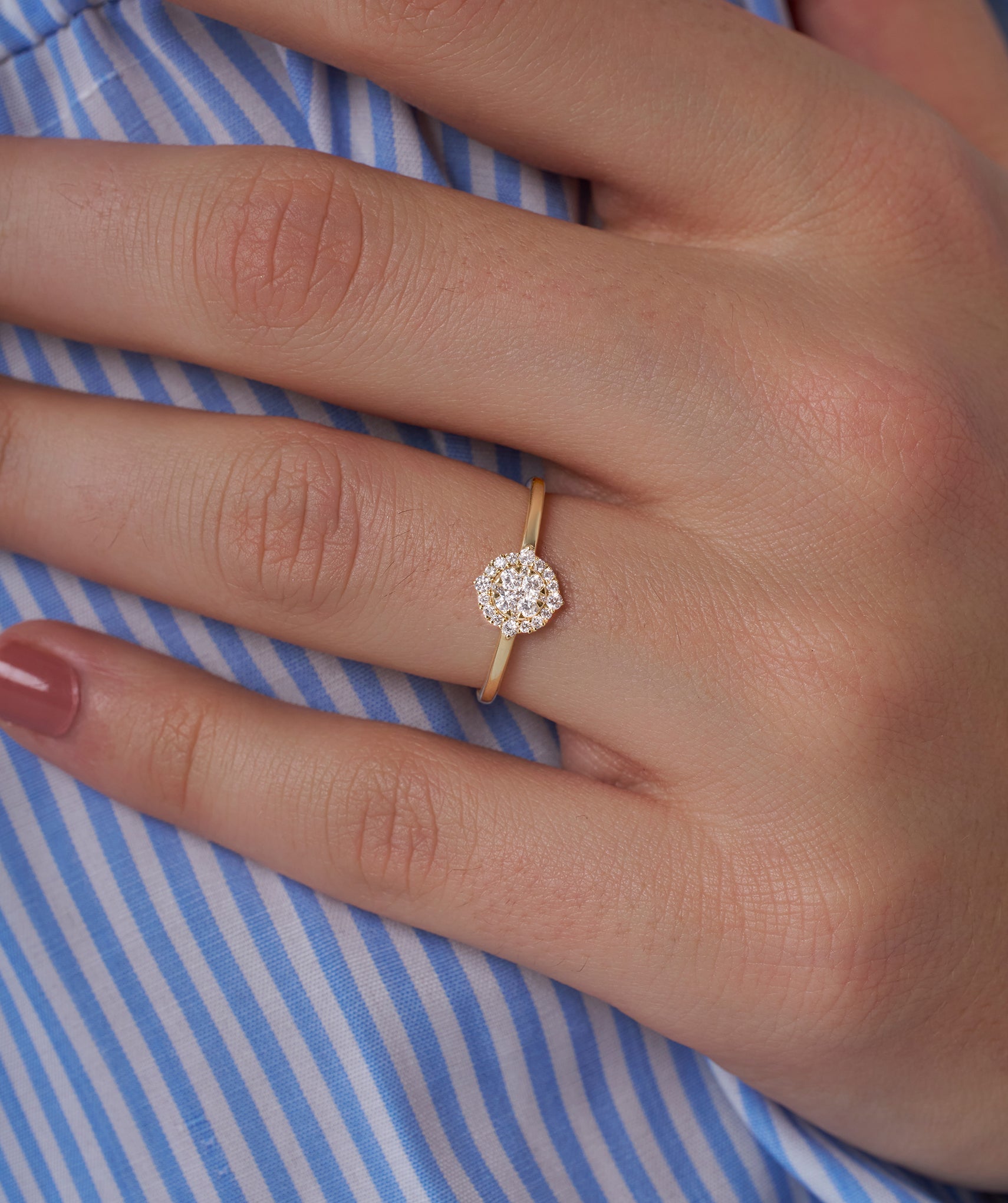 14K Gold Halo Diamond Cluster Ring