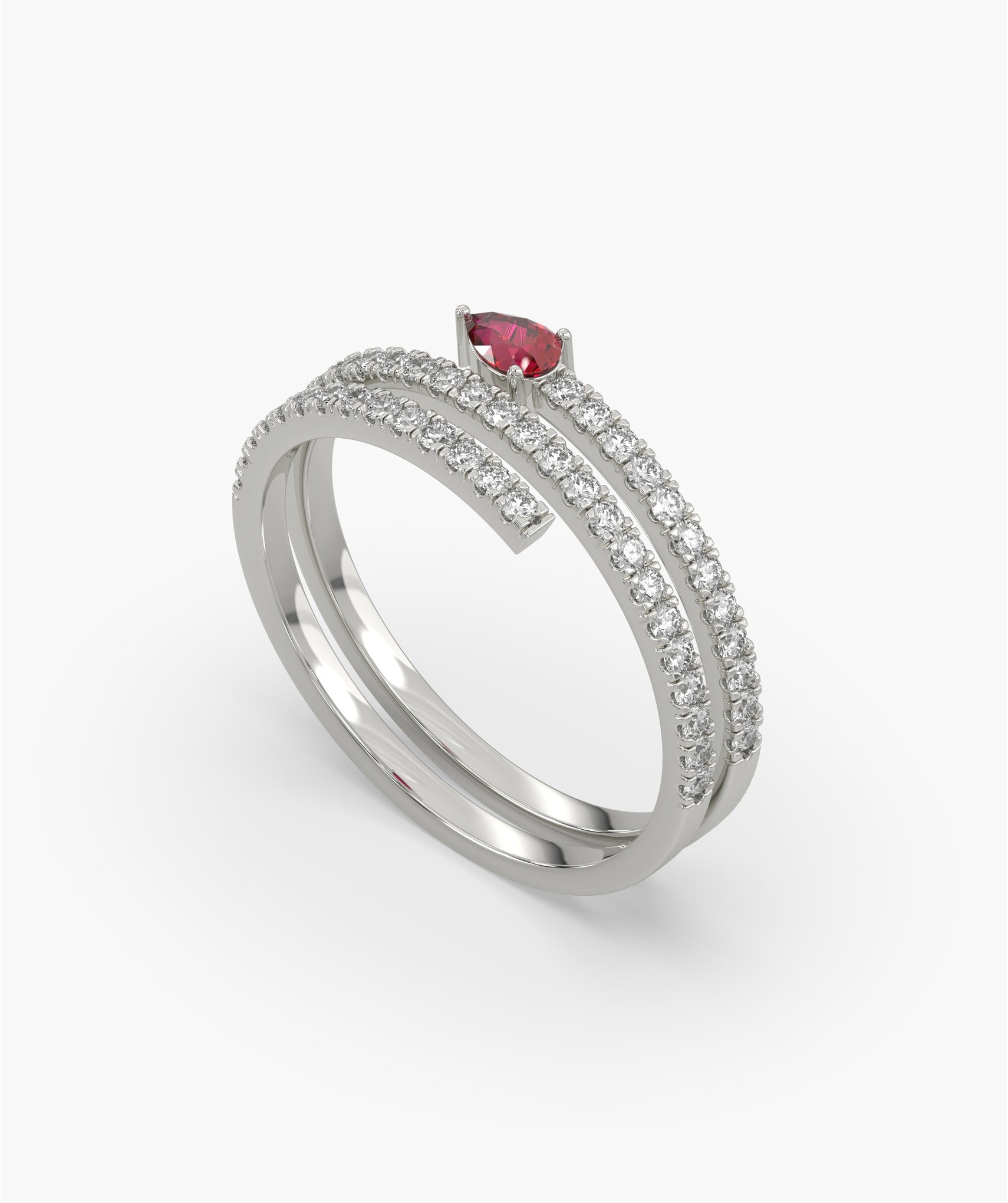 Elegant 14K gold ring with a striking red ruby heart and twin rows of brilliant diamonds, blending timeless charm with a modern twist.