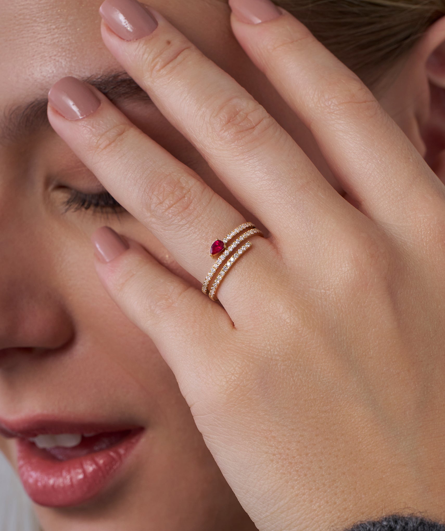 Ruby Pear Coil Diamond Ring