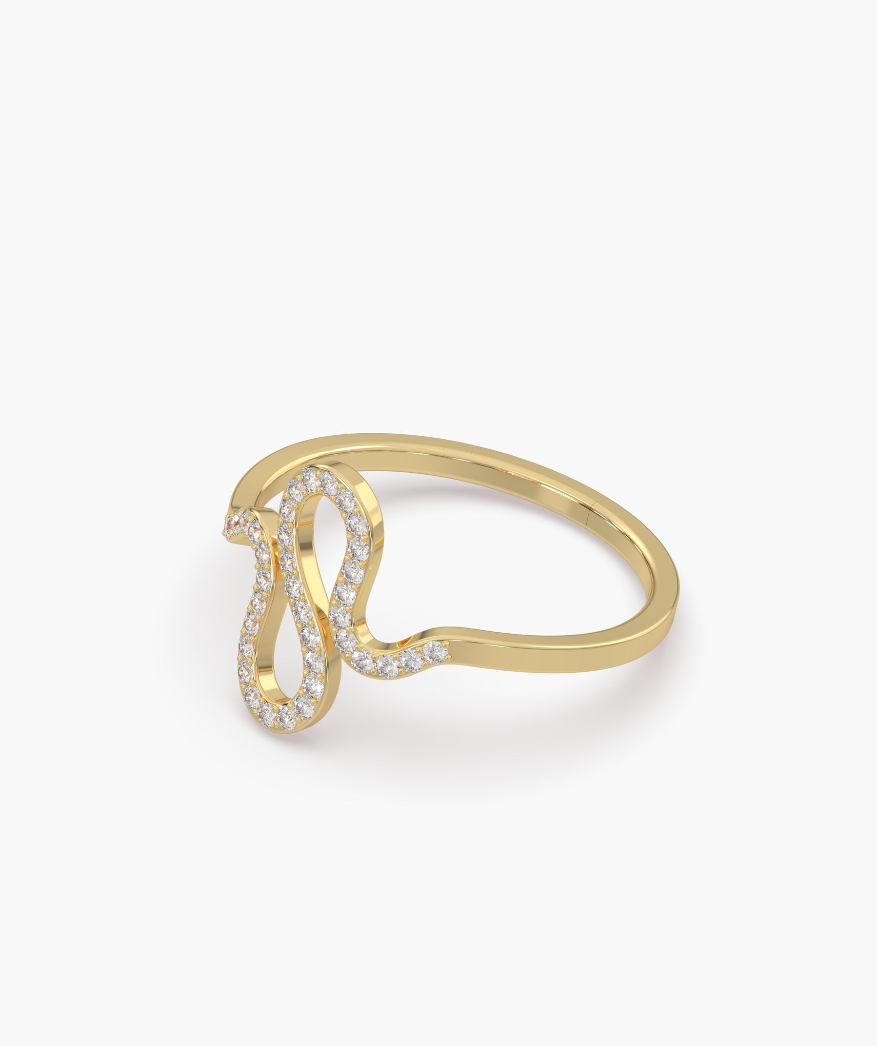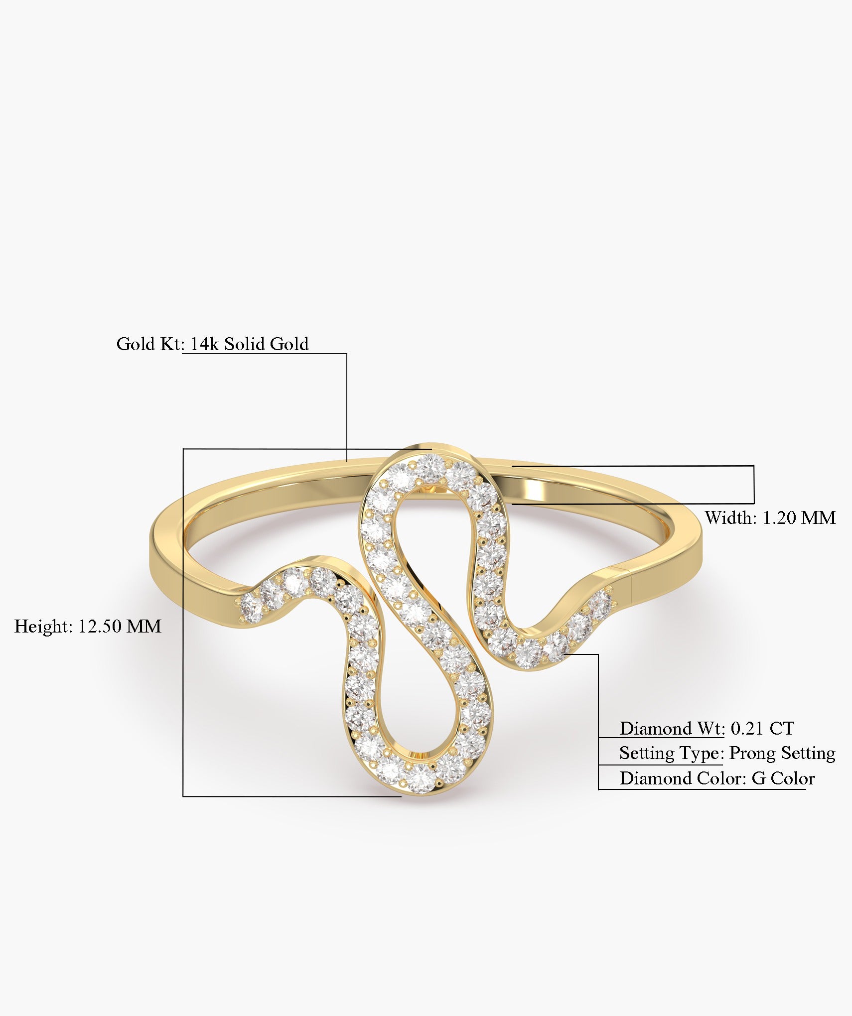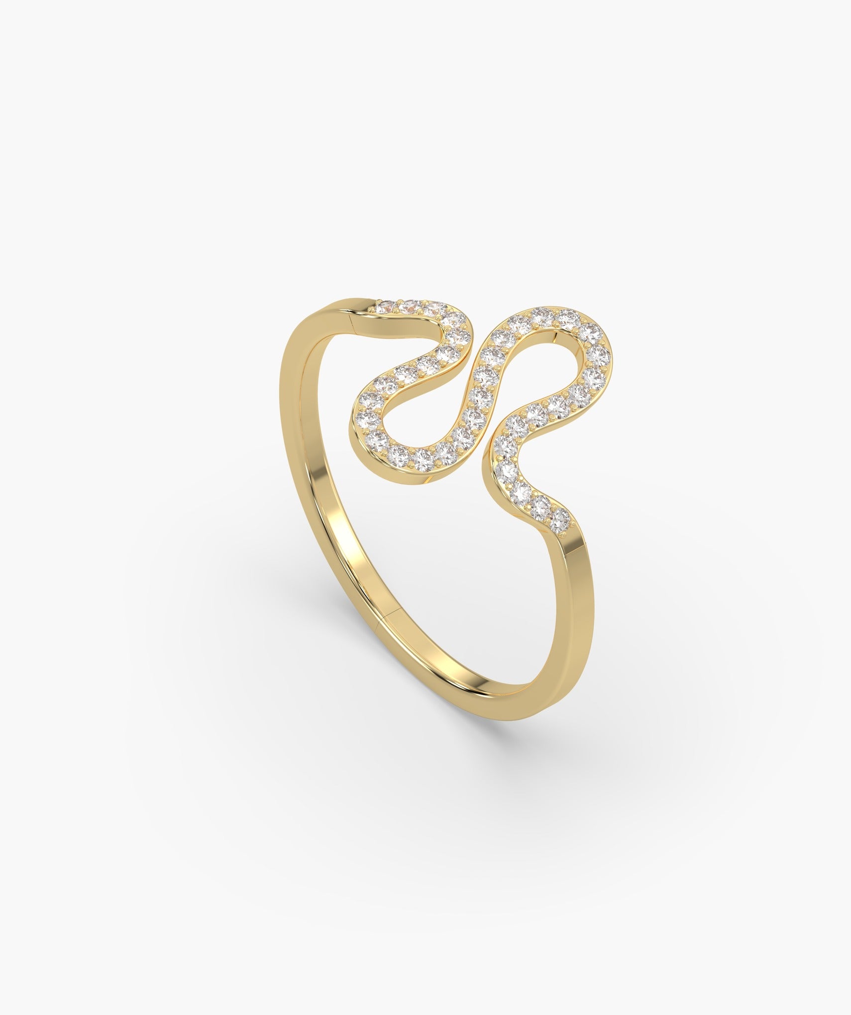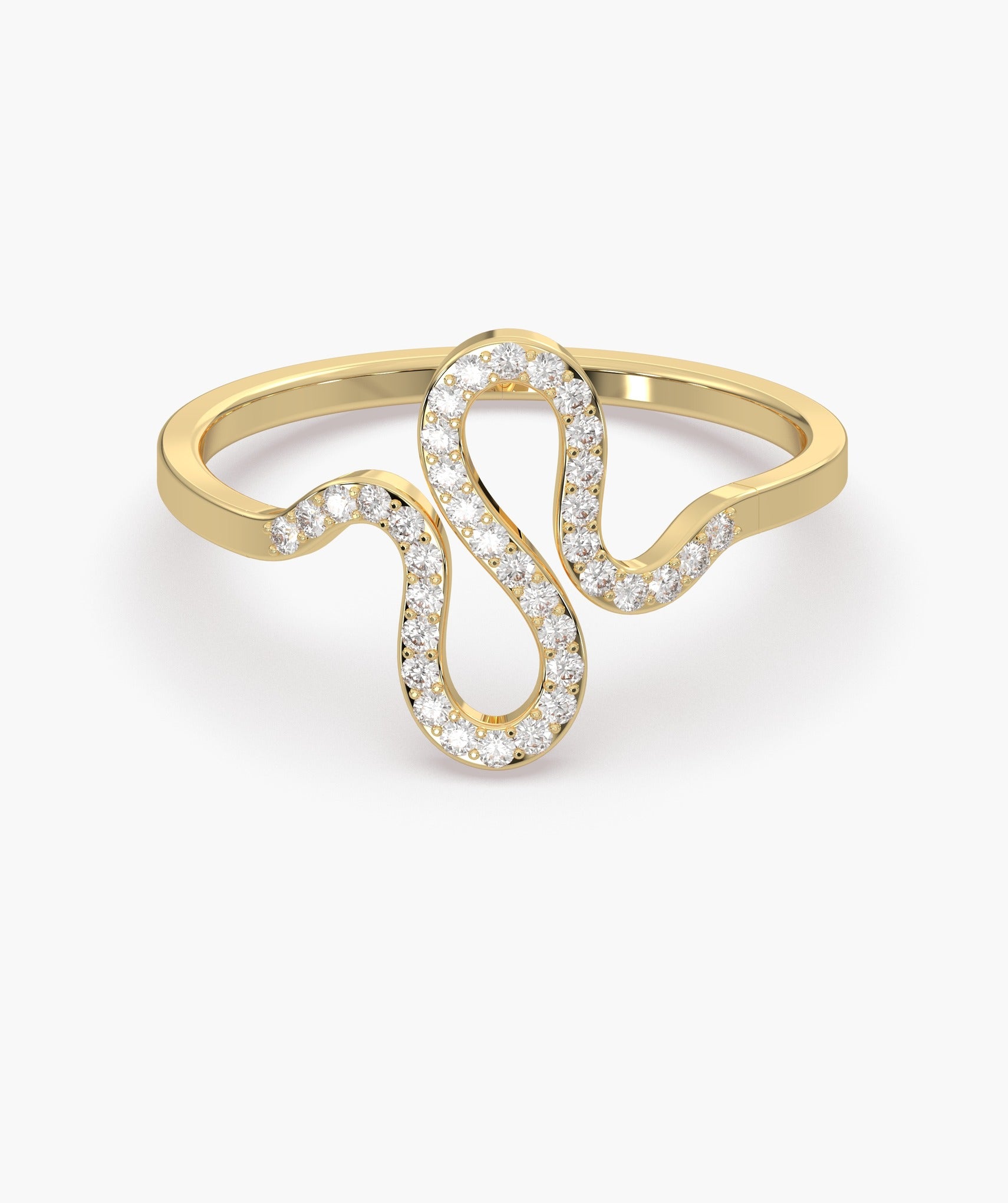 A captivating 14K gold ring with a flowing serpentine design adorned with dazzling diamonds.