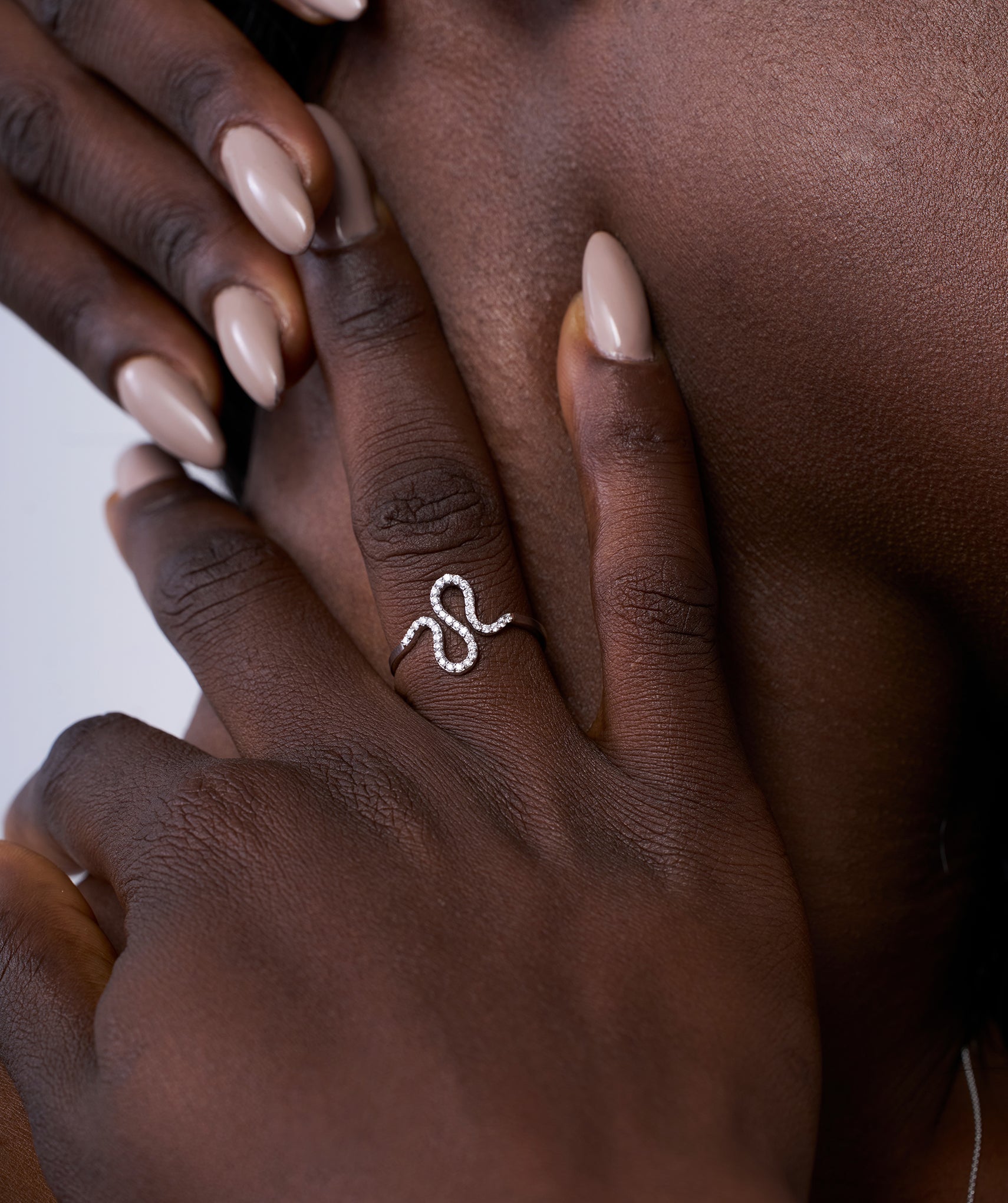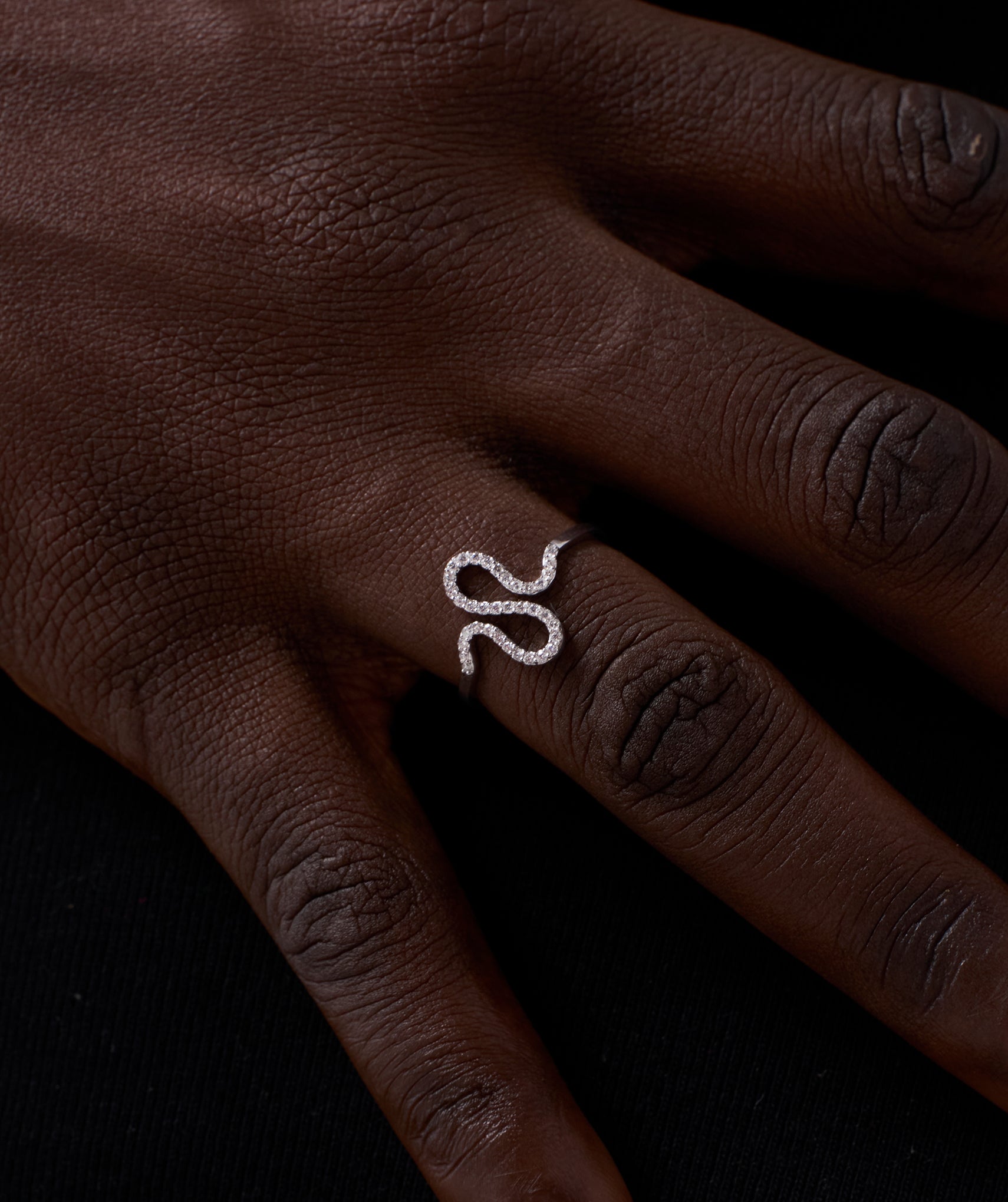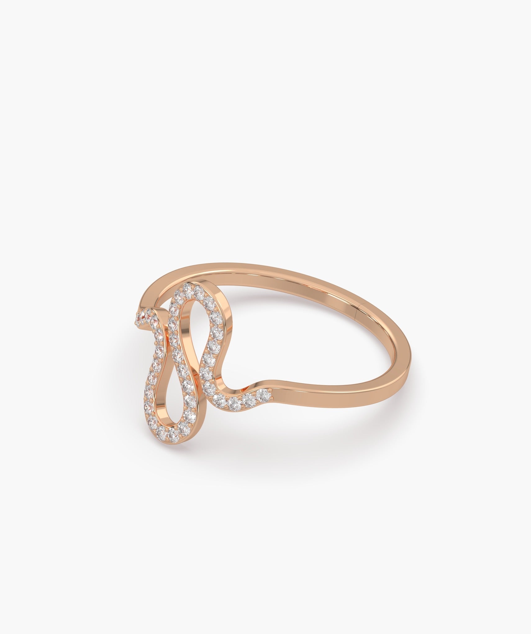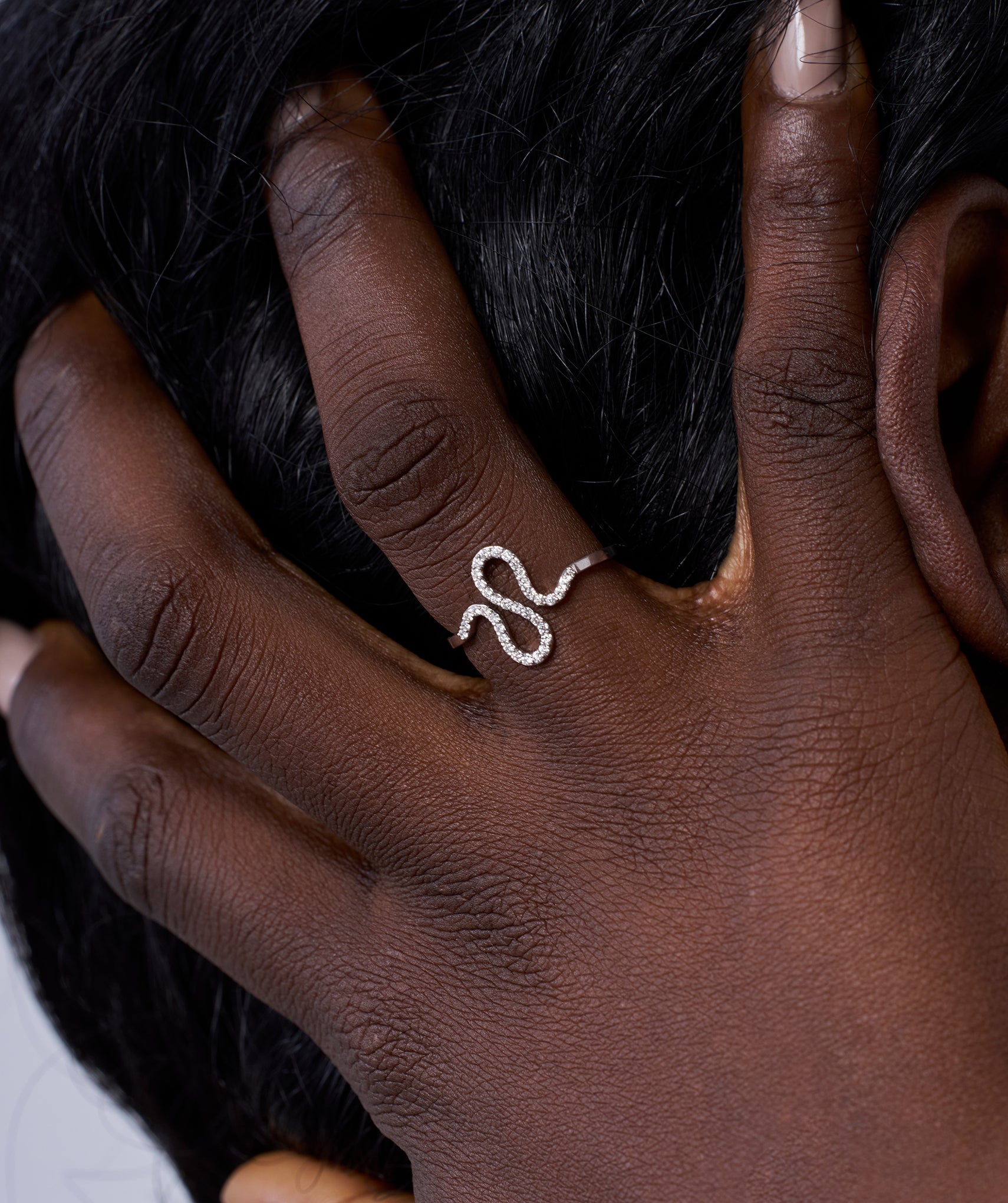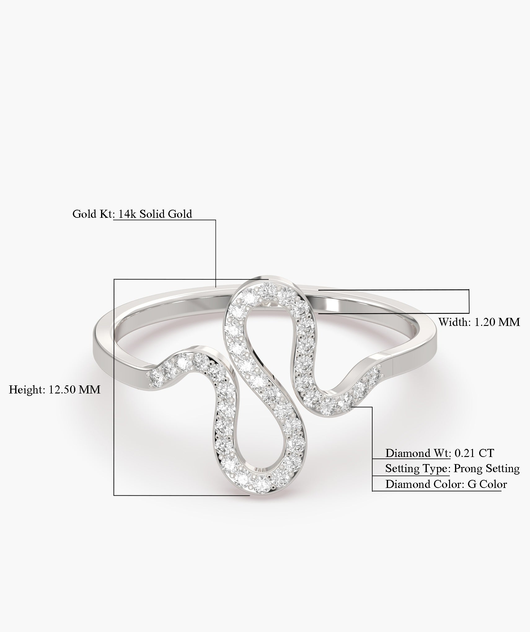 A captivating 14K gold ring with a flowing serpentine design adorned with dazzling diamonds.
