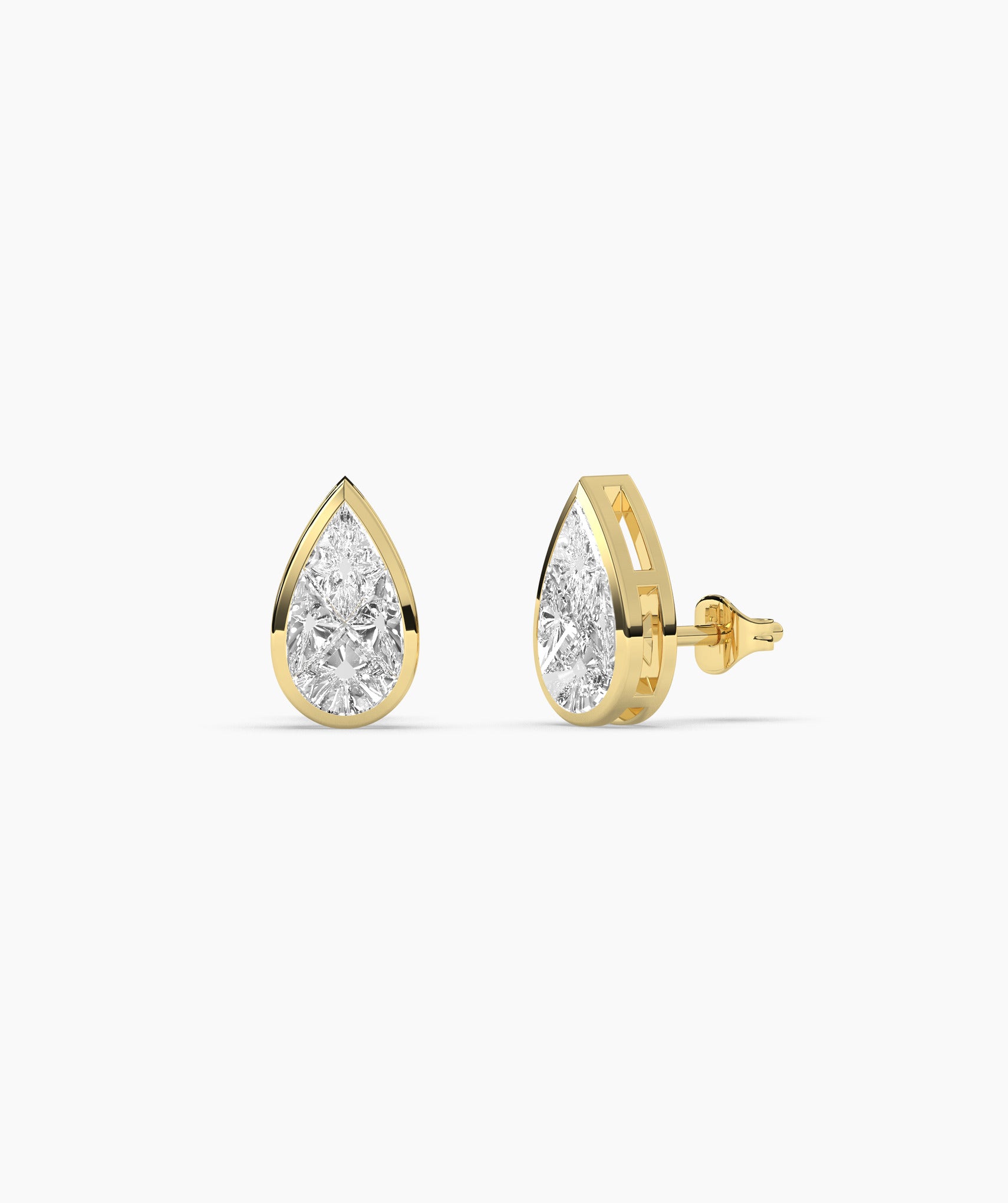 Elevate any look with these pear-shaped diamond studs, featuring a protective bezel design that enhances their brilliance.