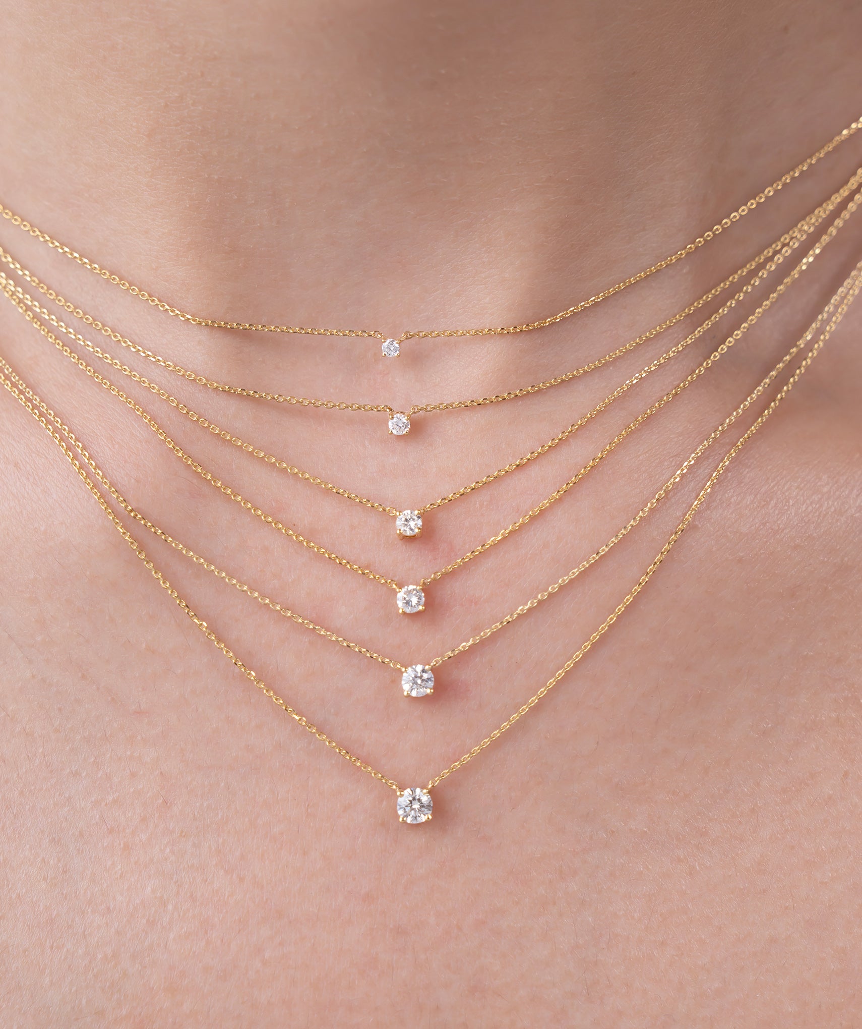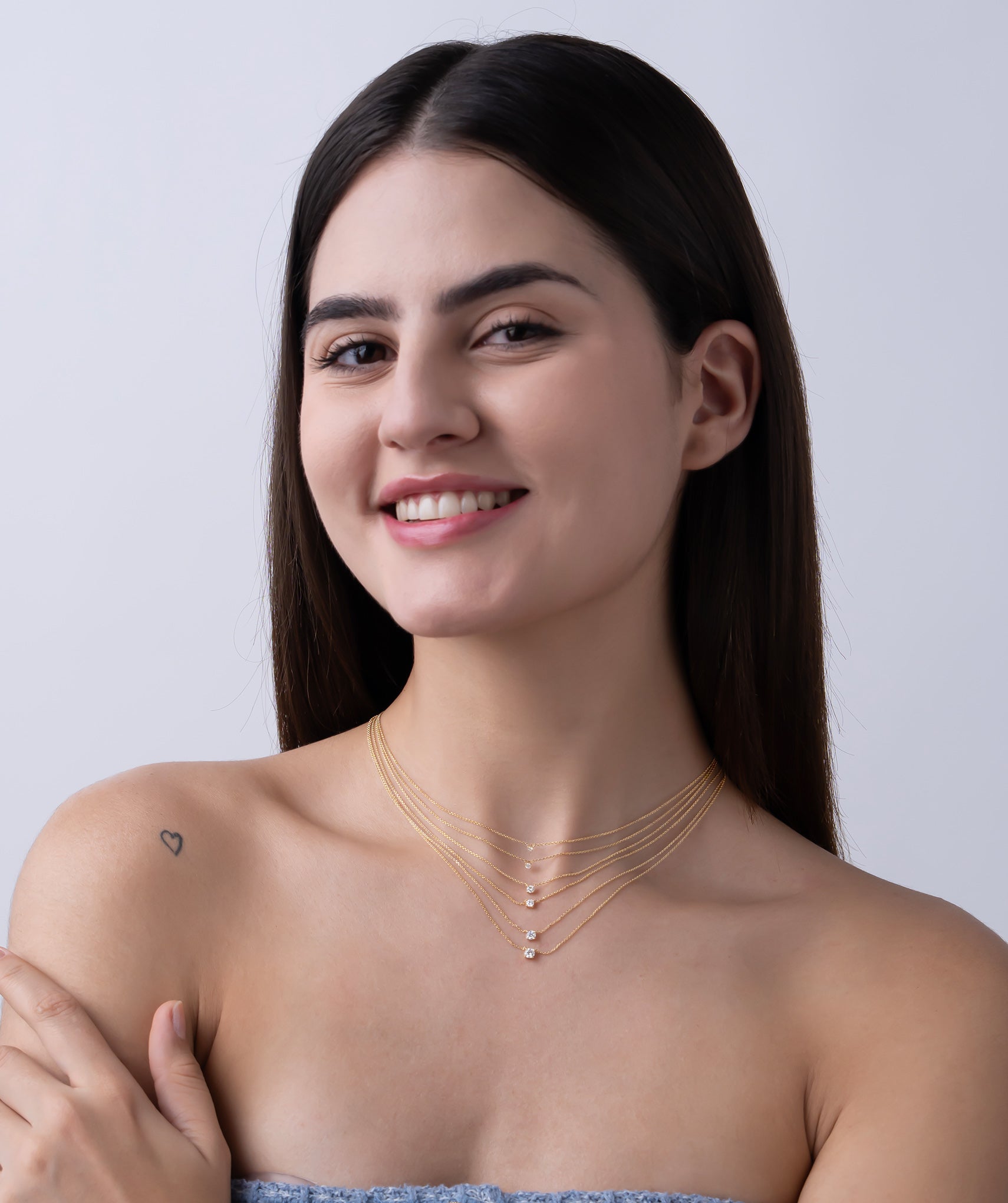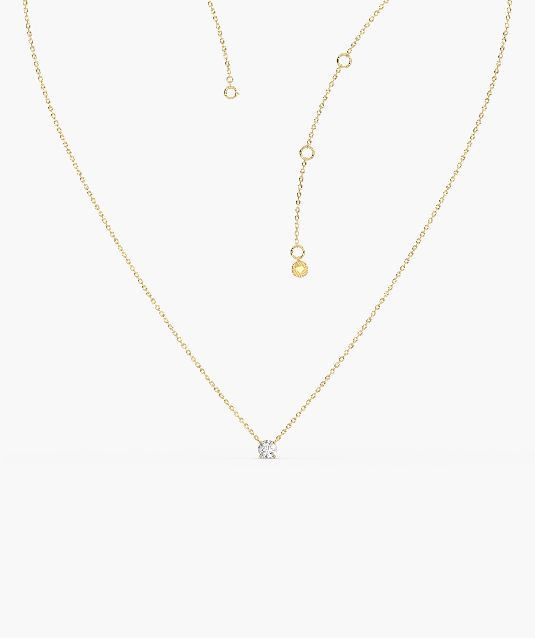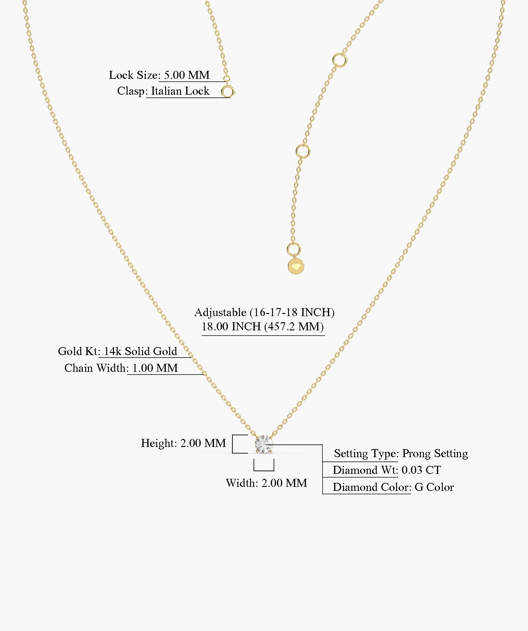This refined necklace showcases a brilliant round diamond set in a smooth Prong of 14K rose gold. Paired with a dainty adjustable chain, it’s perfect for layering or wearing solo for a timeless, minimalist look. A radiant everyday piece with subtle luxury and charm.