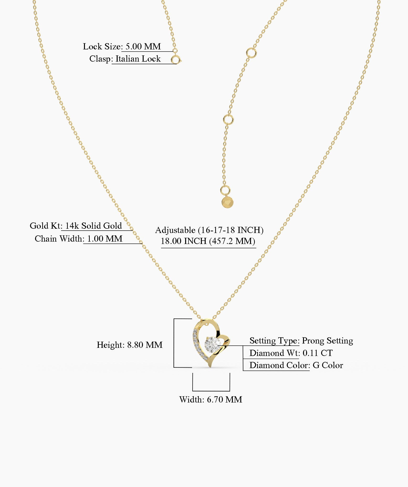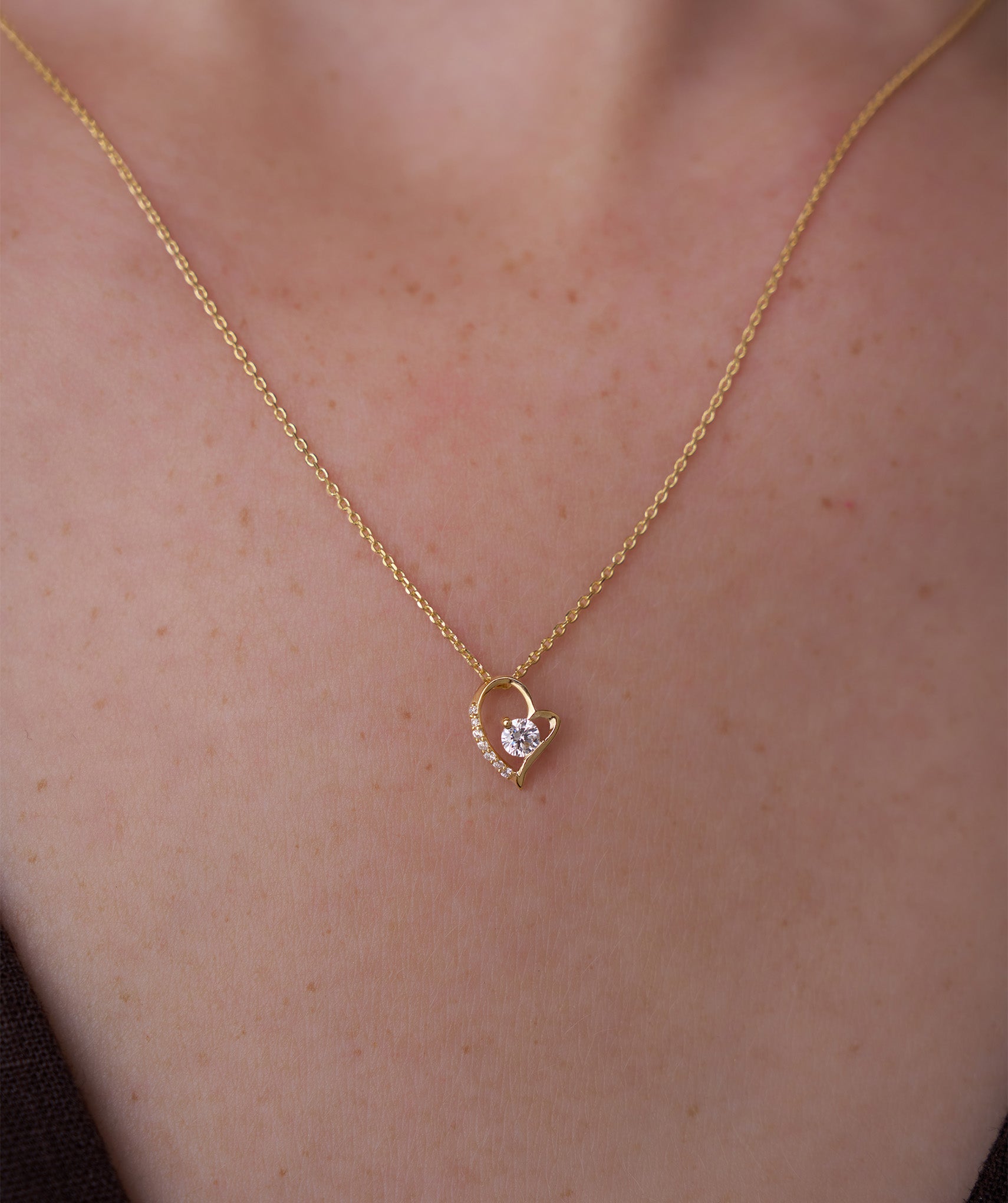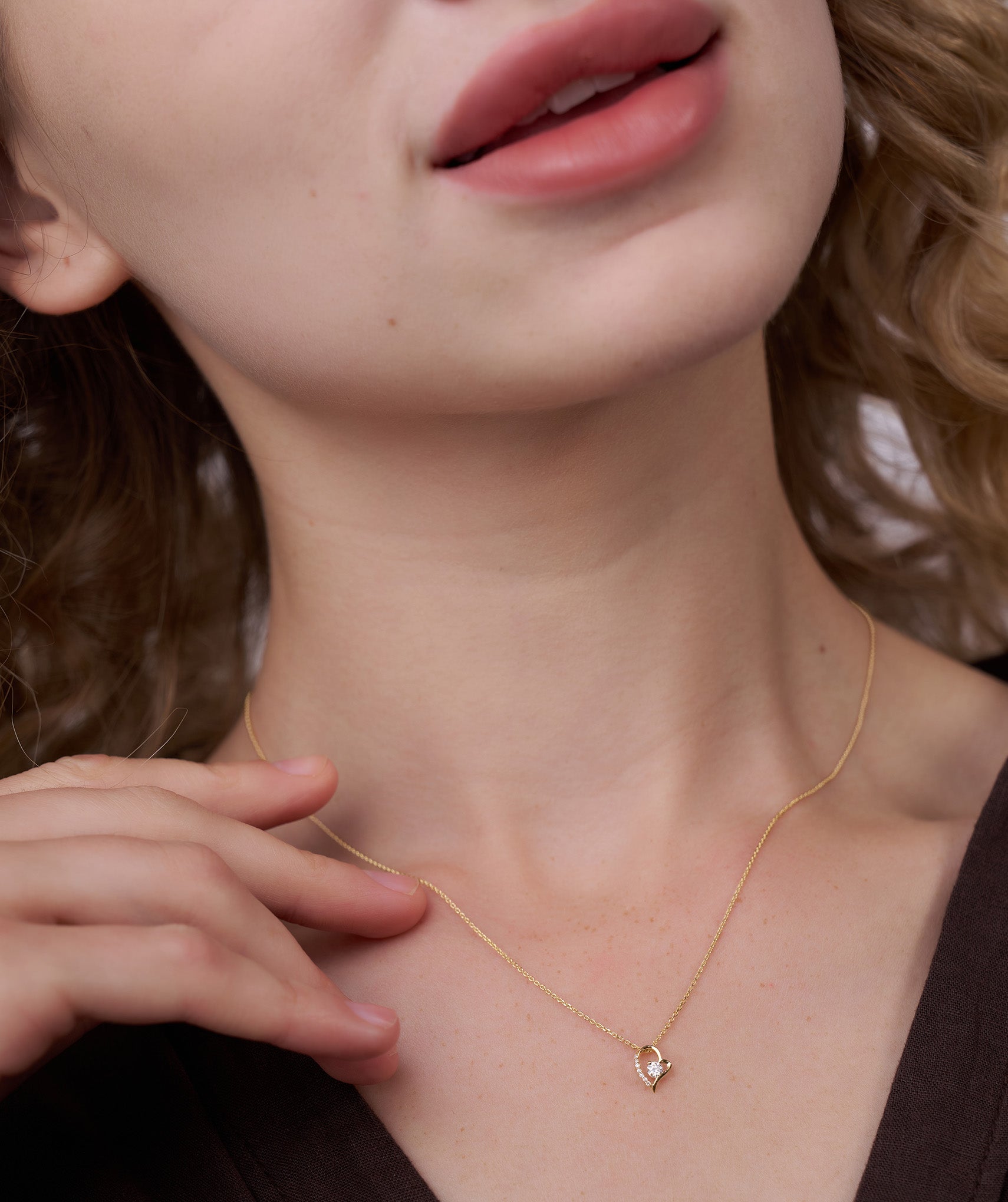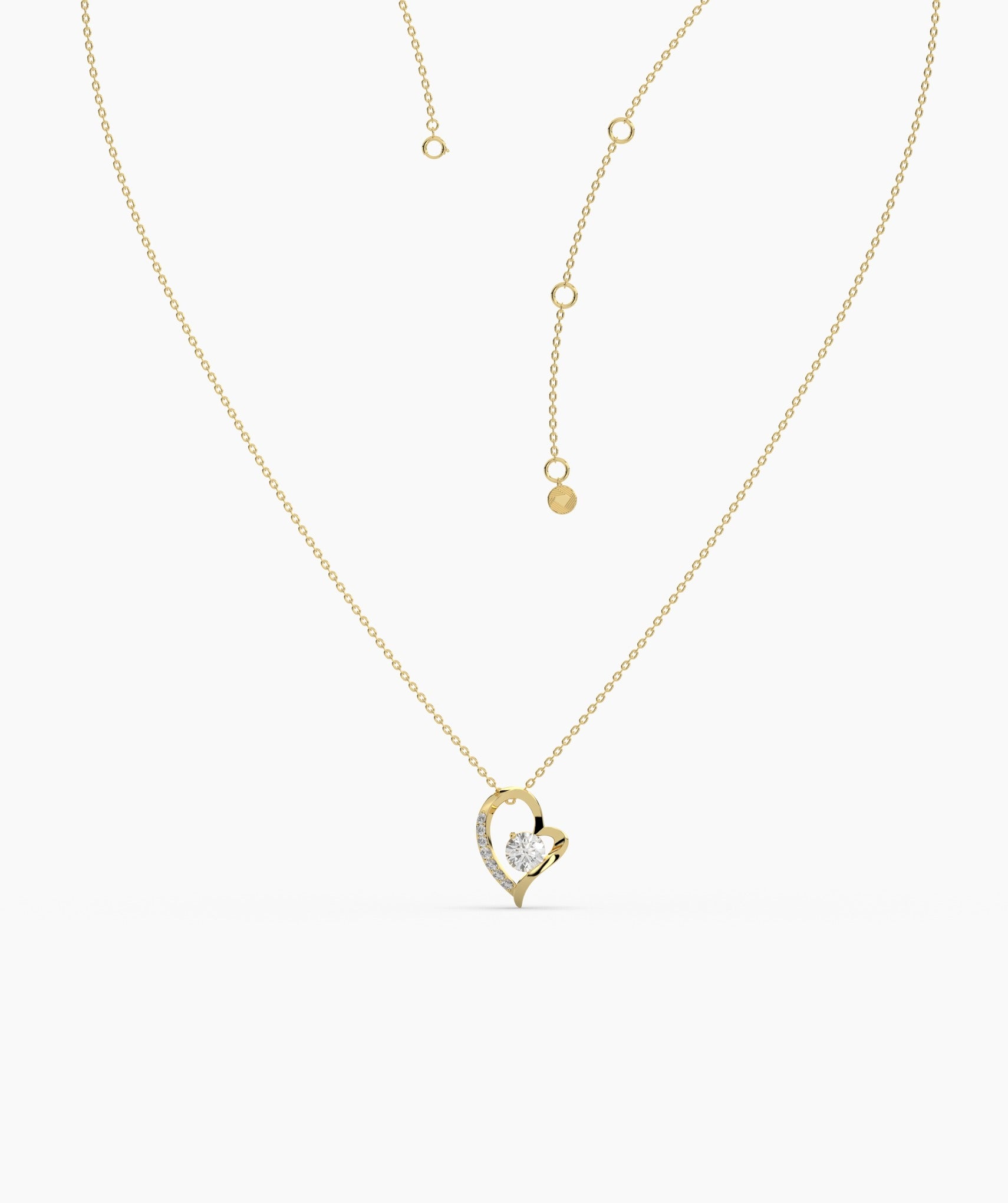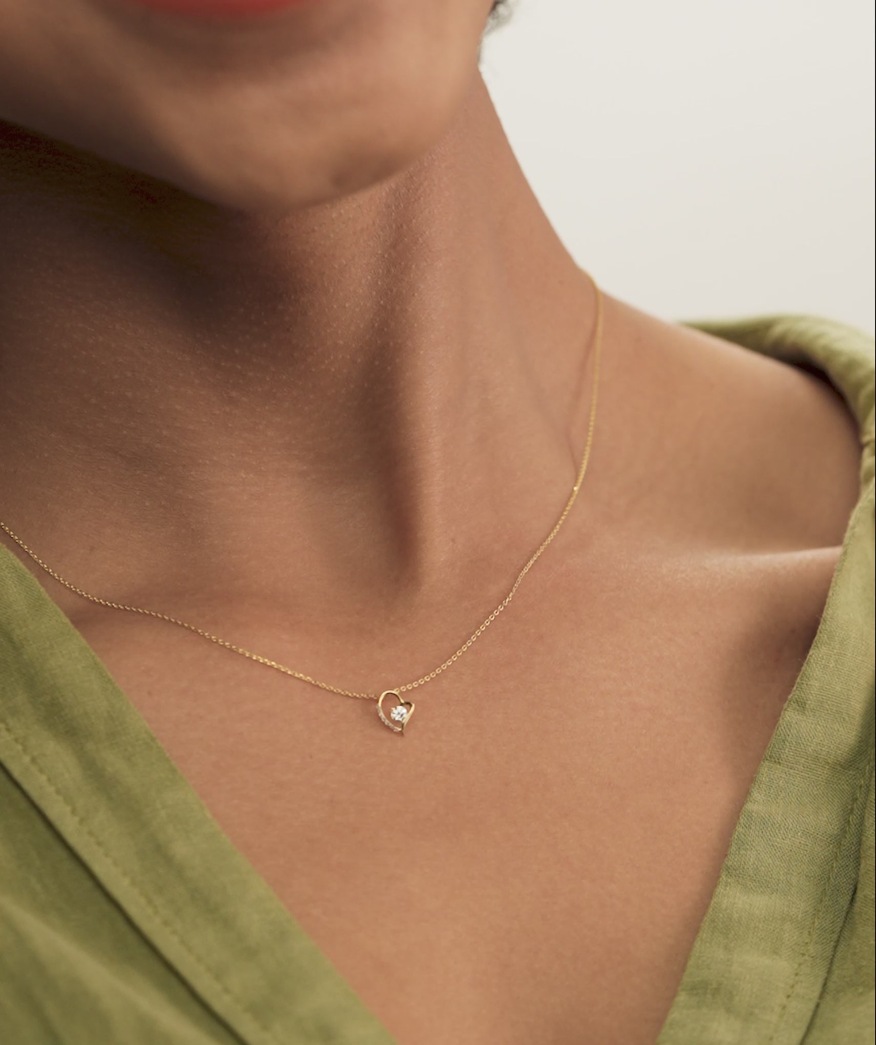 A modern twist on a classic symbol of devotion, this 14K solid gold heart necklace sparkles with effortless elegance.