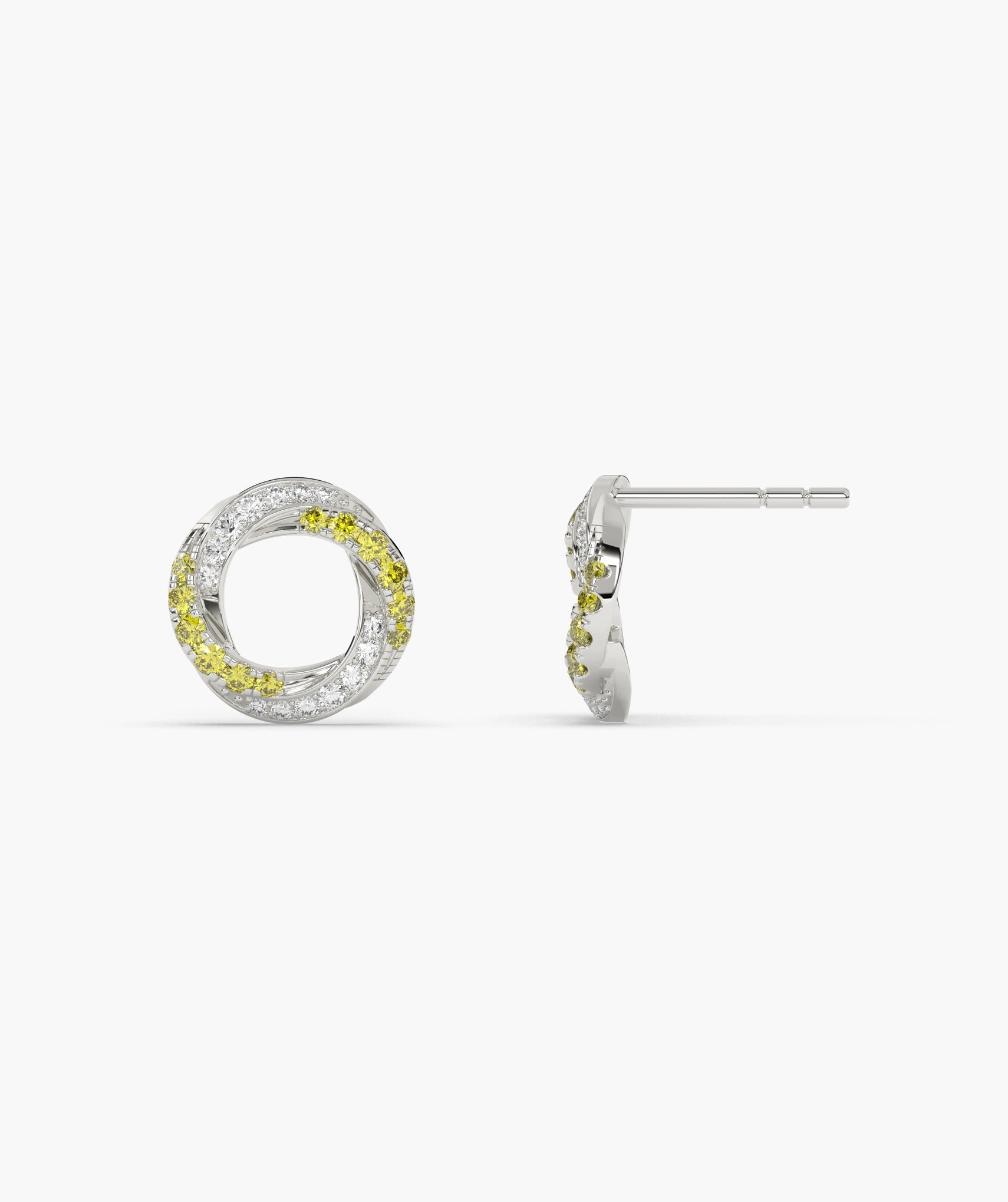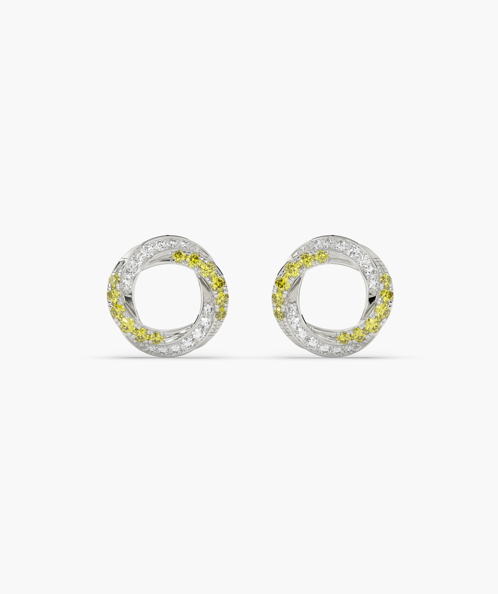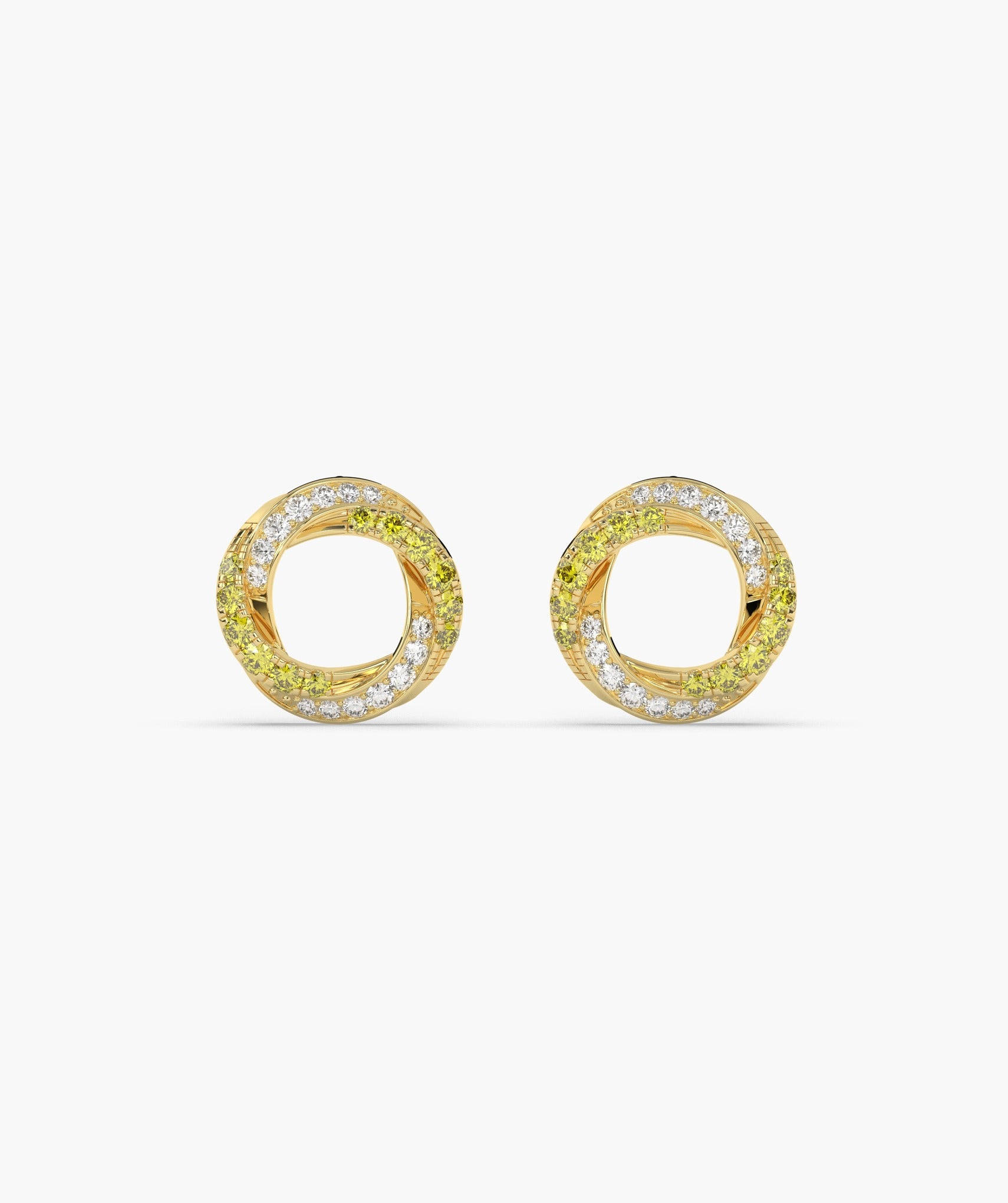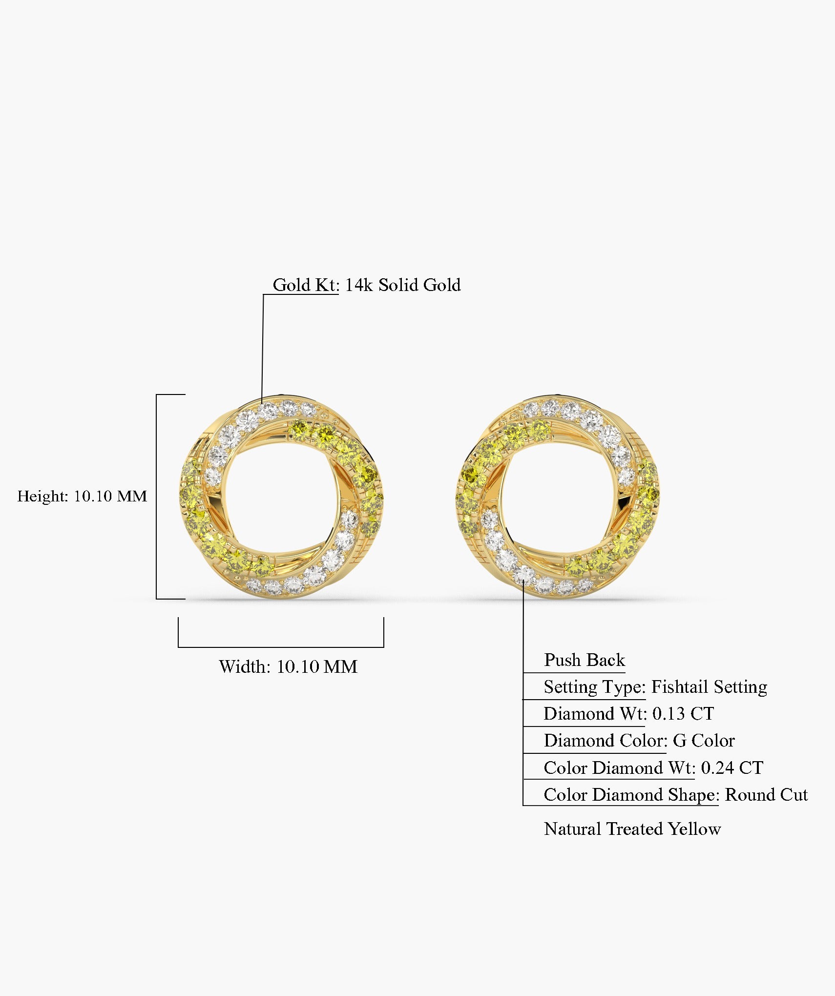 Discover the captivating charm of these 14K solid gold halo stud earrings, featuring concentric circles of yellow and white diamonds.