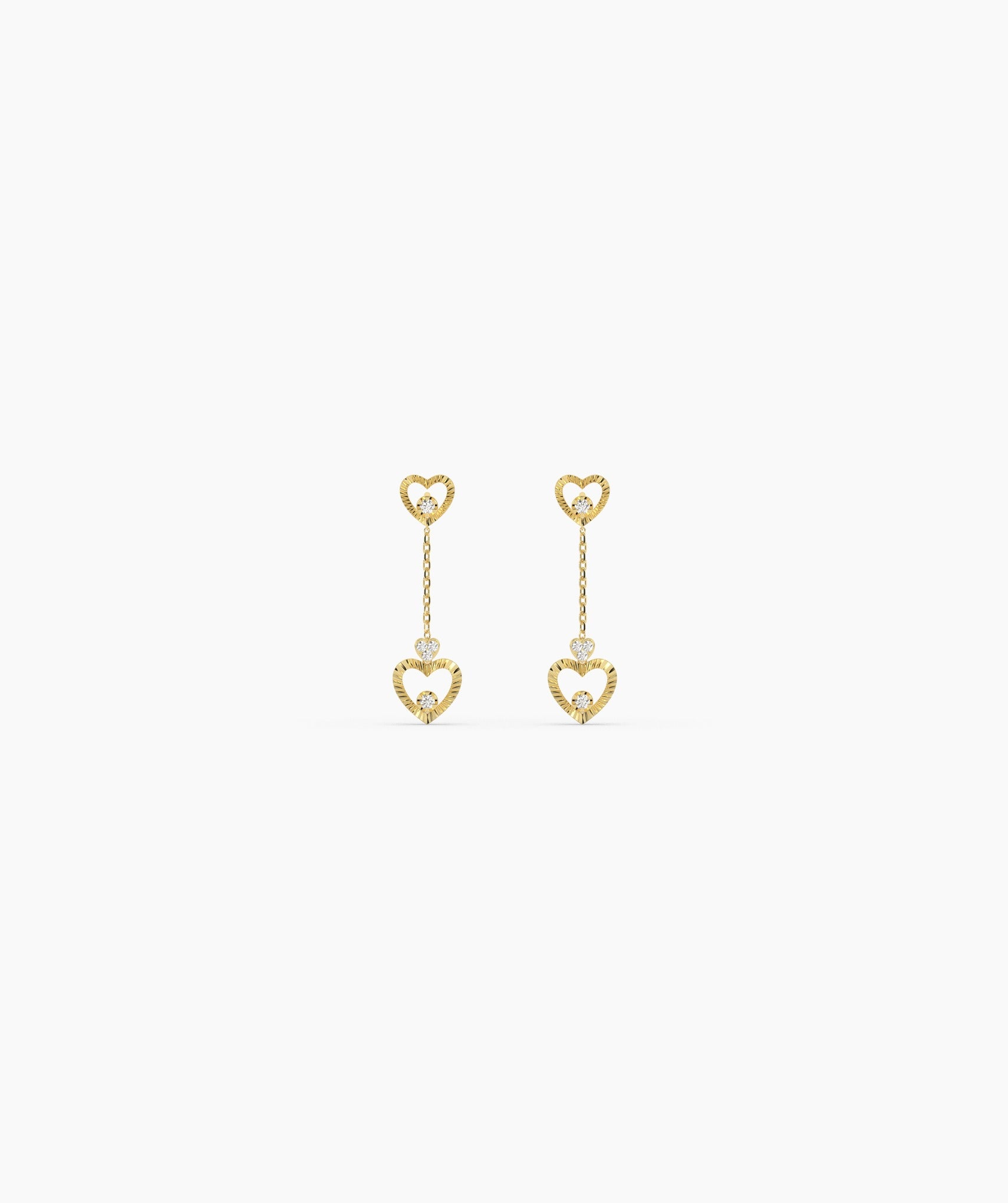 Textured Gold Double Heart Diamond Drop Earrings