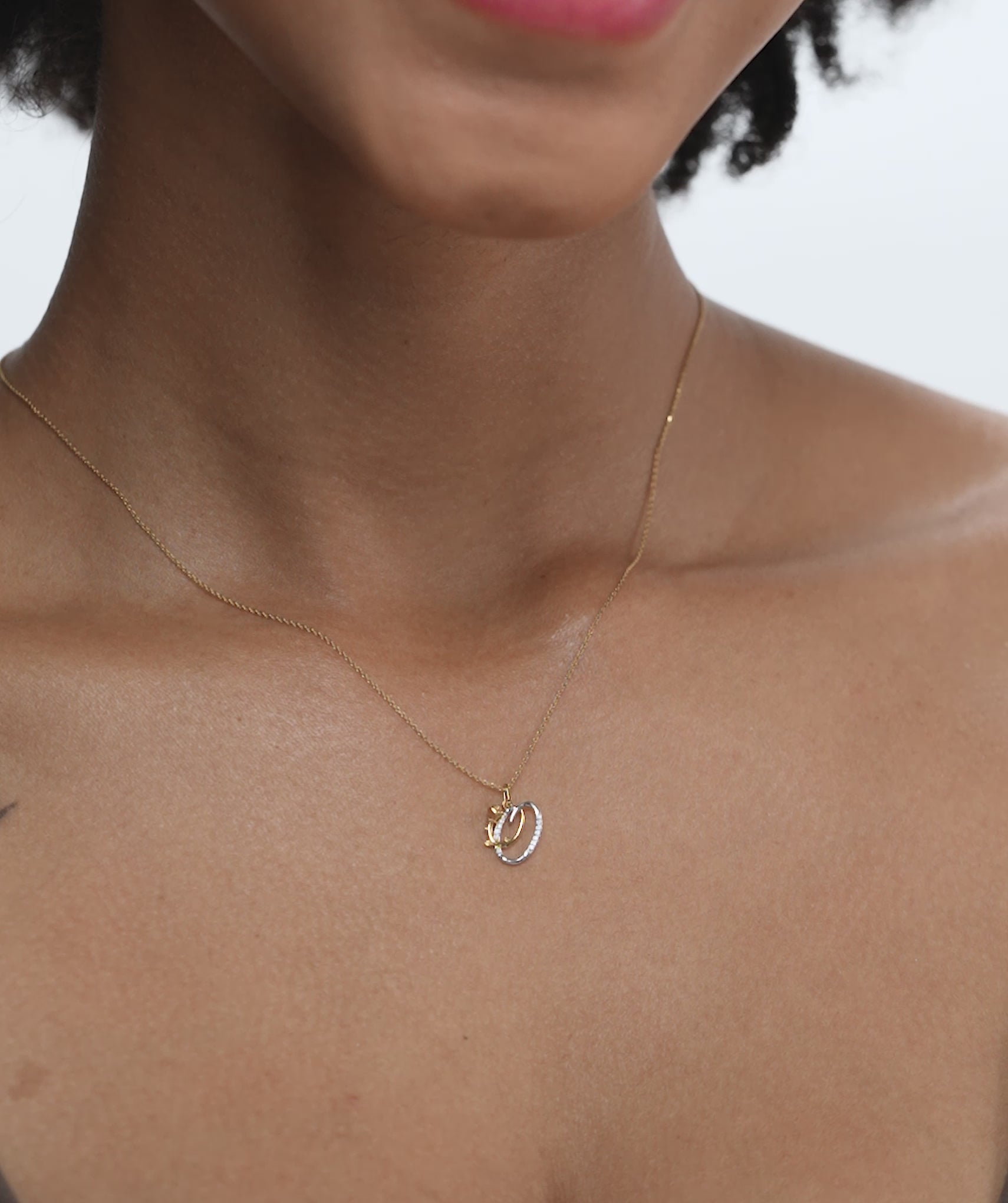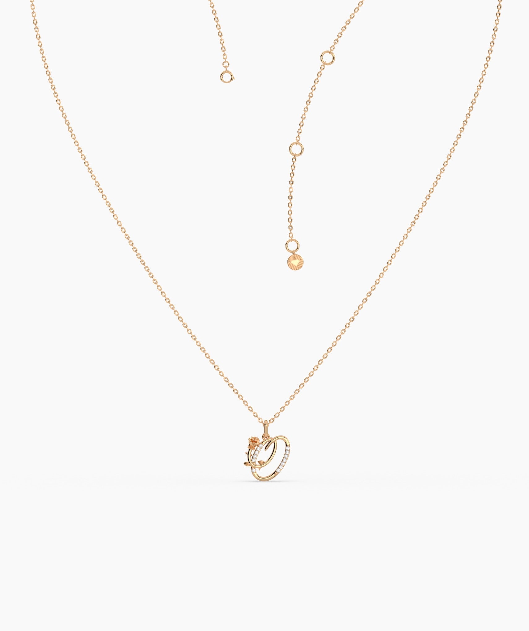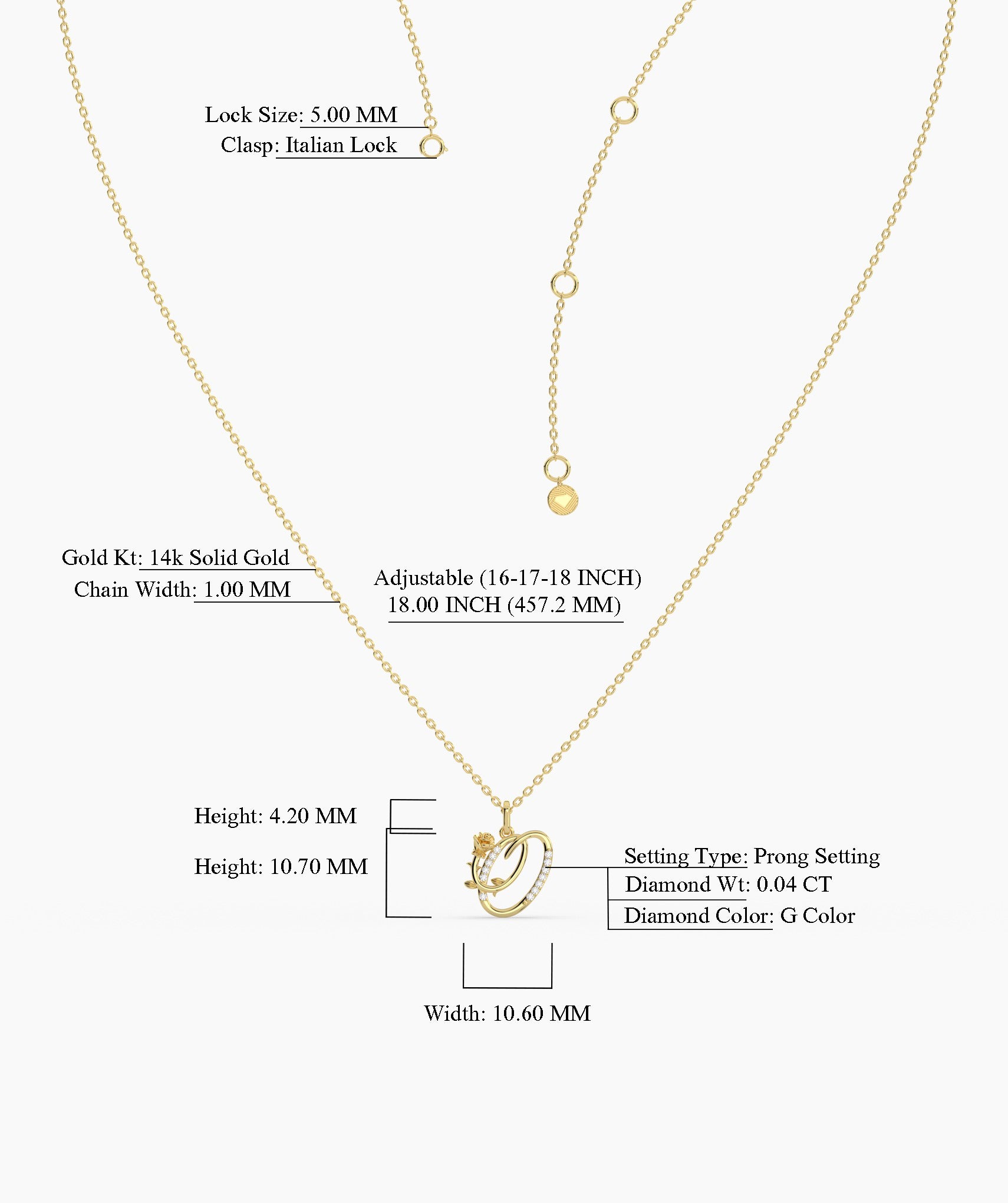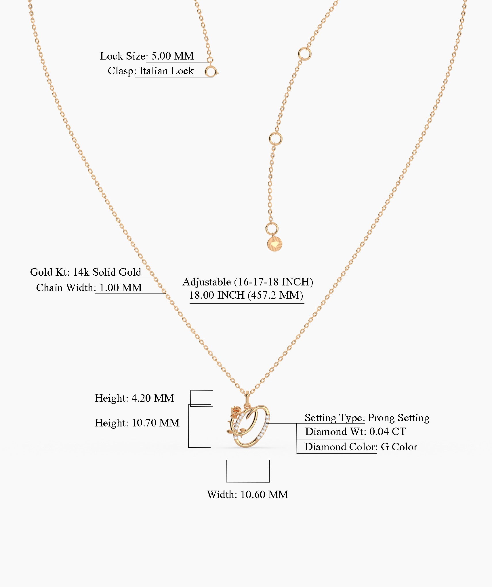 A beautifully crafted 14K gold necklace featuring an intertwined ring and rose, symbolizing eternal love and beauty.